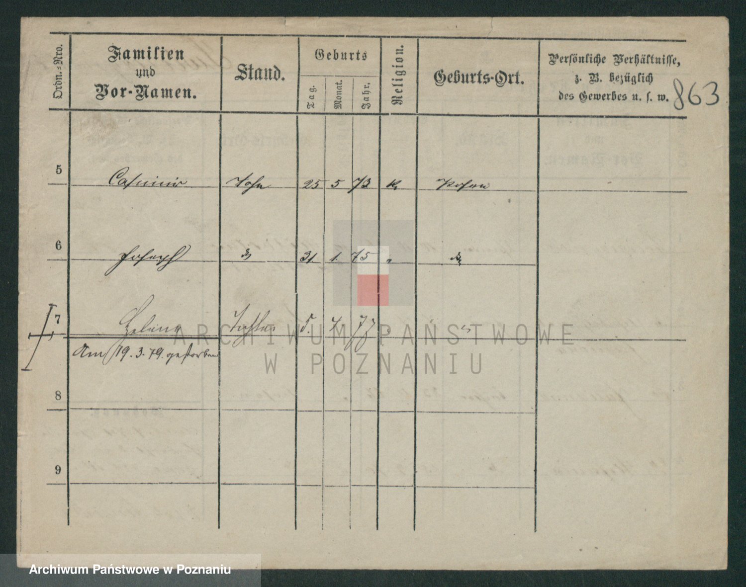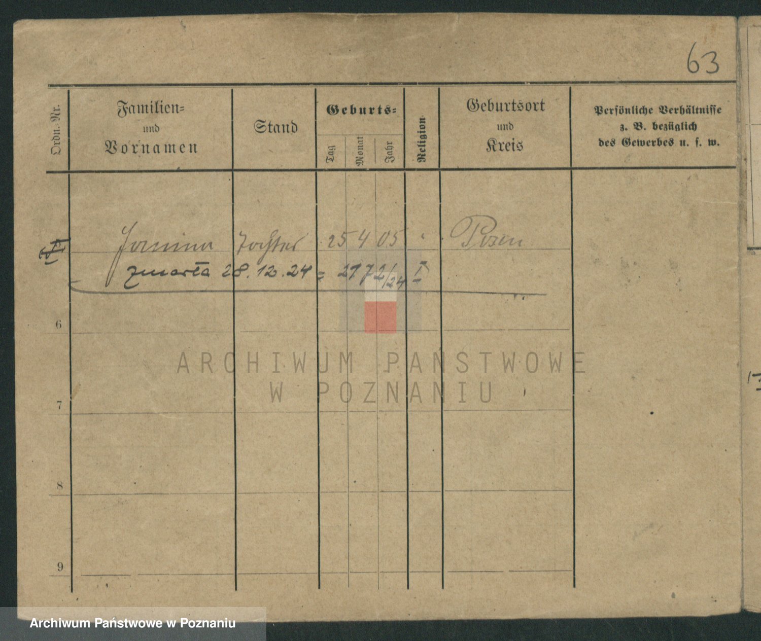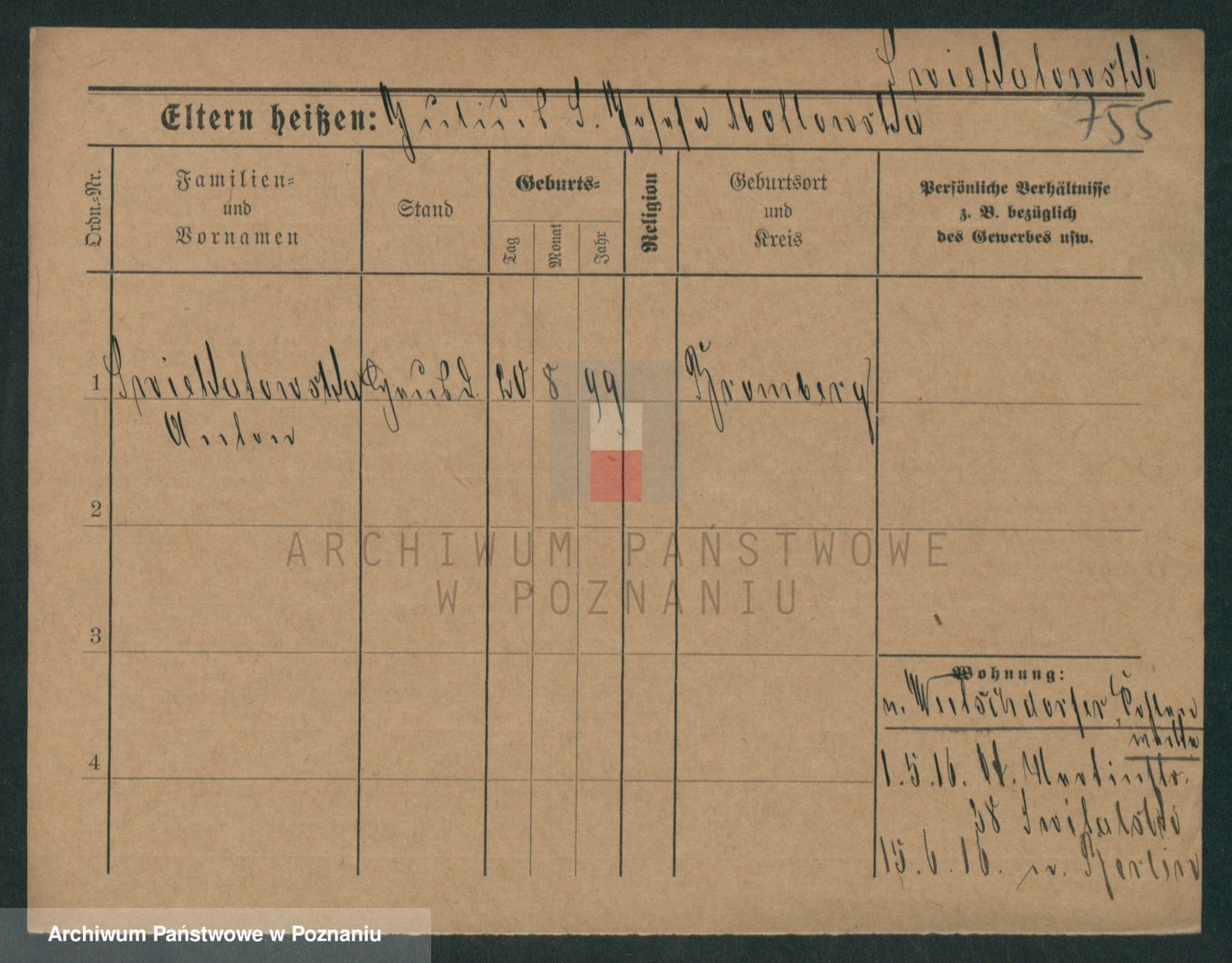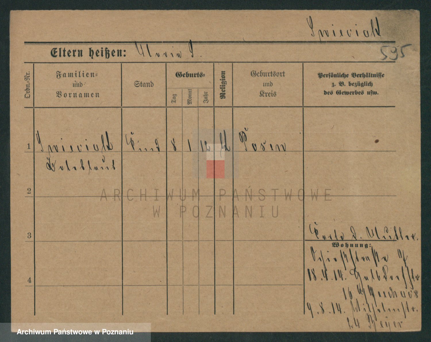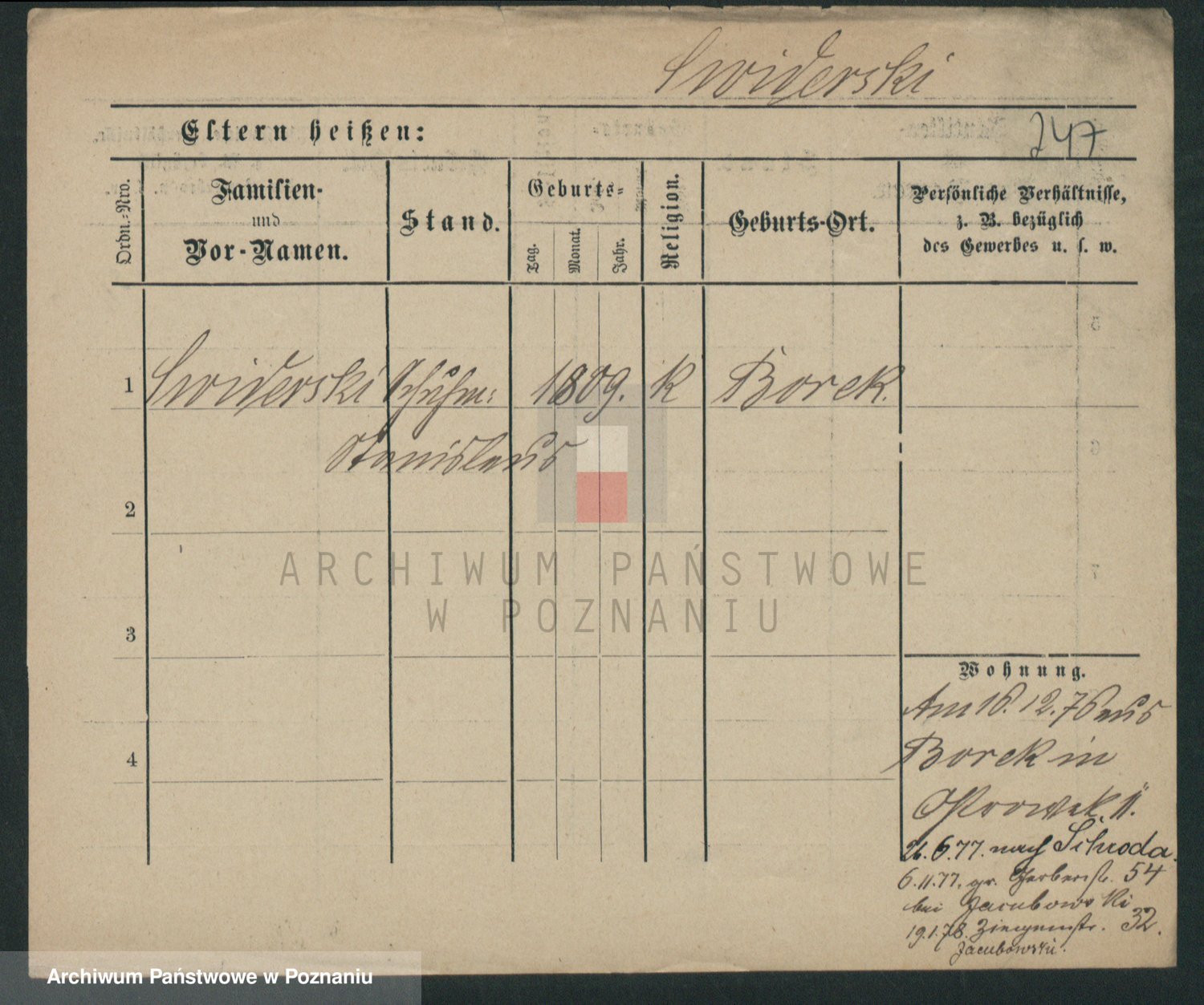 Podgląd karty osobowej dostępny jest po kliknięciu na nazwisko lub ikonkę karty. Można dokonywać powiększenia (ikony na górze) lub przechodzić między kolejnymi skanami (strzałki po bokach).