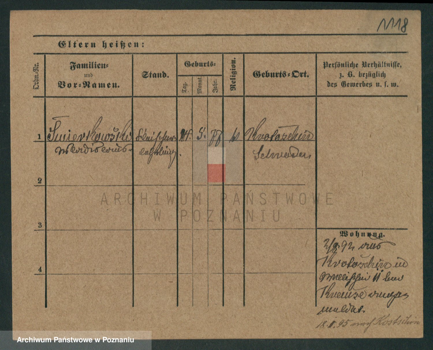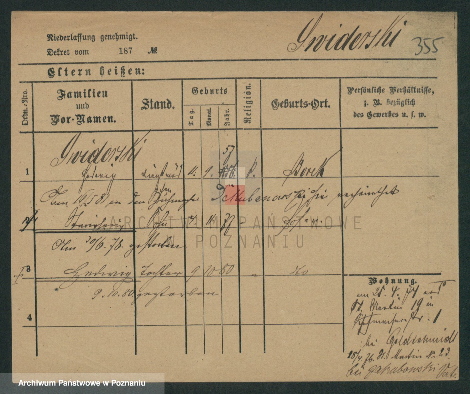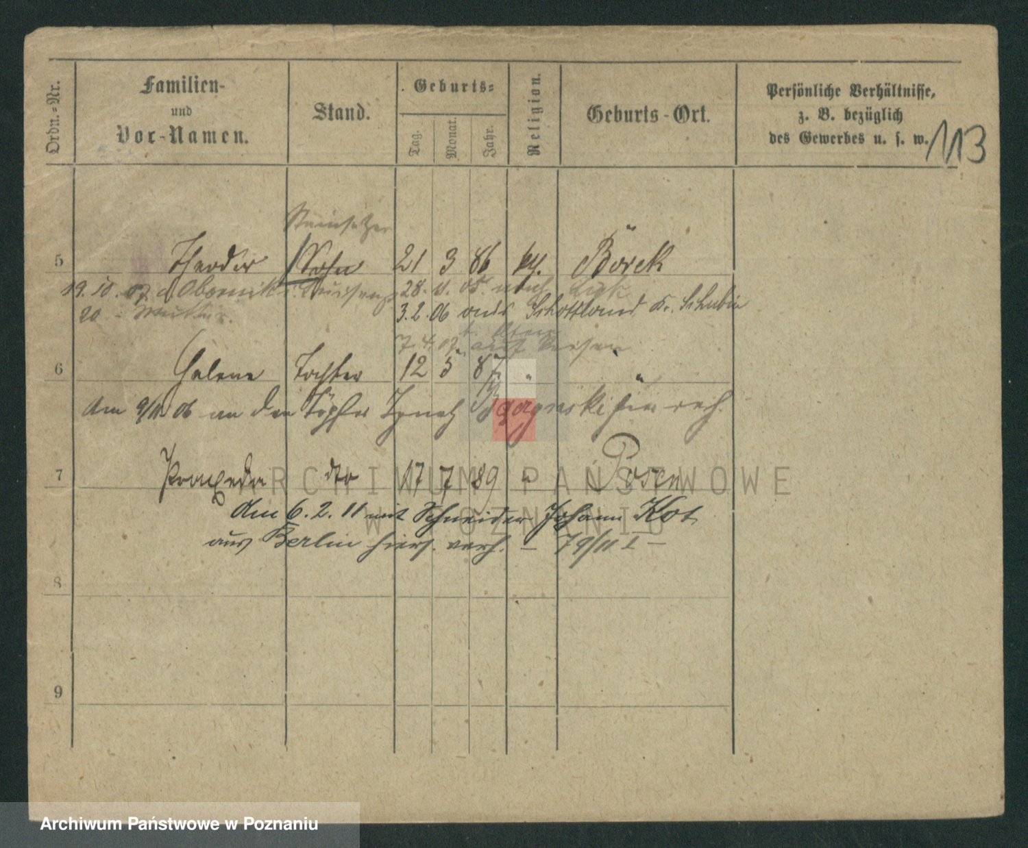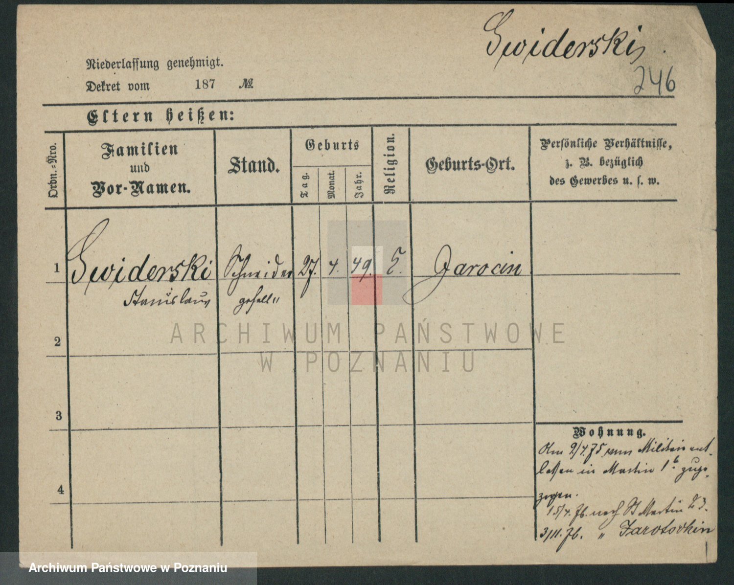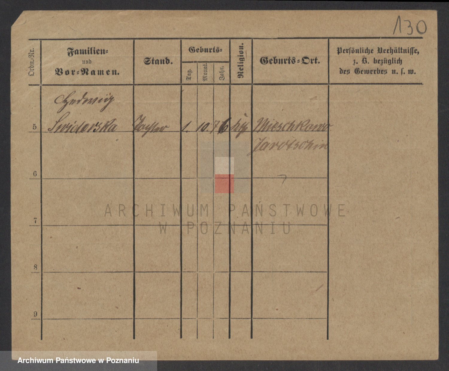 Podgląd karty osobowej dostępny jest po kliknięciu na nazwisko lub ikonkę karty. Można dokonywać powiększenia (ikony na górze) lub przechodzić między kolejnymi skanami (strzałki po bokach).