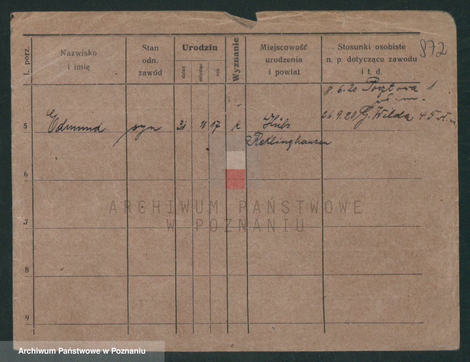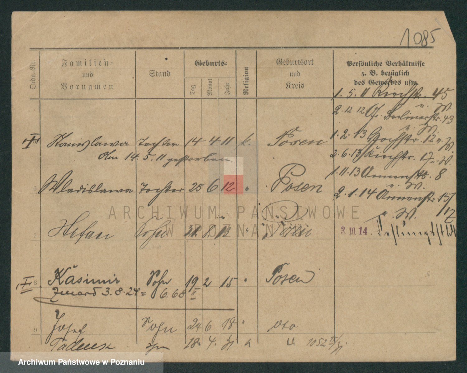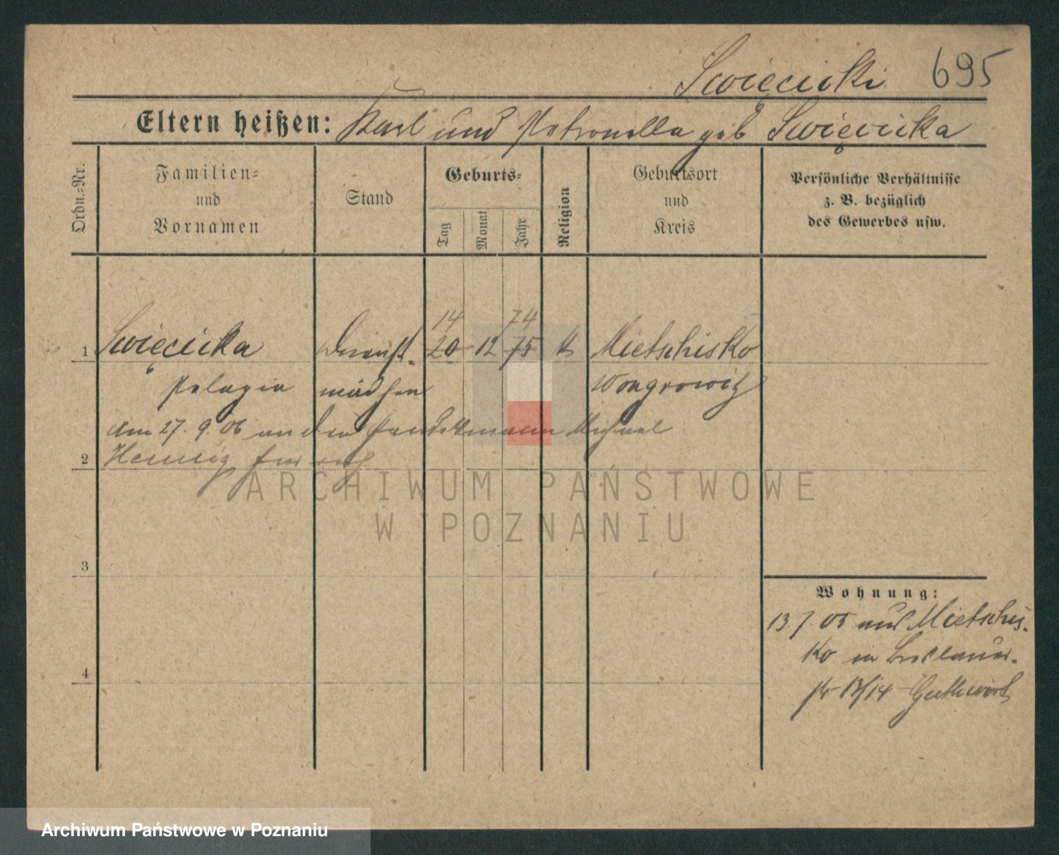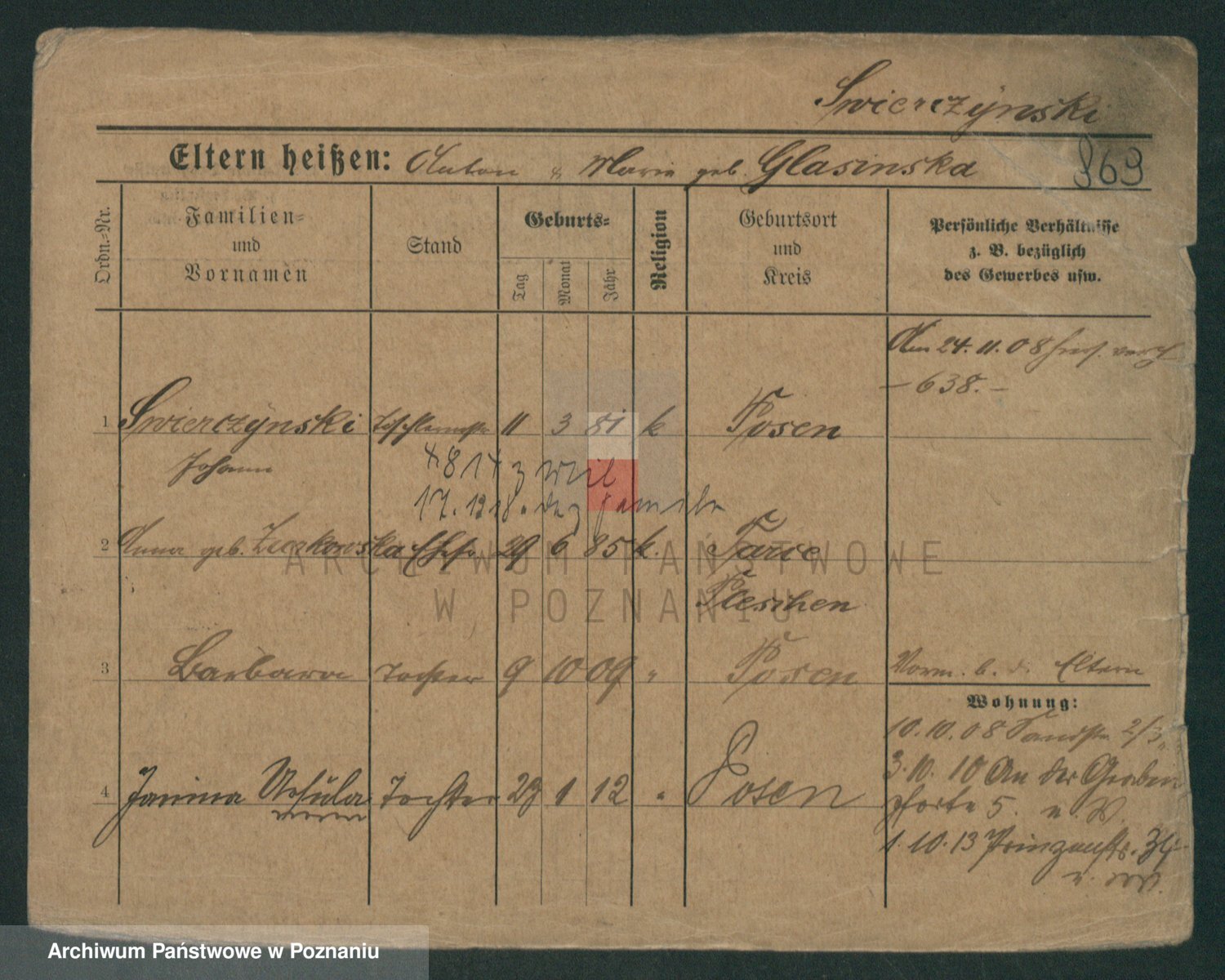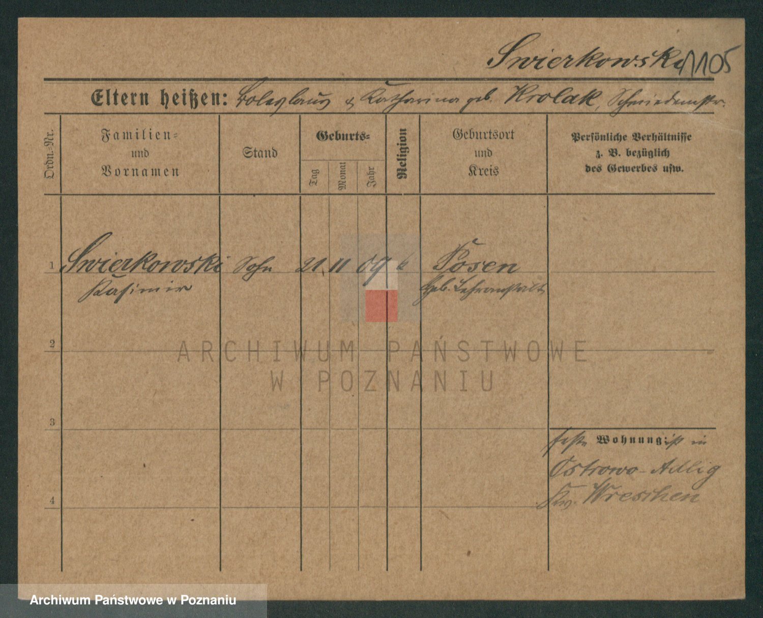 Podgląd karty osobowej dostępny jest po kliknięciu na nazwisko lub ikonkę karty. Można dokonywać powiększenia (ikony na górze) lub przechodzić między kolejnymi skanami (strzałki po bokach).