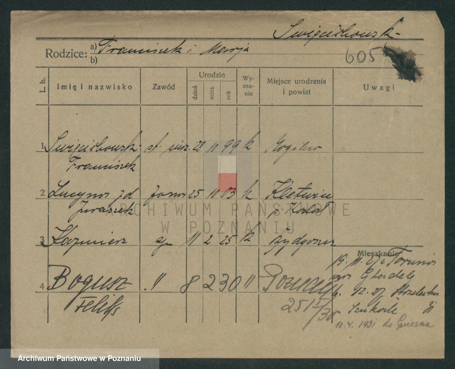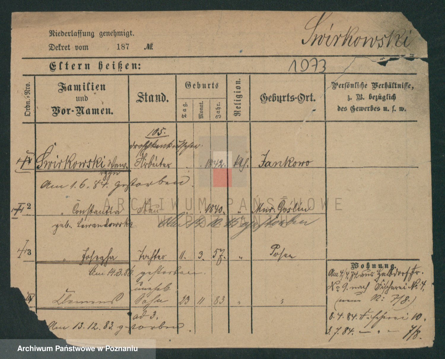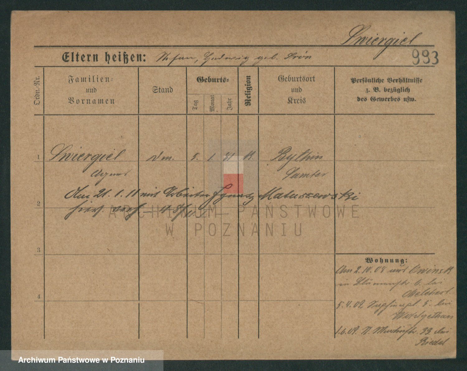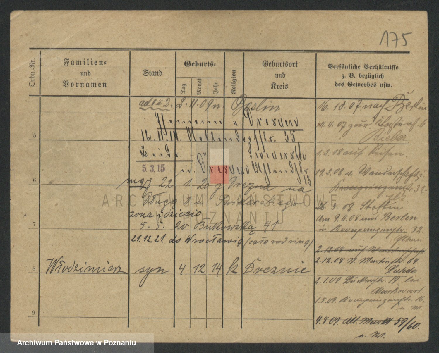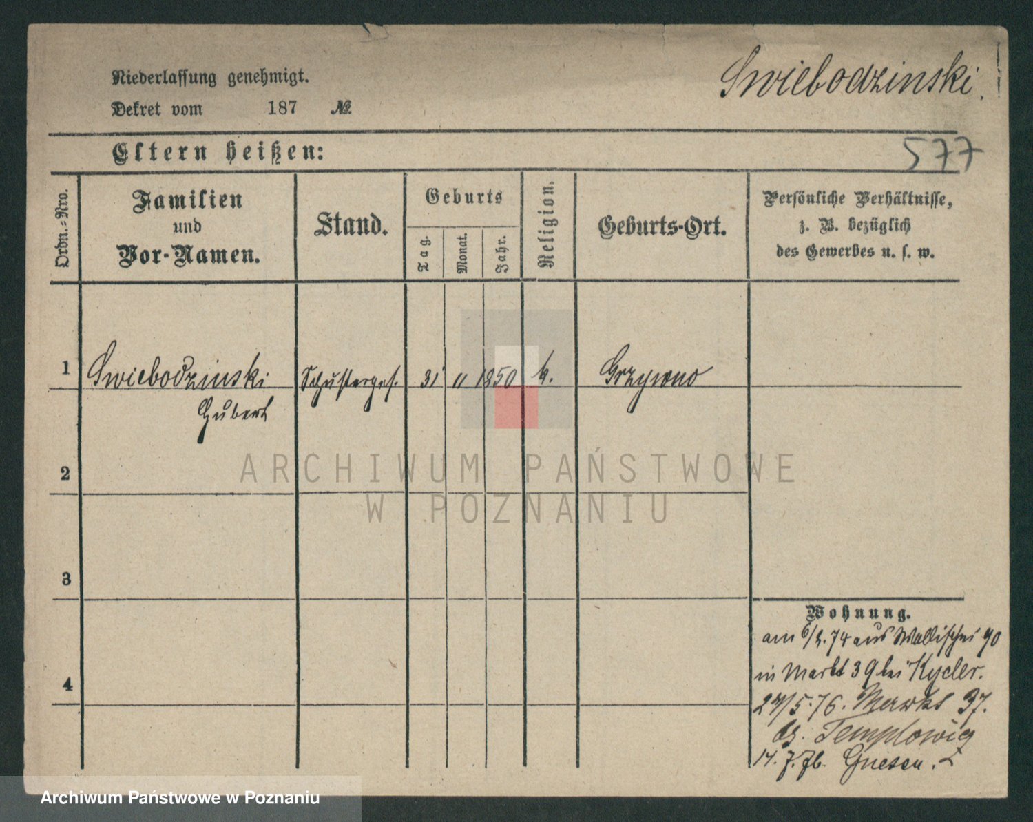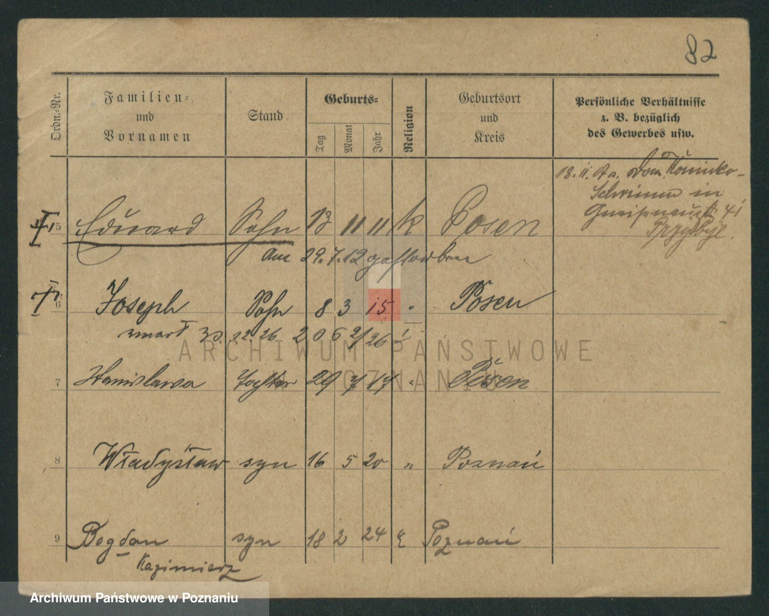 Podgląd karty osobowej dostępny jest po kliknięciu na nazwisko lub ikonkę karty. Można dokonywać powiększenia (ikony na górze) lub przechodzić między kolejnymi skanami (strzałki po bokach).