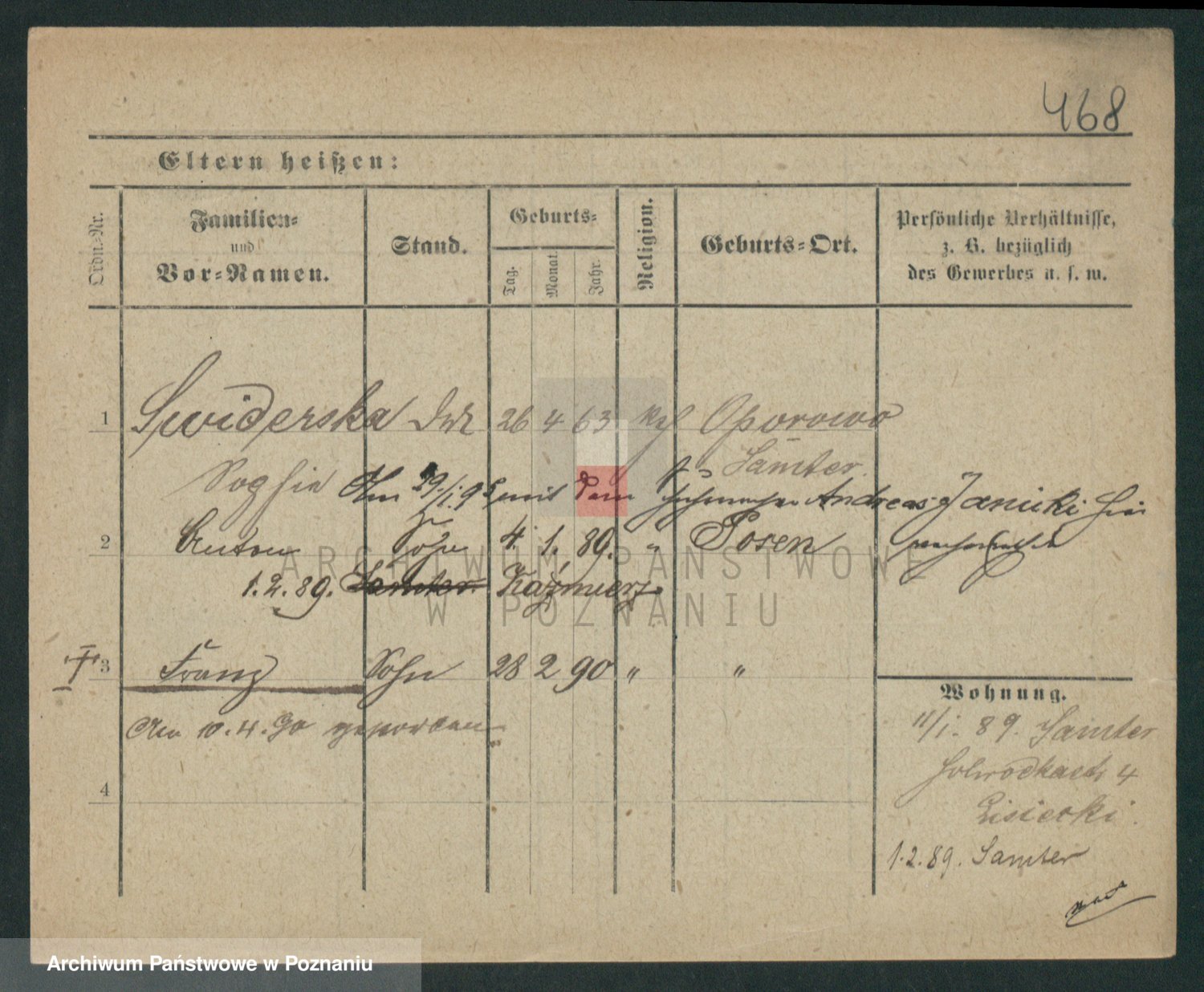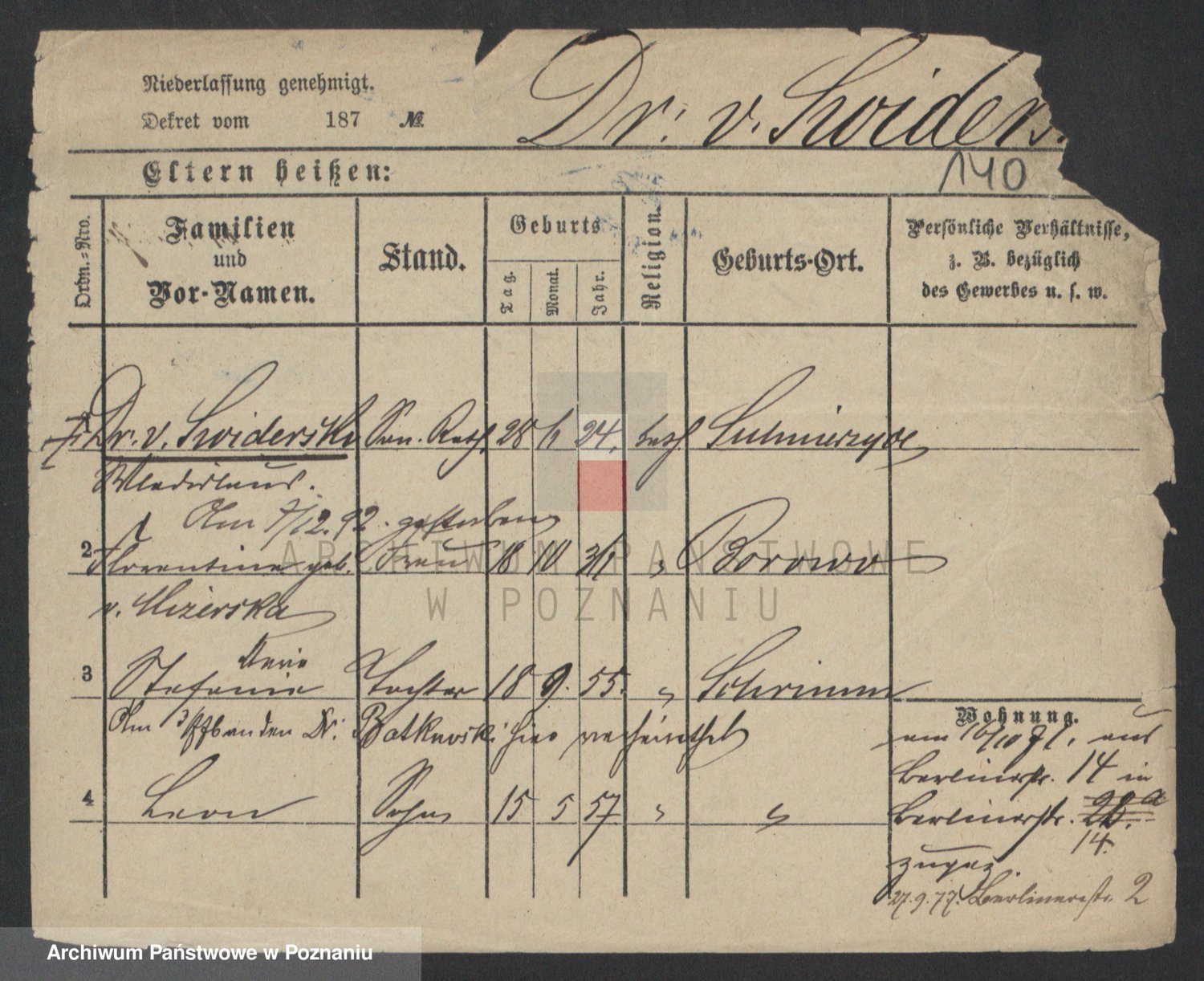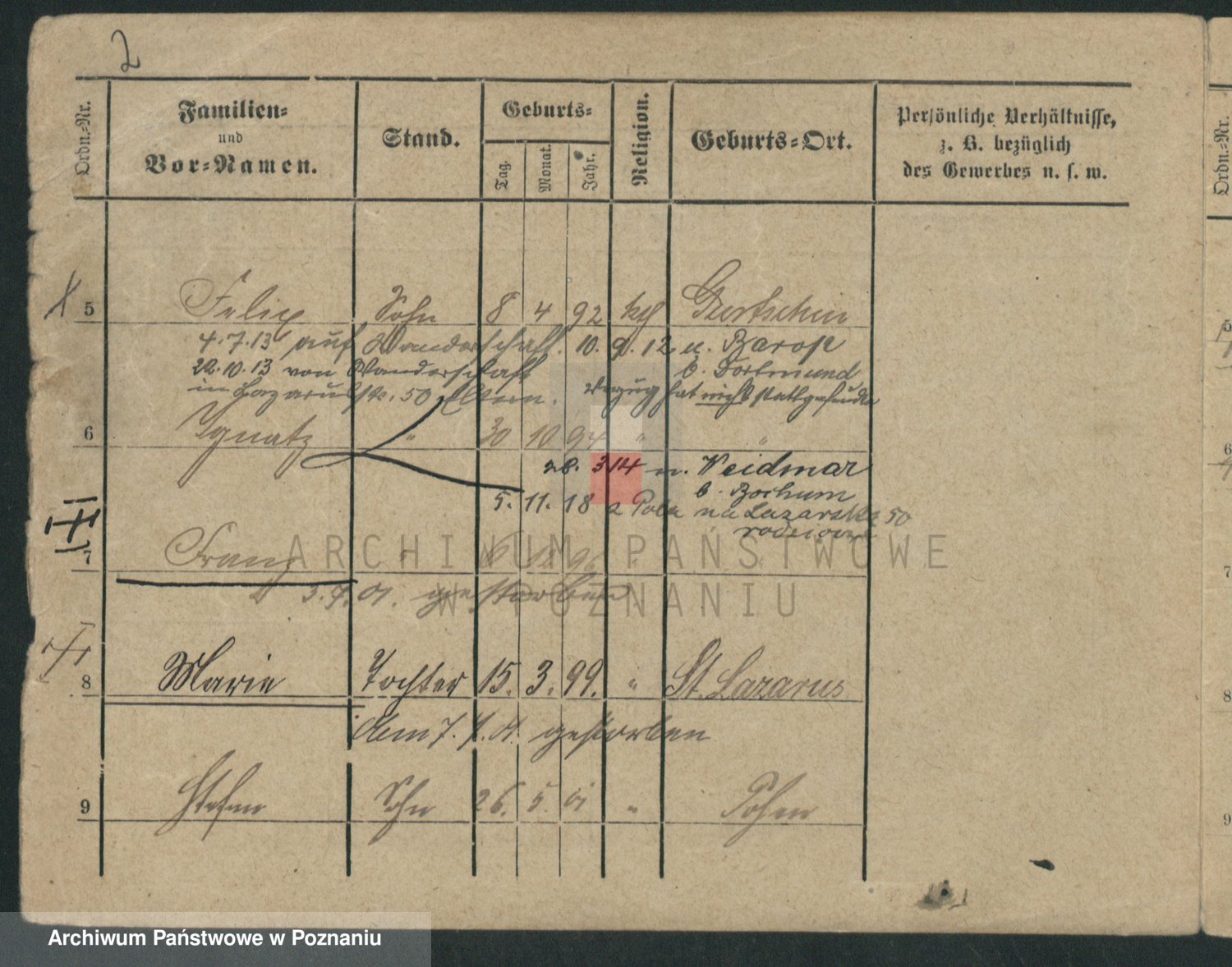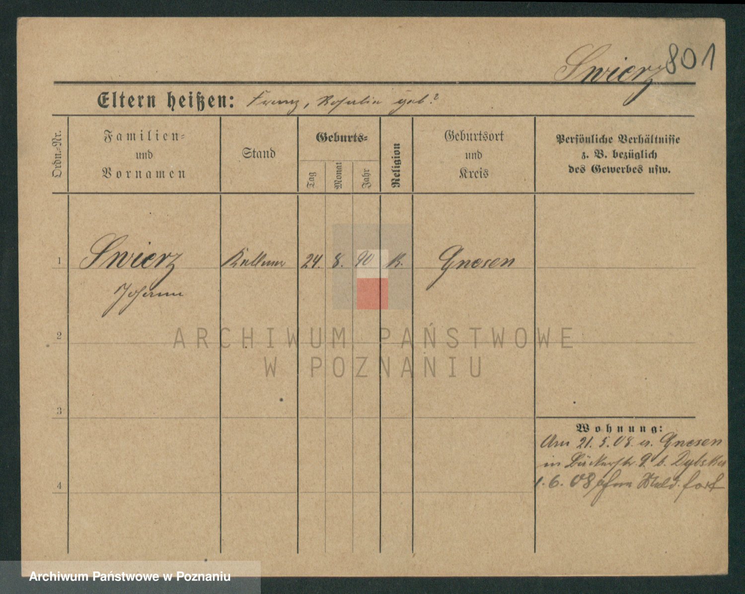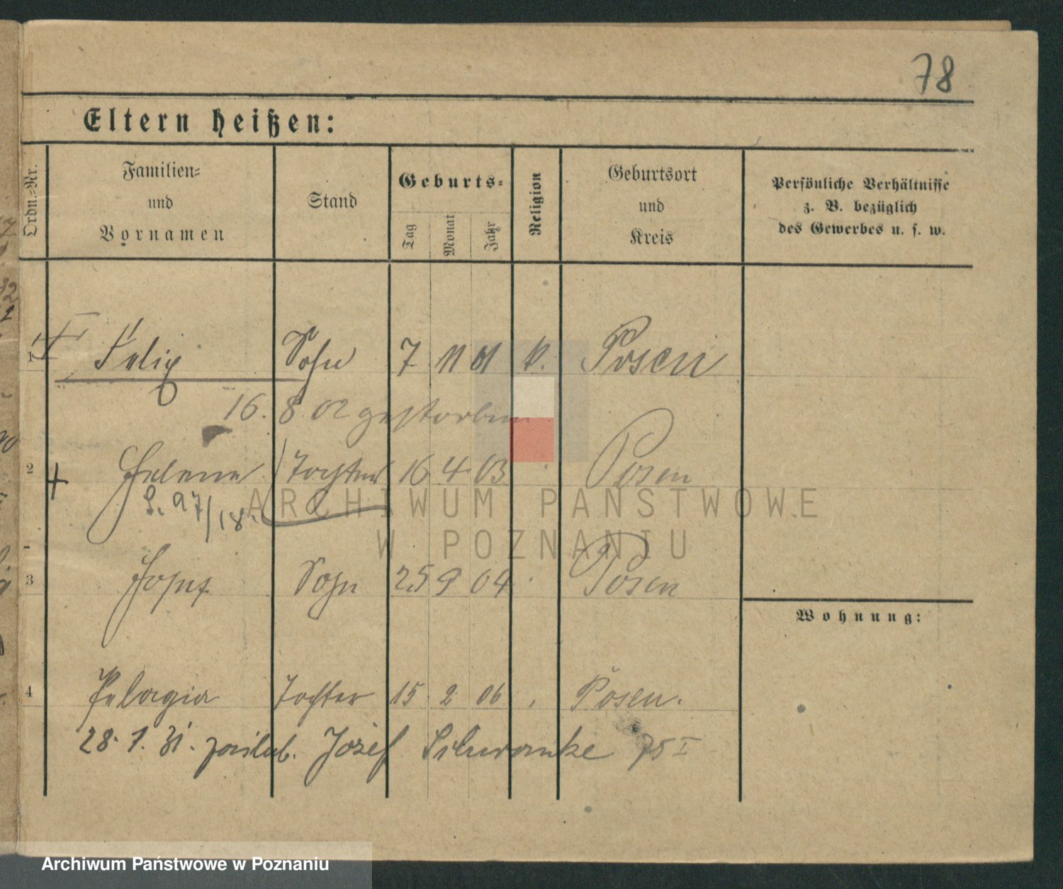 Podgląd karty osobowej dostępny jest po kliknięciu na nazwisko lub ikonkę karty. Można dokonywać powiększenia (ikony na górze) lub przechodzić między kolejnymi skanami (strzałki po bokach).