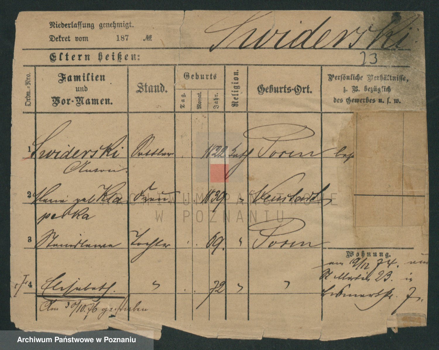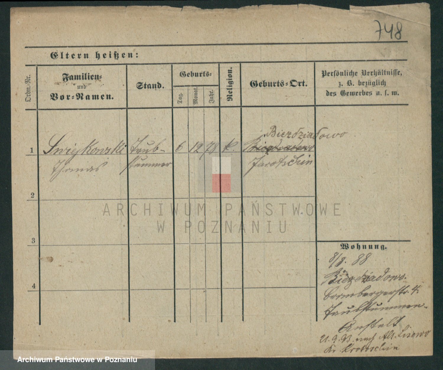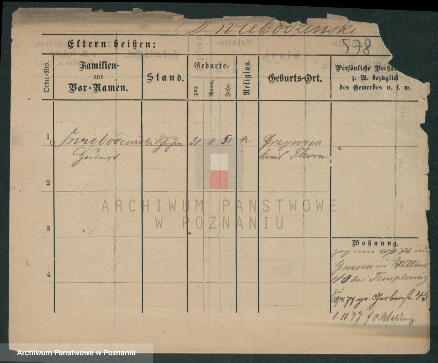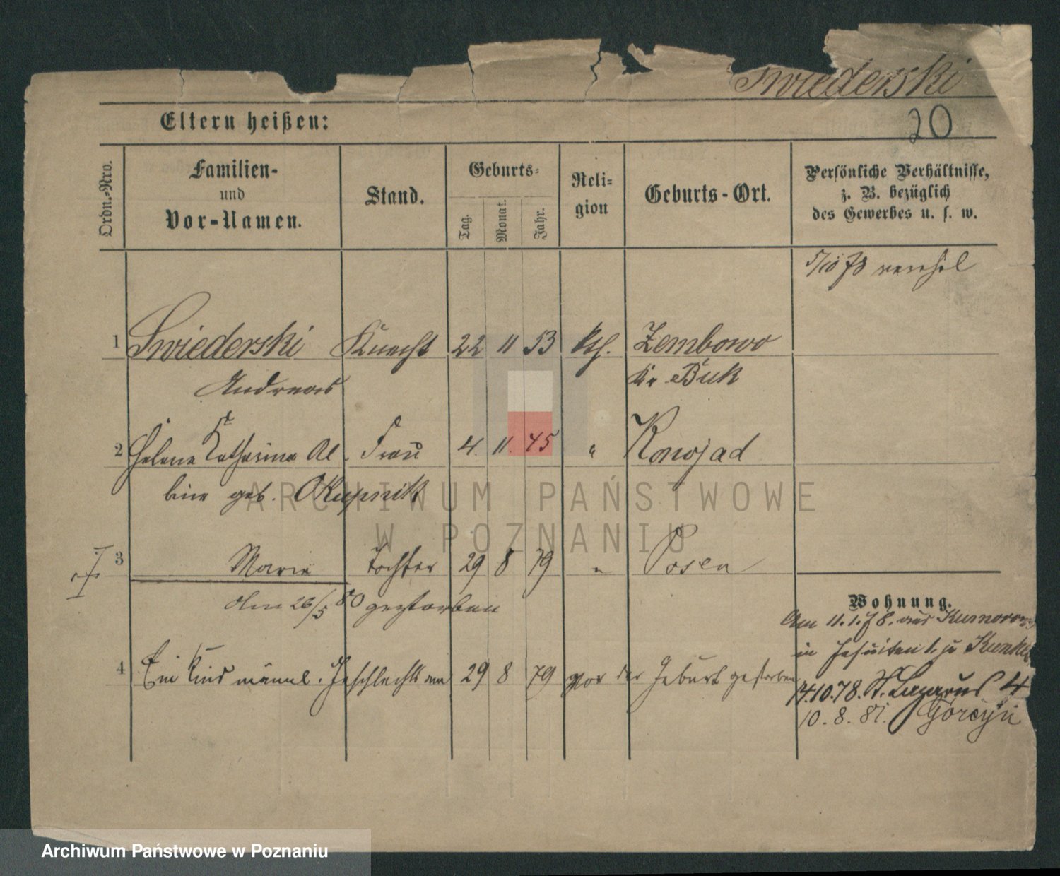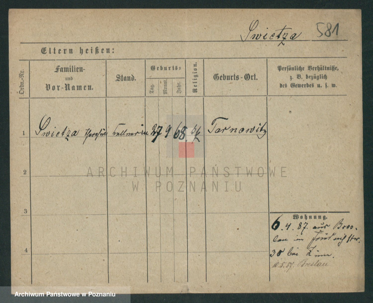 Podgląd karty osobowej dostępny jest po kliknięciu na nazwisko lub ikonkę karty. Można dokonywać powiększenia (ikony na górze) lub przechodzić między kolejnymi skanami (strzałki po bokach).