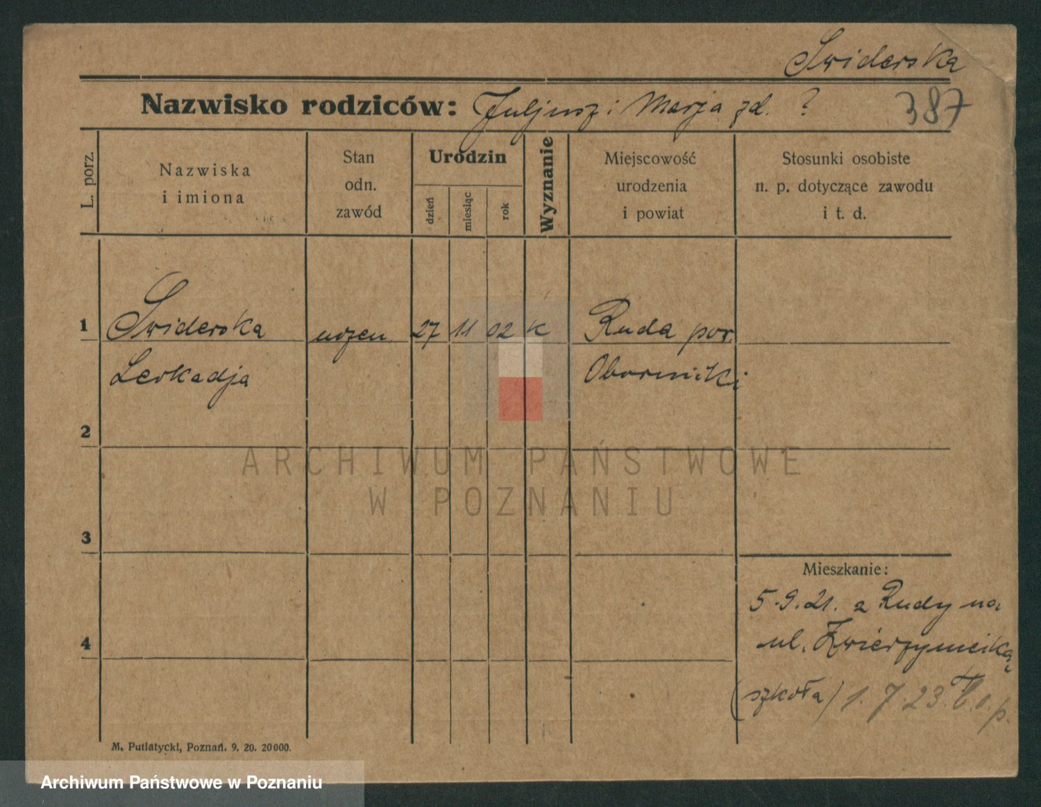 Świderski z d. Krajewska, Florentyna