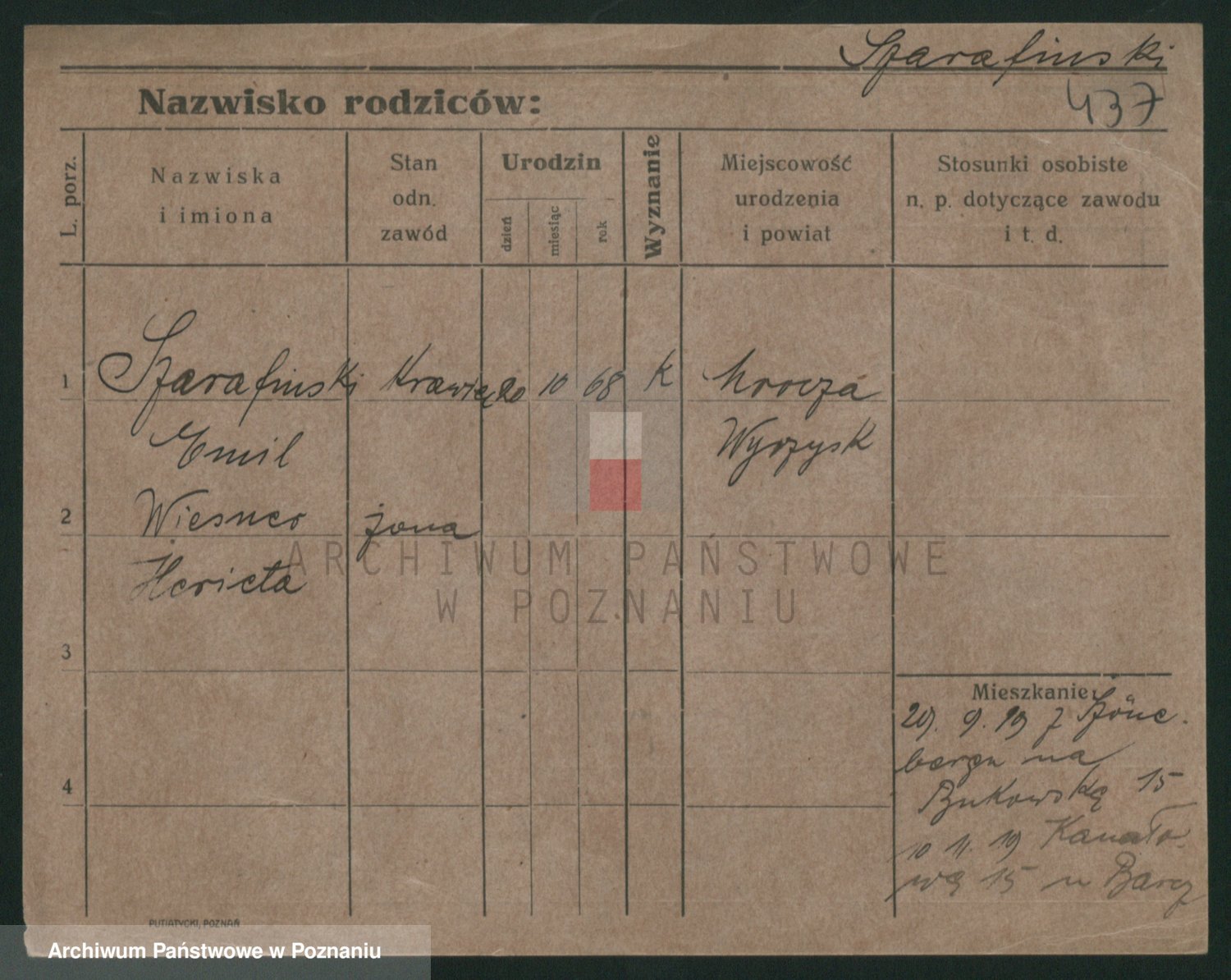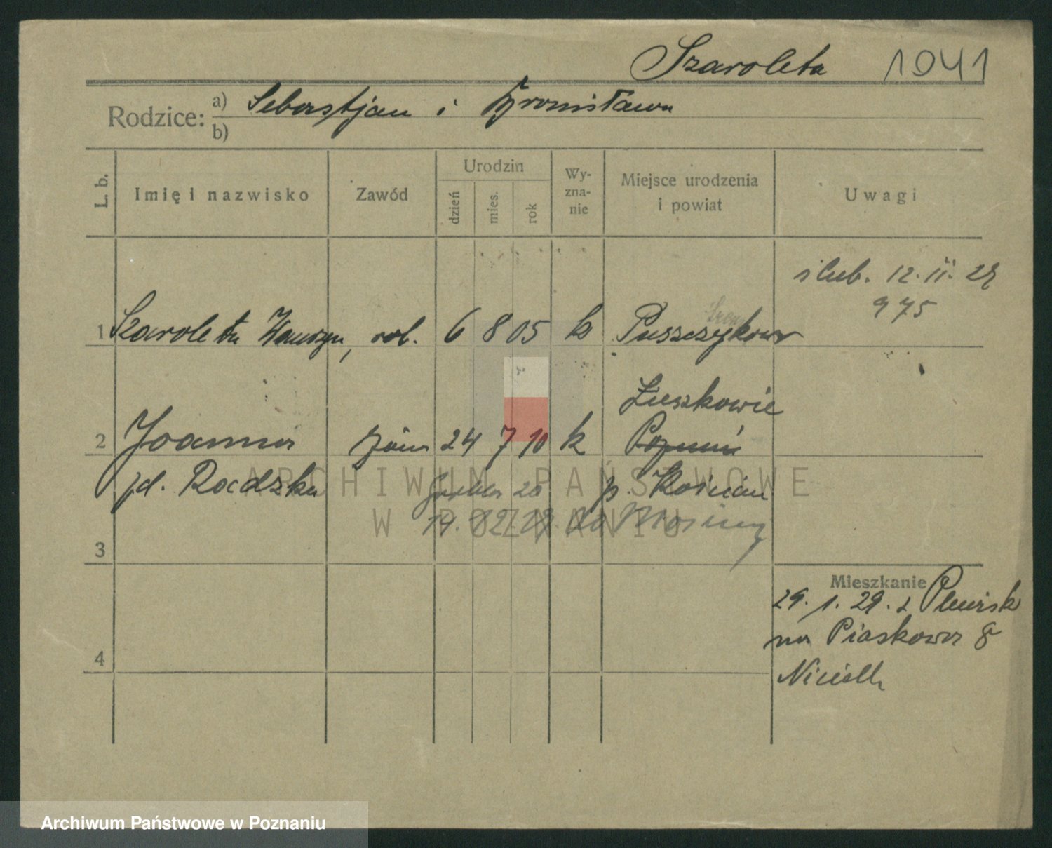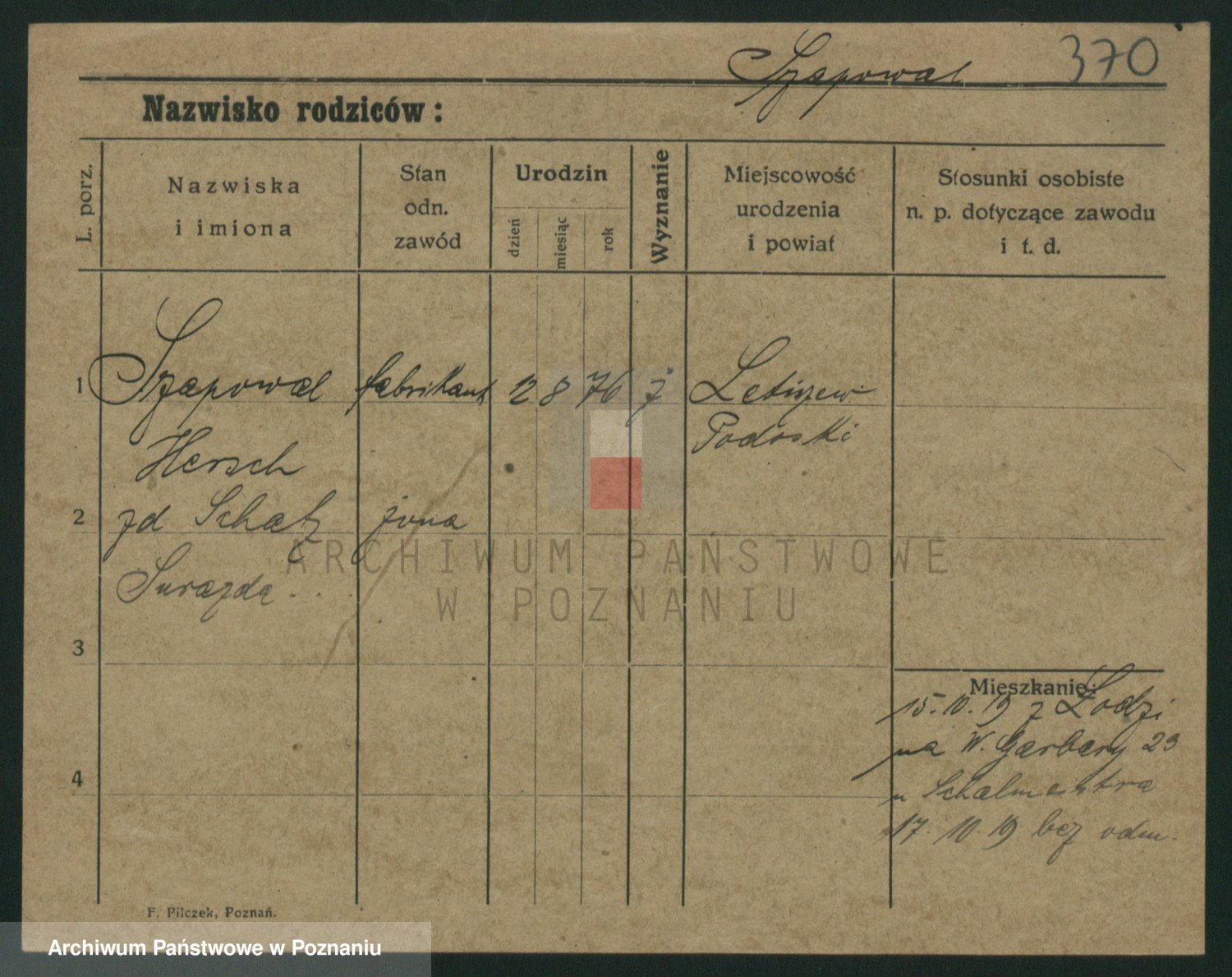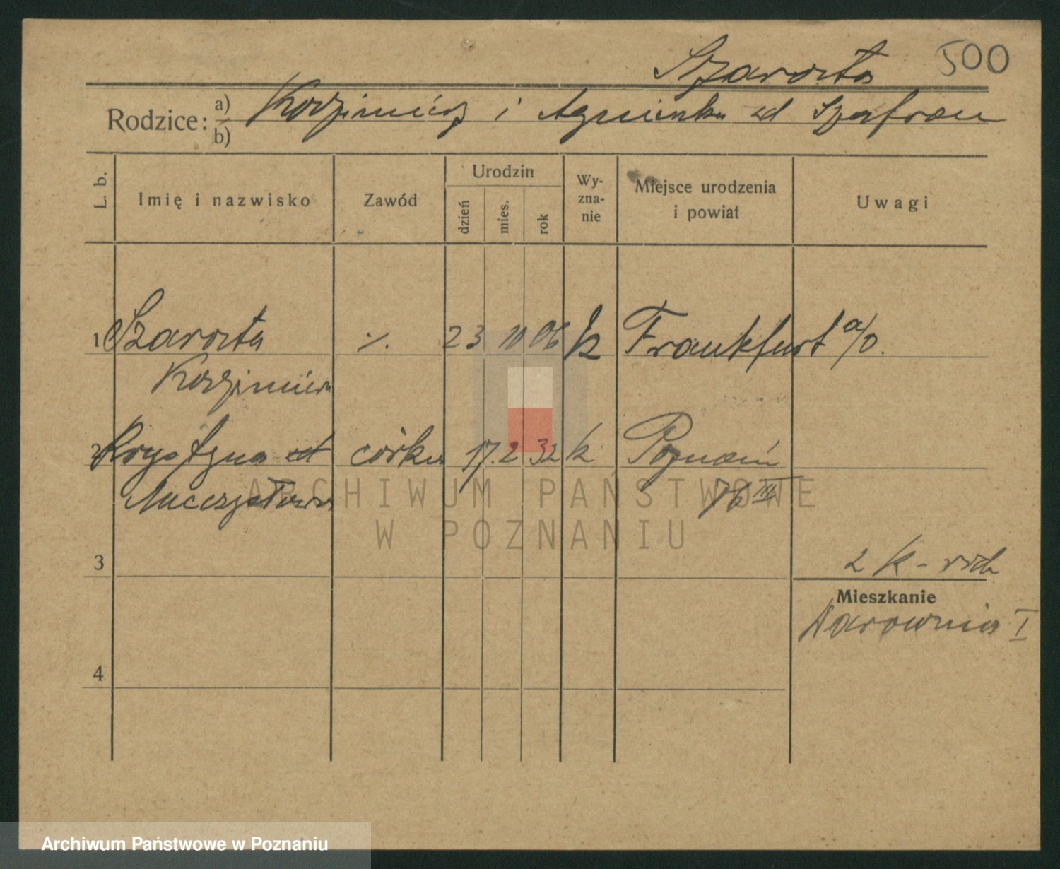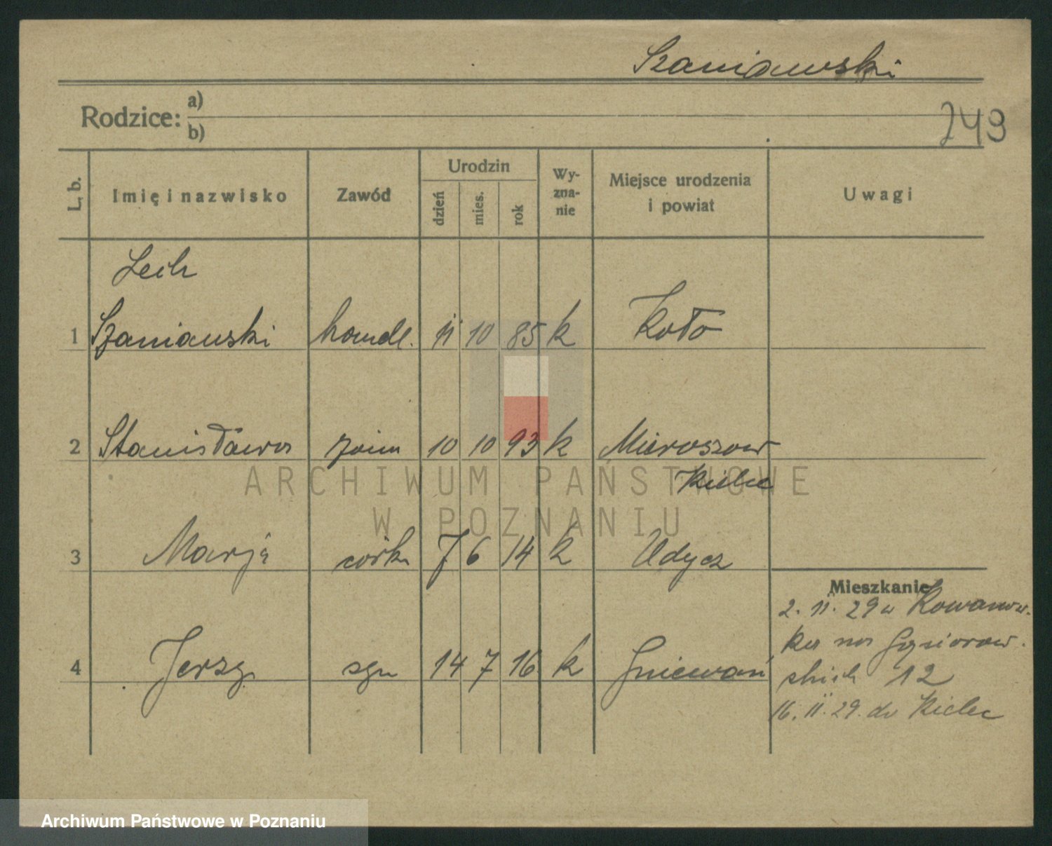 Podgląd karty osobowej dostępny jest po kliknięciu na nazwisko lub ikonkę karty. Można dokonywać powiększenia (ikony na górze) lub przechodzić między kolejnymi skanami (strzałki po bokach).