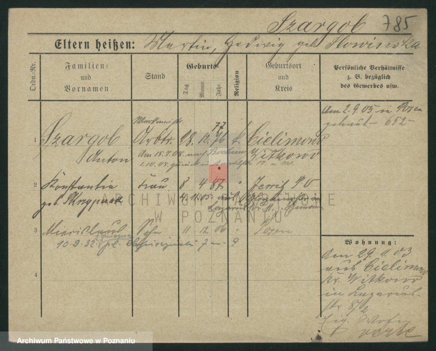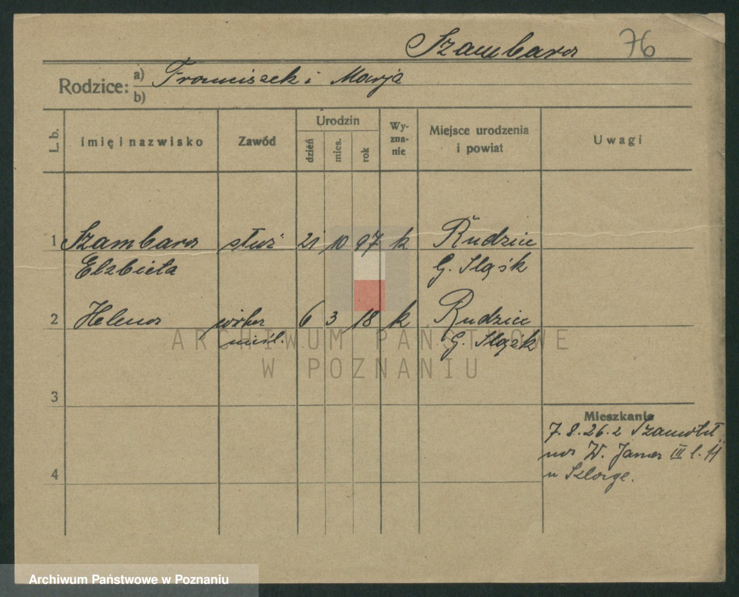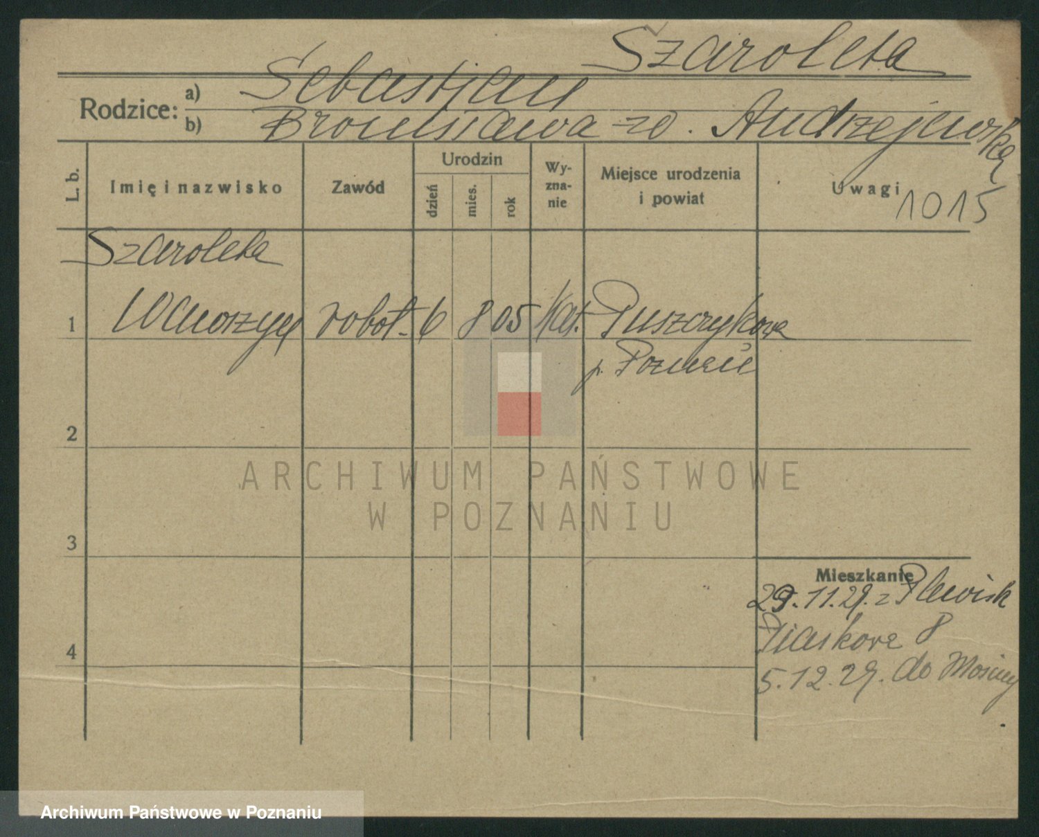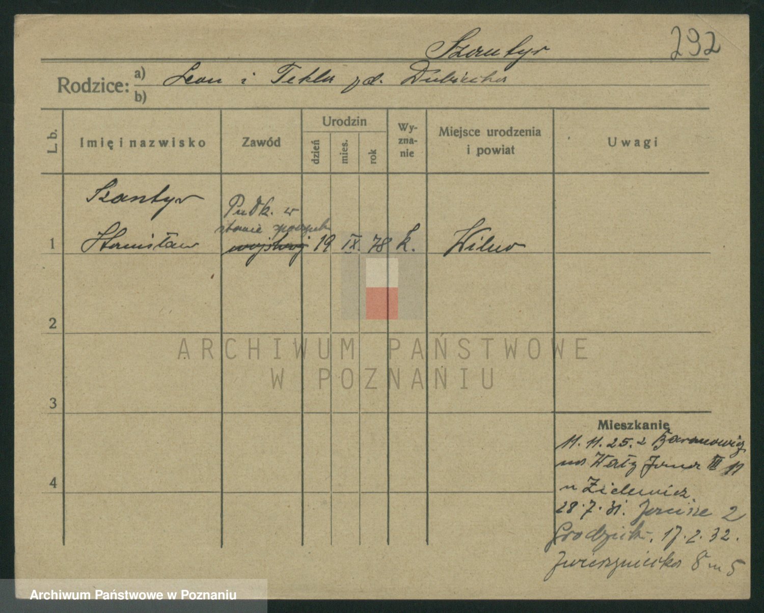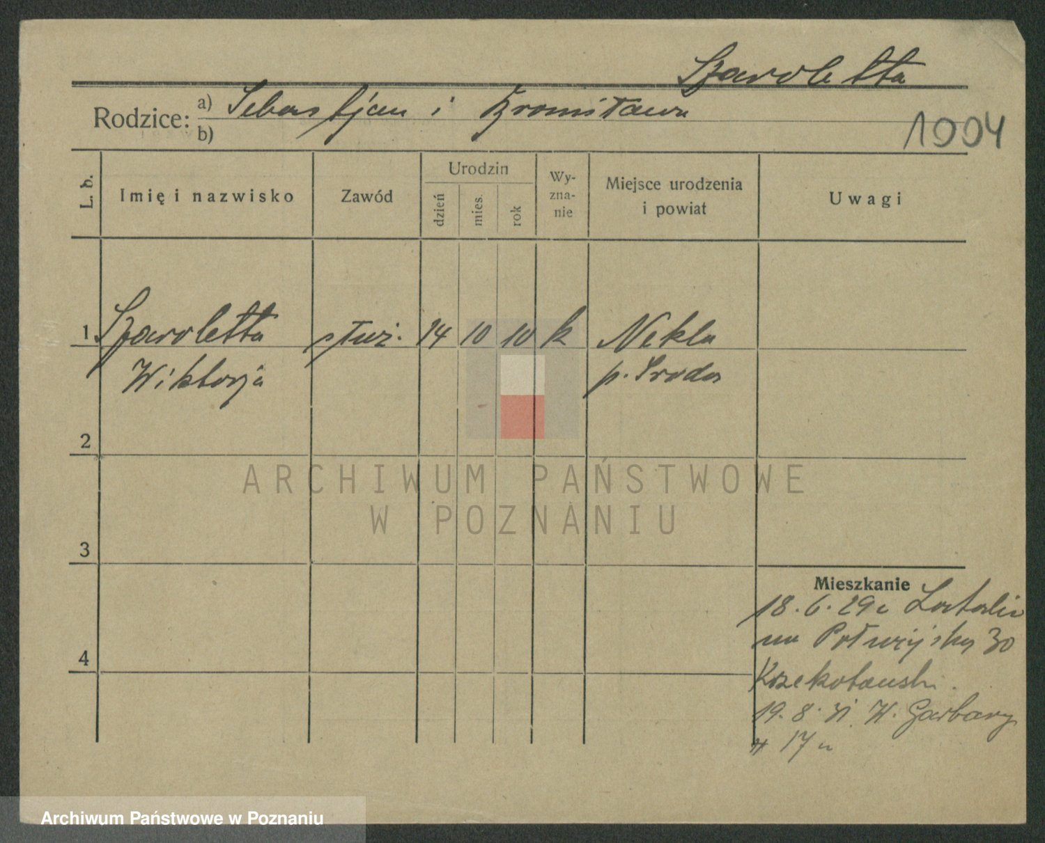 Podgląd karty osobowej dostępny jest po kliknięciu na nazwisko lub ikonkę karty. Można dokonywać powiększenia (ikony na górze) lub przechodzić między kolejnymi skanami (strzałki po bokach).