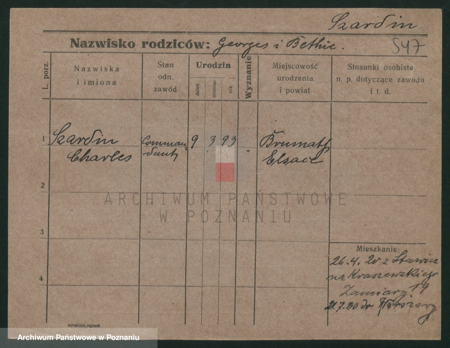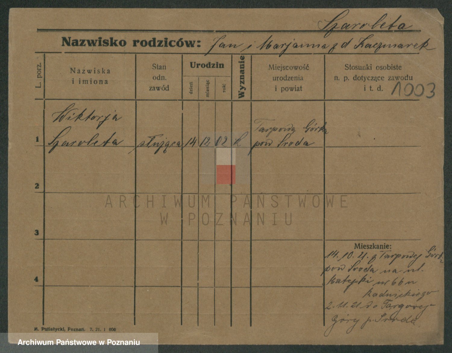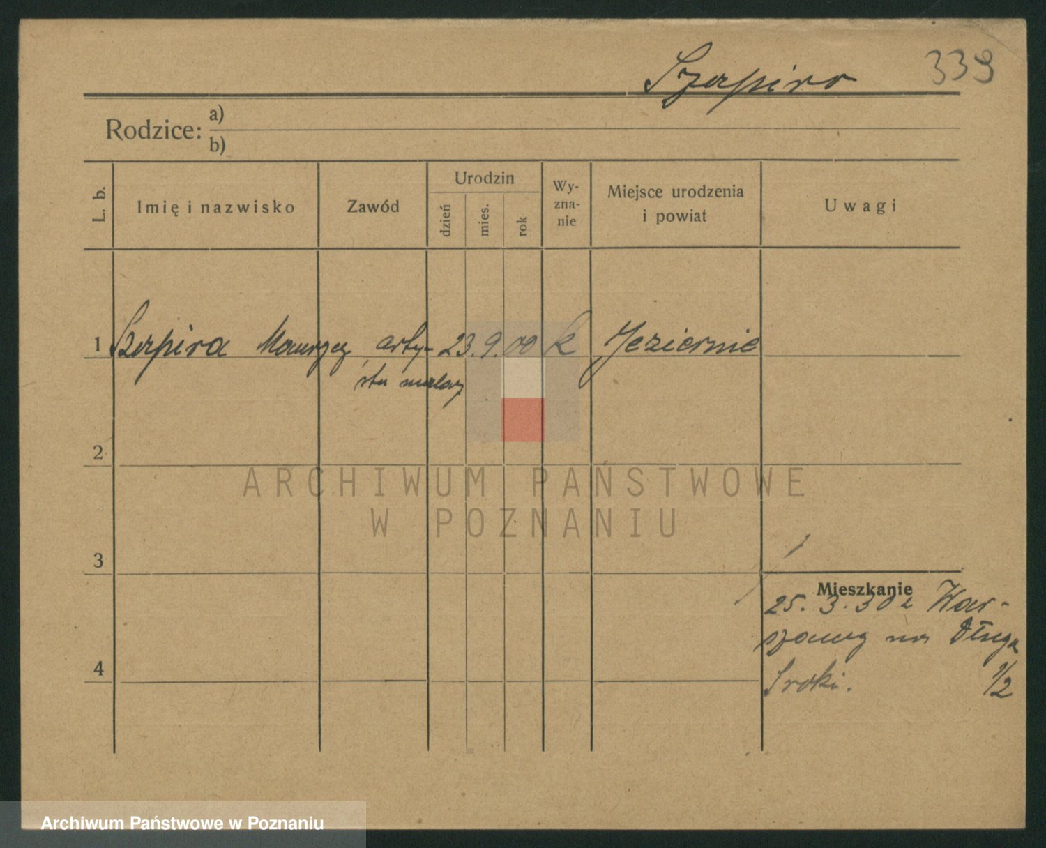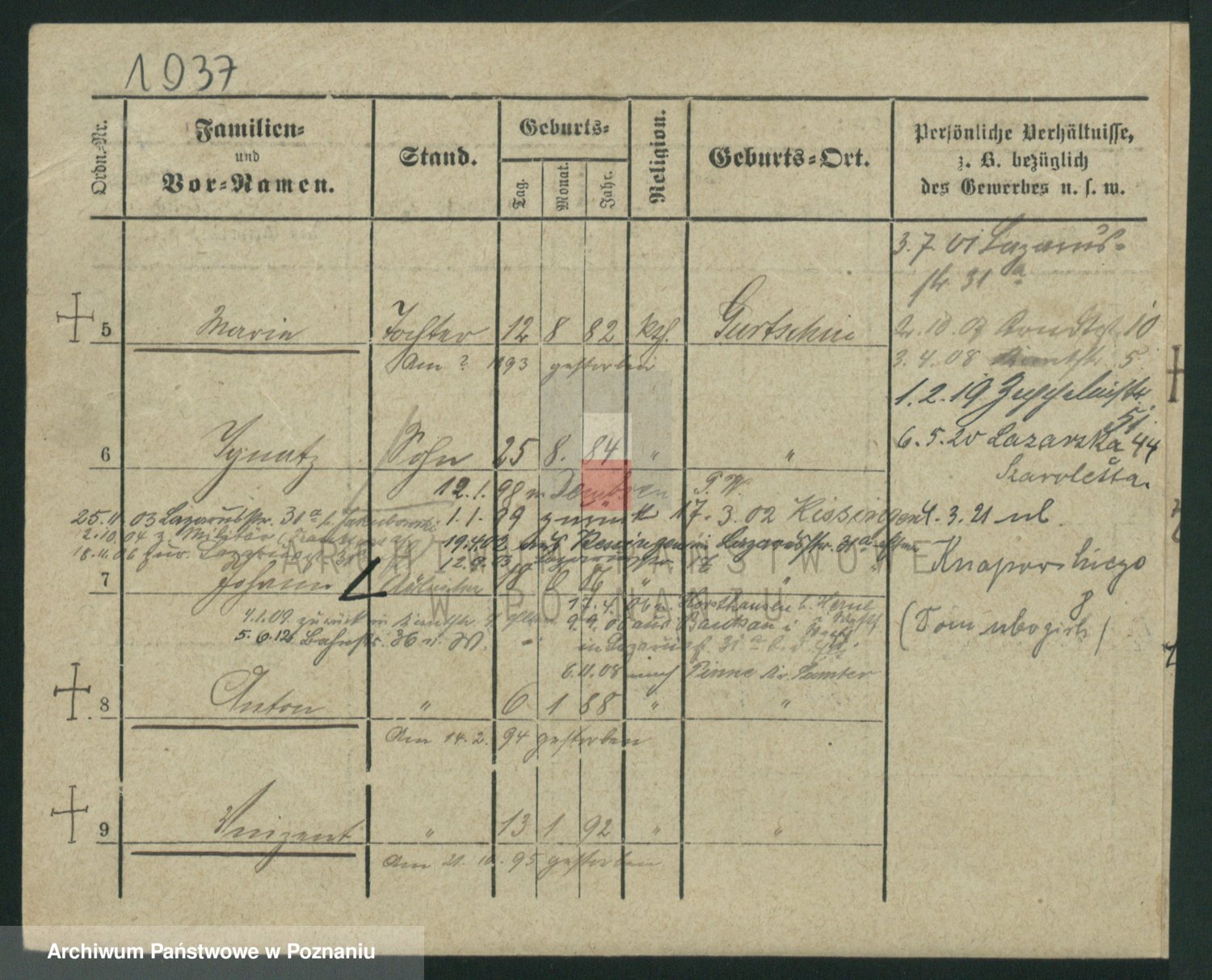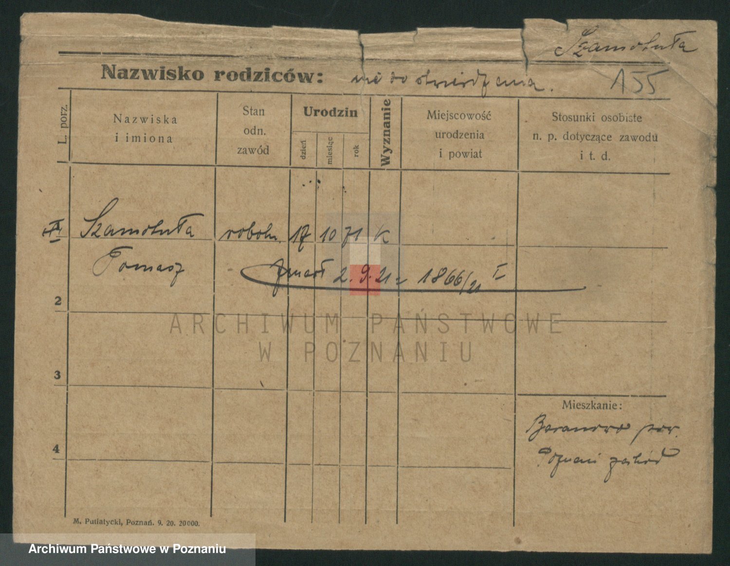 Podgląd karty osobowej dostępny jest po kliknięciu na nazwisko lub ikonkę karty. Można dokonywać powiększenia (ikony na górze) lub przechodzić między kolejnymi skanami (strzałki po bokach).