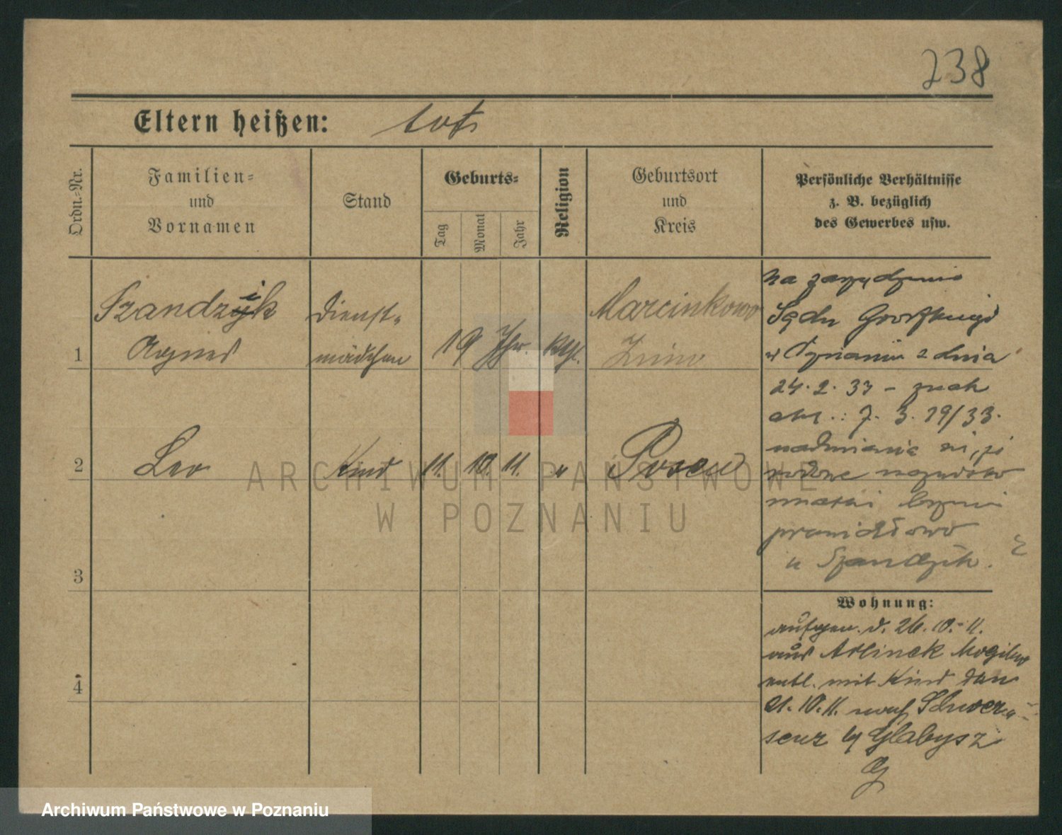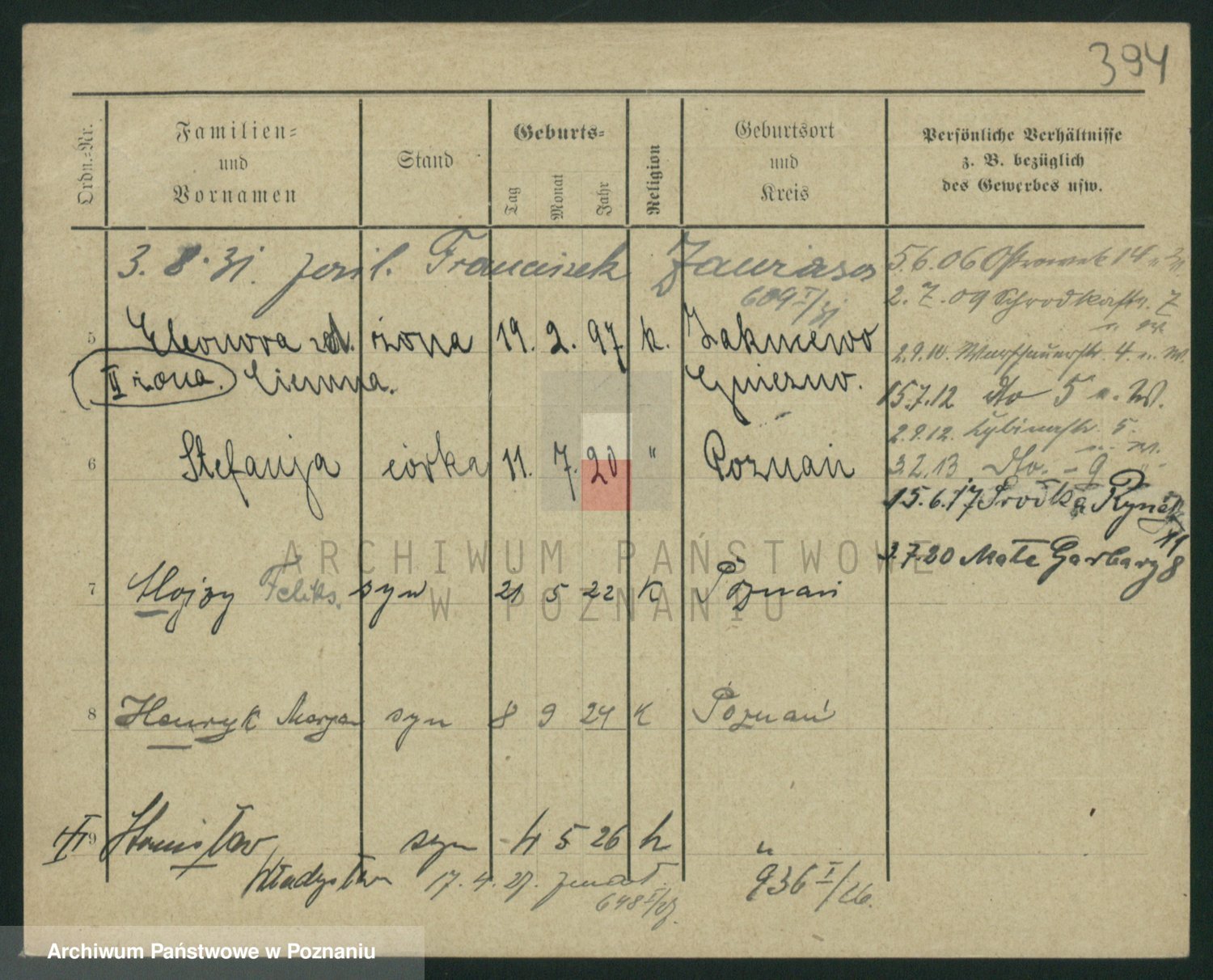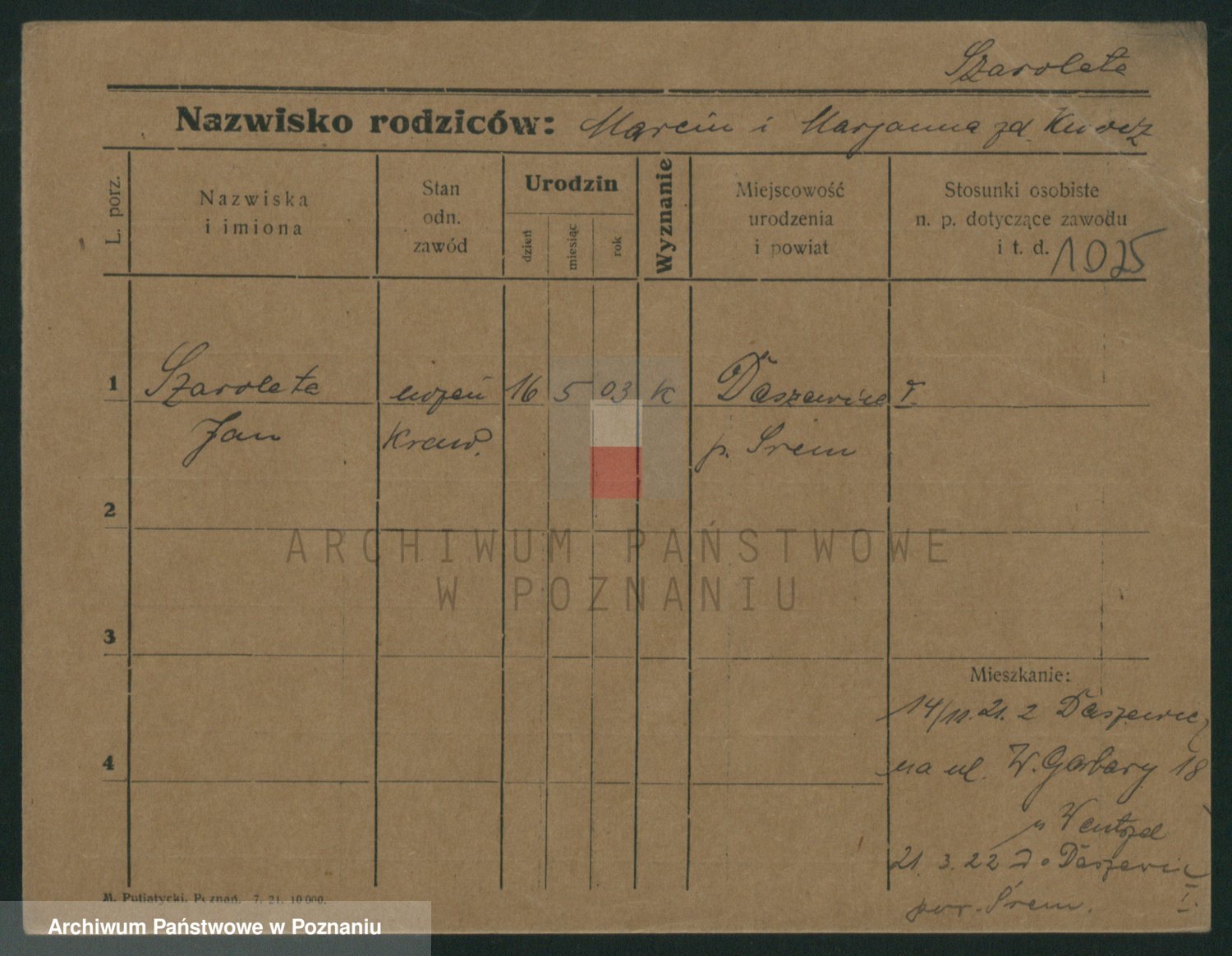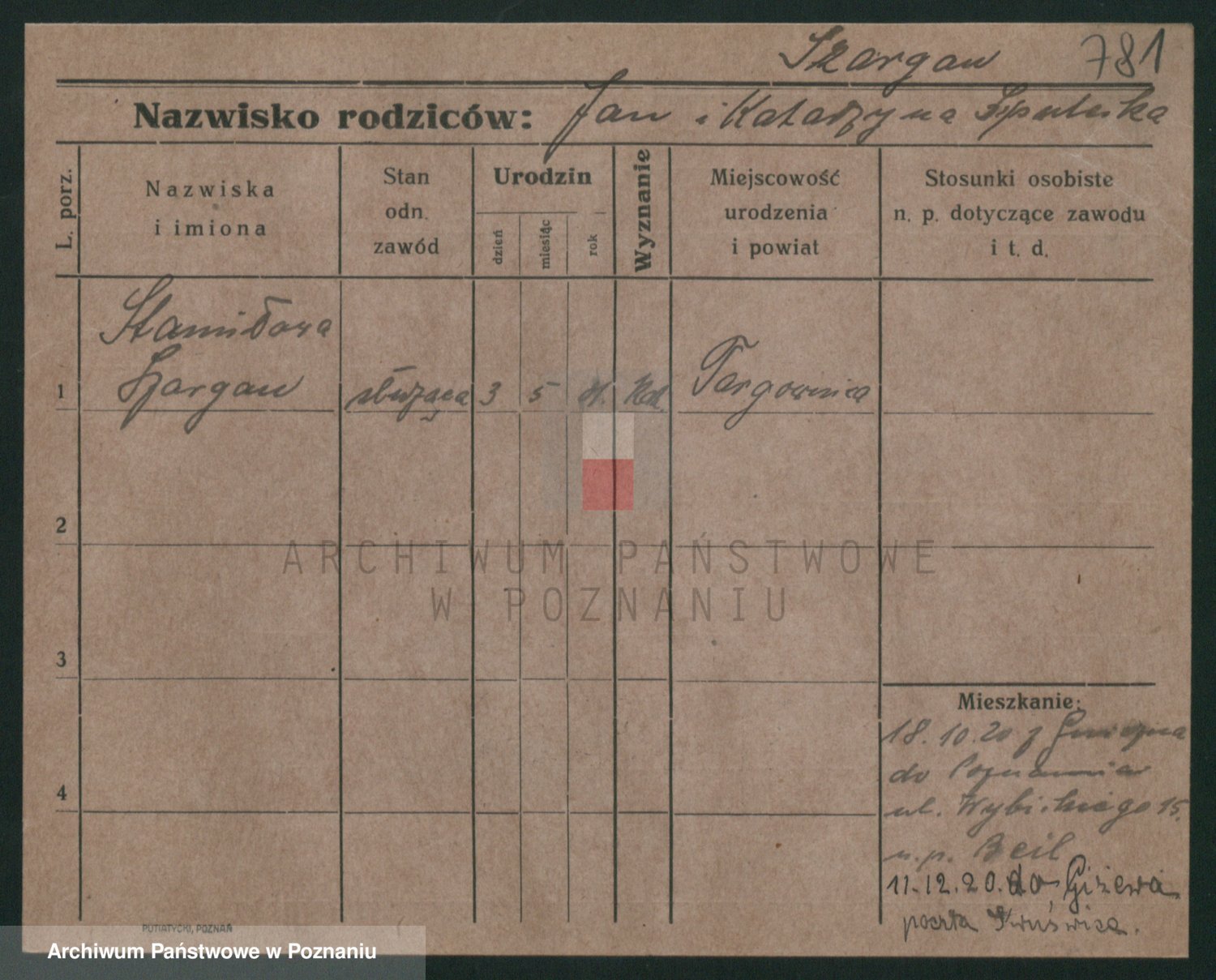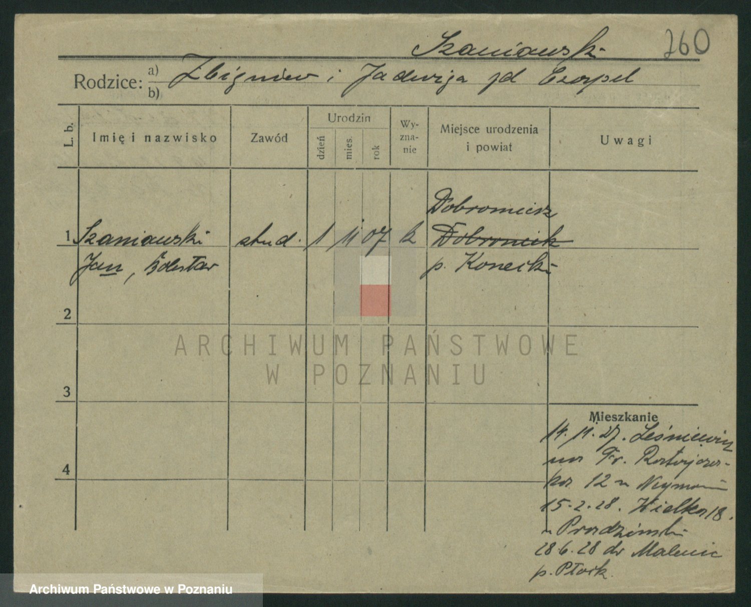 Podgląd karty osobowej dostępny jest po kliknięciu na nazwisko lub ikonkę karty. Można dokonywać powiększenia (ikony na górze) lub przechodzić między kolejnymi skanami (strzałki po bokach).