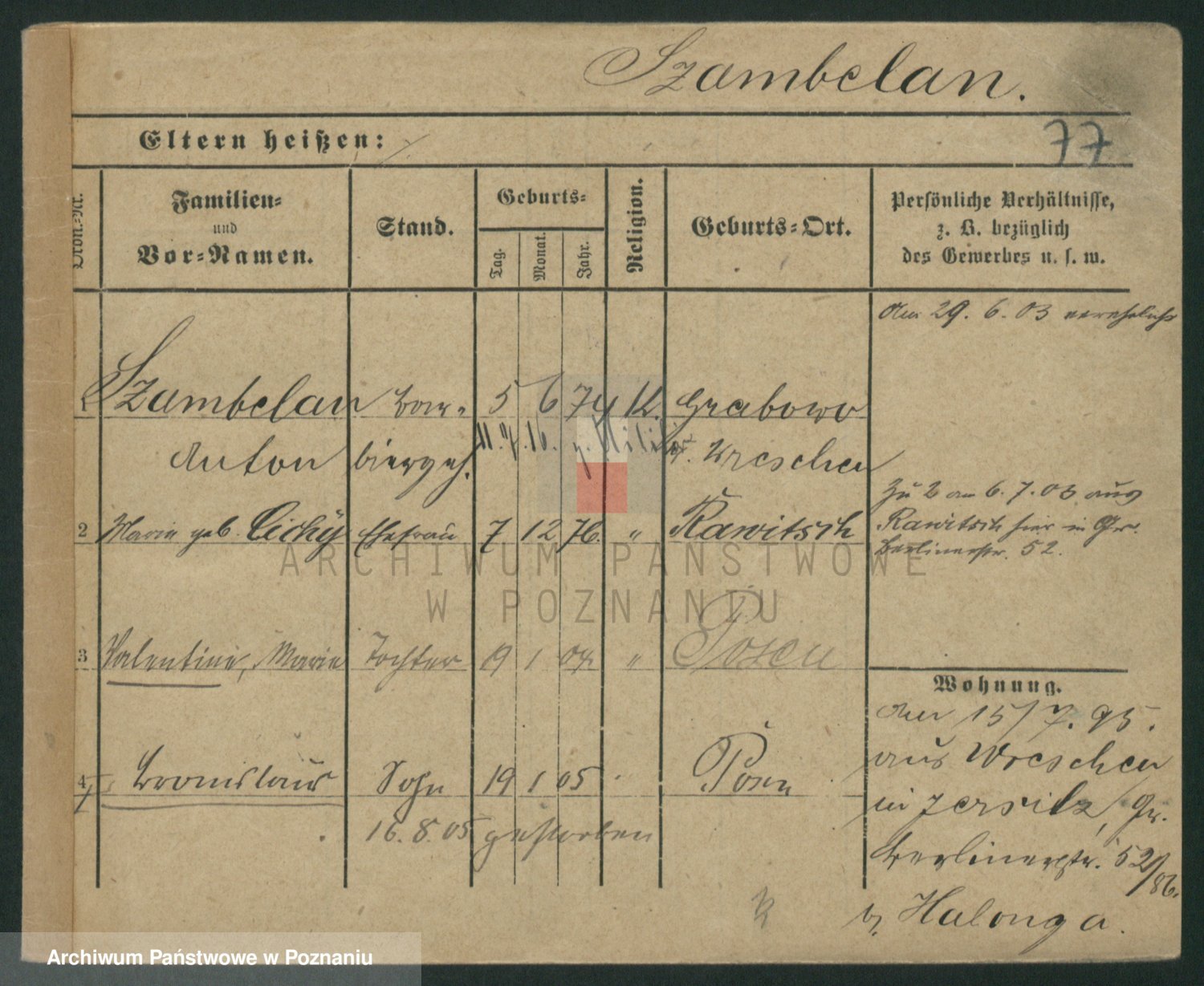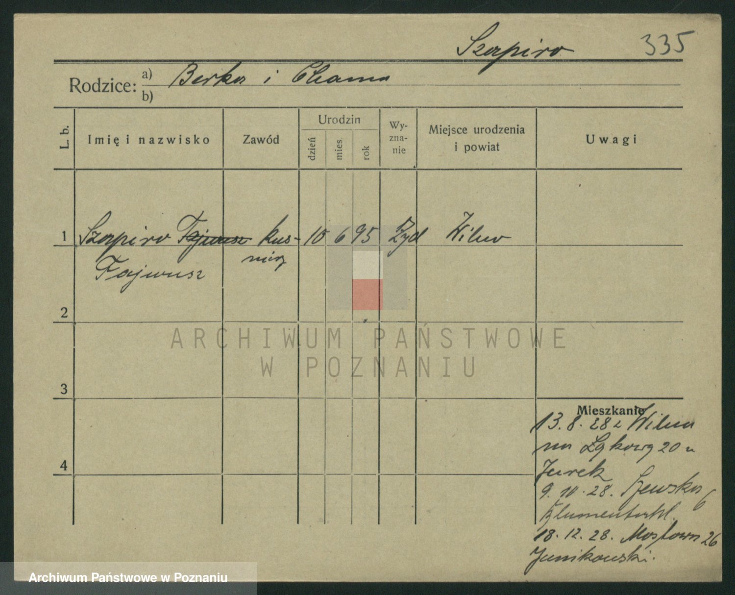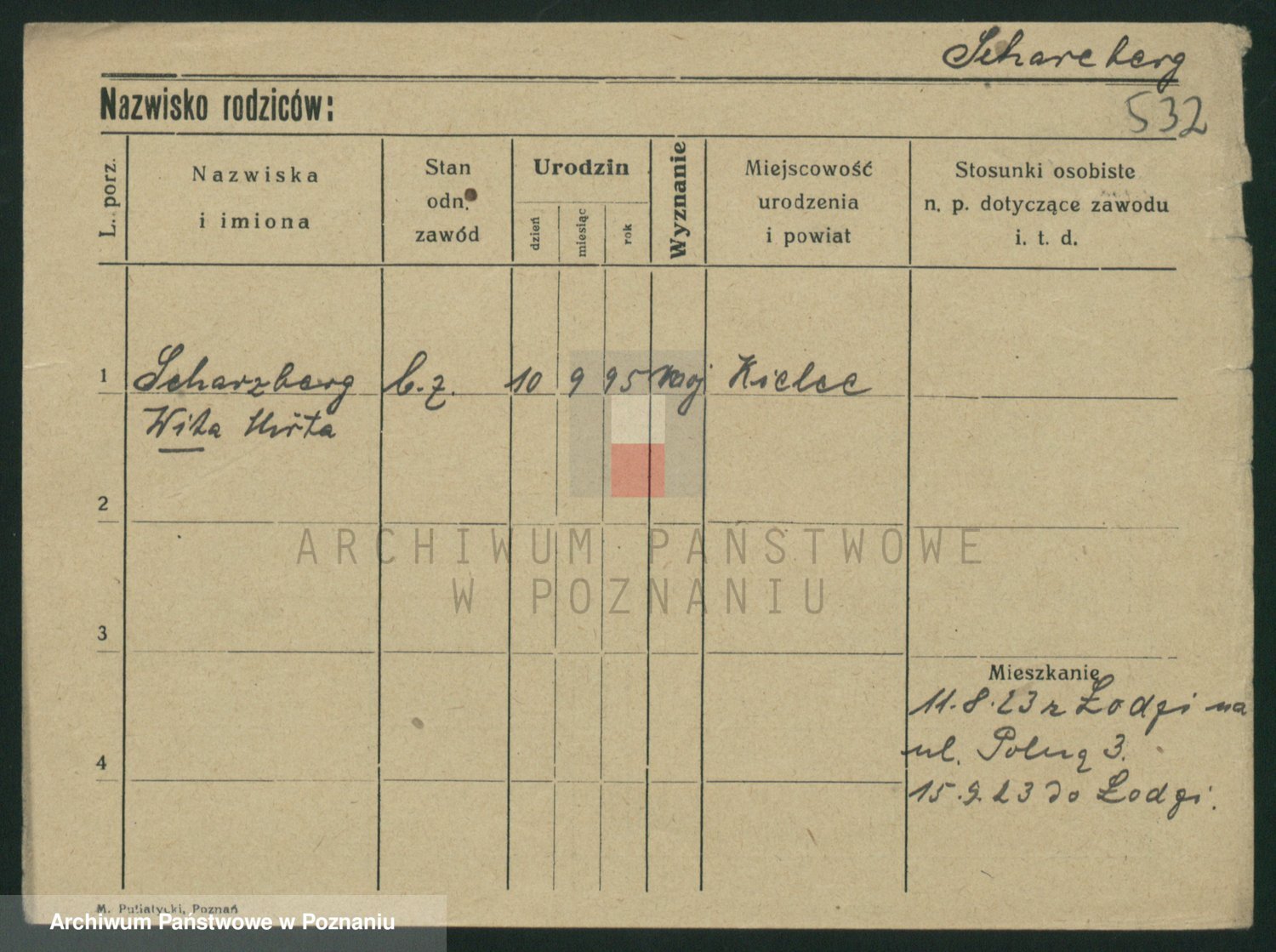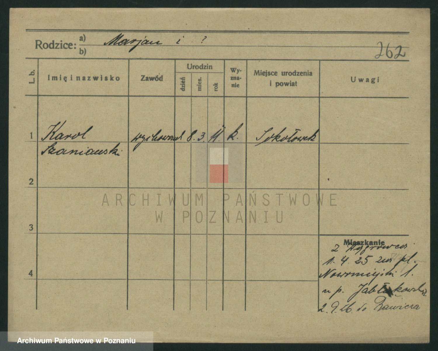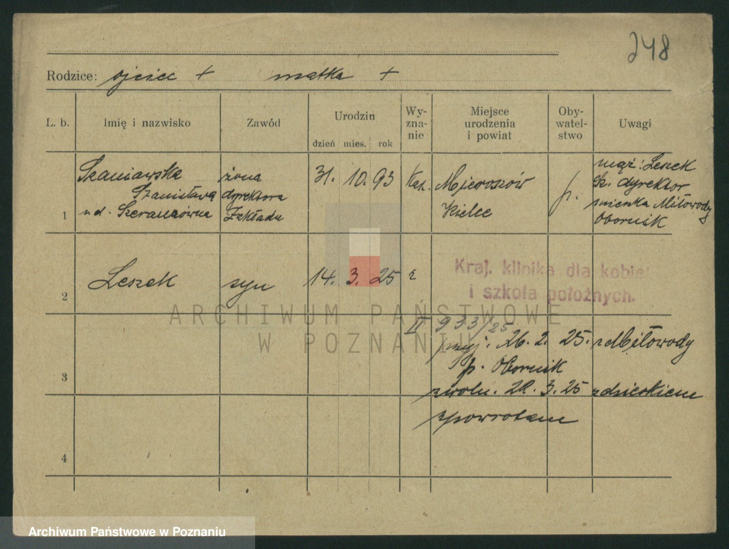 Podgląd karty osobowej dostępny jest po kliknięciu na nazwisko lub ikonkę karty. Można dokonywać powiększenia (ikony na górze) lub przechodzić między kolejnymi skanami (strzałki po bokach).