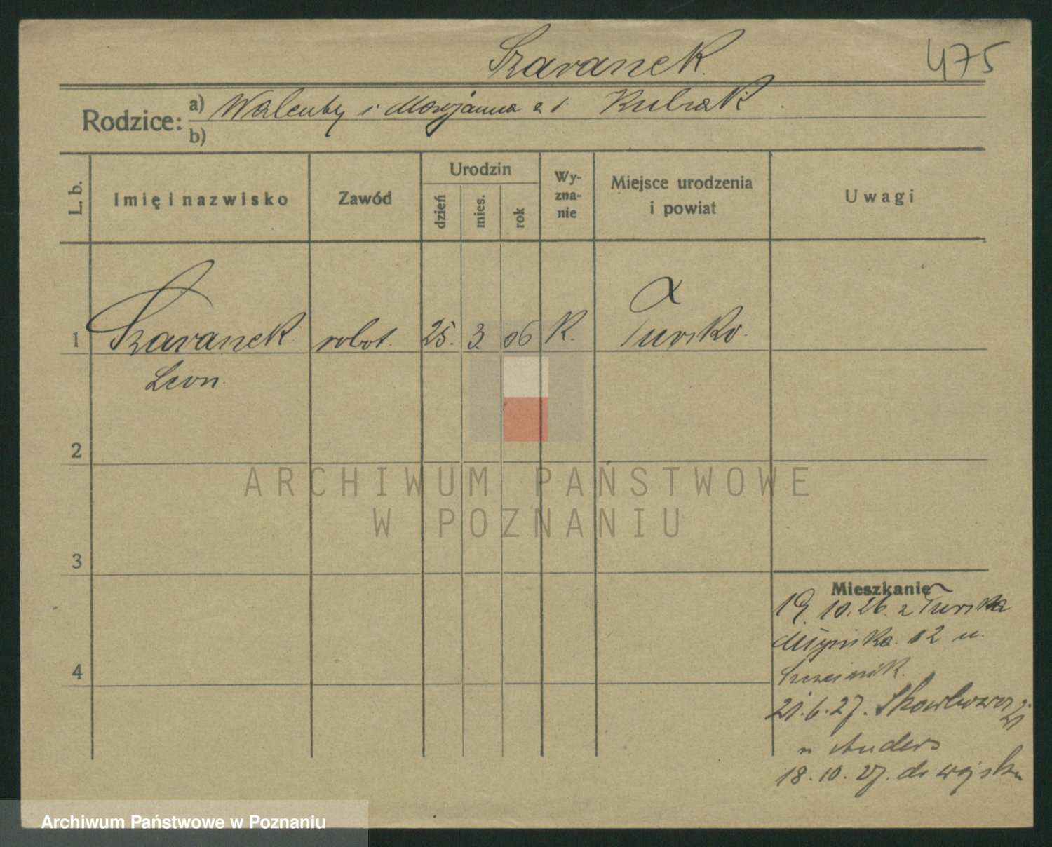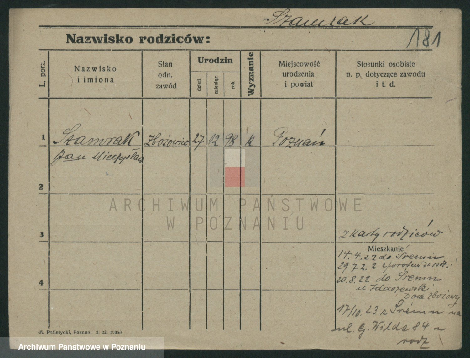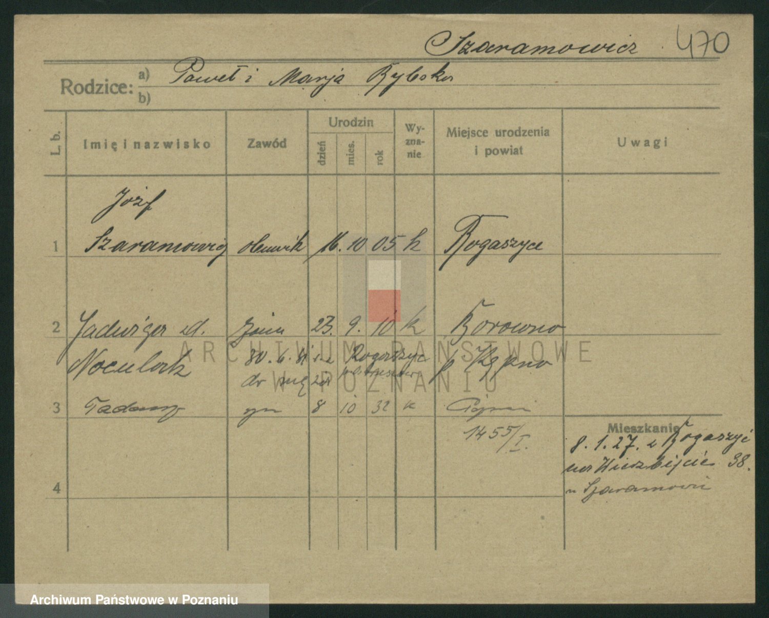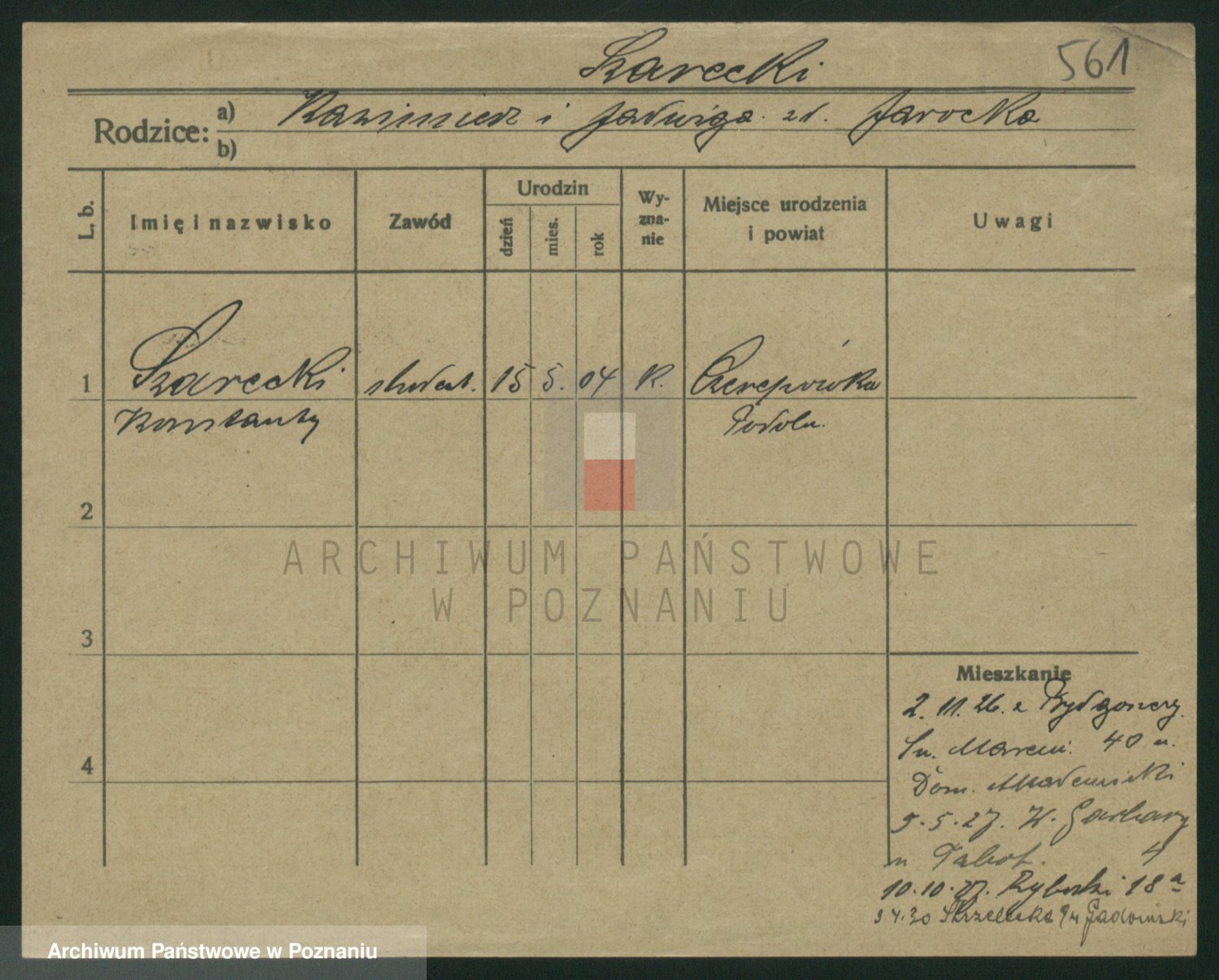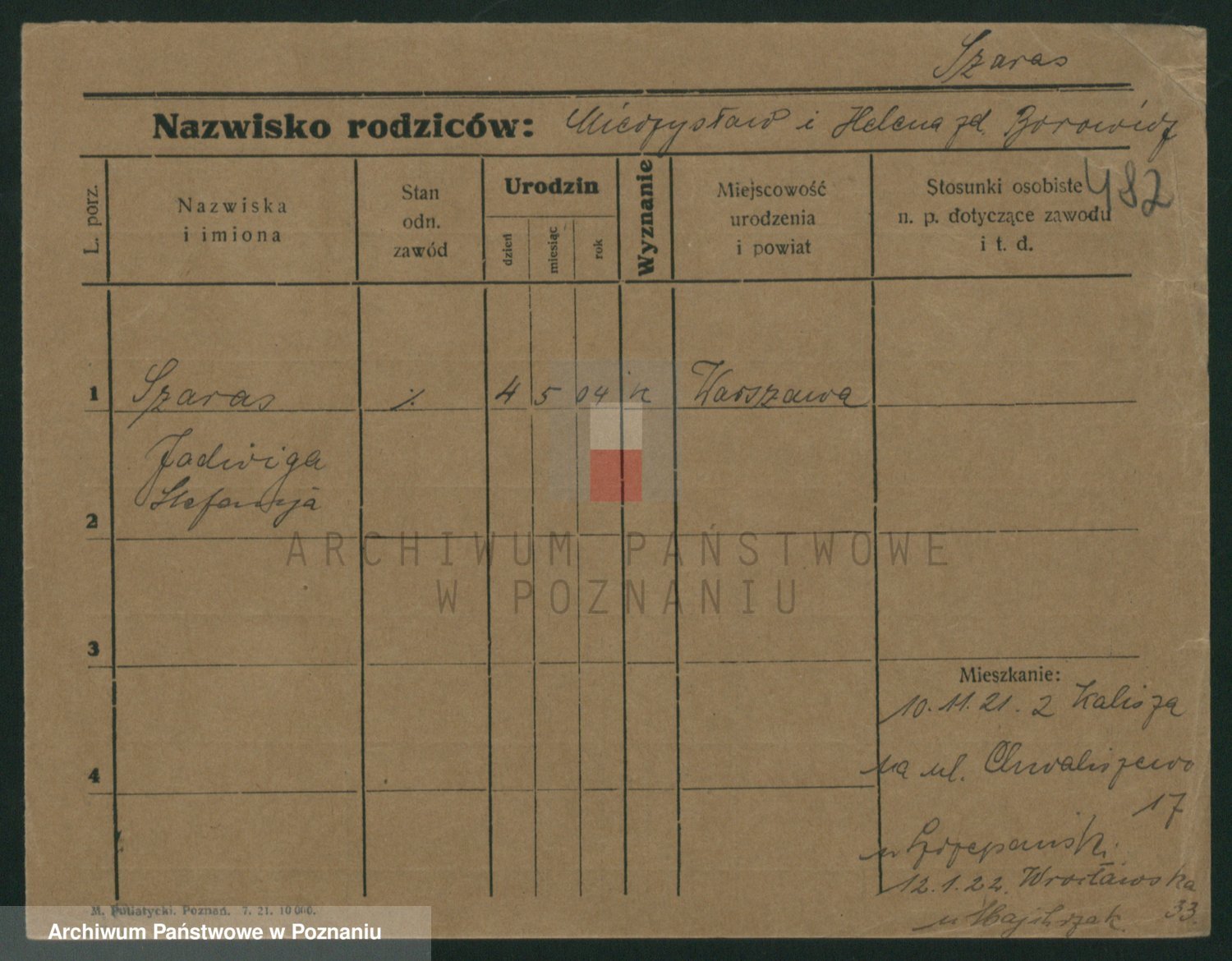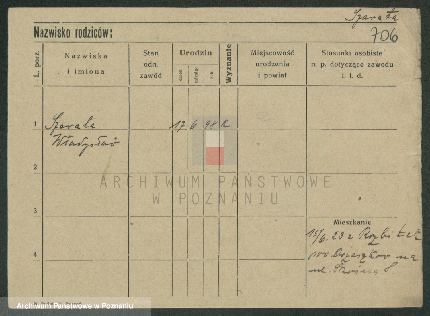 Podgląd karty osobowej dostępny jest po kliknięciu na nazwisko lub ikonkę karty. Można dokonywać powiększenia (ikony na górze) lub przechodzić między kolejnymi skanami (strzałki po bokach).