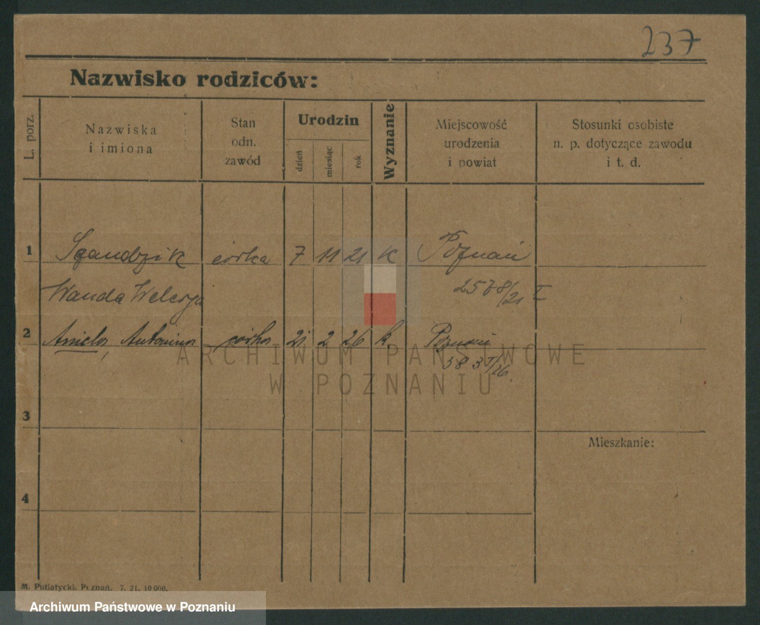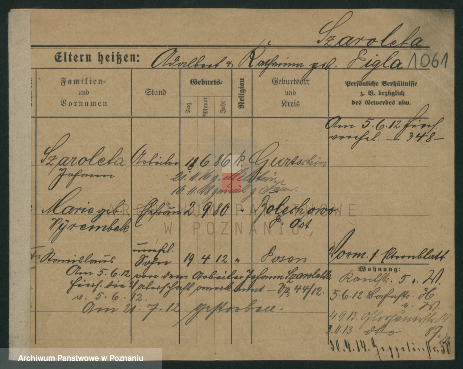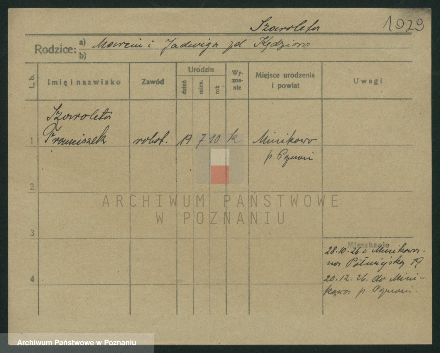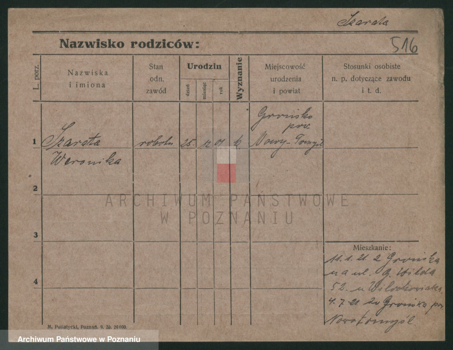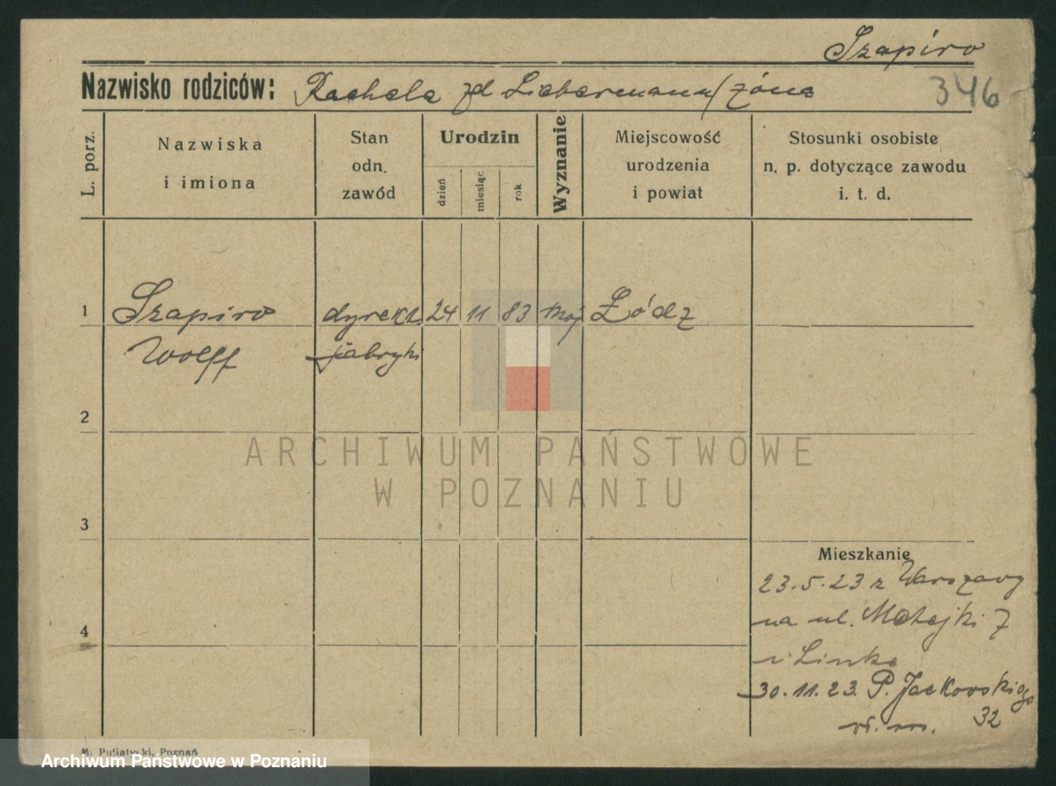 Podgląd karty osobowej dostępny jest po kliknięciu na nazwisko lub ikonkę karty. Można dokonywać powiększenia (ikony na górze) lub przechodzić między kolejnymi skanami (strzałki po bokach).