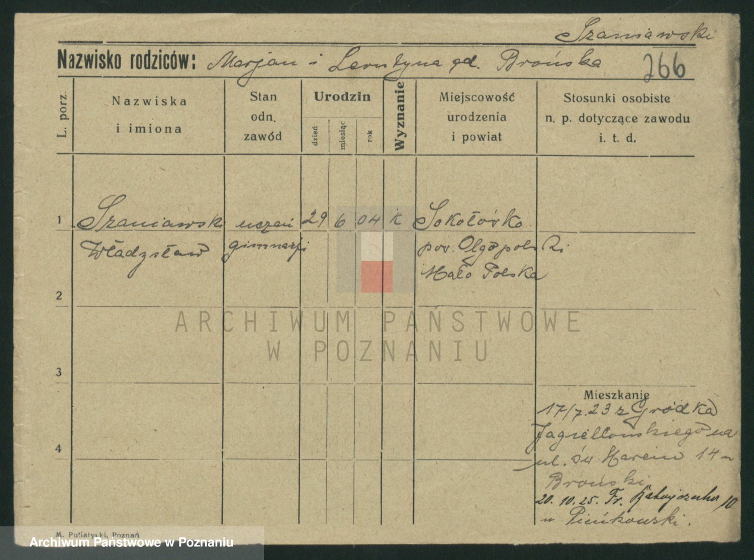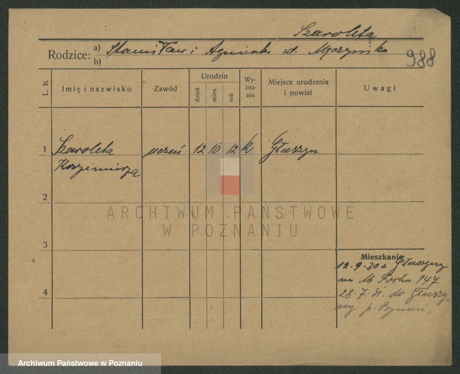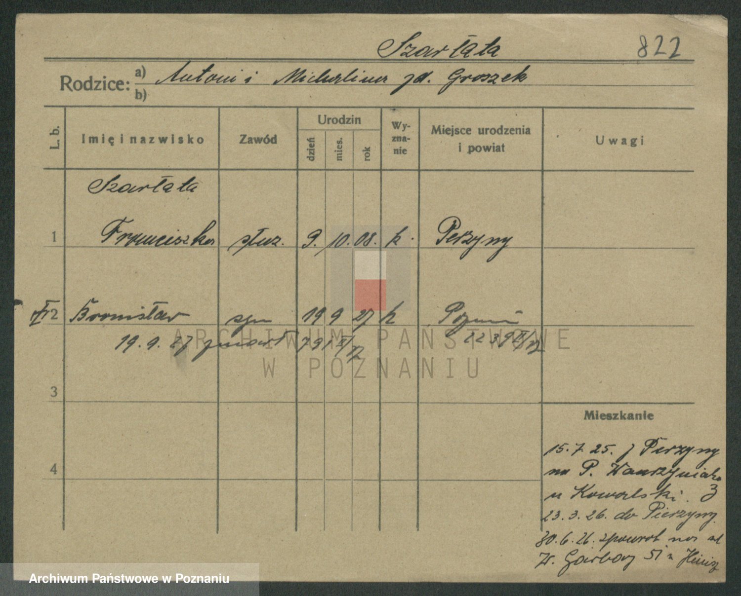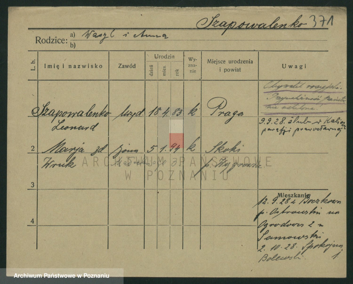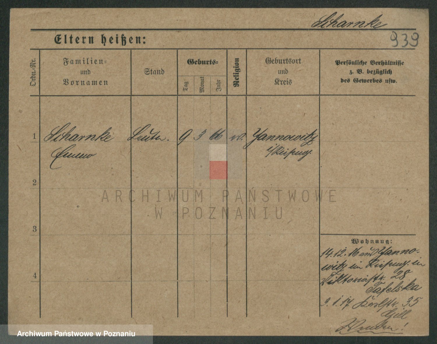 Podgląd karty osobowej dostępny jest po kliknięciu na nazwisko lub ikonkę karty. Można dokonywać powiększenia (ikony na górze) lub przechodzić między kolejnymi skanami (strzałki po bokach).
