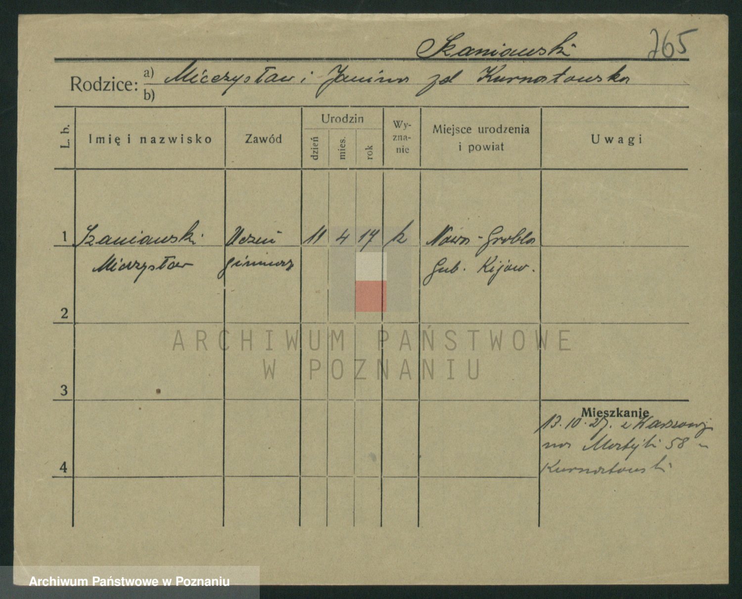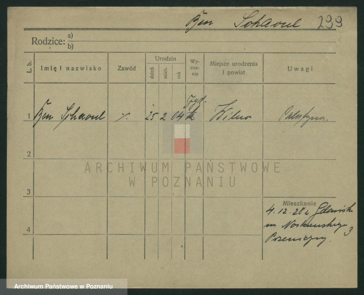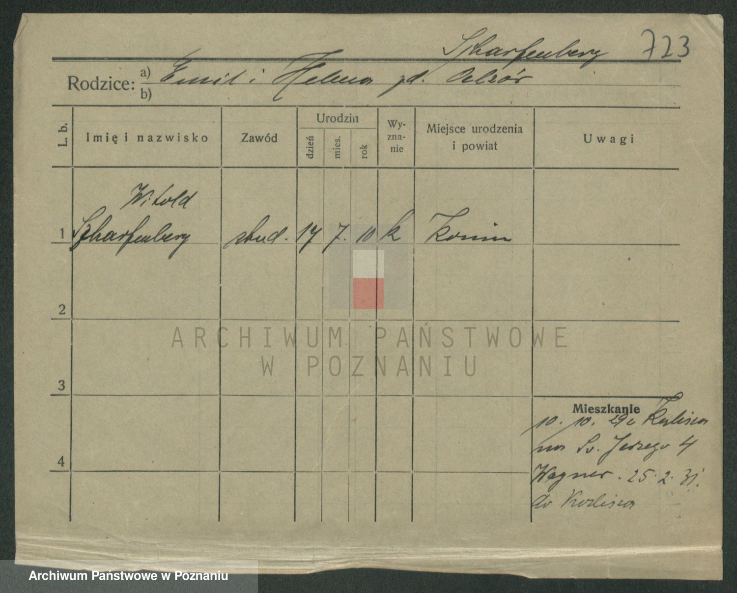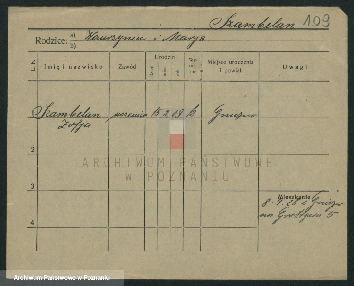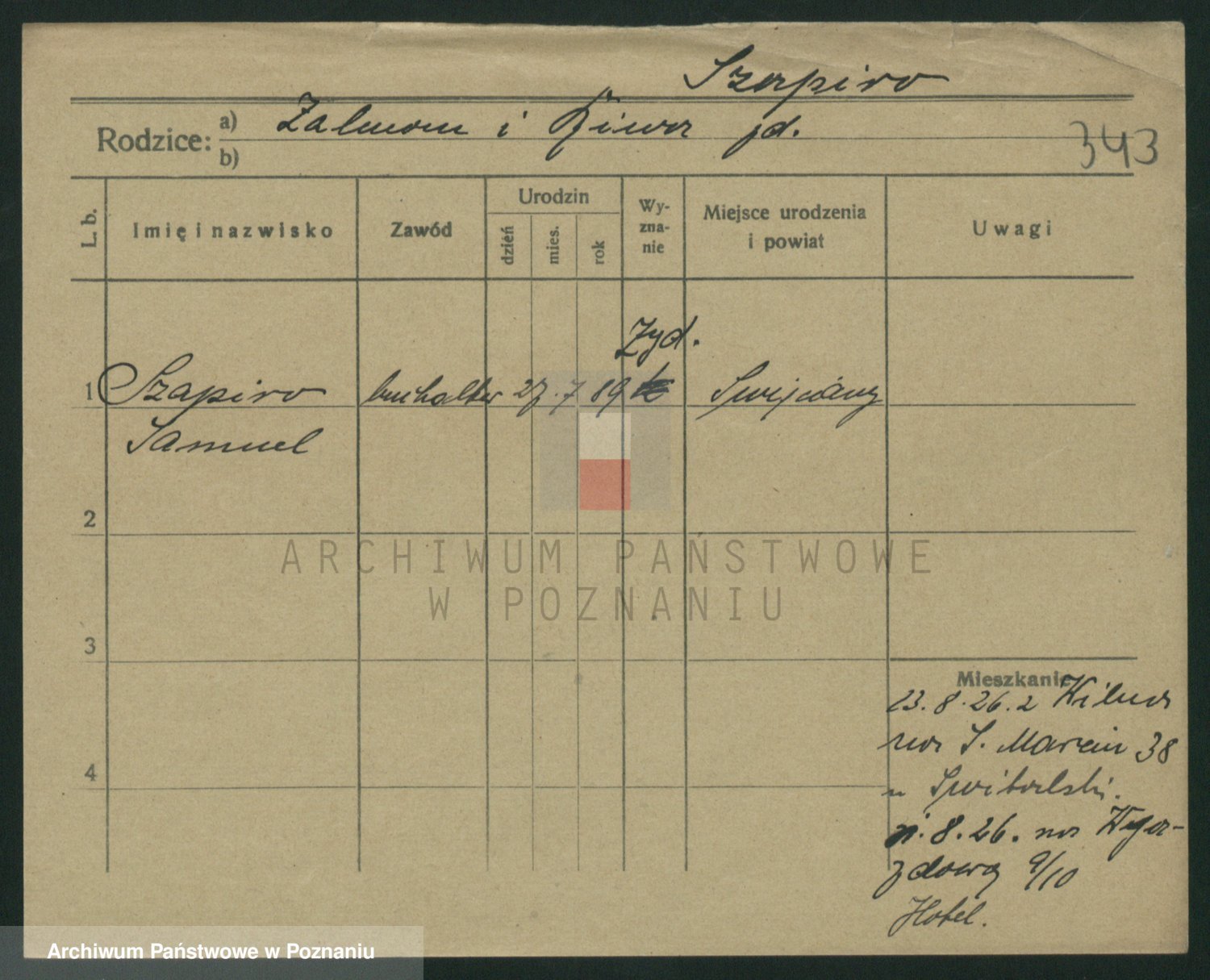 Podgląd karty osobowej dostępny jest po kliknięciu na nazwisko lub ikonkę karty. Można dokonywać powiększenia (ikony na górze) lub przechodzić między kolejnymi skanami (strzałki po bokach).