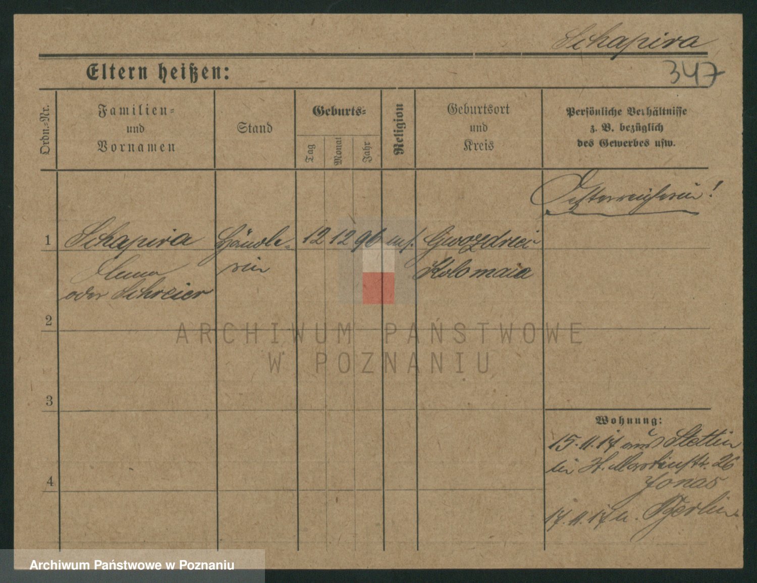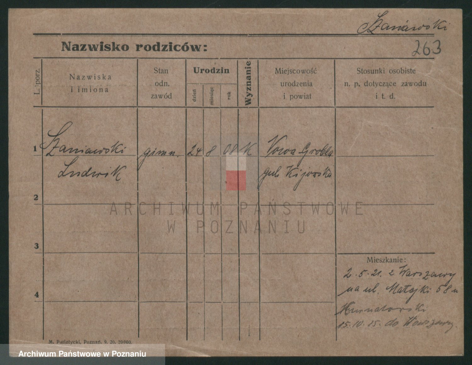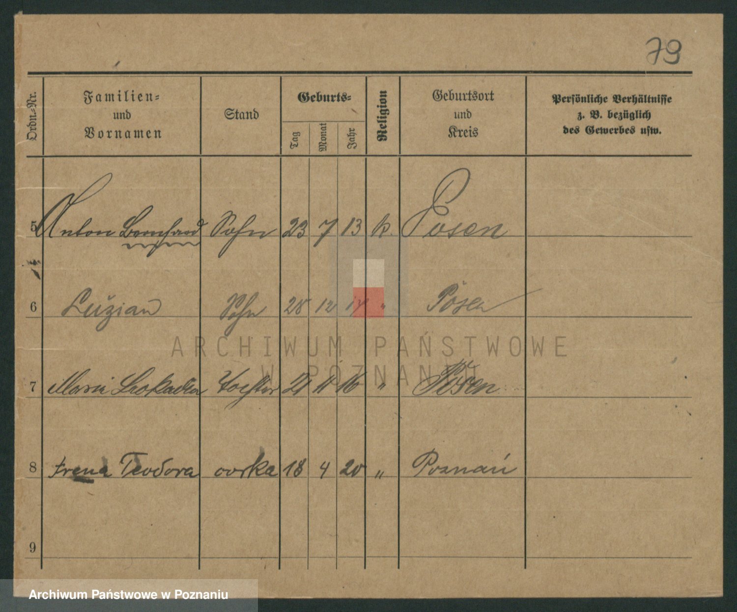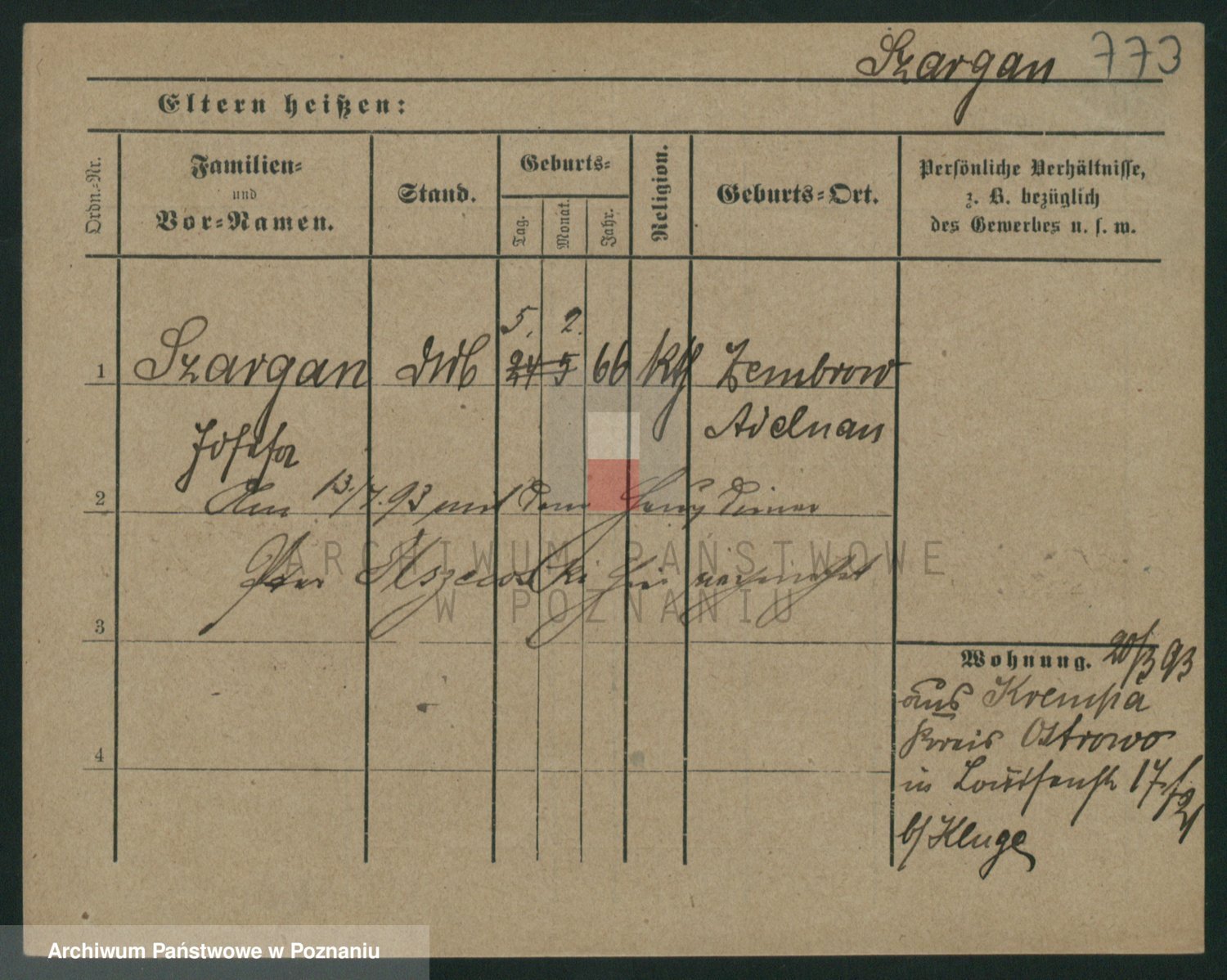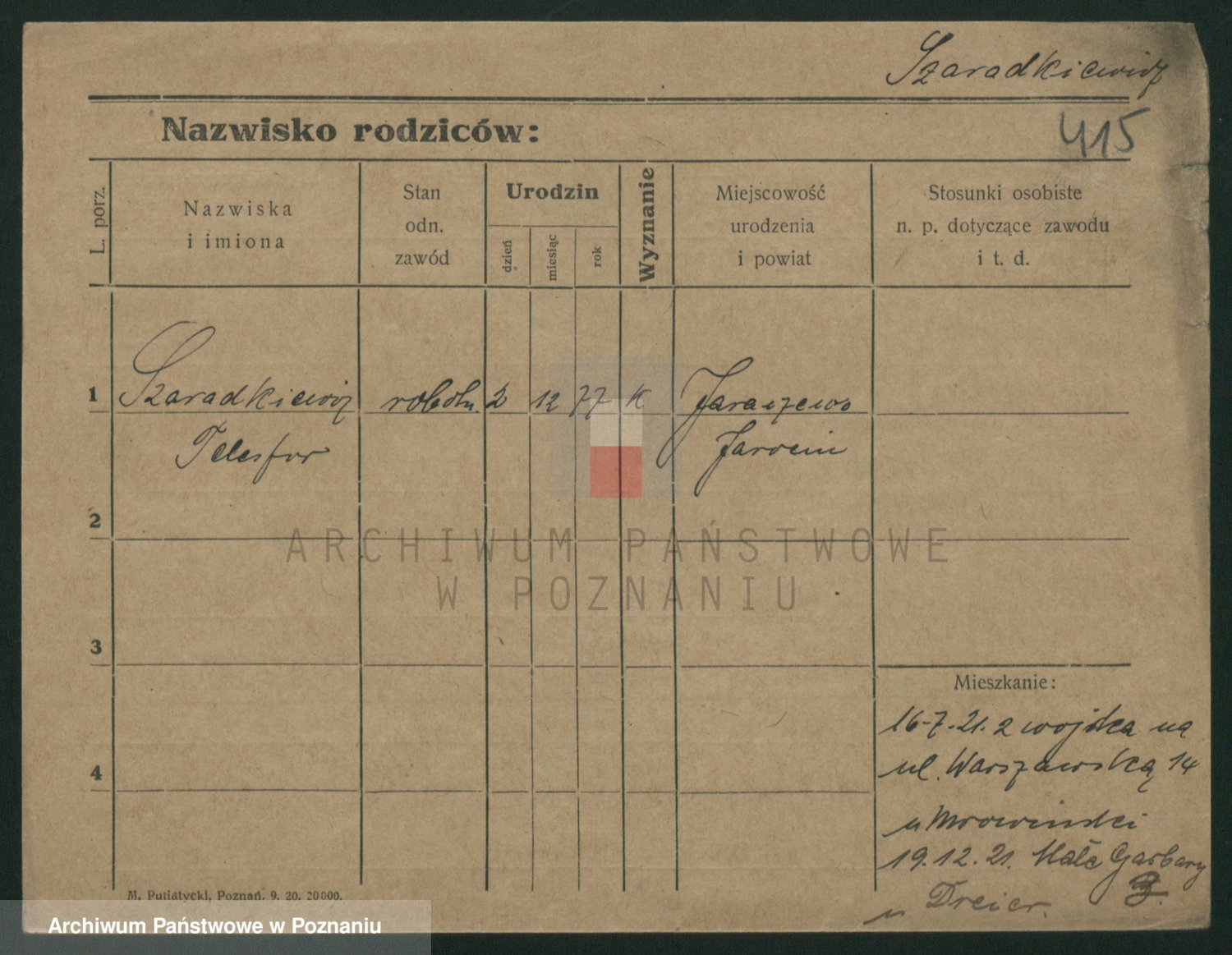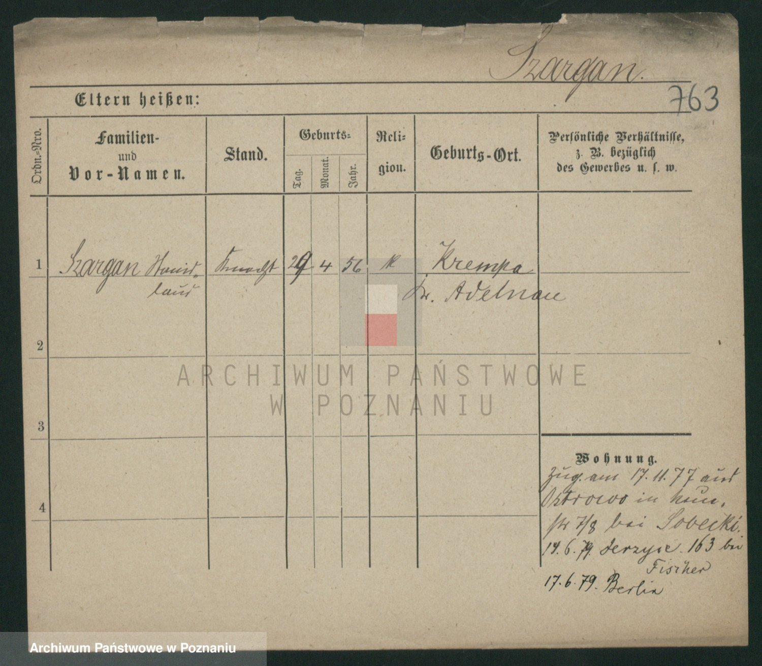 Podgląd karty osobowej dostępny jest po kliknięciu na nazwisko lub ikonkę karty. Można dokonywać powiększenia (ikony na górze) lub przechodzić między kolejnymi skanami (strzałki po bokach).