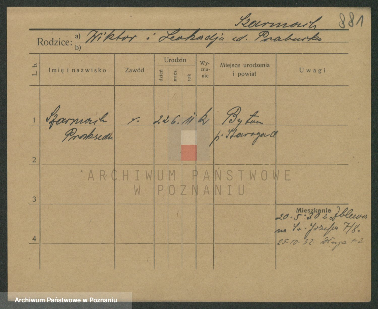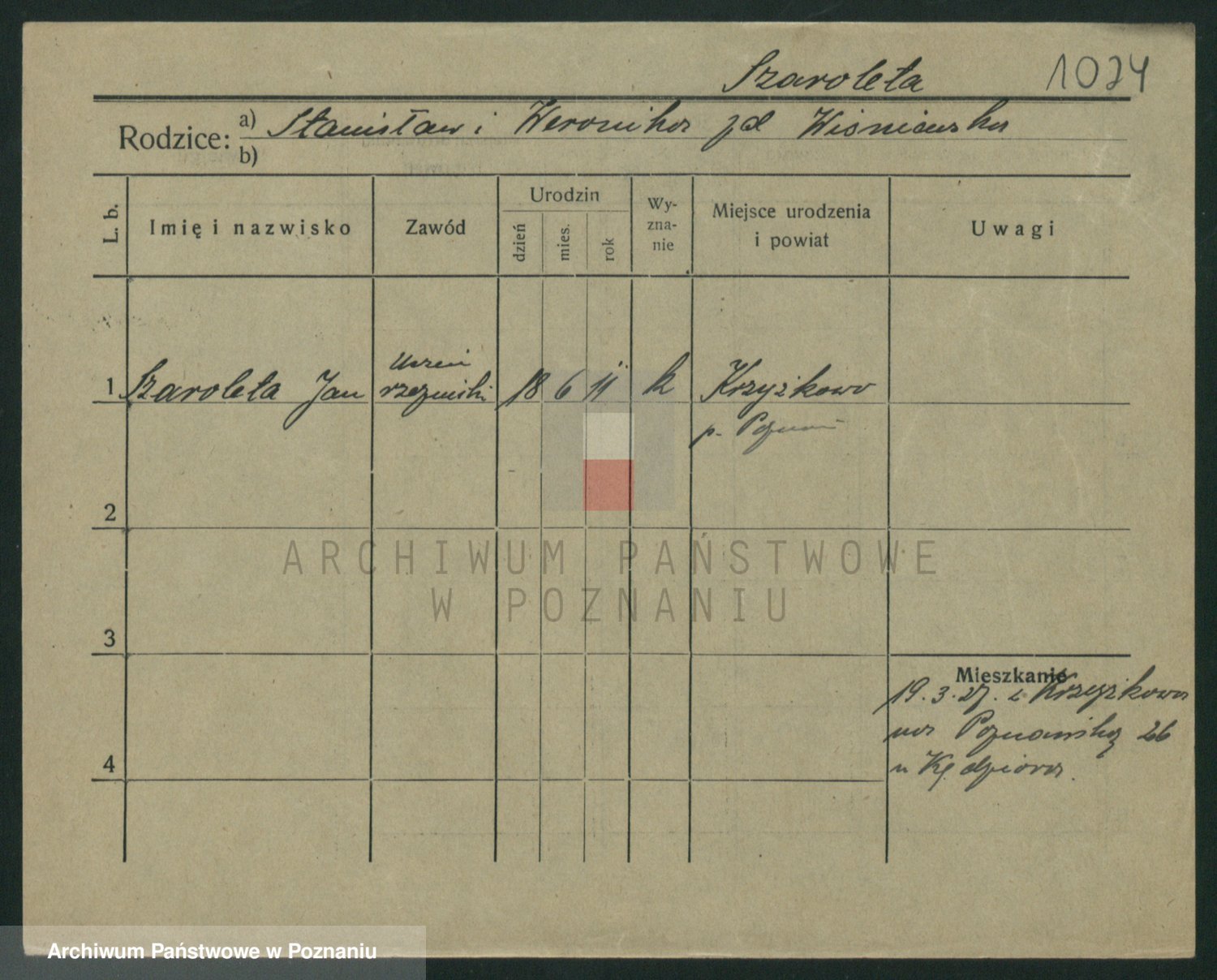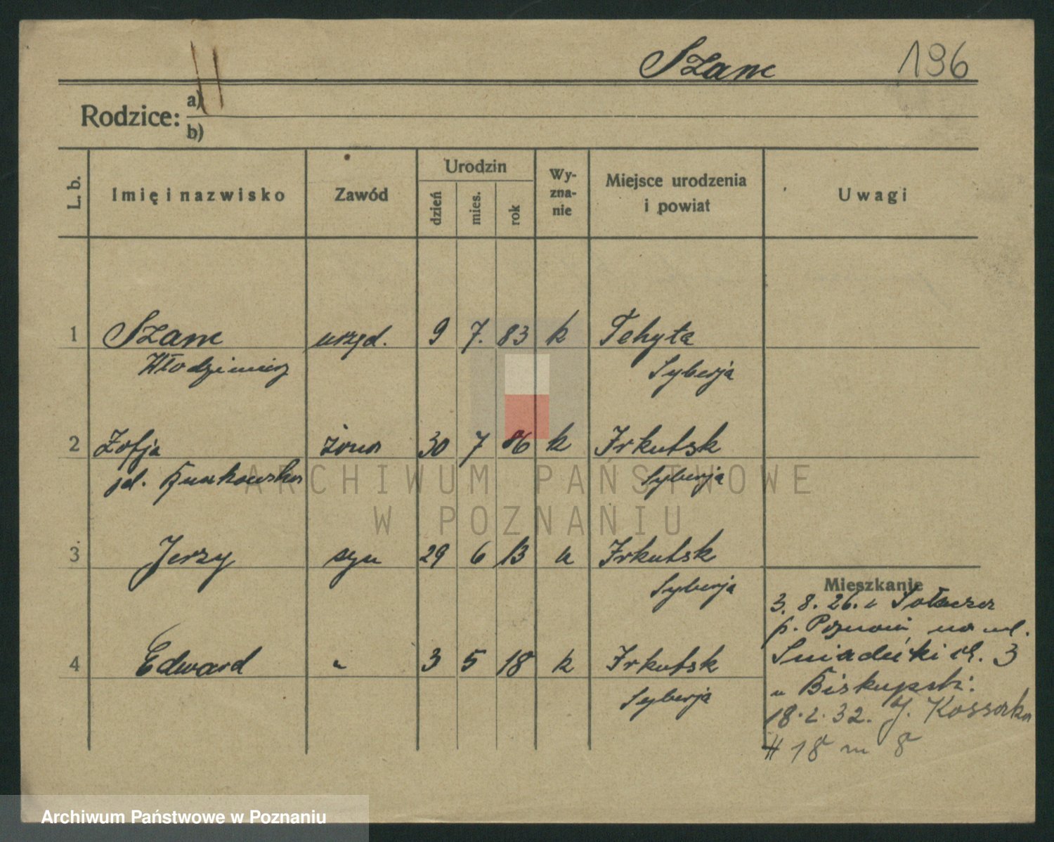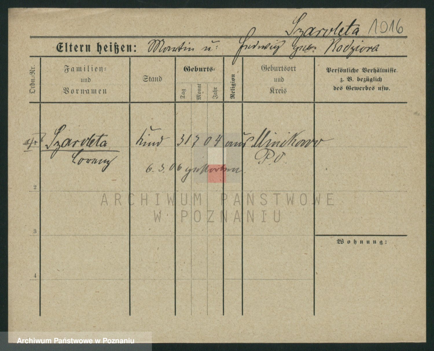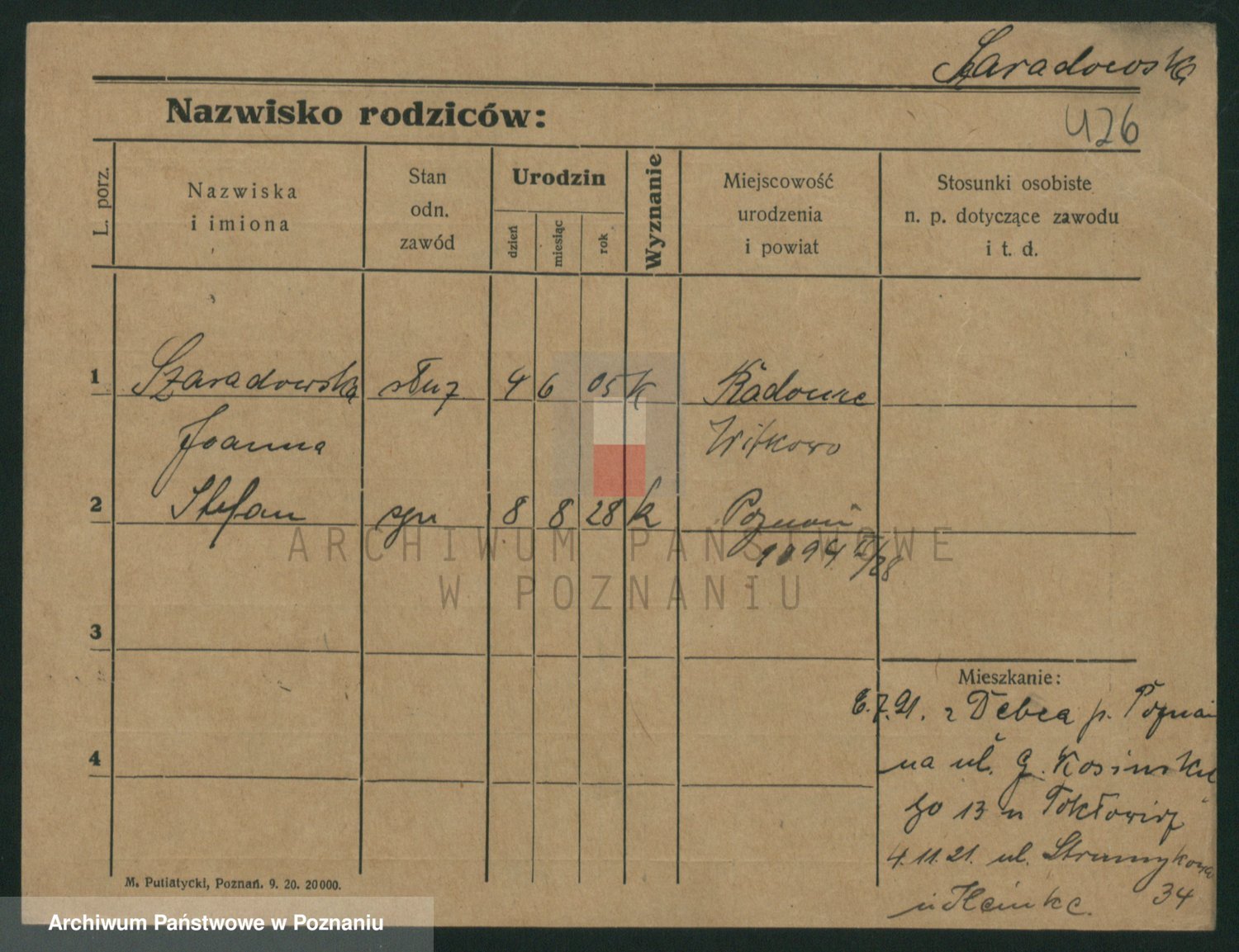 Podgląd karty osobowej dostępny jest po kliknięciu na nazwisko lub ikonkę karty. Można dokonywać powiększenia (ikony na górze) lub przechodzić między kolejnymi skanami (strzałki po bokach).
