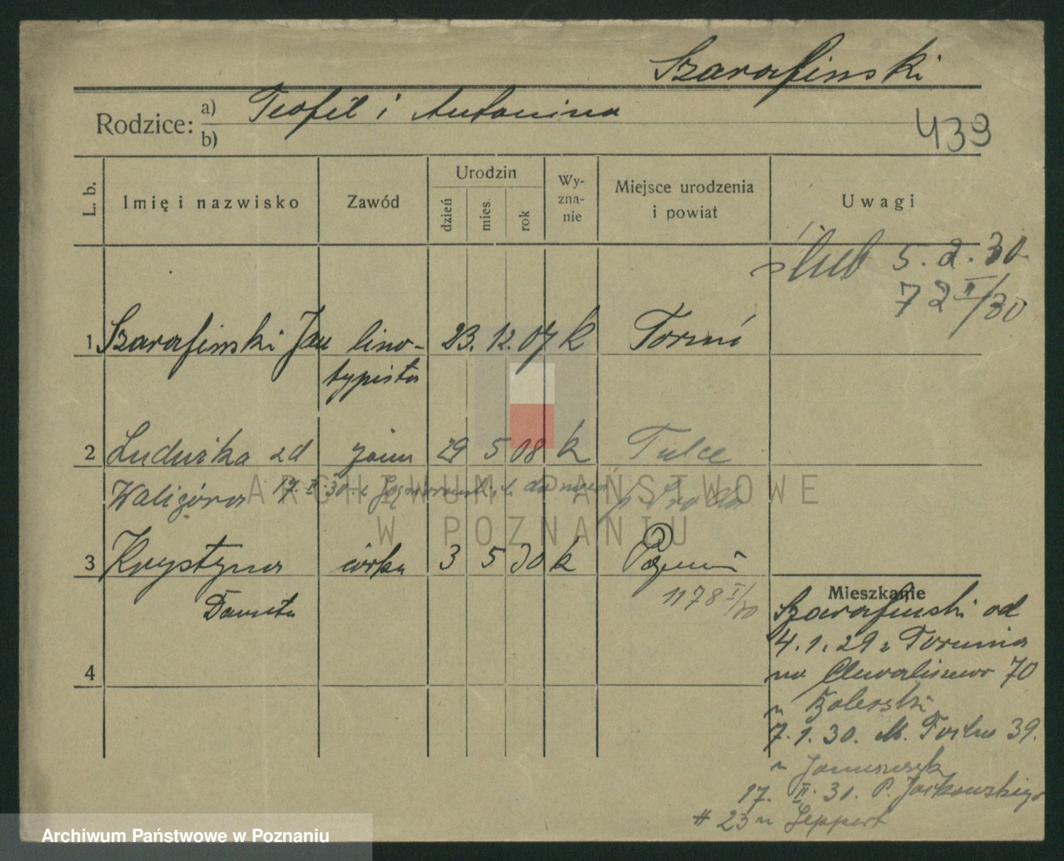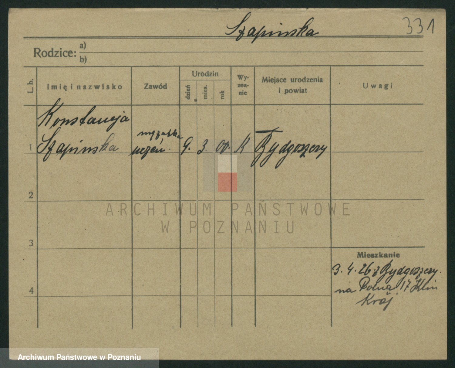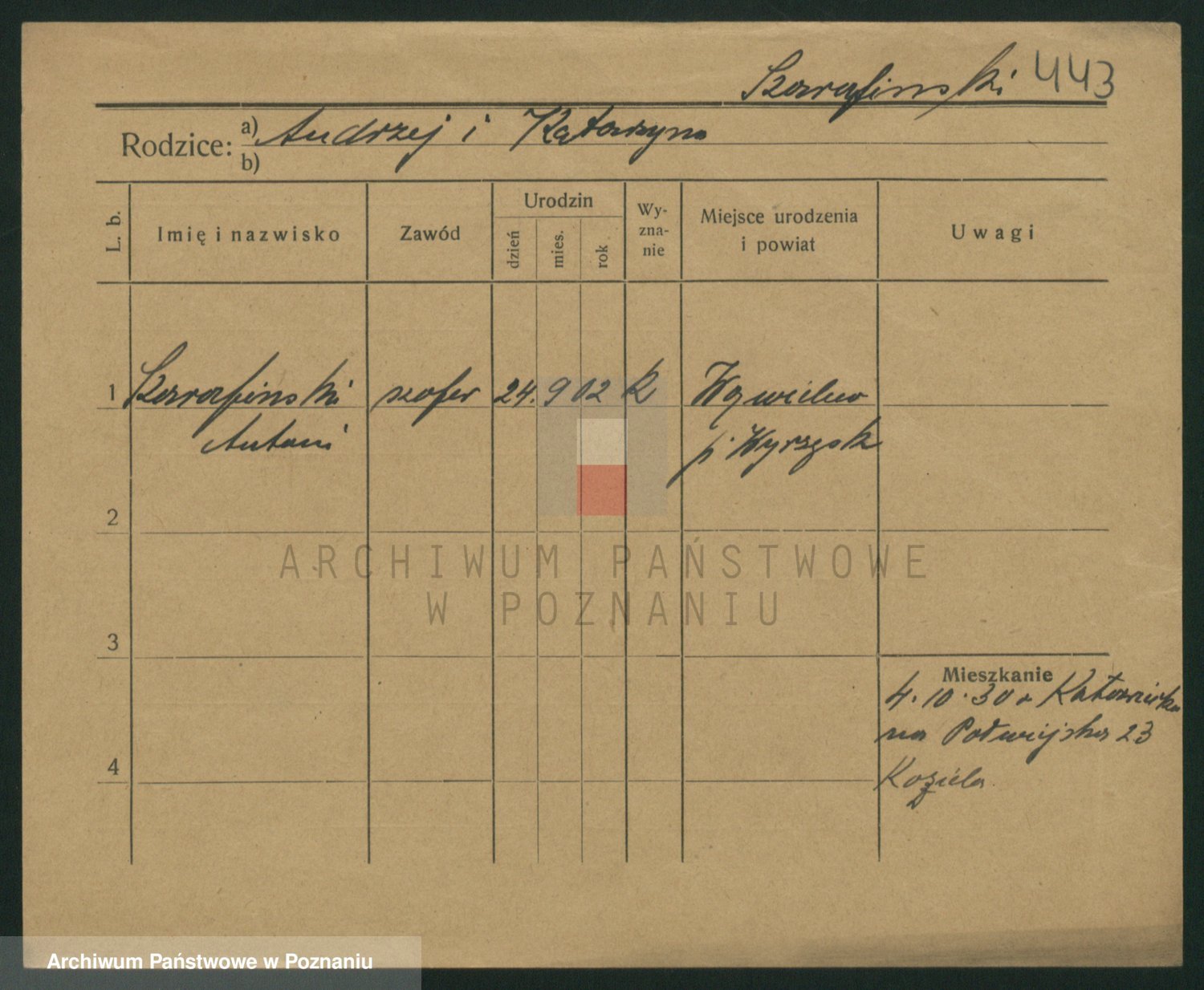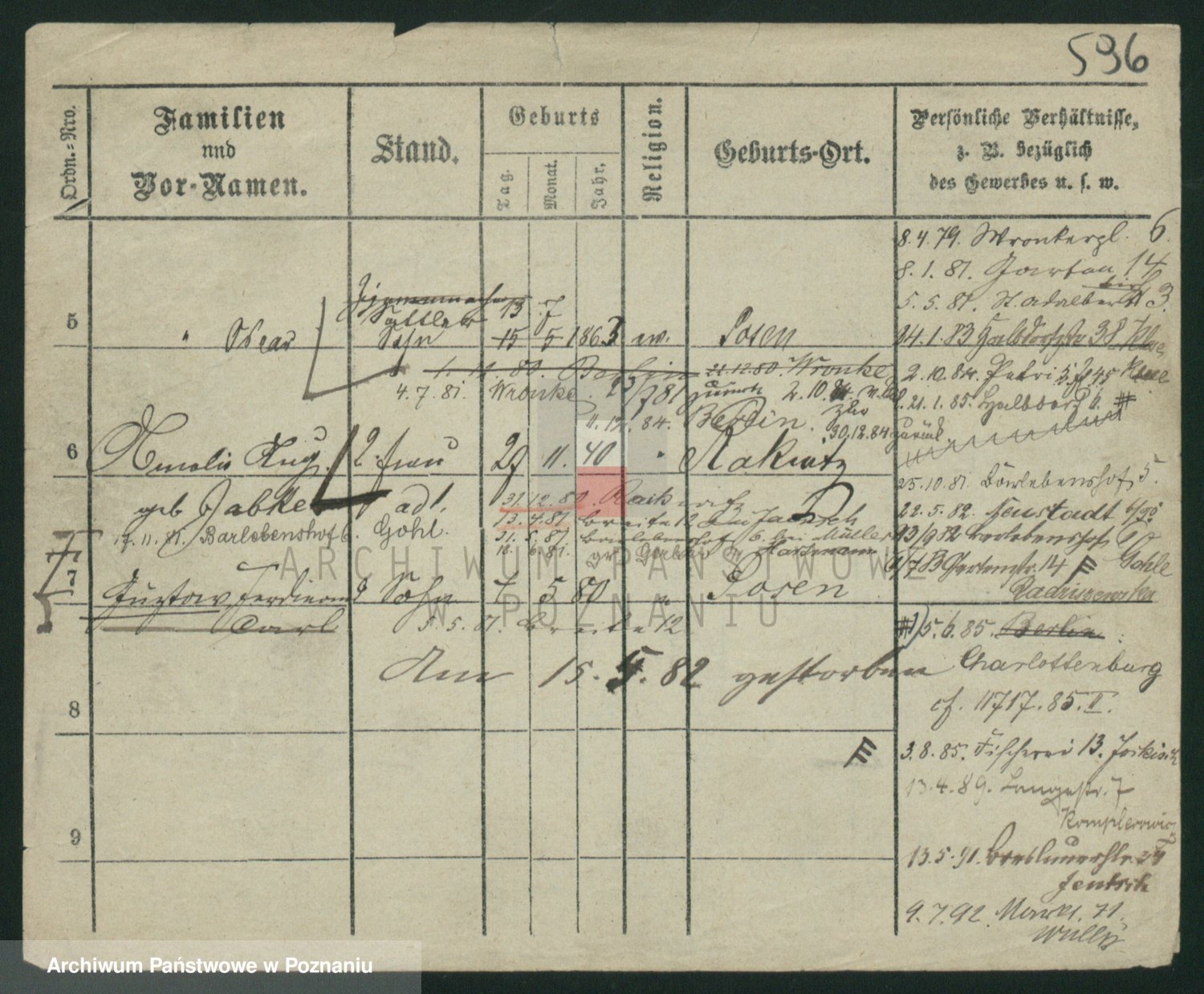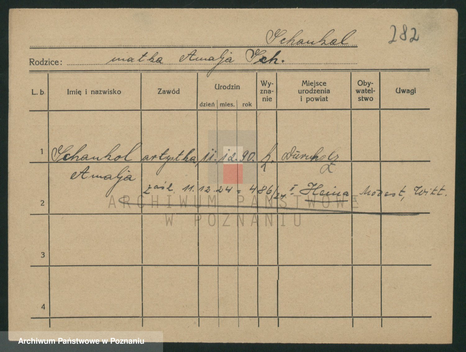 Podgląd karty osobowej dostępny jest po kliknięciu na nazwisko lub ikonkę karty. Można dokonywać powiększenia (ikony na górze) lub przechodzić między kolejnymi skanami (strzałki po bokach).