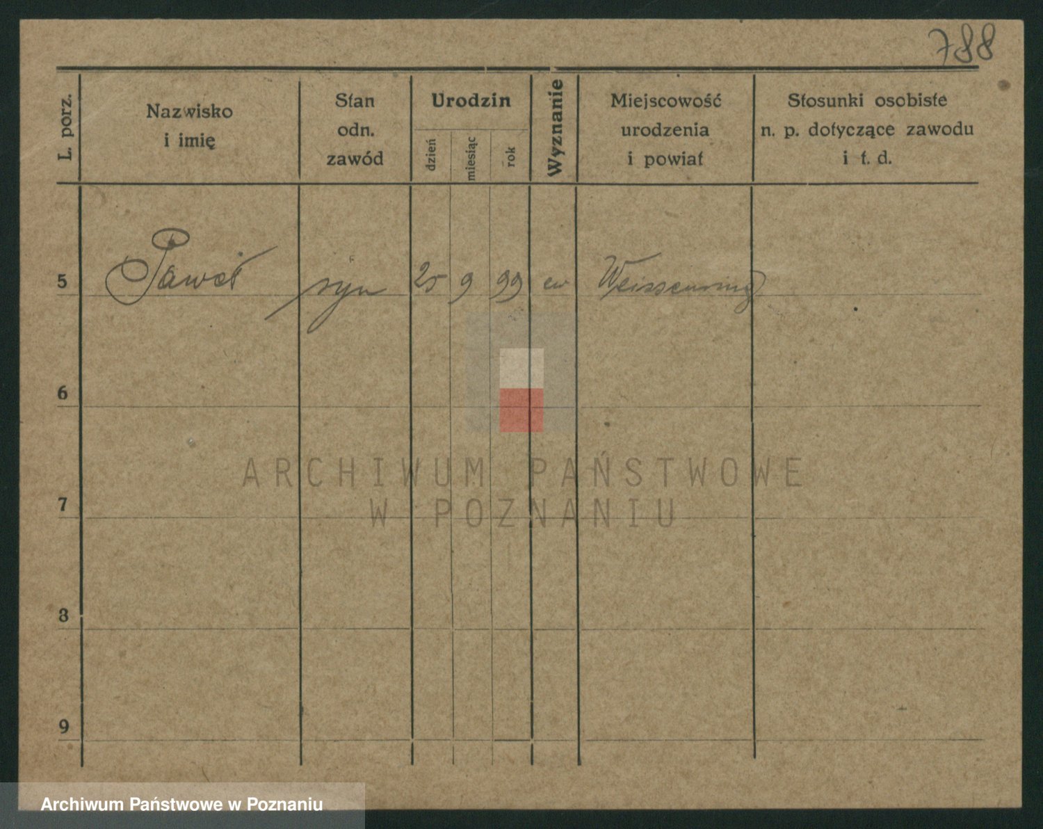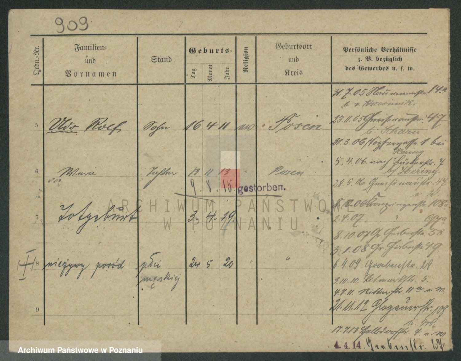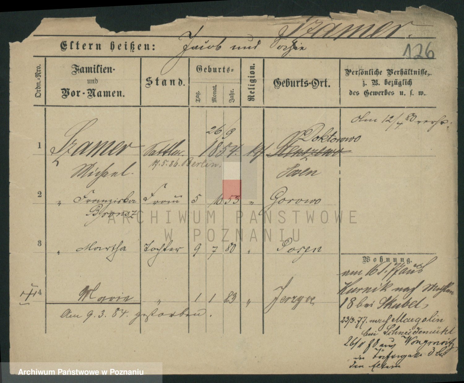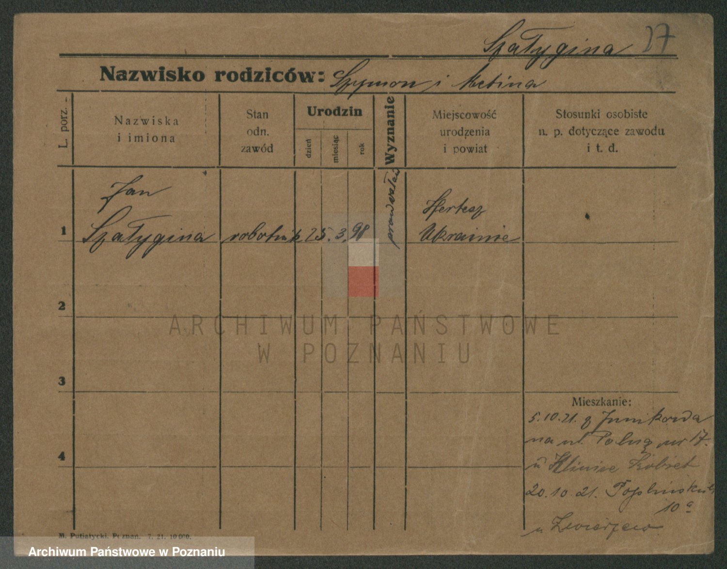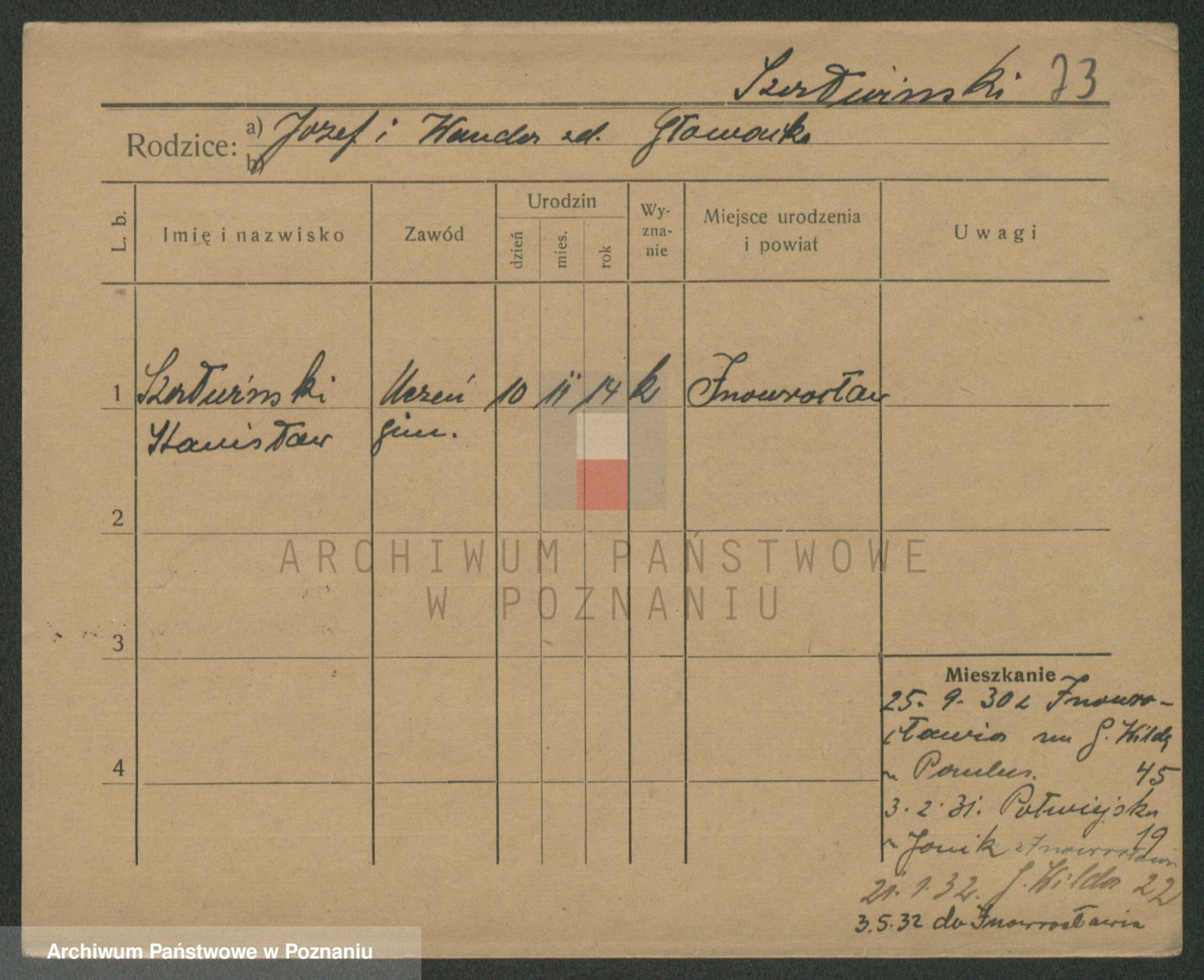 Podgląd karty osobowej dostępny jest po kliknięciu na nazwisko lub ikonkę karty. Można dokonywać powiększenia (ikony na górze) lub przechodzić między kolejnymi skanami (strzałki po bokach).