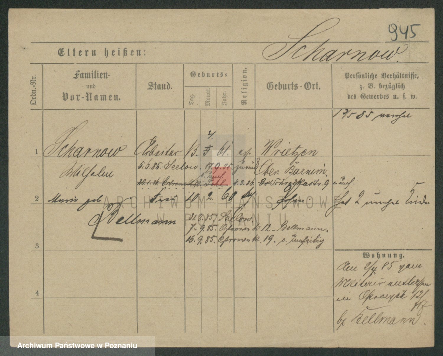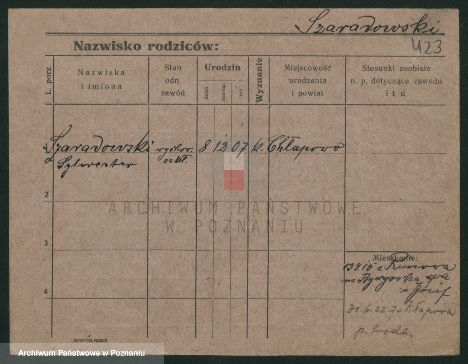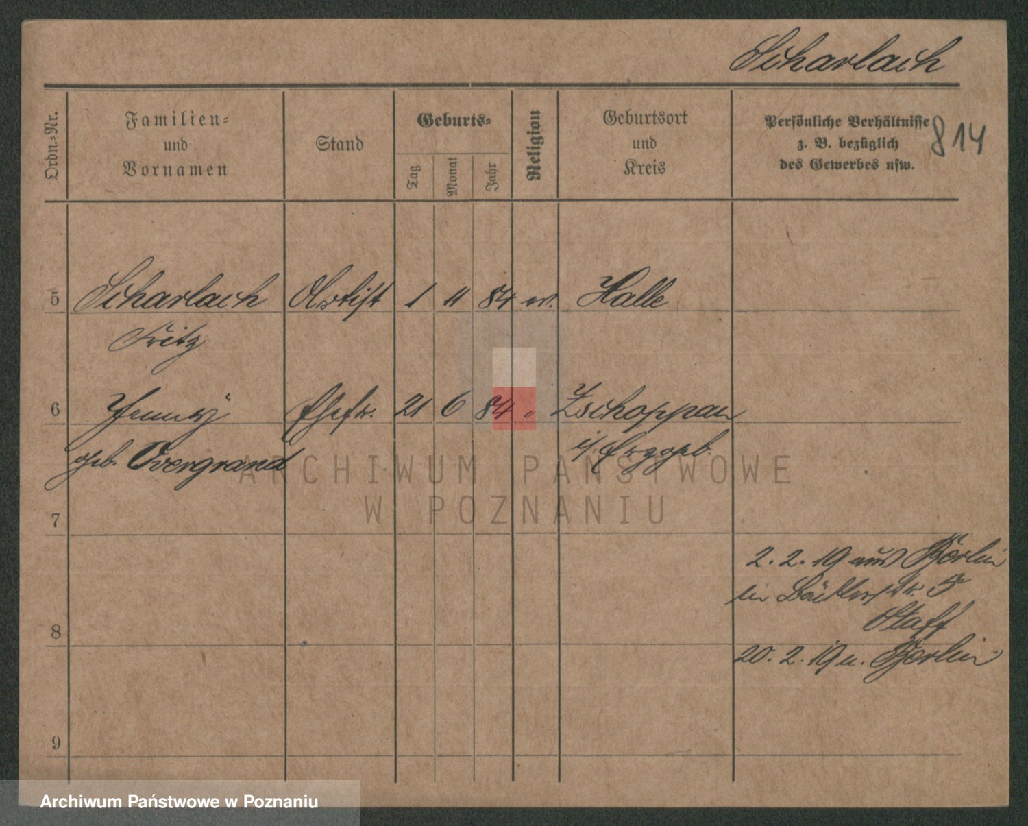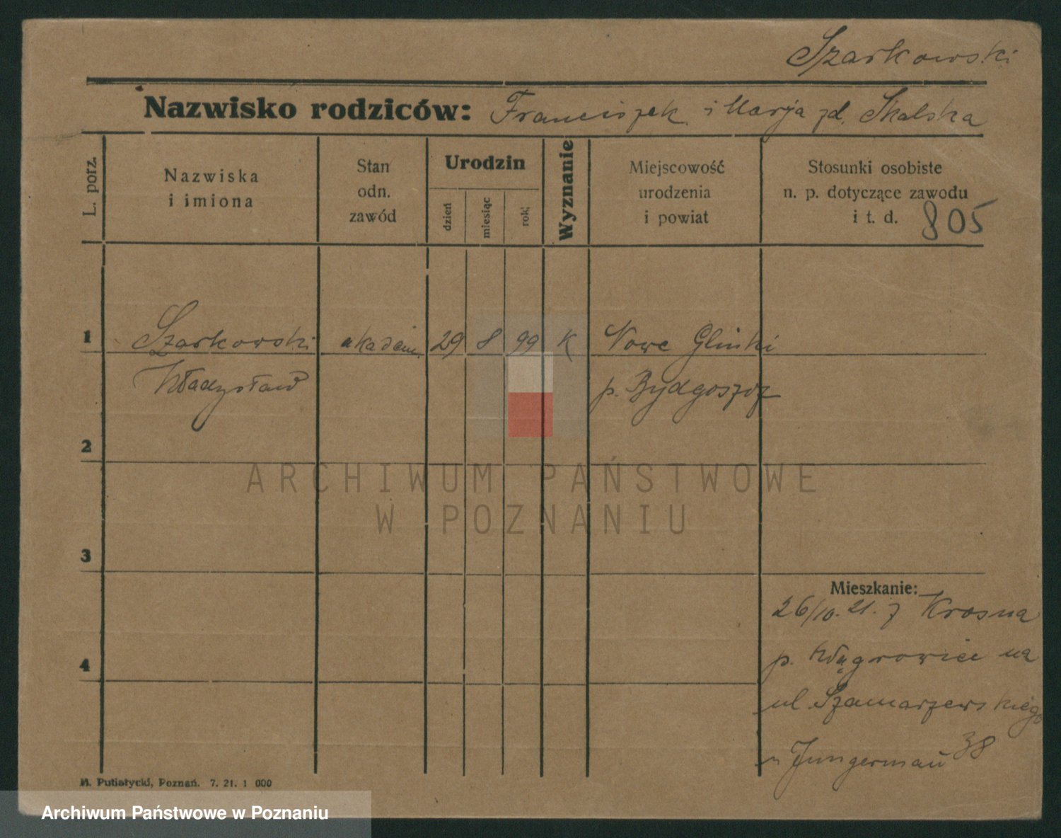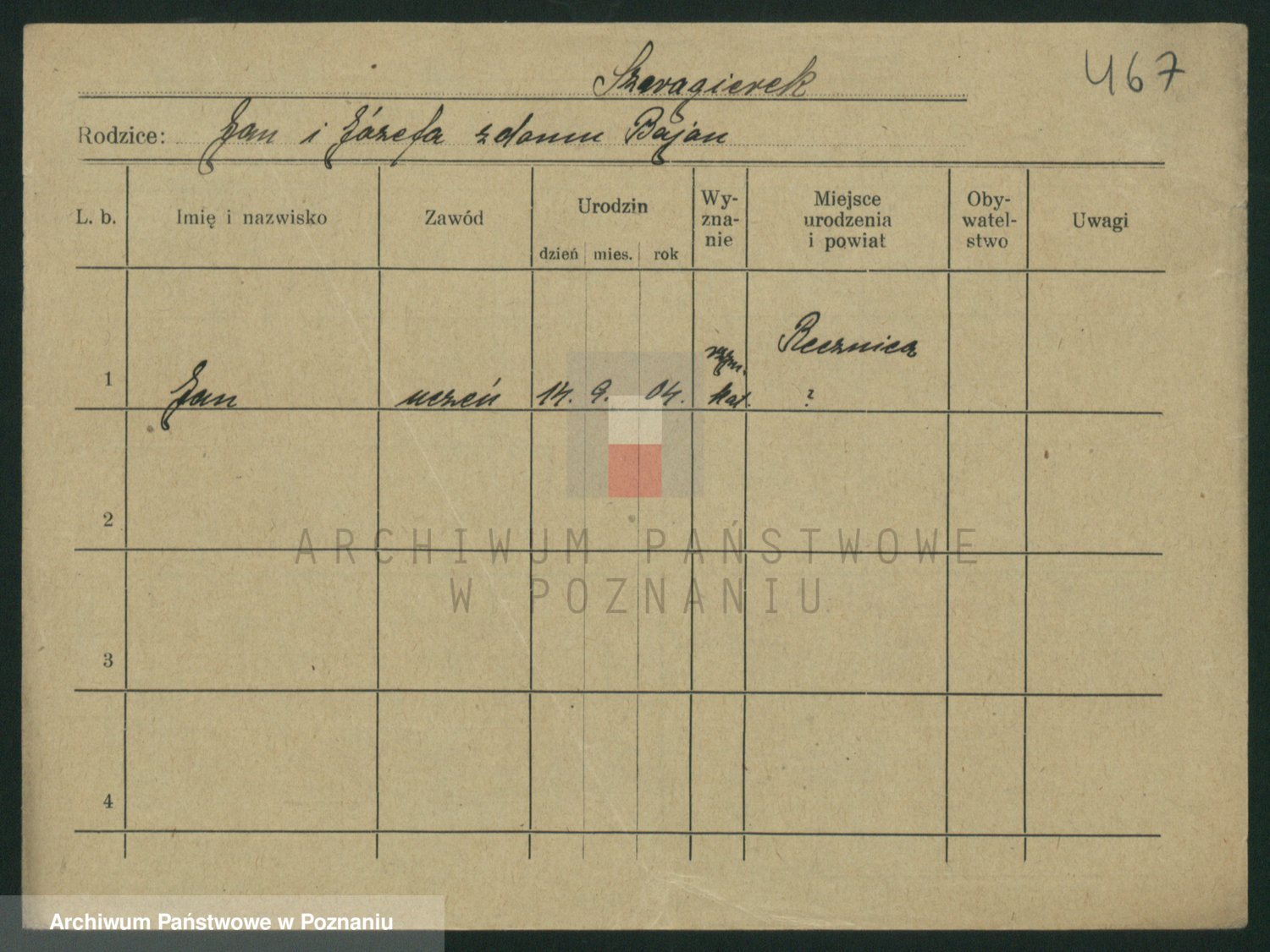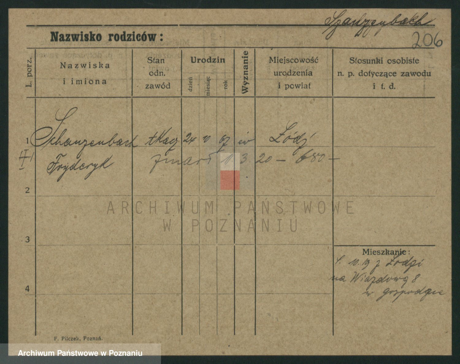 Podgląd karty osobowej dostępny jest po kliknięciu na nazwisko lub ikonkę karty. Można dokonywać powiększenia (ikony na górze) lub przechodzić między kolejnymi skanami (strzałki po bokach).