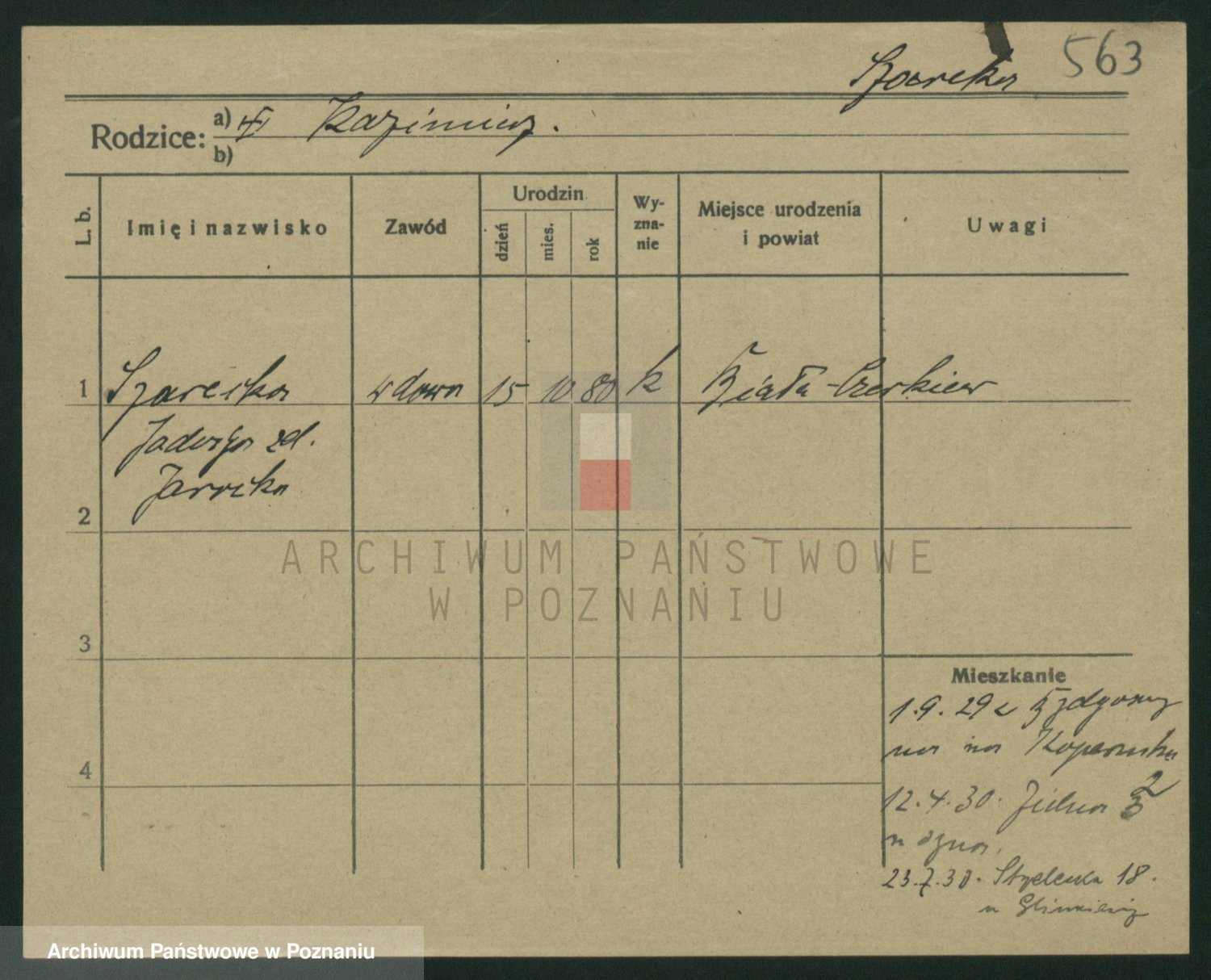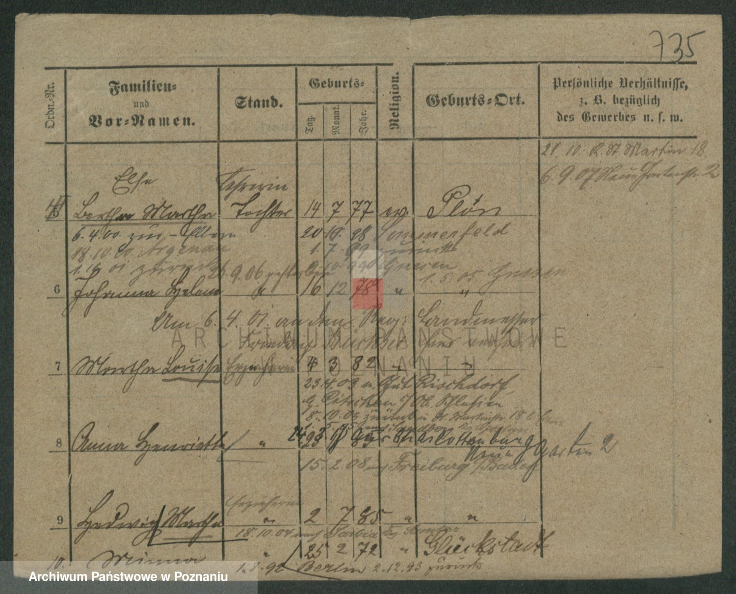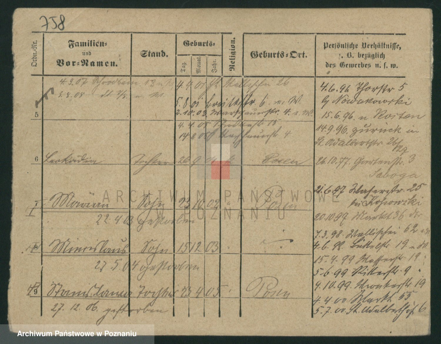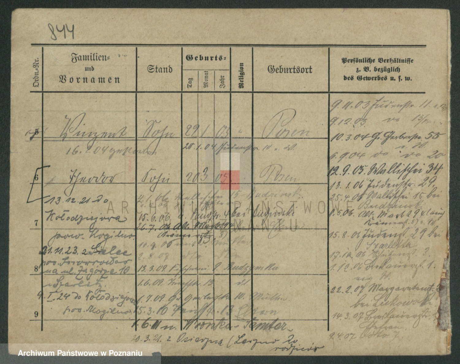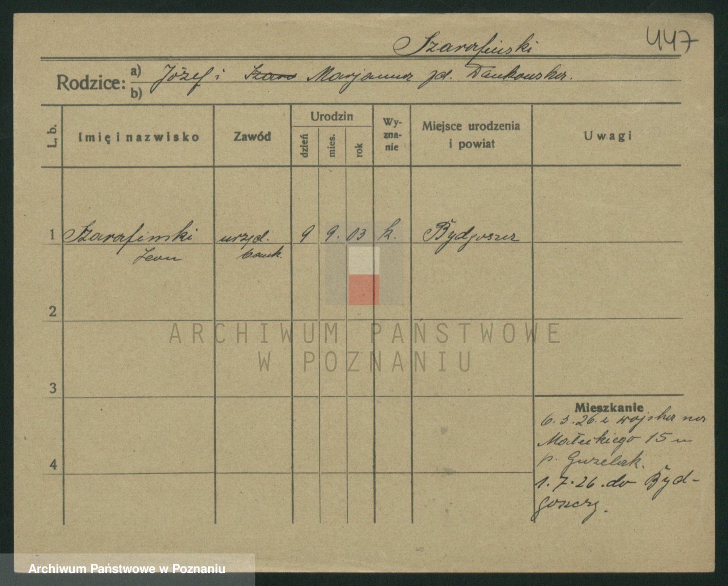 Podgląd karty osobowej dostępny jest po kliknięciu na nazwisko lub ikonkę karty. Można dokonywać powiększenia (ikony na górze) lub przechodzić między kolejnymi skanami (strzałki po bokach).