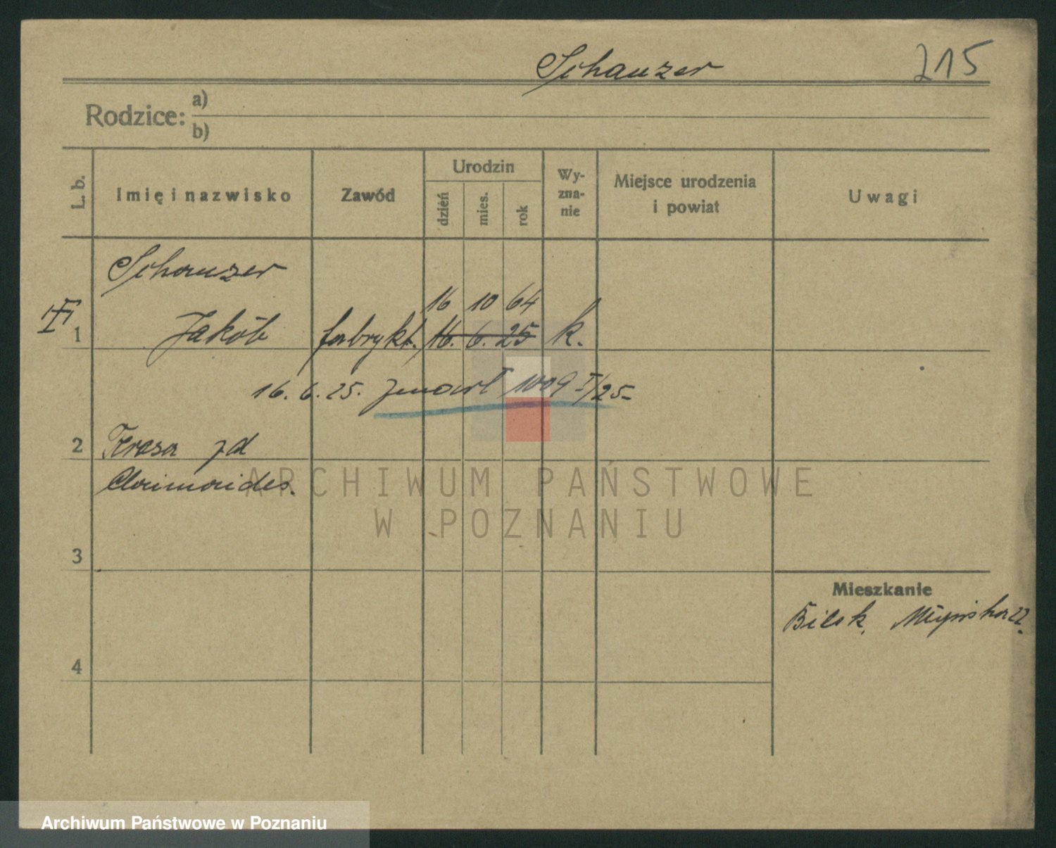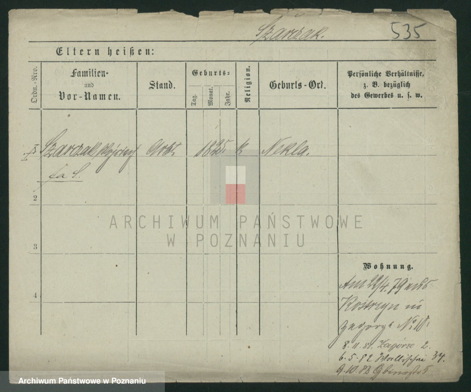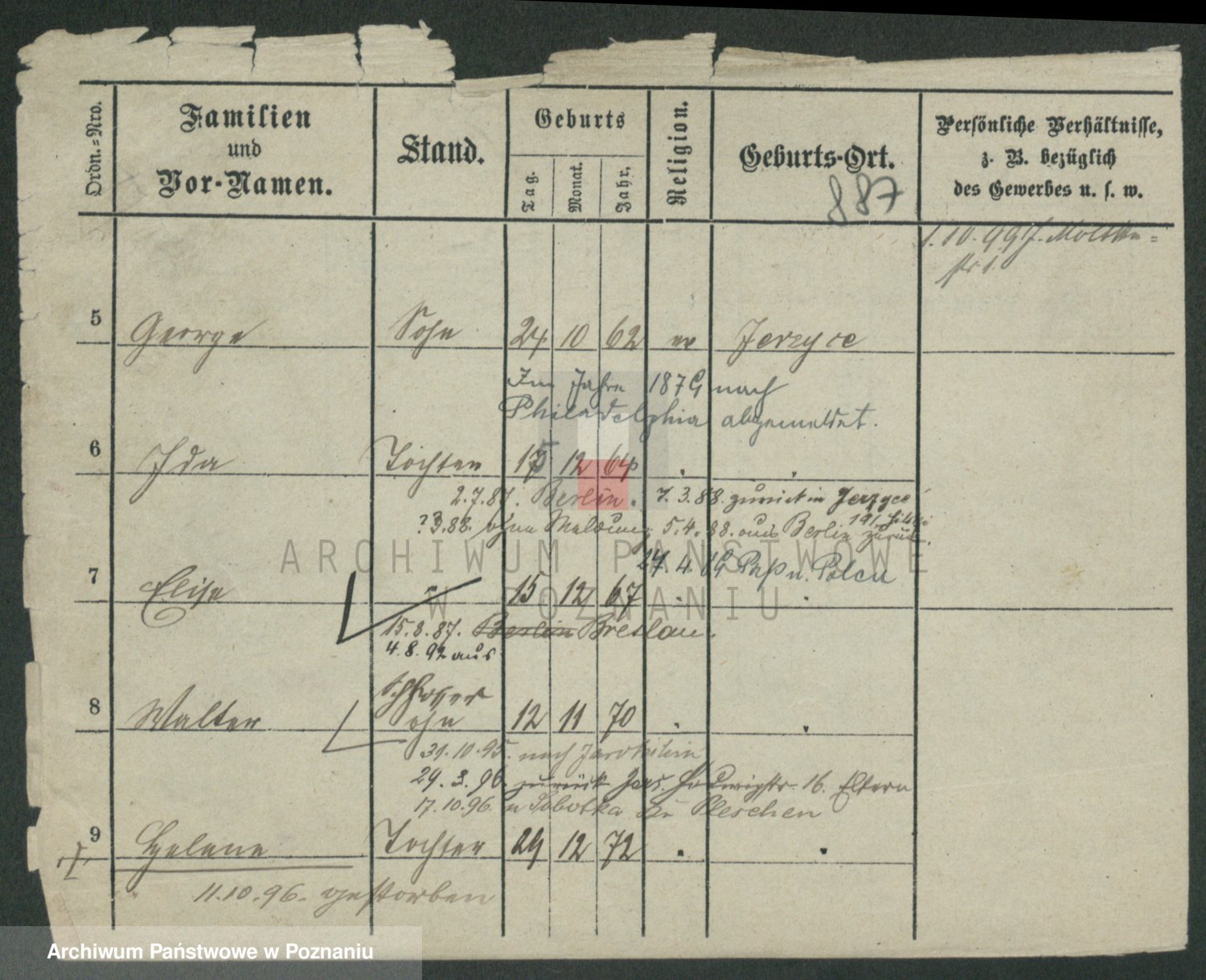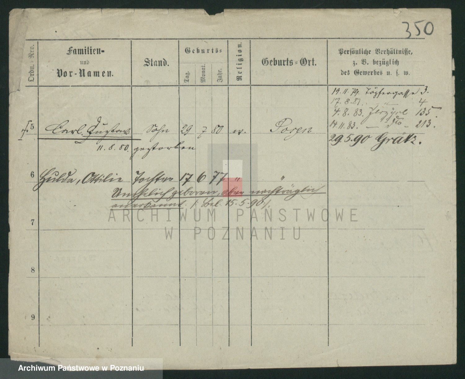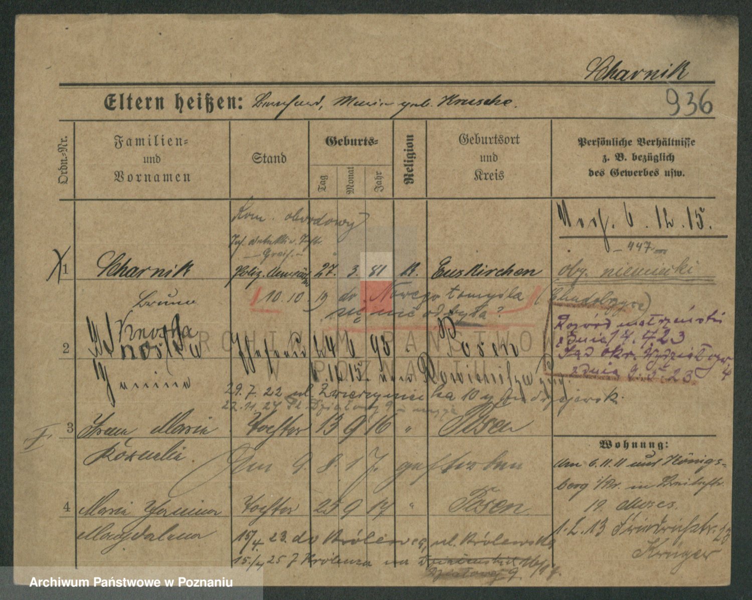 Podgląd karty osobowej dostępny jest po kliknięciu na nazwisko lub ikonkę karty. Można dokonywać powiększenia (ikony na górze) lub przechodzić między kolejnymi skanami (strzałki po bokach).