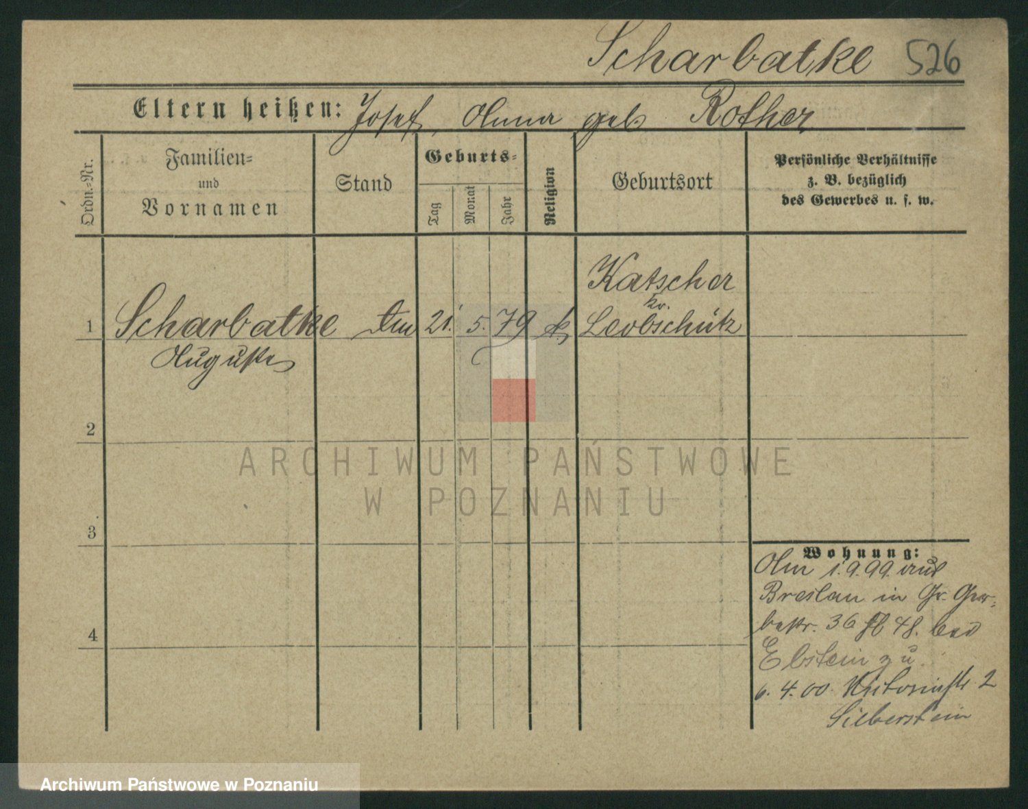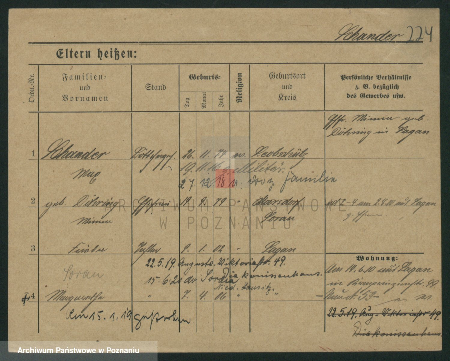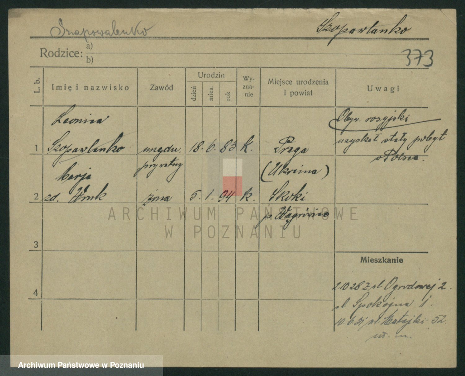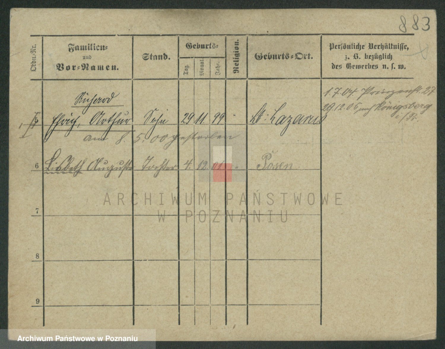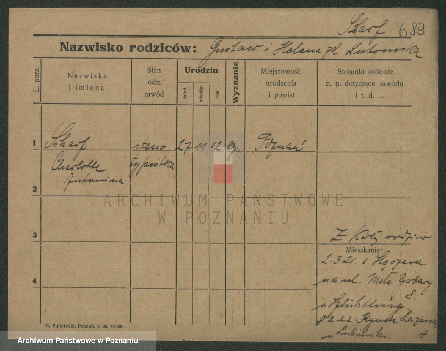Podgląd karty osobowej dostępny jest po kliknięciu na nazwisko lub ikonkę karty. Można dokonywać powiększenia (ikony na górze) lub przechodzić między kolejnymi skanami (strzałki po bokach).