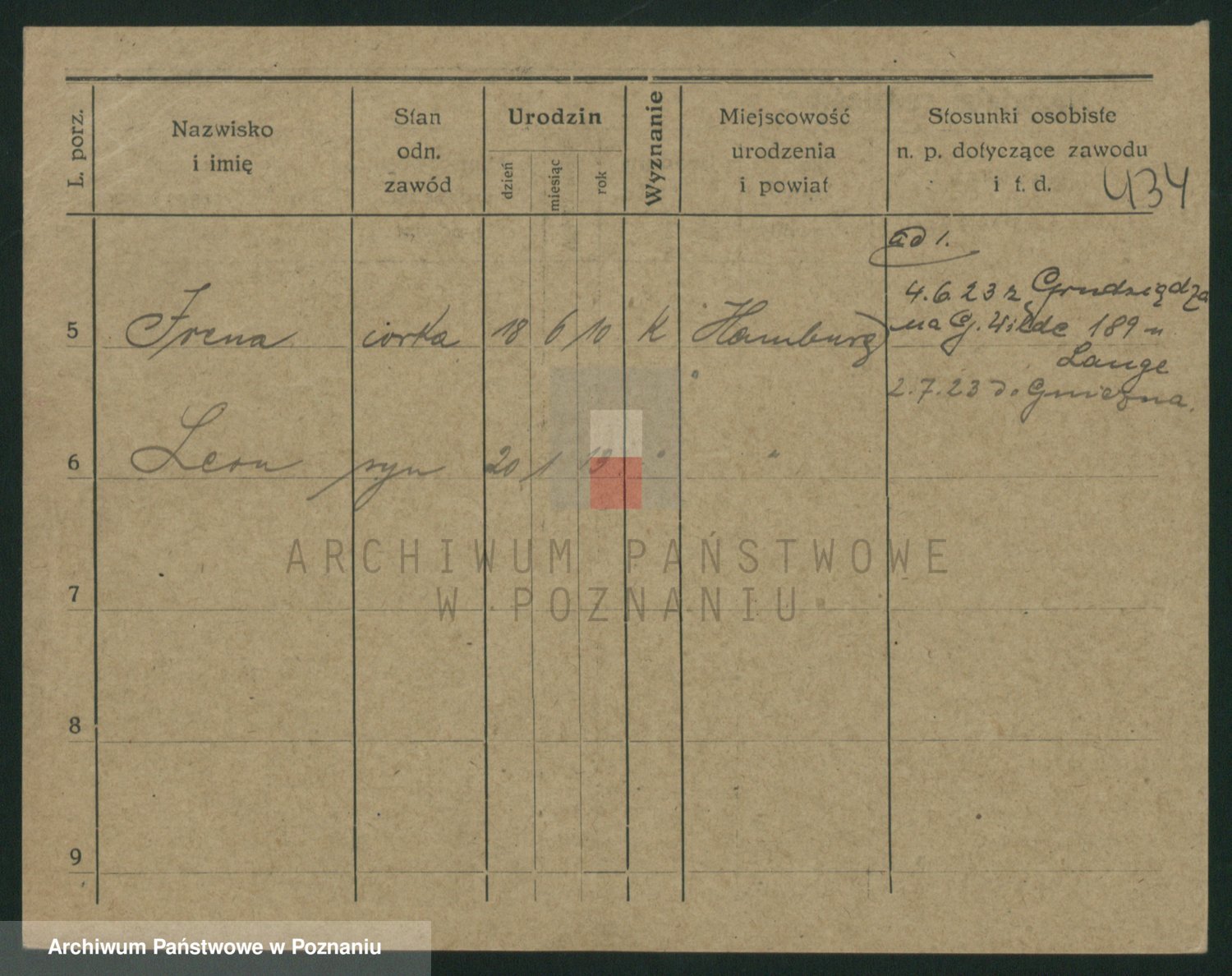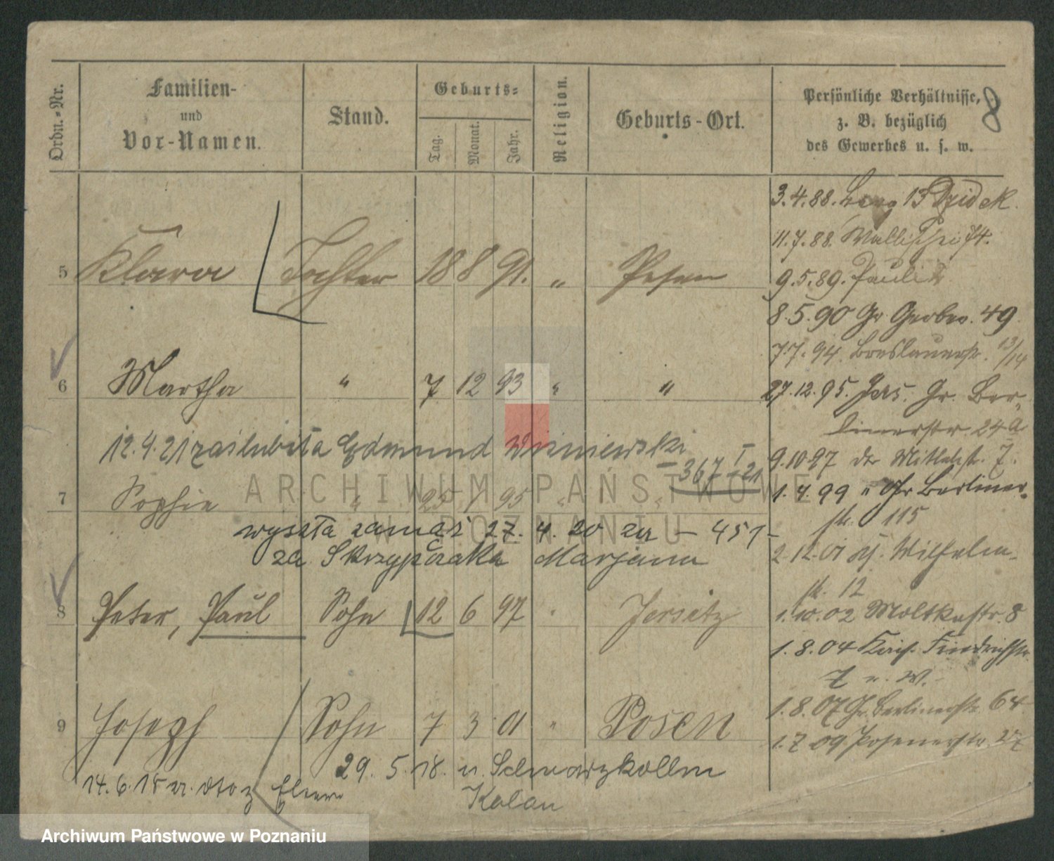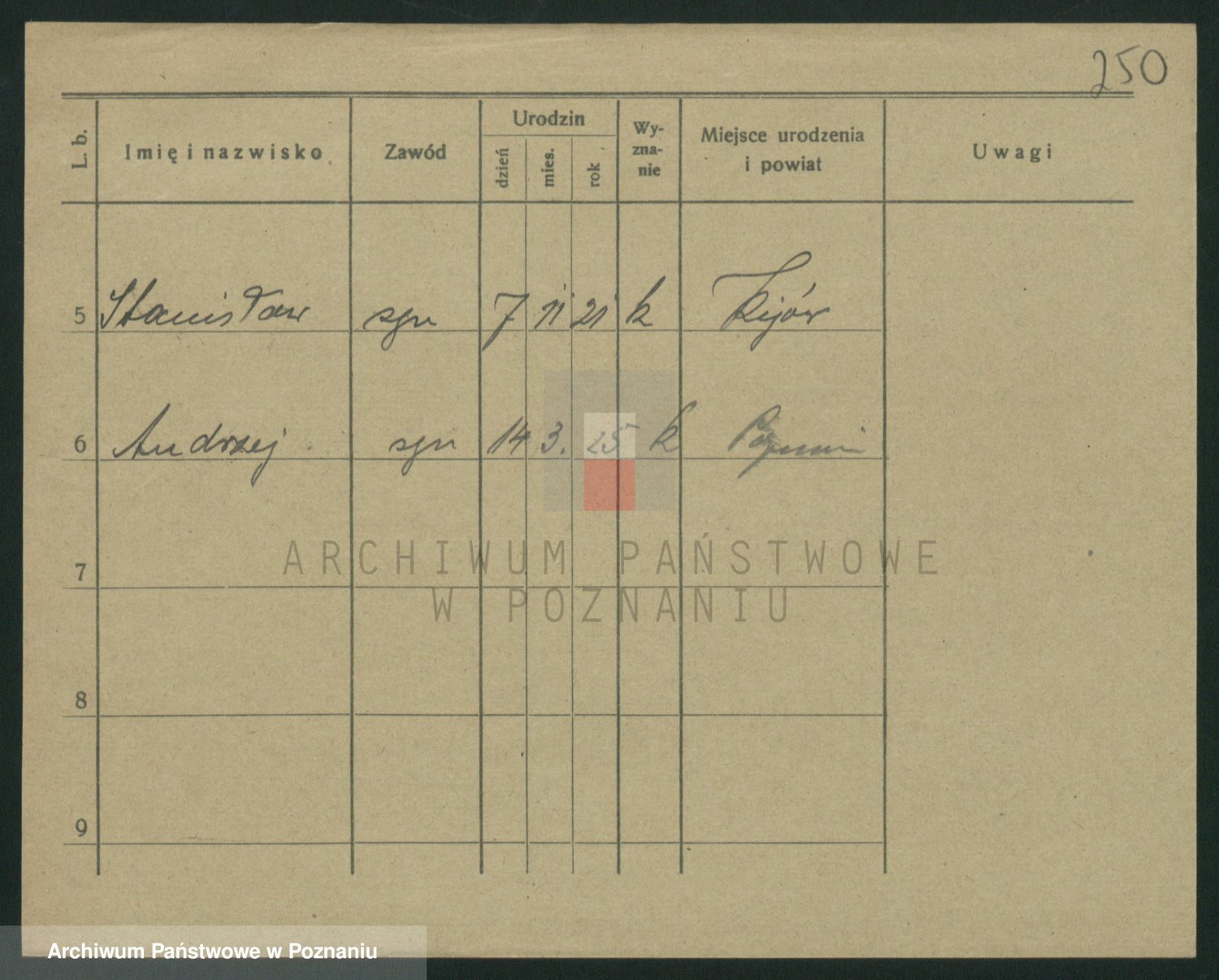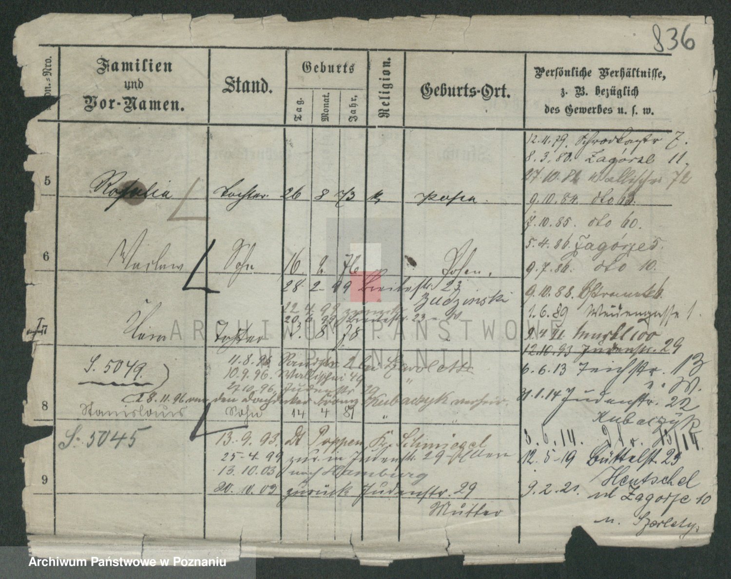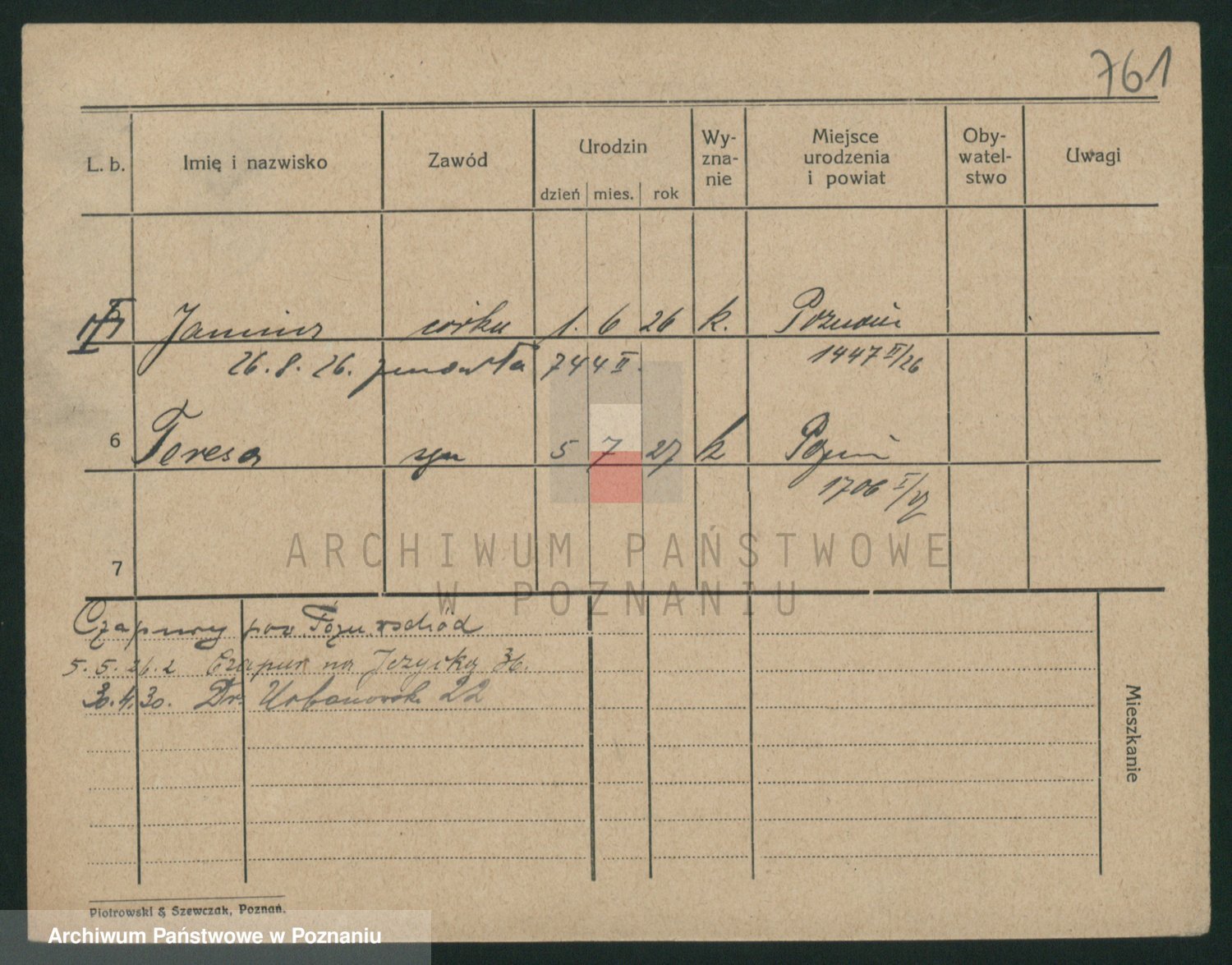 Podgląd karty osobowej dostępny jest po kliknięciu na nazwisko lub ikonkę karty. Można dokonywać powiększenia (ikony na górze) lub przechodzić między kolejnymi skanami (strzałki po bokach).