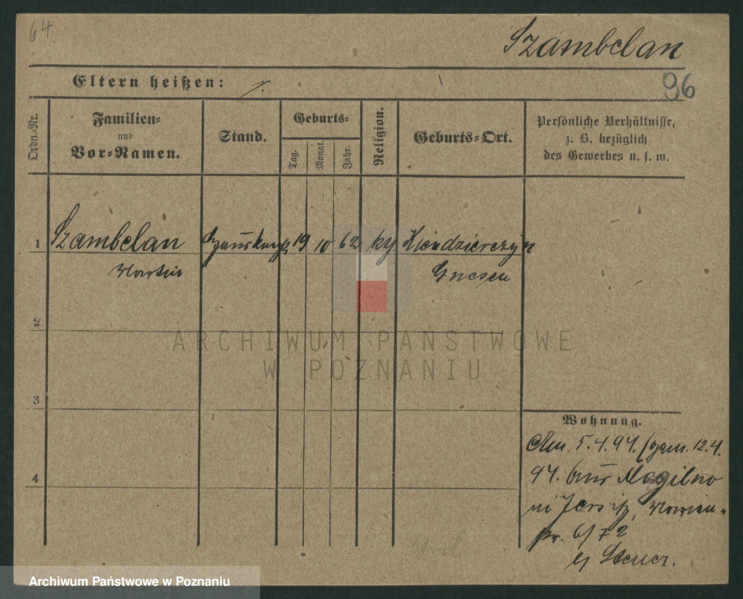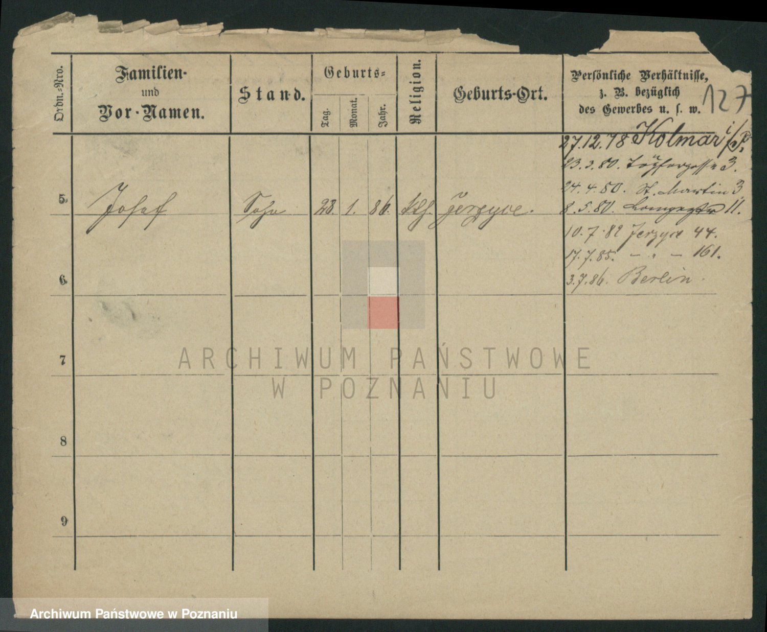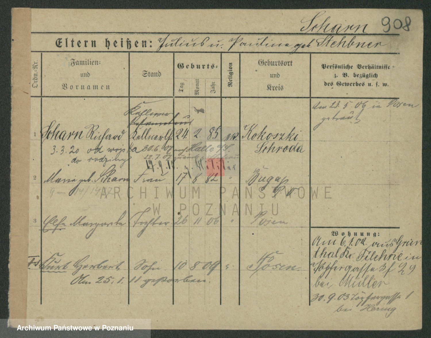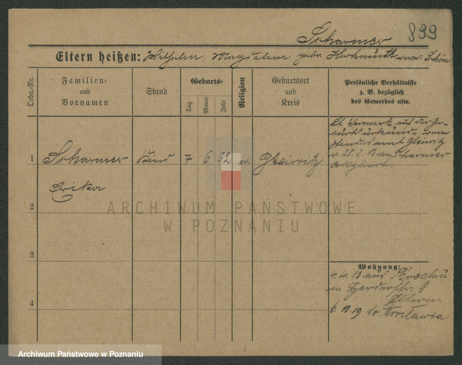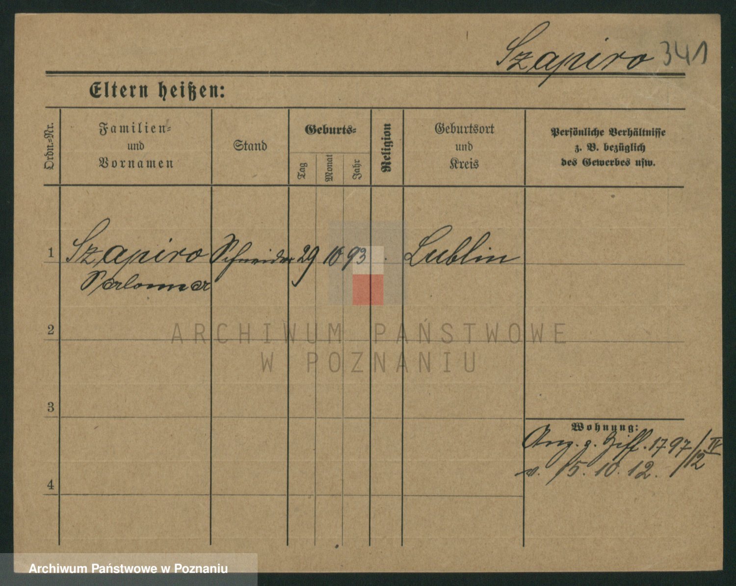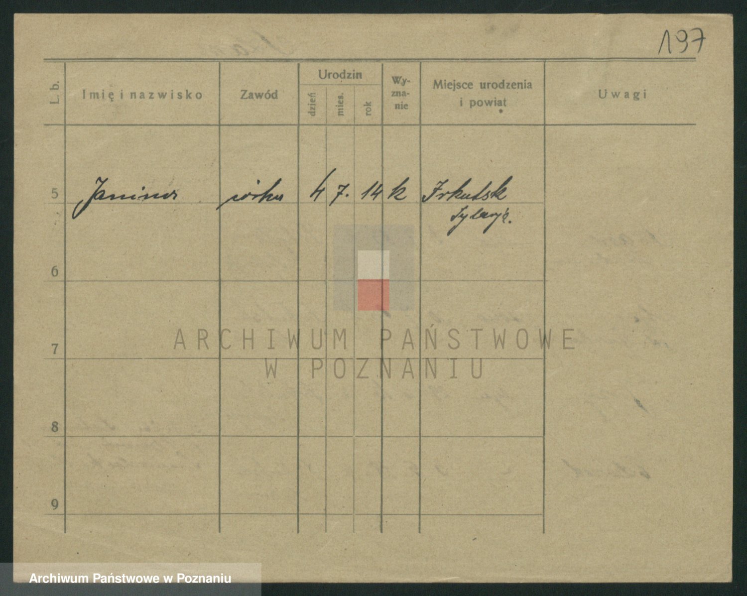 Podgląd karty osobowej dostępny jest po kliknięciu na nazwisko lub ikonkę karty. Można dokonywać powiększenia (ikony na górze) lub przechodzić między kolejnymi skanami (strzałki po bokach).