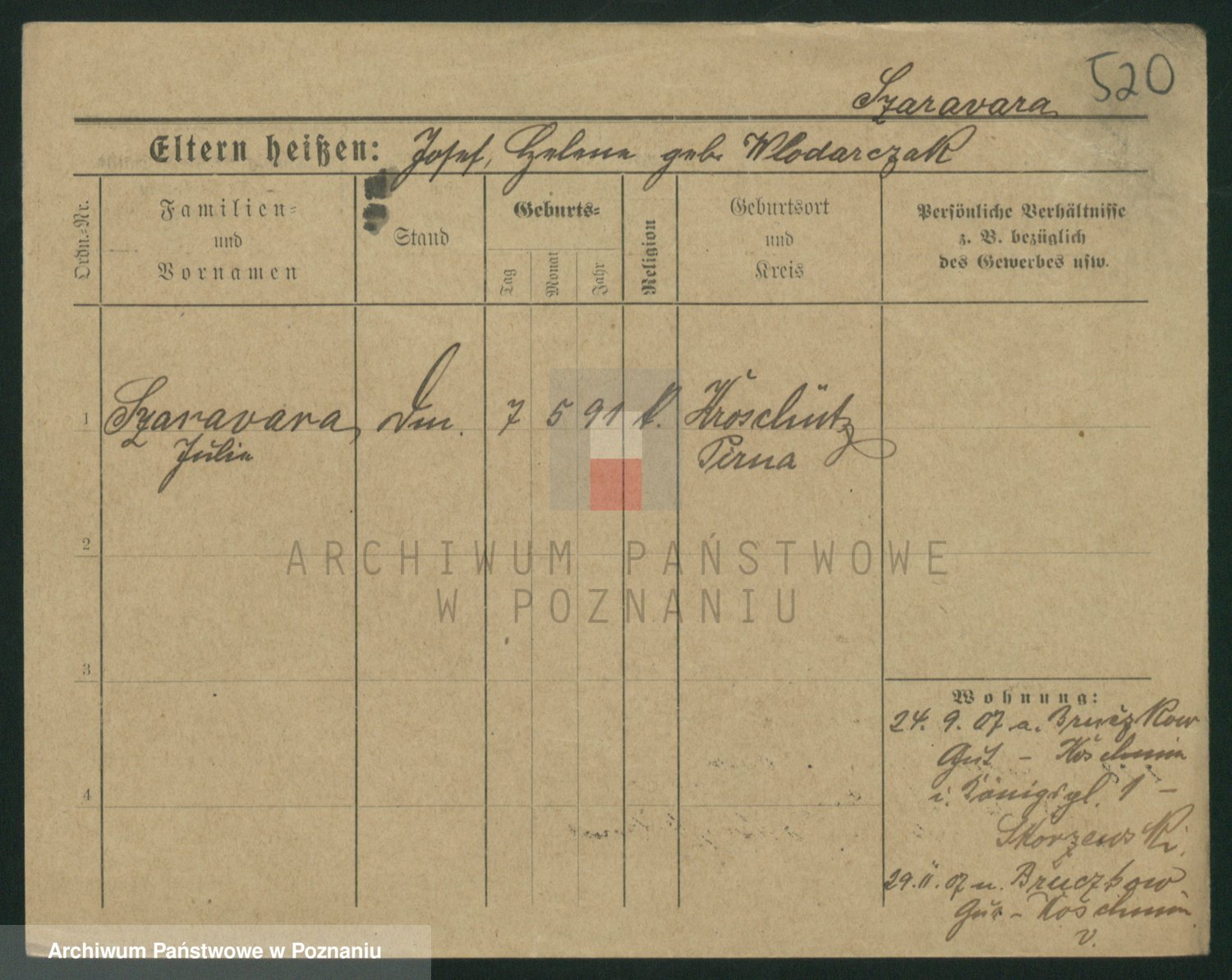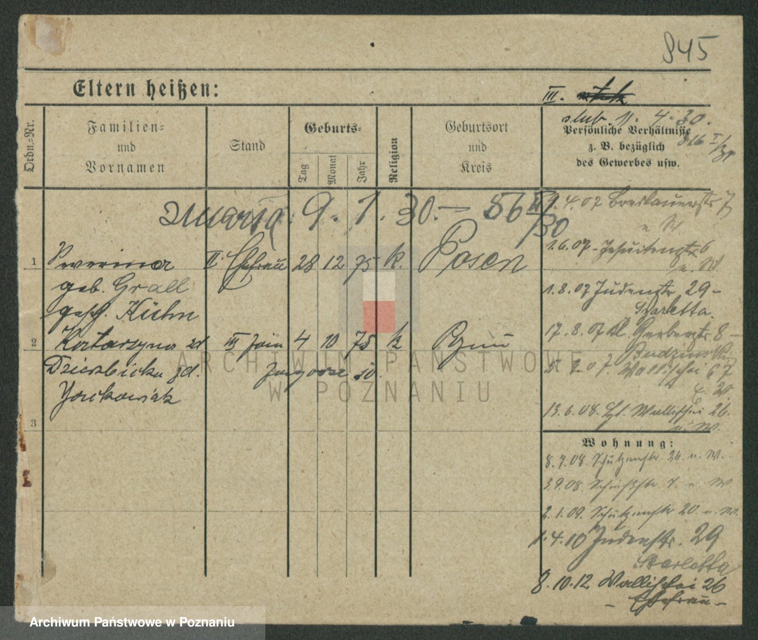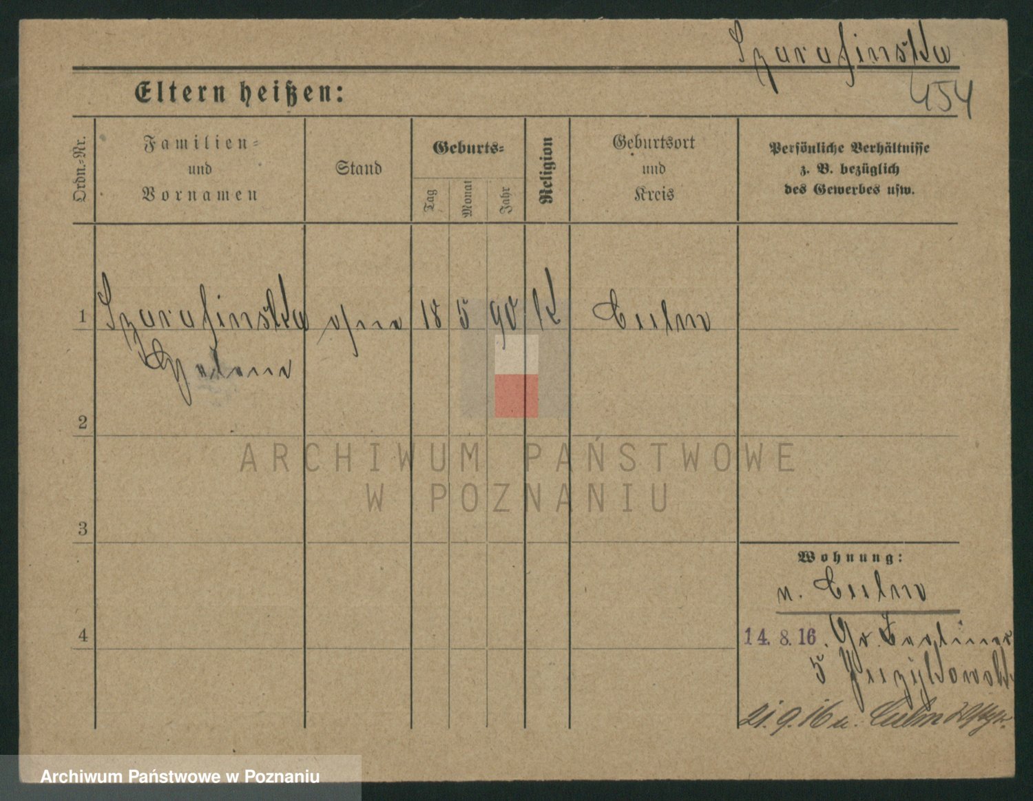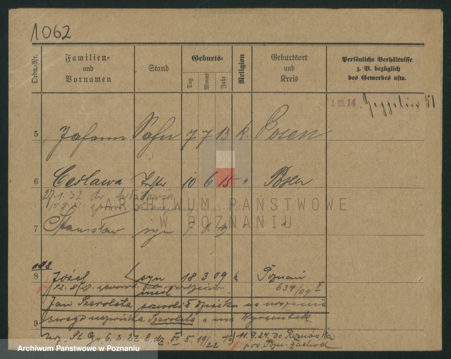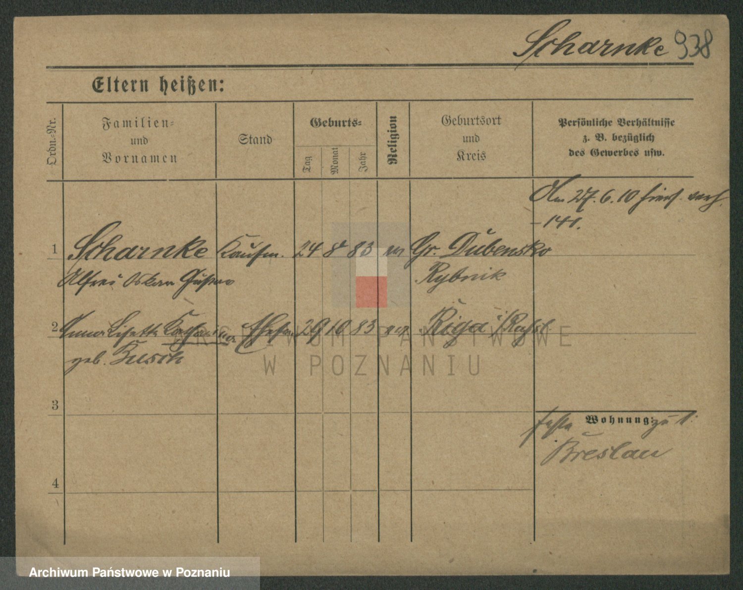 Podgląd karty osobowej dostępny jest po kliknięciu na nazwisko lub ikonkę karty. Można dokonywać powiększenia (ikony na górze) lub przechodzić między kolejnymi skanami (strzałki po bokach).