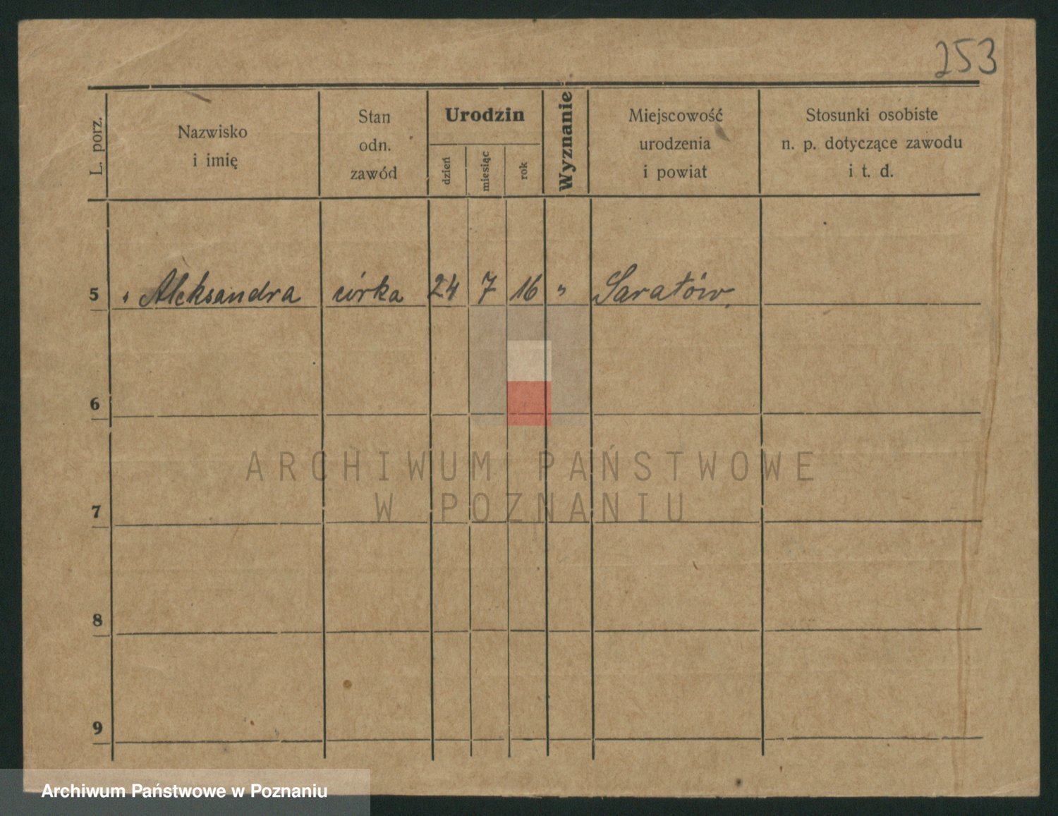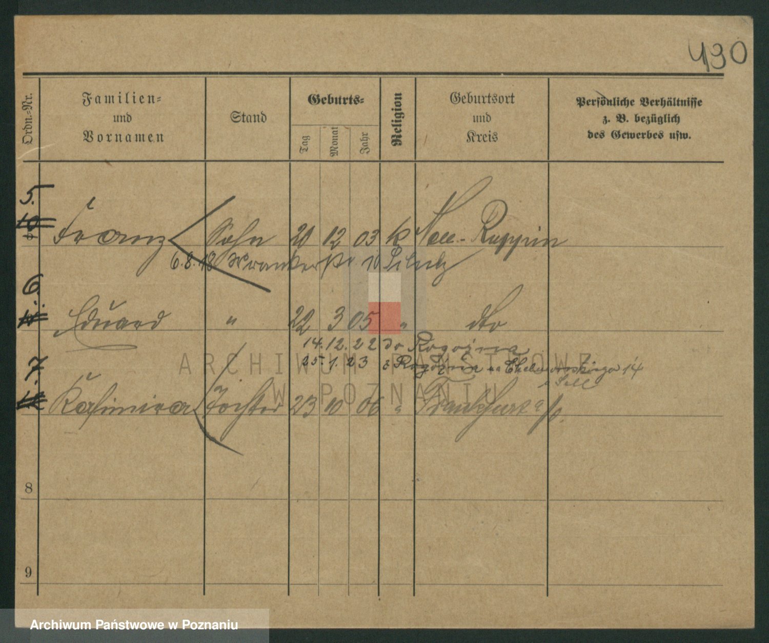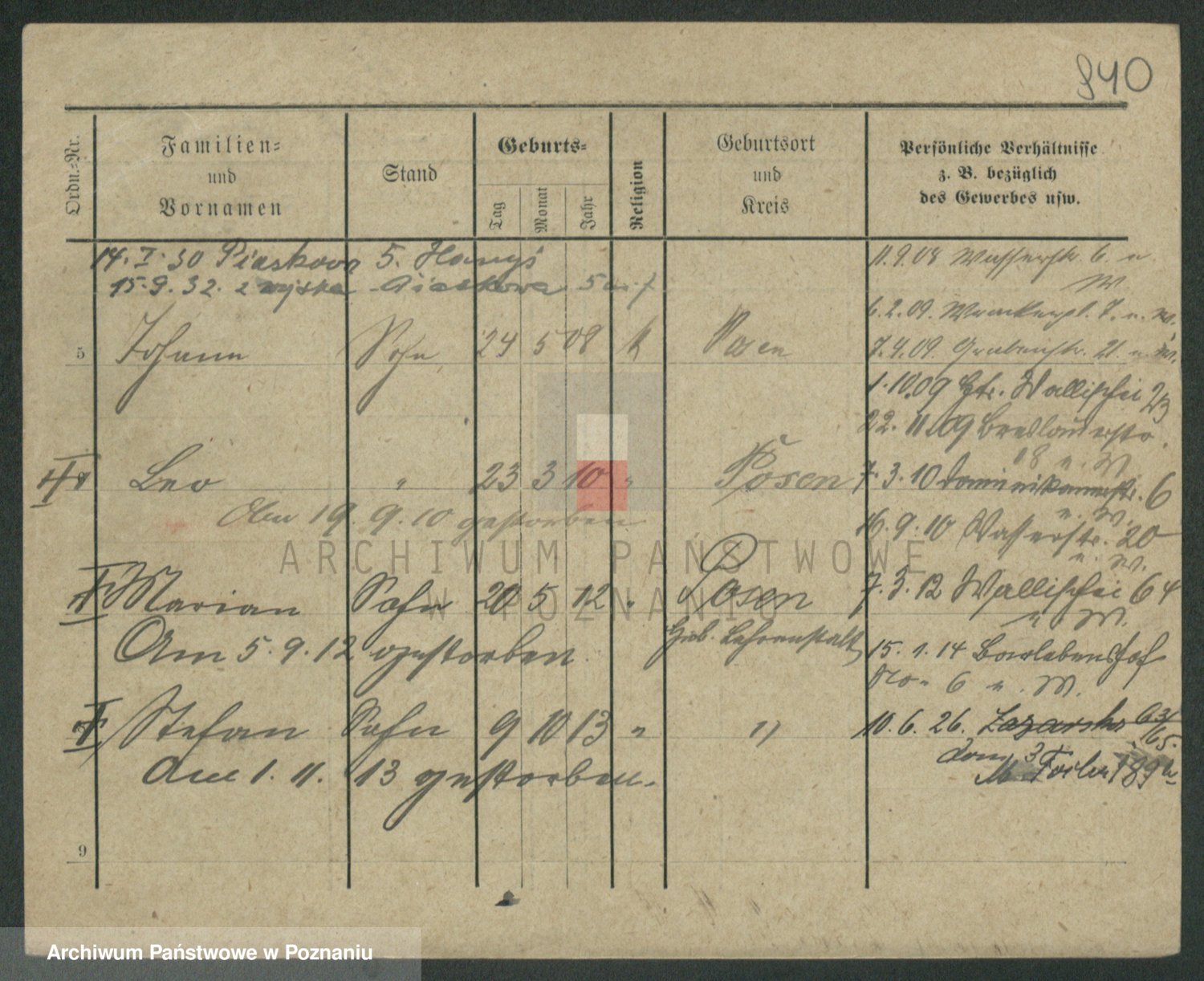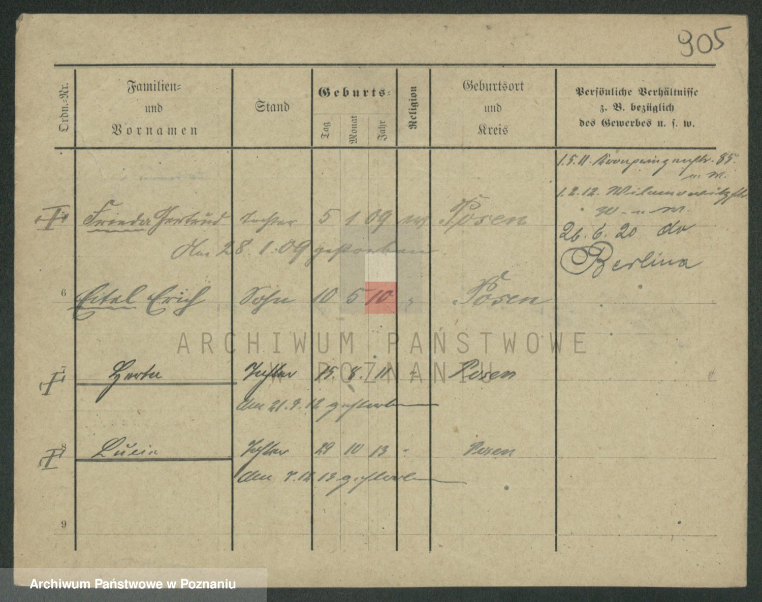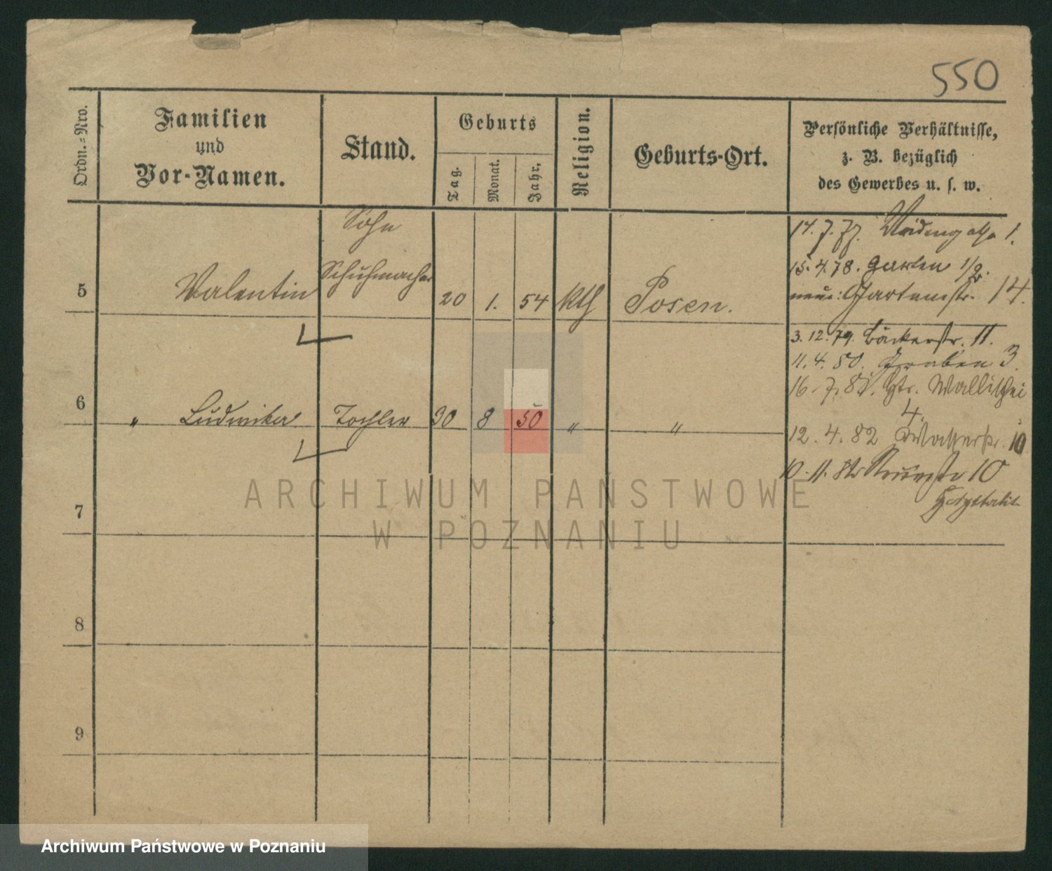Podgląd karty osobowej dostępny jest po kliknięciu na nazwisko lub ikonkę karty. Można dokonywać powiększenia (ikony na górze) lub przechodzić między kolejnymi skanami (strzałki po bokach).