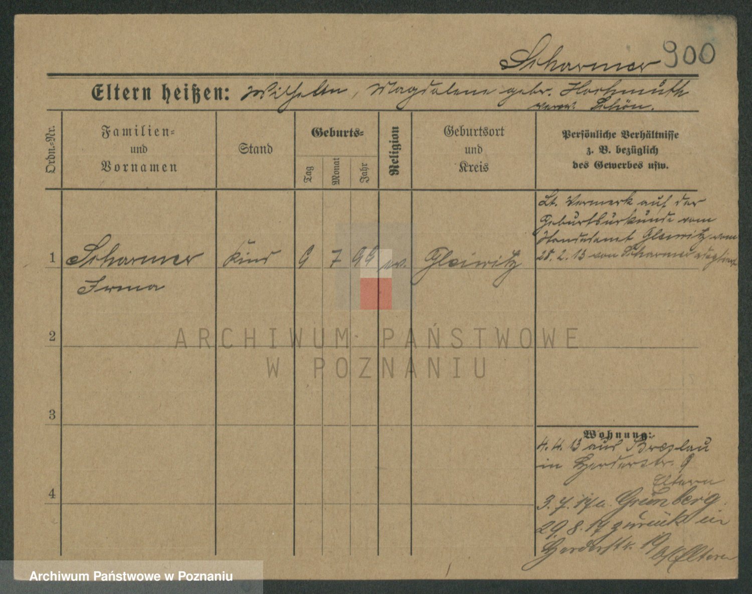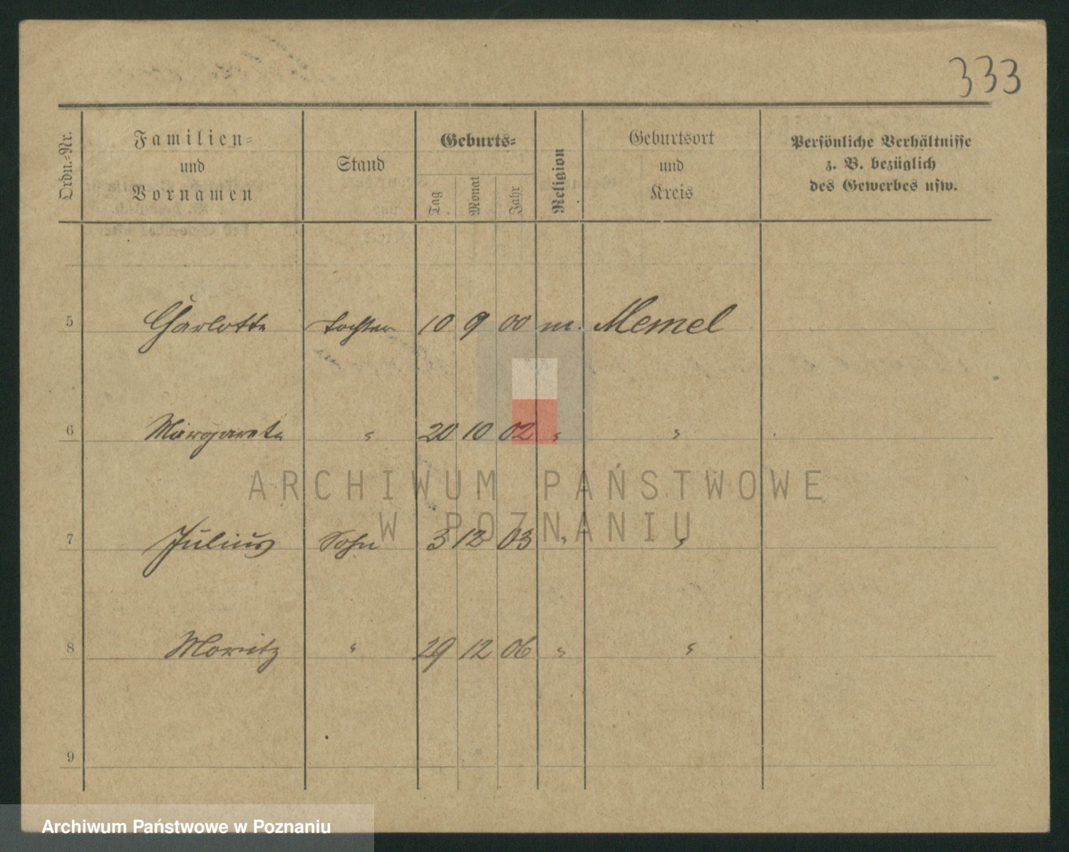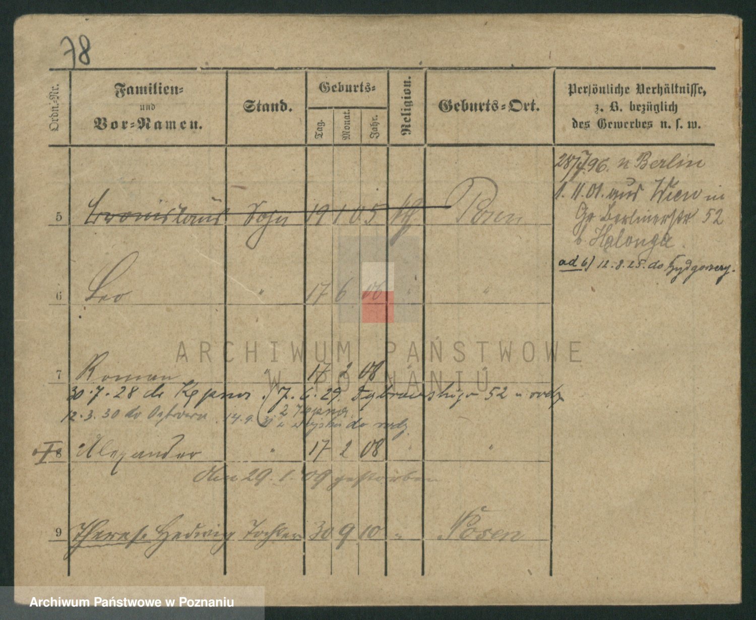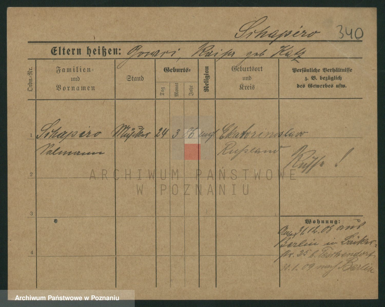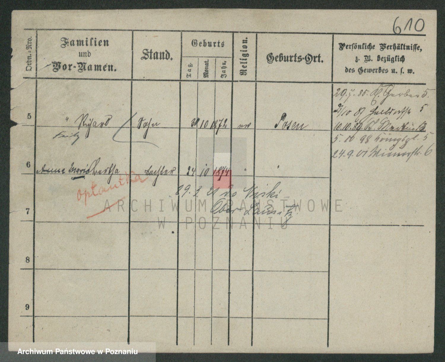 Podgląd karty osobowej dostępny jest po kliknięciu na nazwisko lub ikonkę karty. Można dokonywać powiększenia (ikony na górze) lub przechodzić między kolejnymi skanami (strzałki po bokach).
