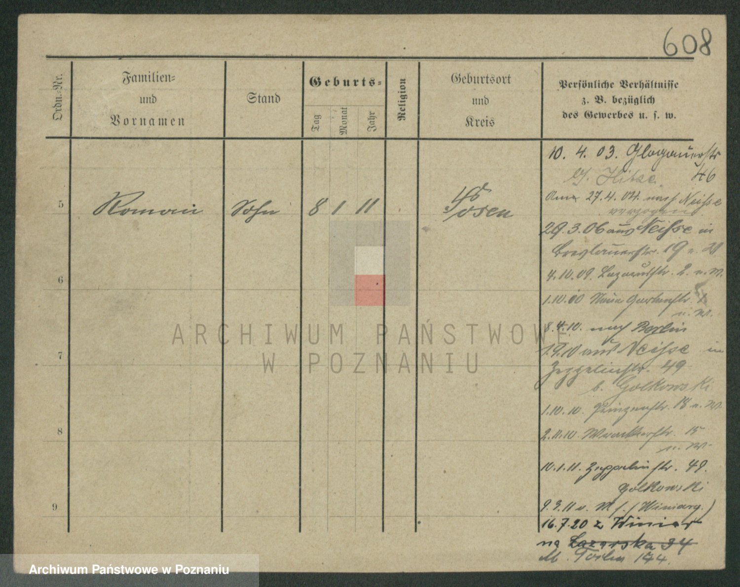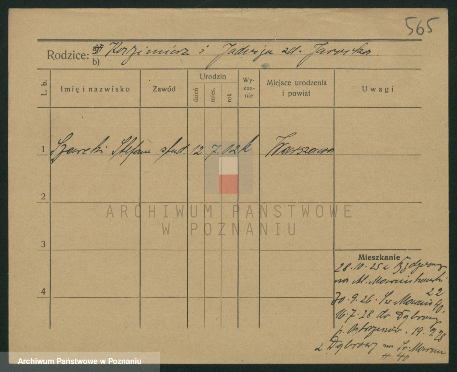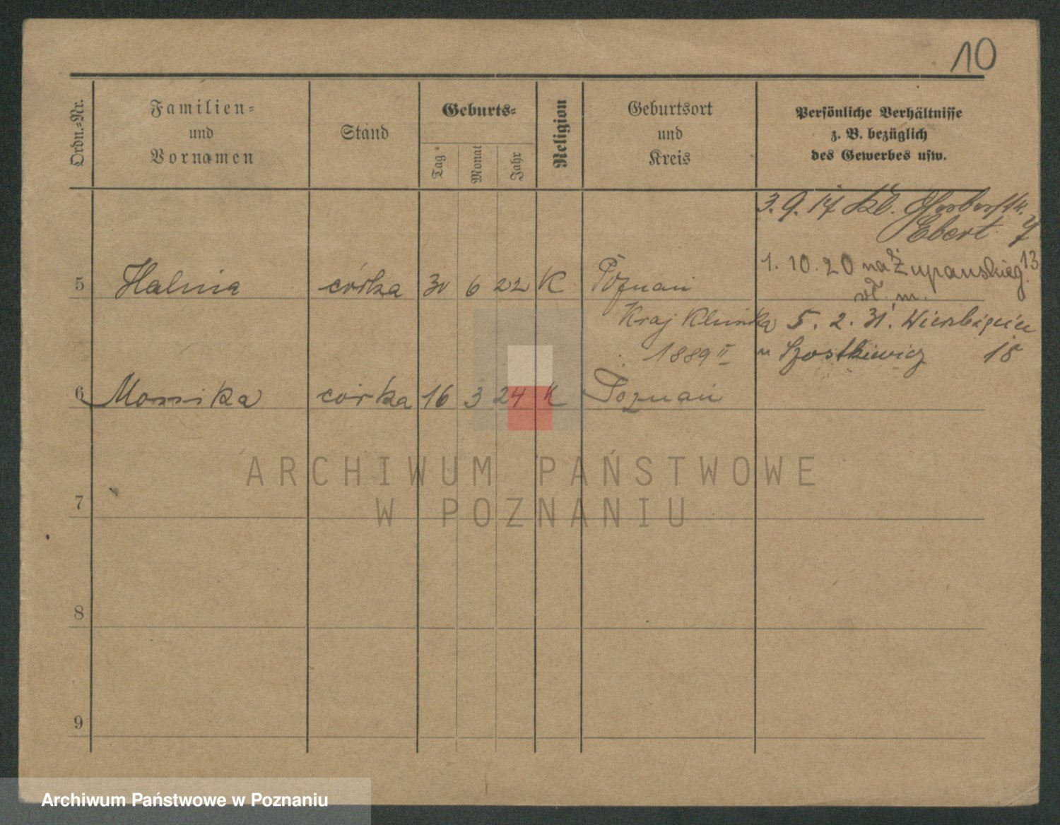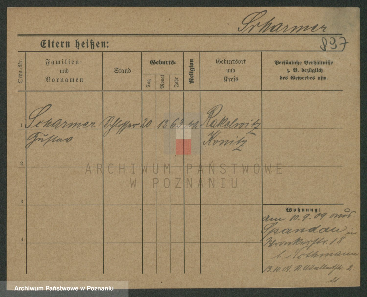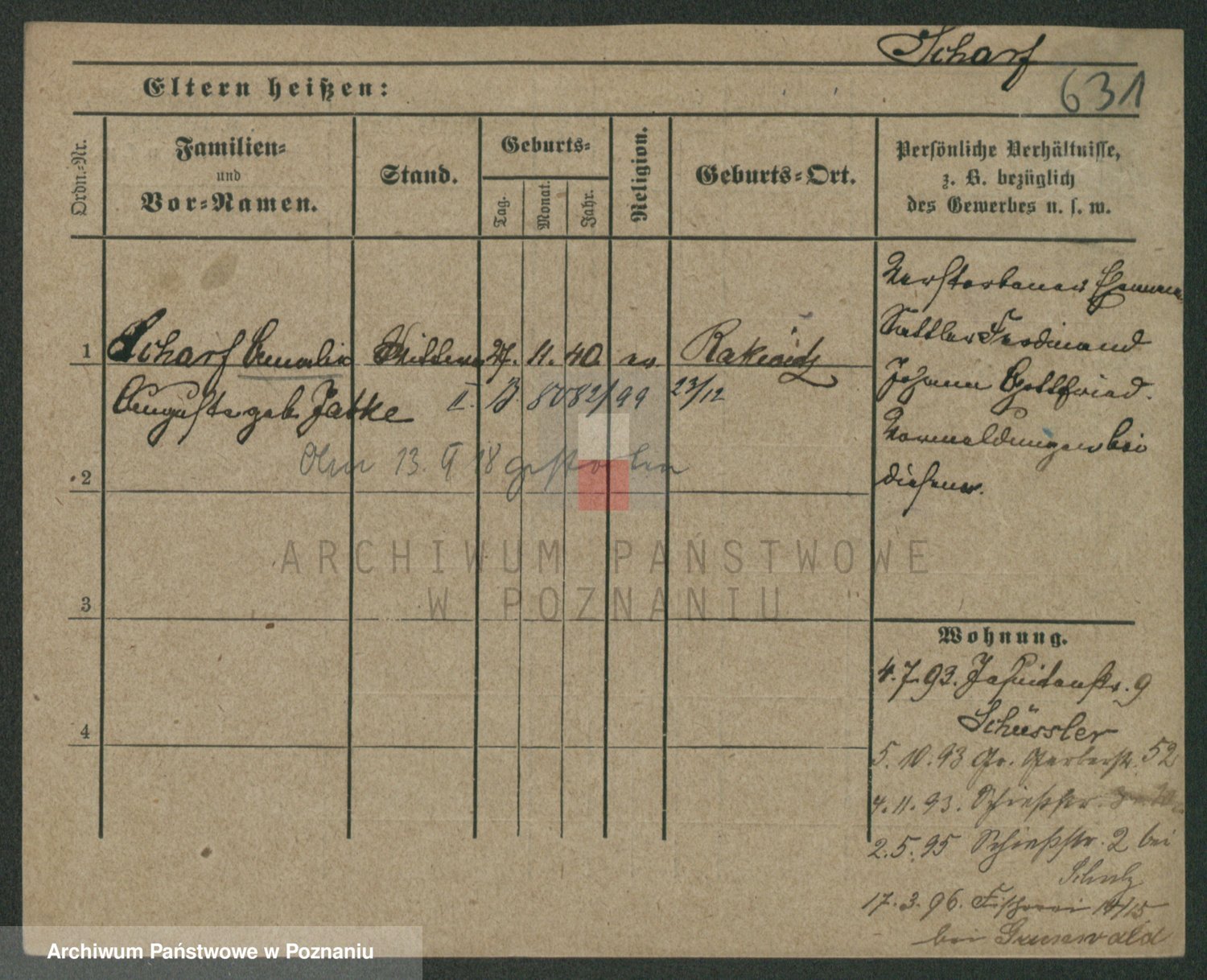Podgląd karty osobowej dostępny jest po kliknięciu na nazwisko lub ikonkę karty. Można dokonywać powiększenia (ikony na górze) lub przechodzić między kolejnymi skanami (strzałki po bokach).