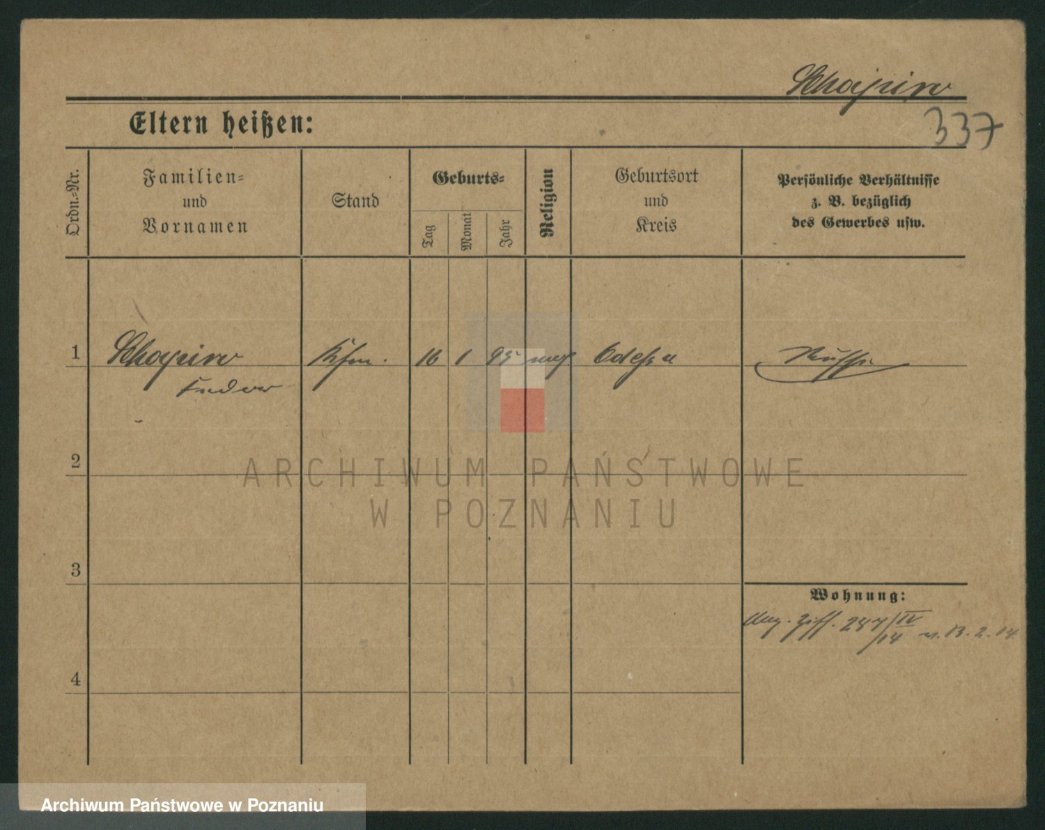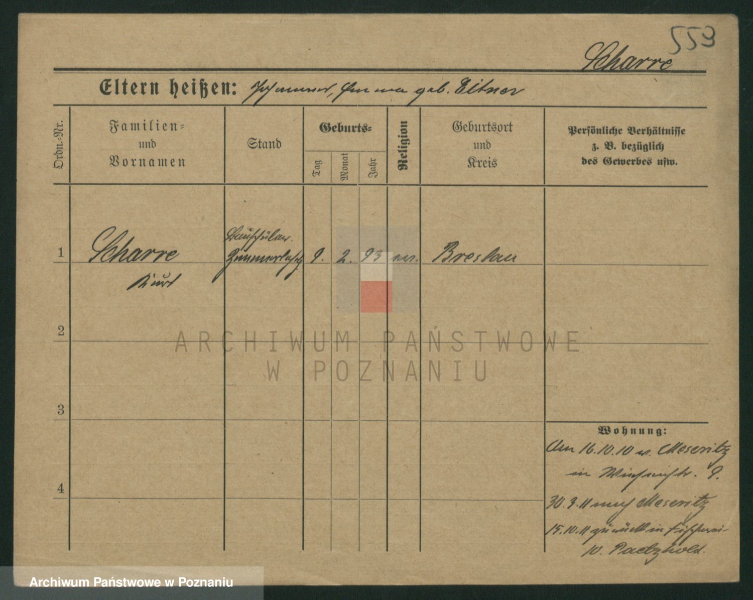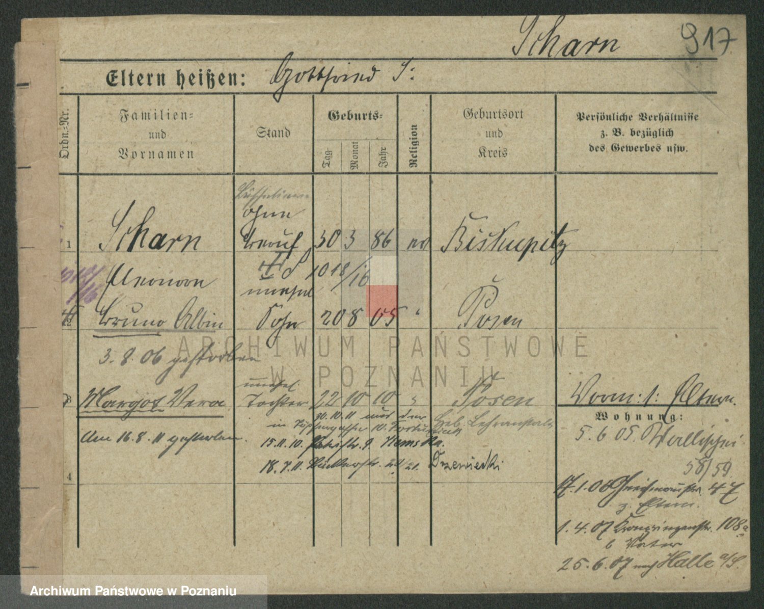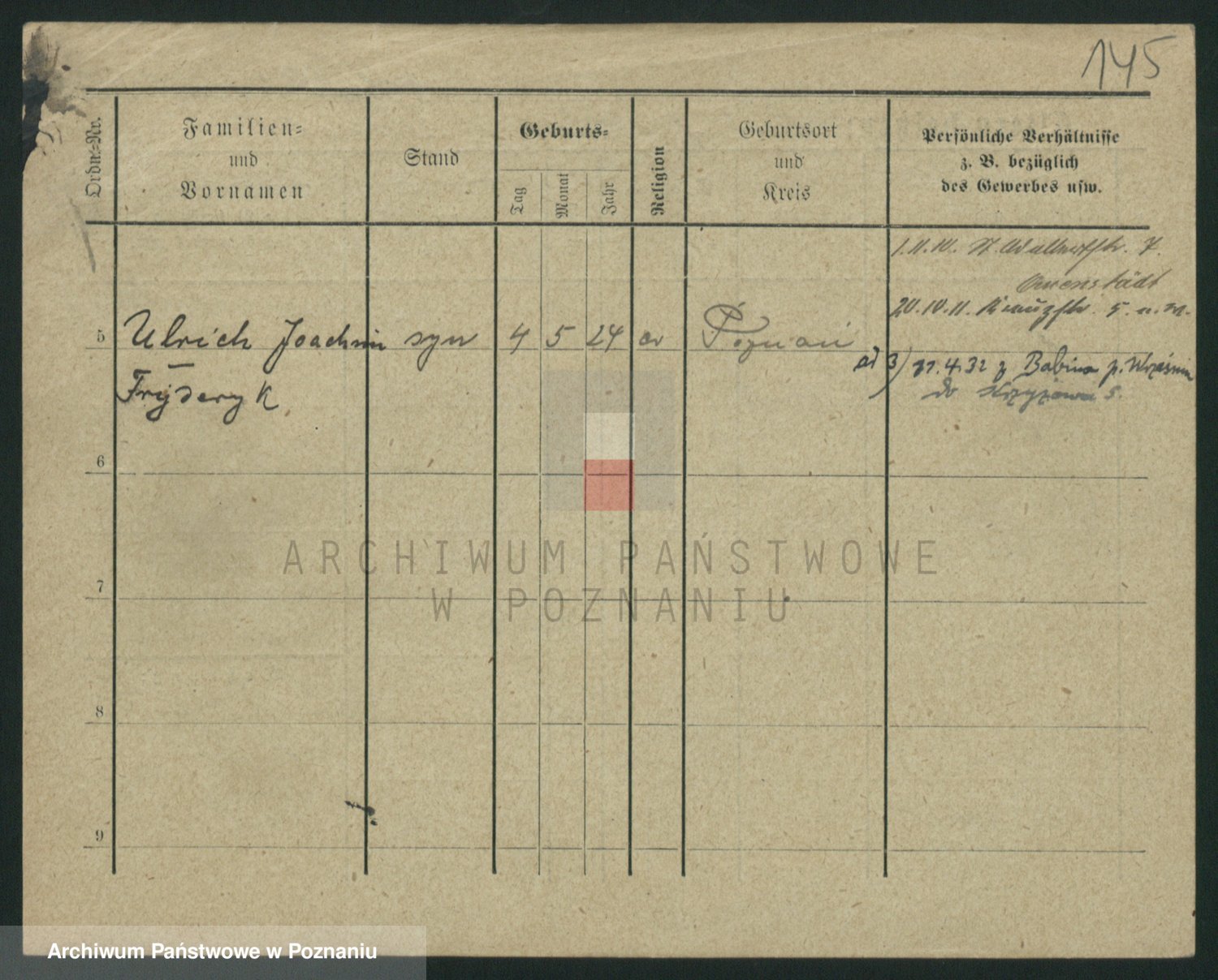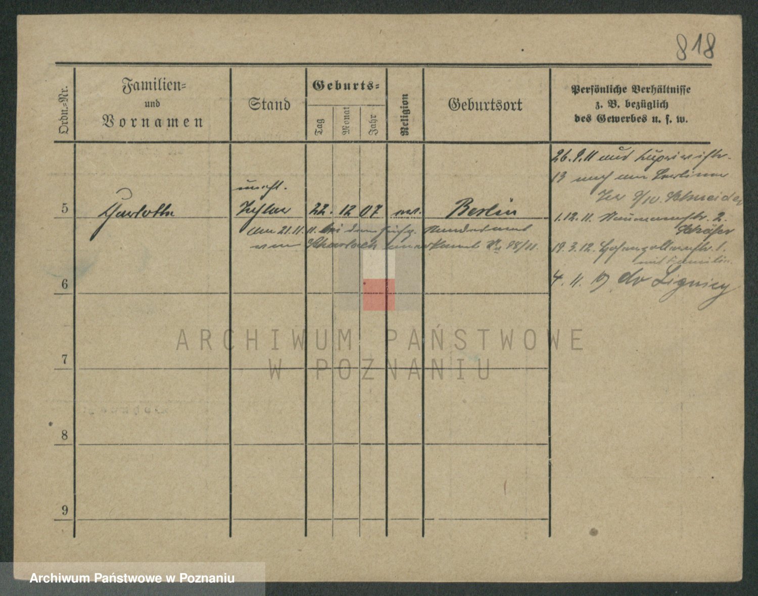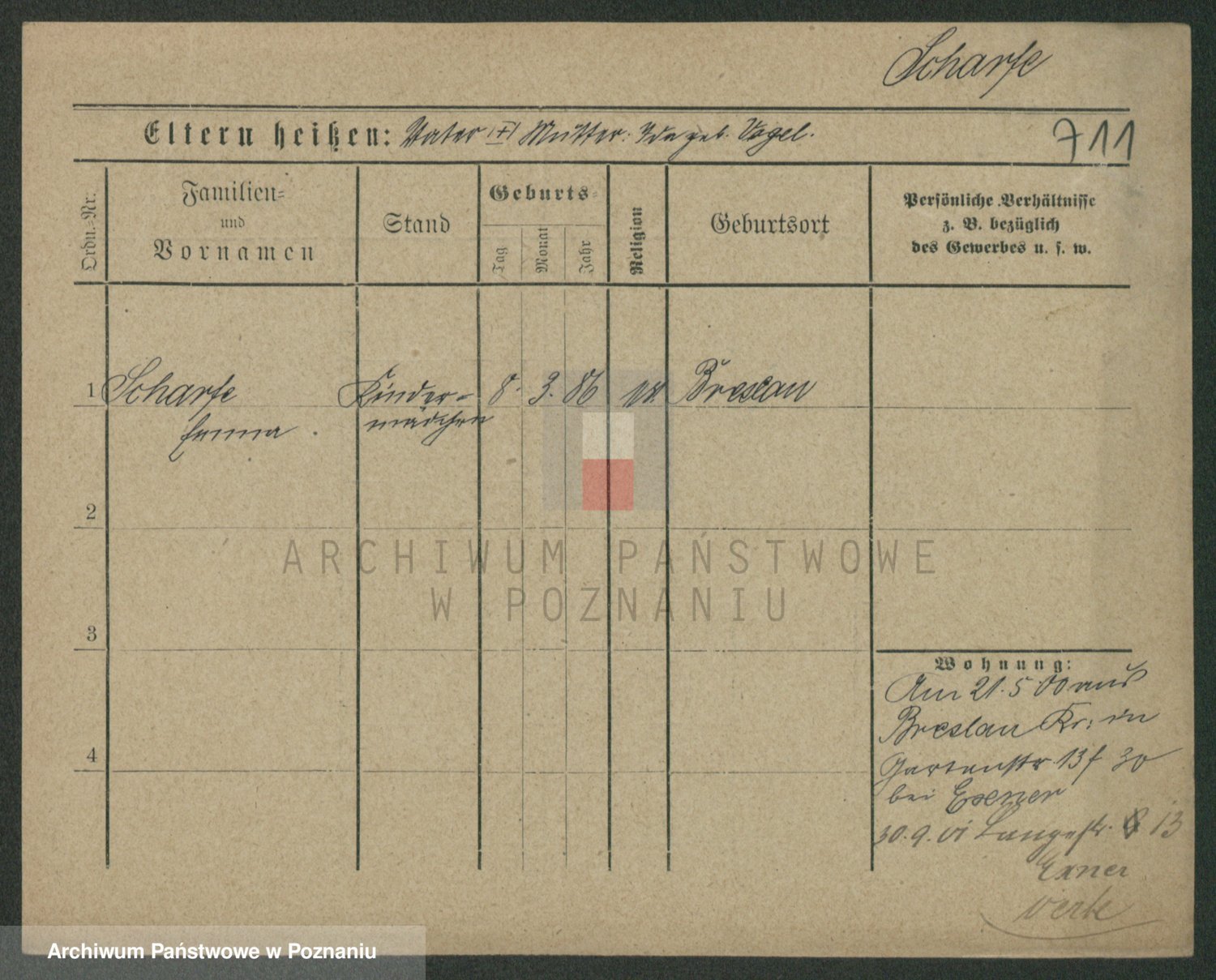 Podgląd karty osobowej dostępny jest po kliknięciu na nazwisko lub ikonkę karty. Można dokonywać powiększenia (ikony na górze) lub przechodzić między kolejnymi skanami (strzałki po bokach).