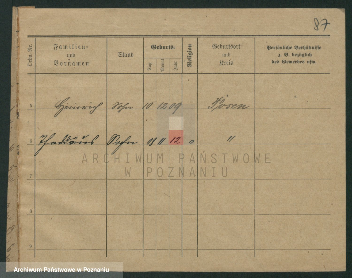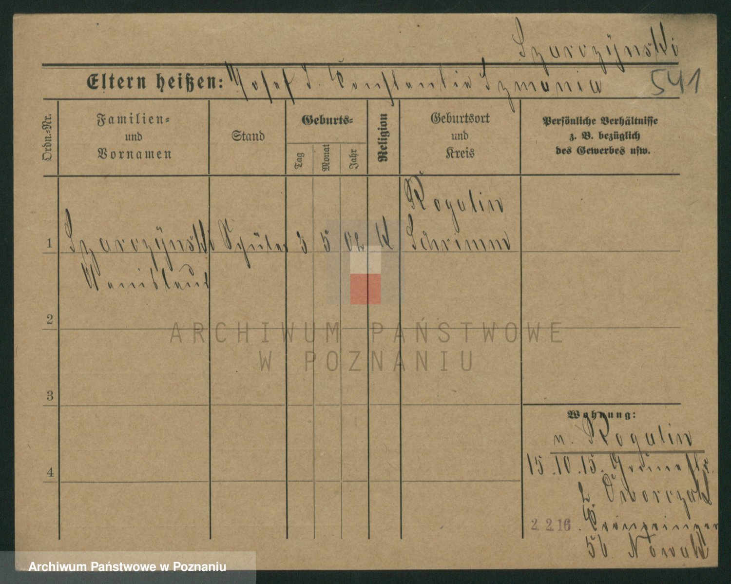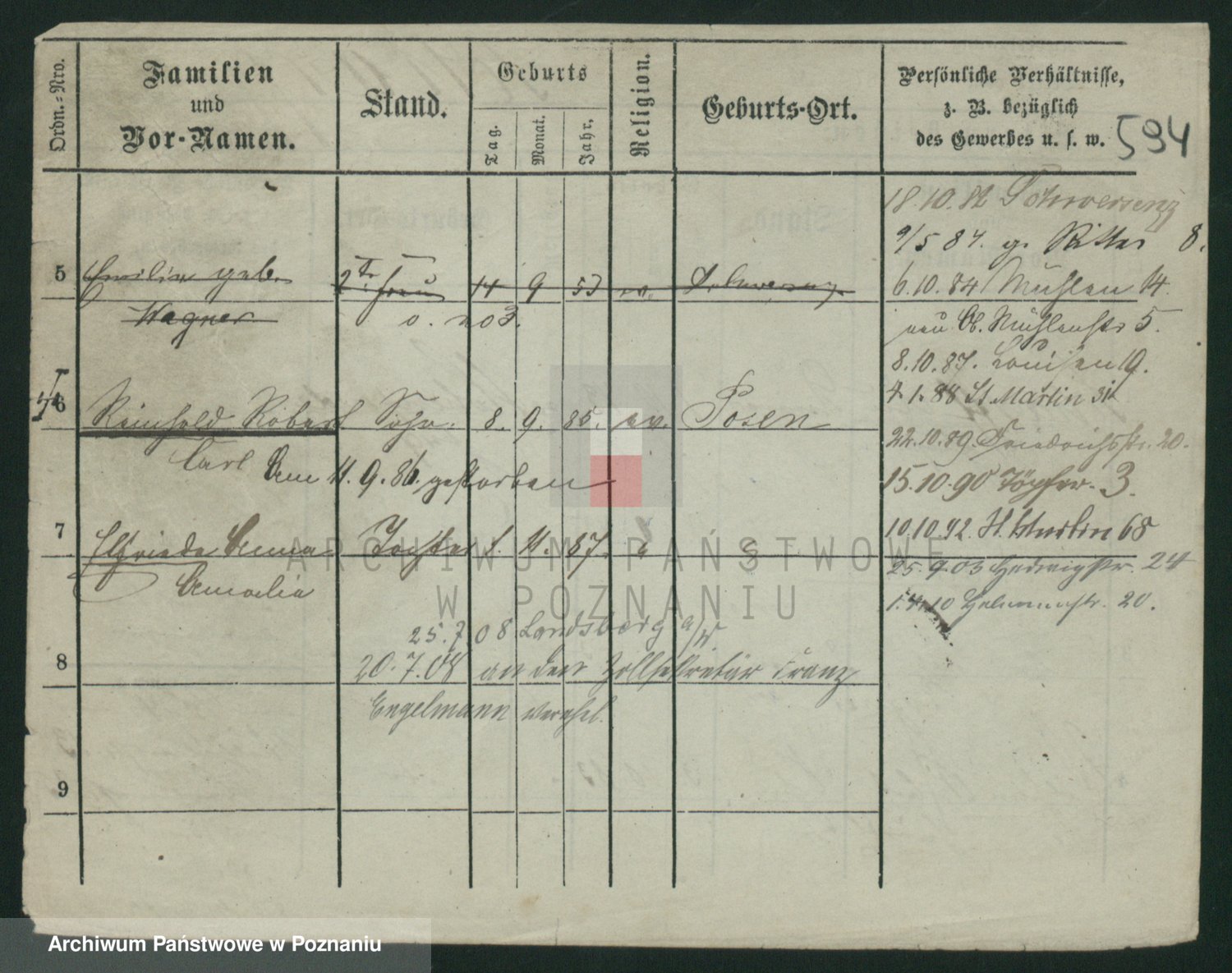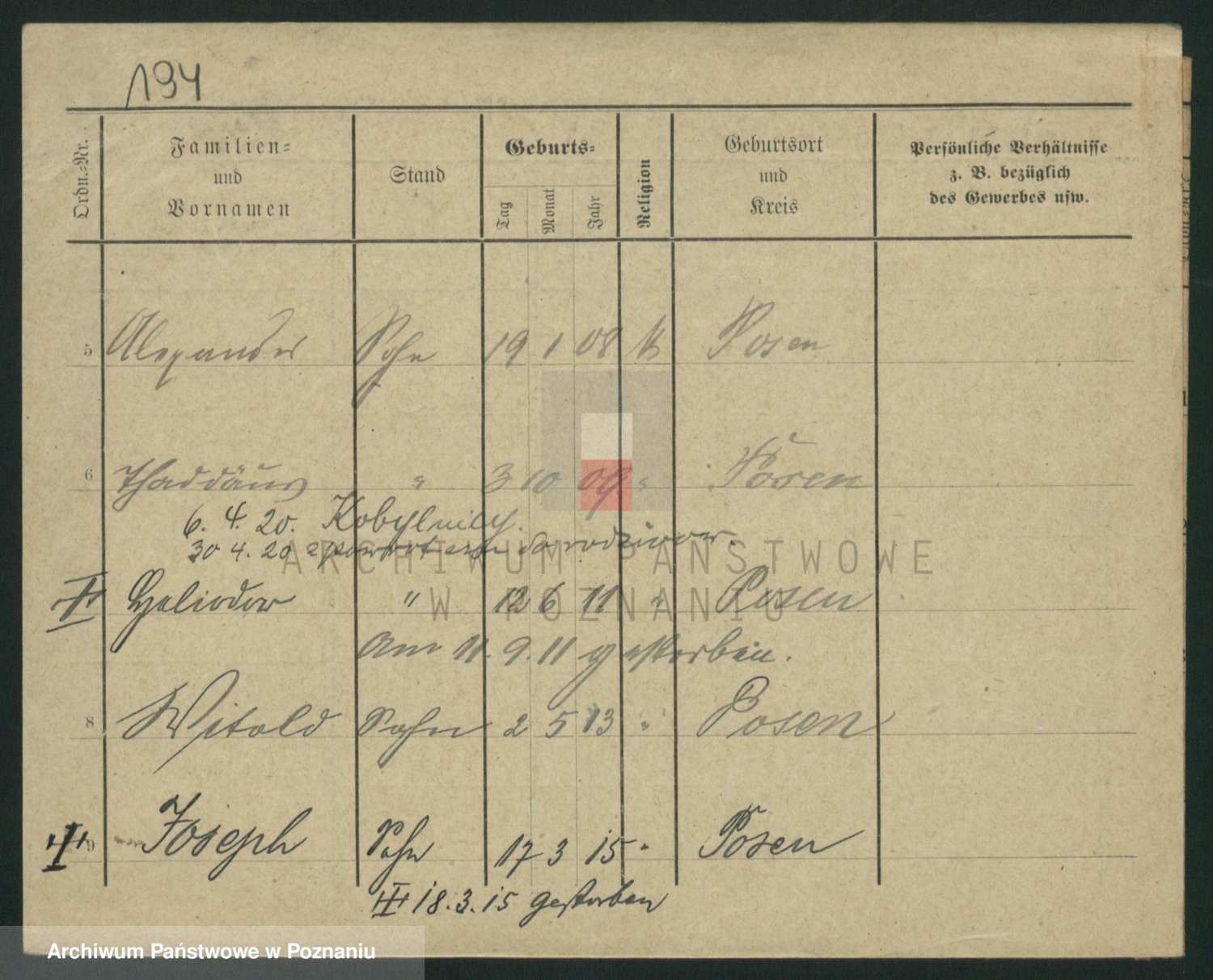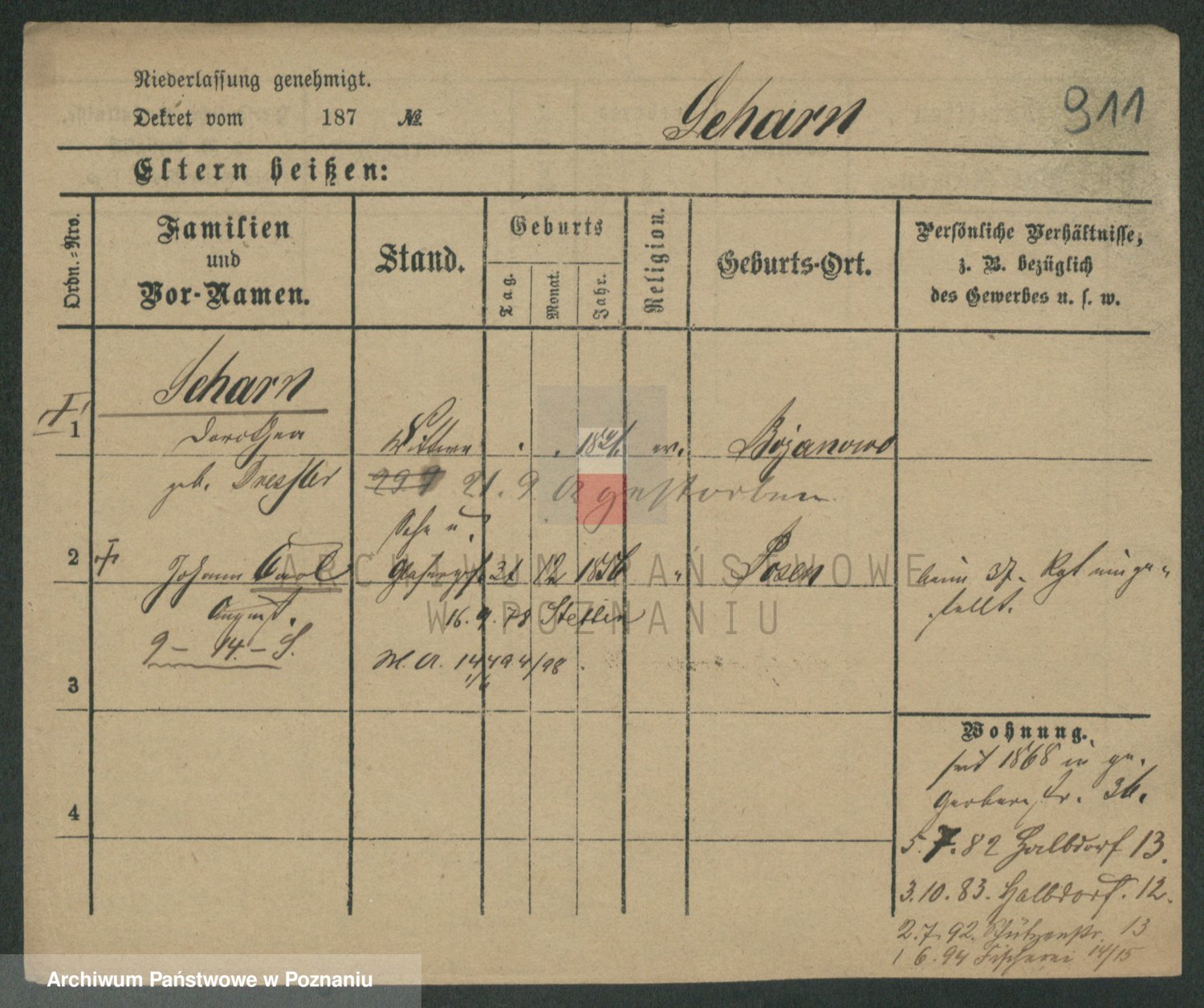 Podgląd karty osobowej dostępny jest po kliknięciu na nazwisko lub ikonkę karty. Można dokonywać powiększenia (ikony na górze) lub przechodzić między kolejnymi skanami (strzałki po bokach).