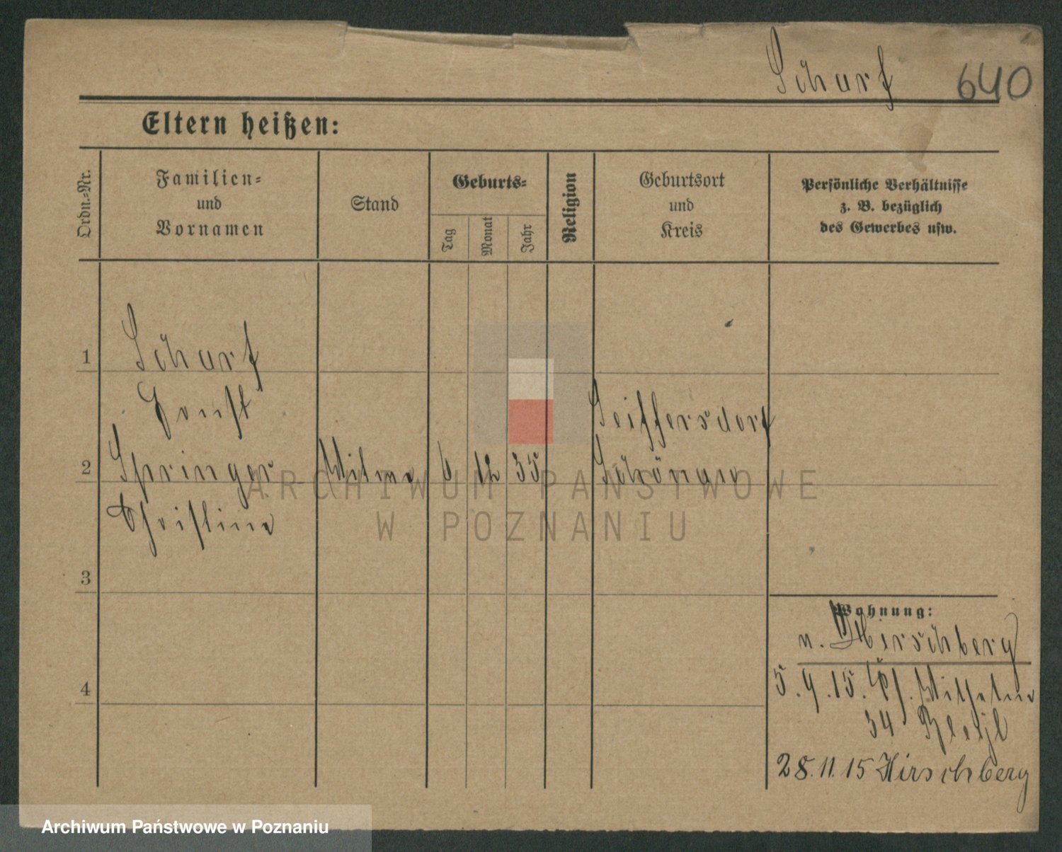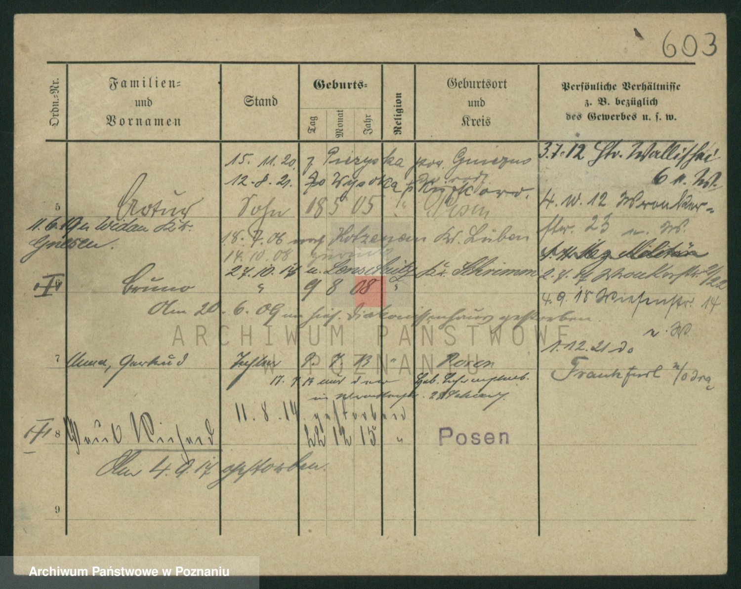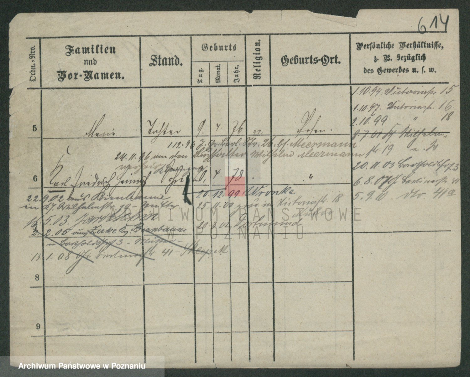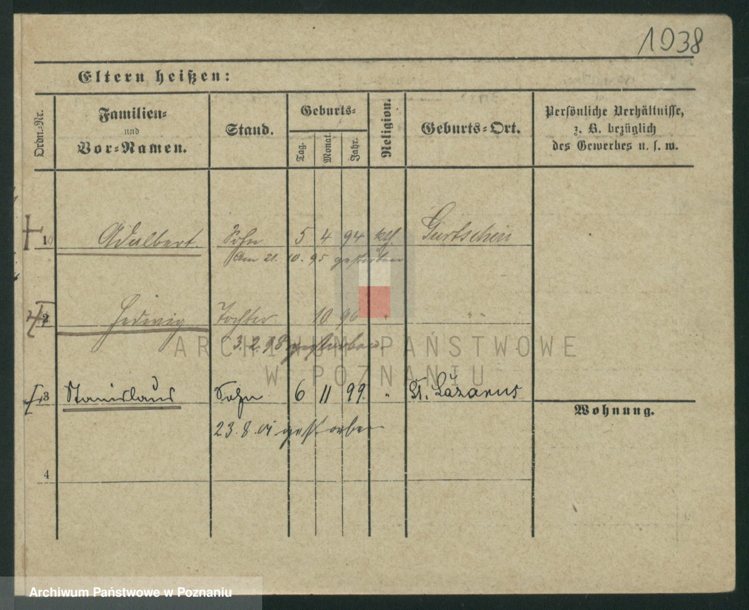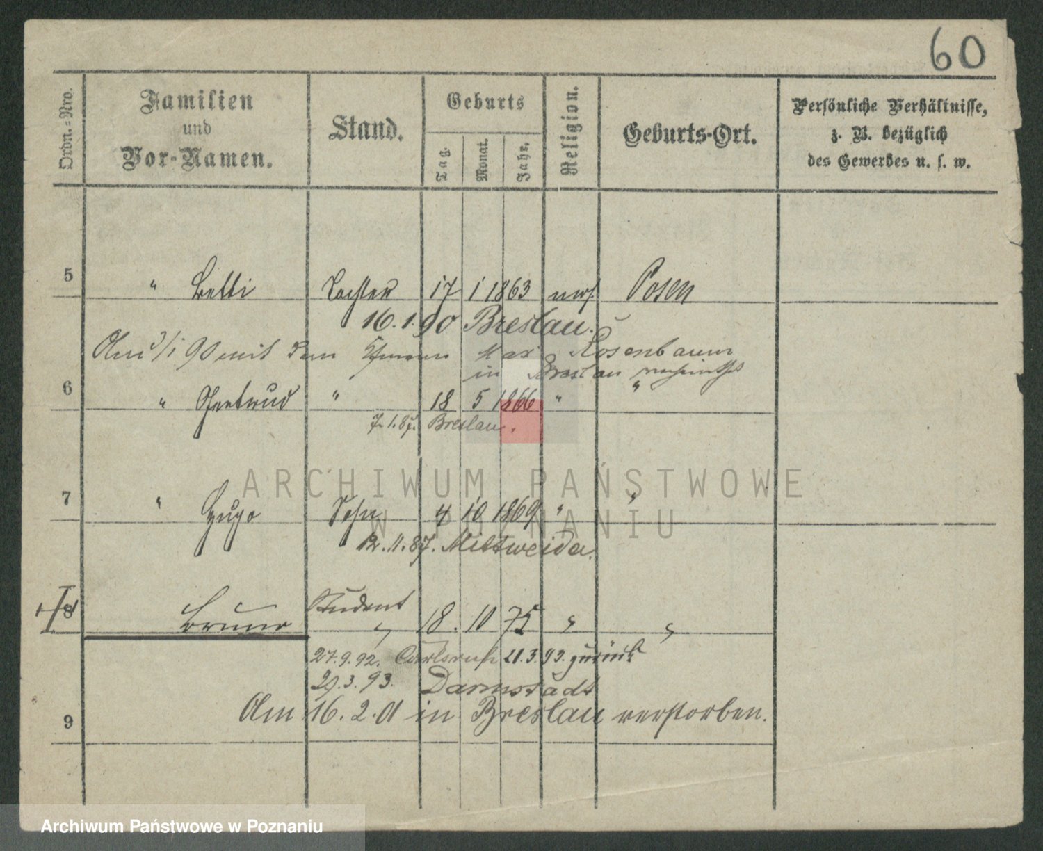 Podgląd karty osobowej dostępny jest po kliknięciu na nazwisko lub ikonkę karty. Można dokonywać powiększenia (ikony na górze) lub przechodzić między kolejnymi skanami (strzałki po bokach).