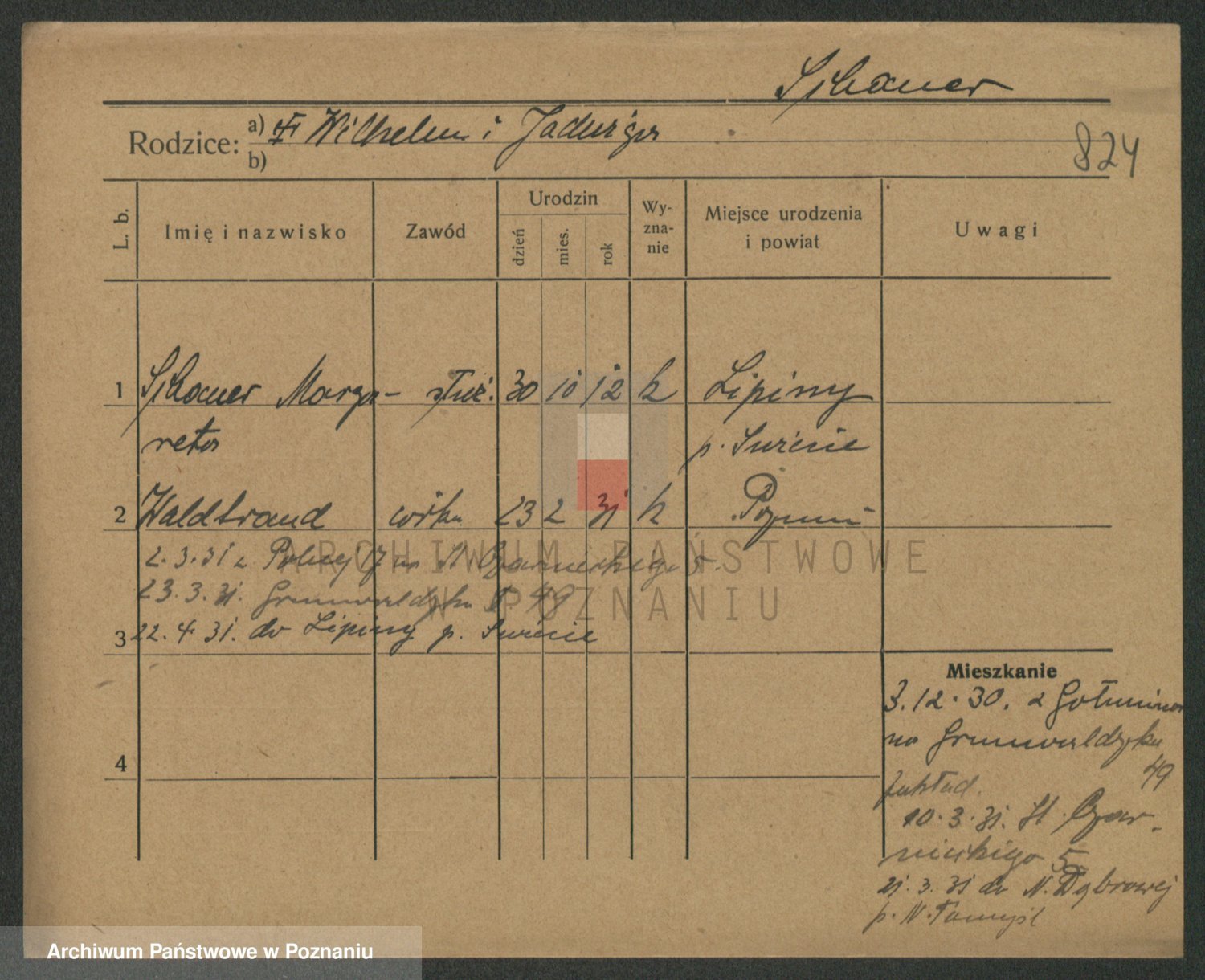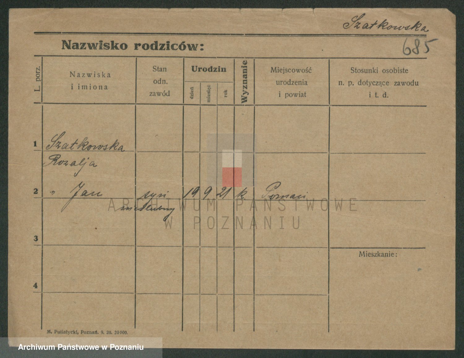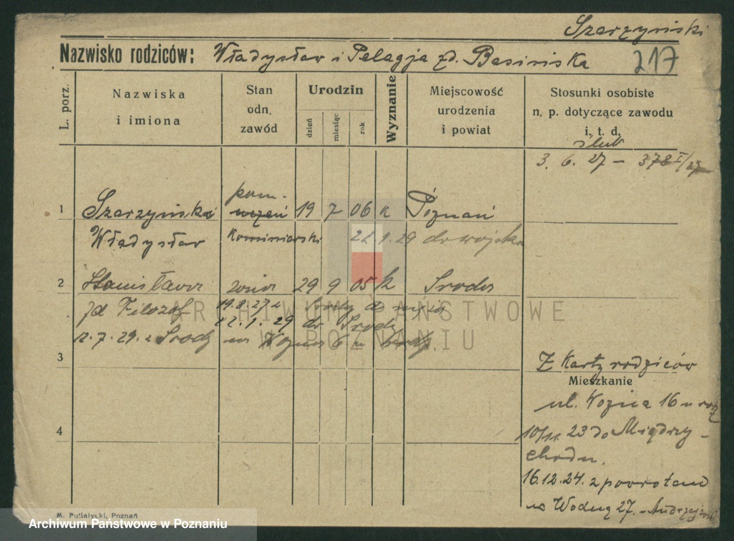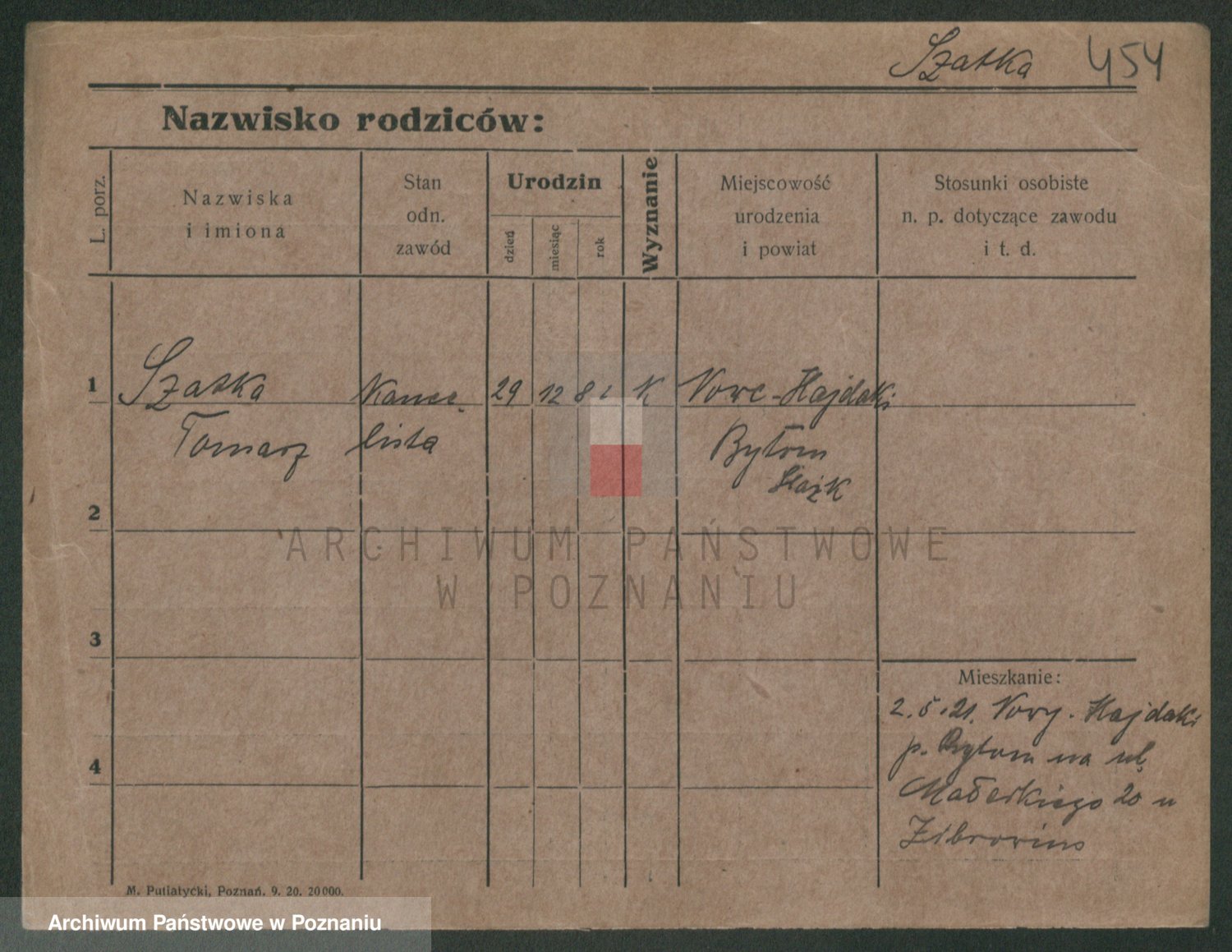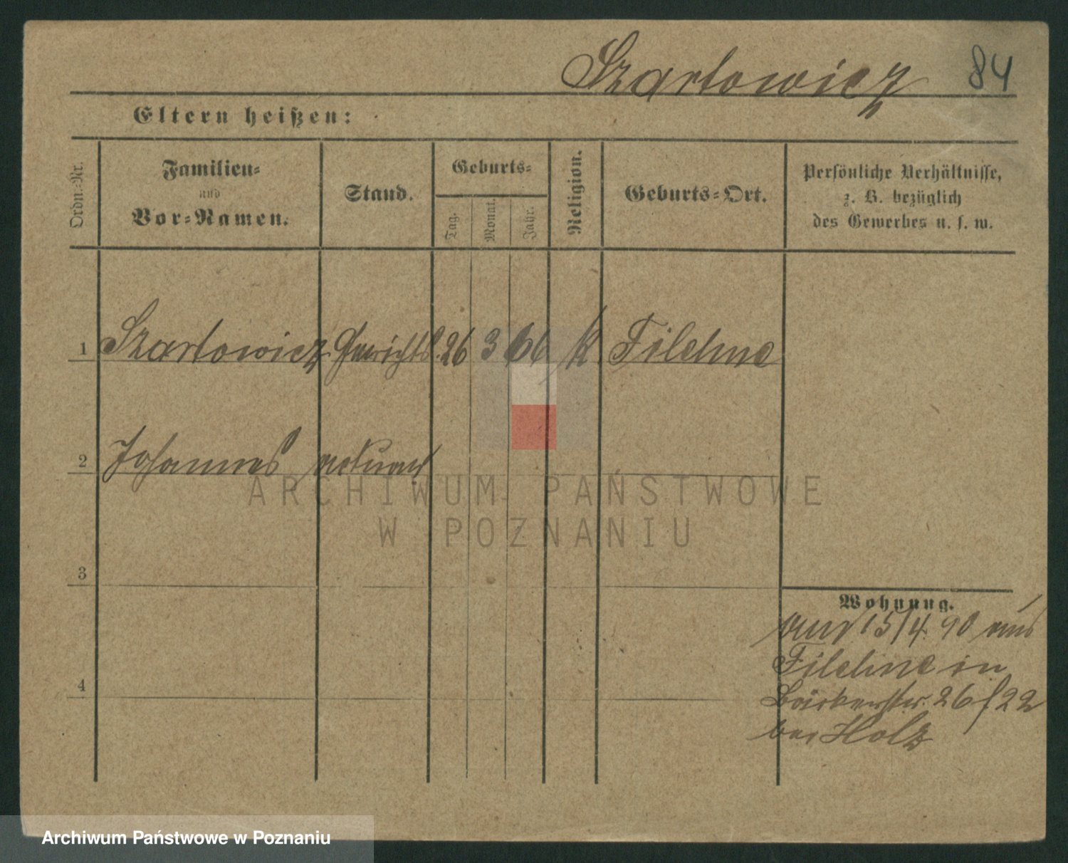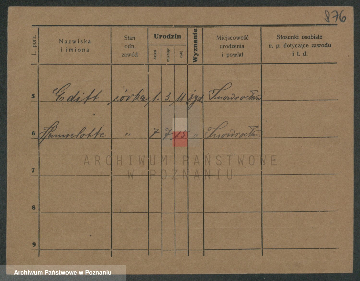 Podgląd karty osobowej dostępny jest po kliknięciu na nazwisko lub ikonkę karty. Można dokonywać powiększenia (ikony na górze) lub przechodzić między kolejnymi skanami (strzałki po bokach).