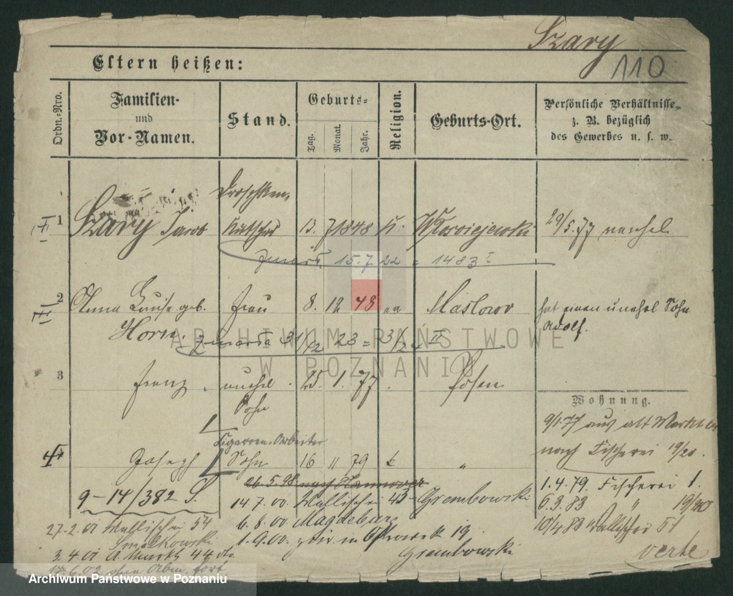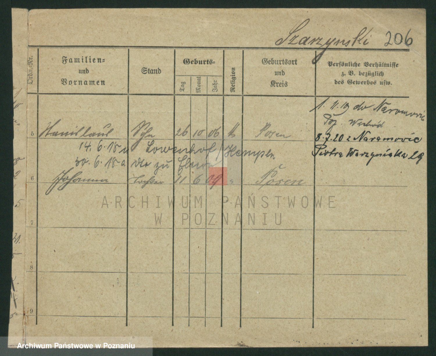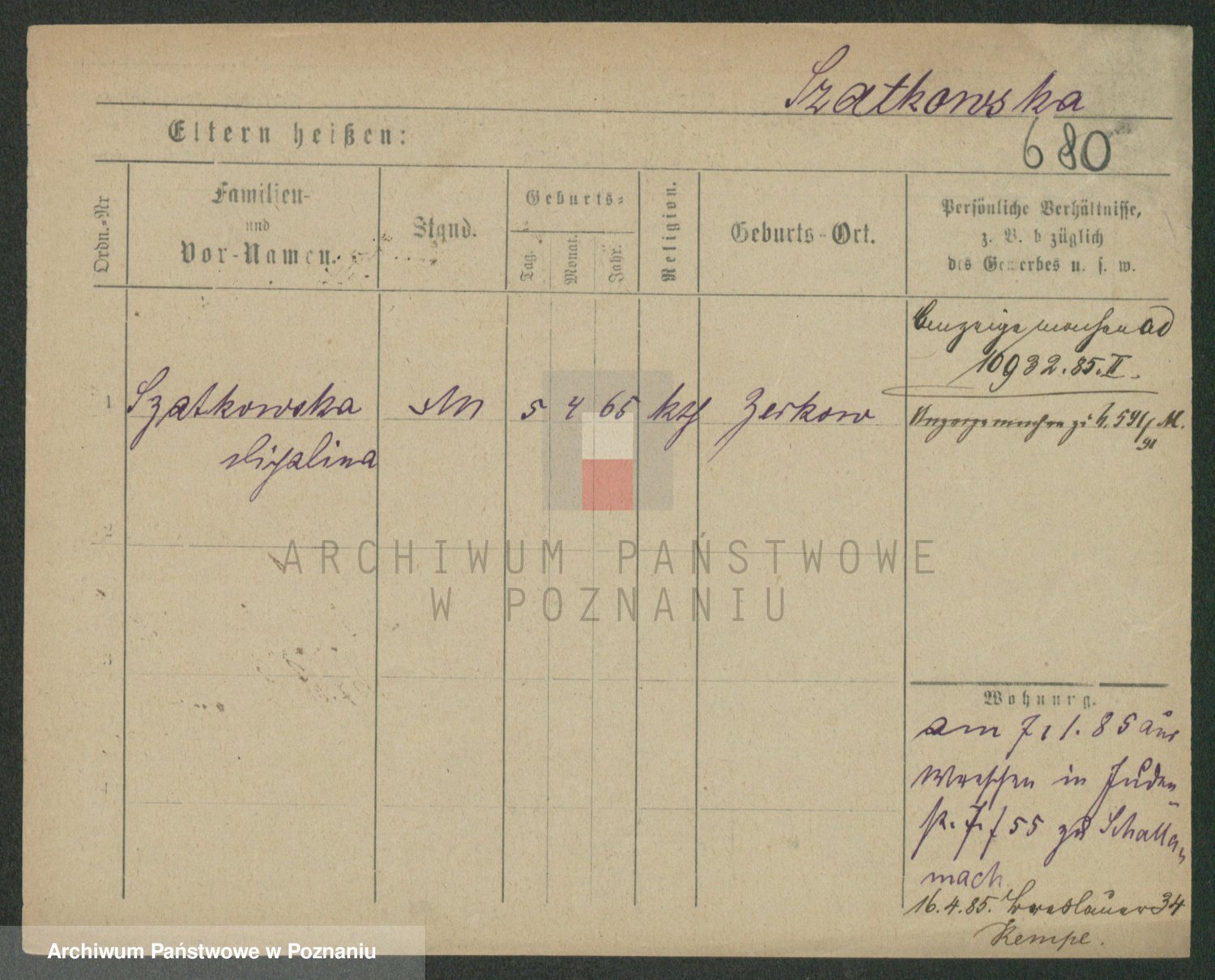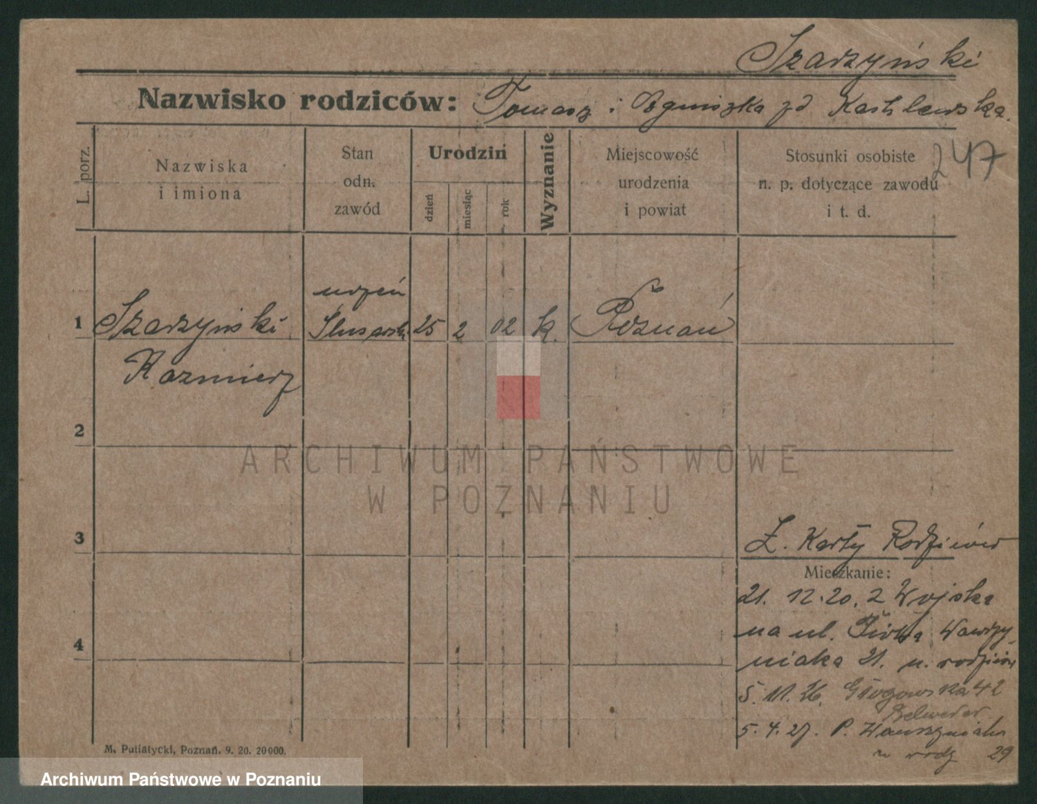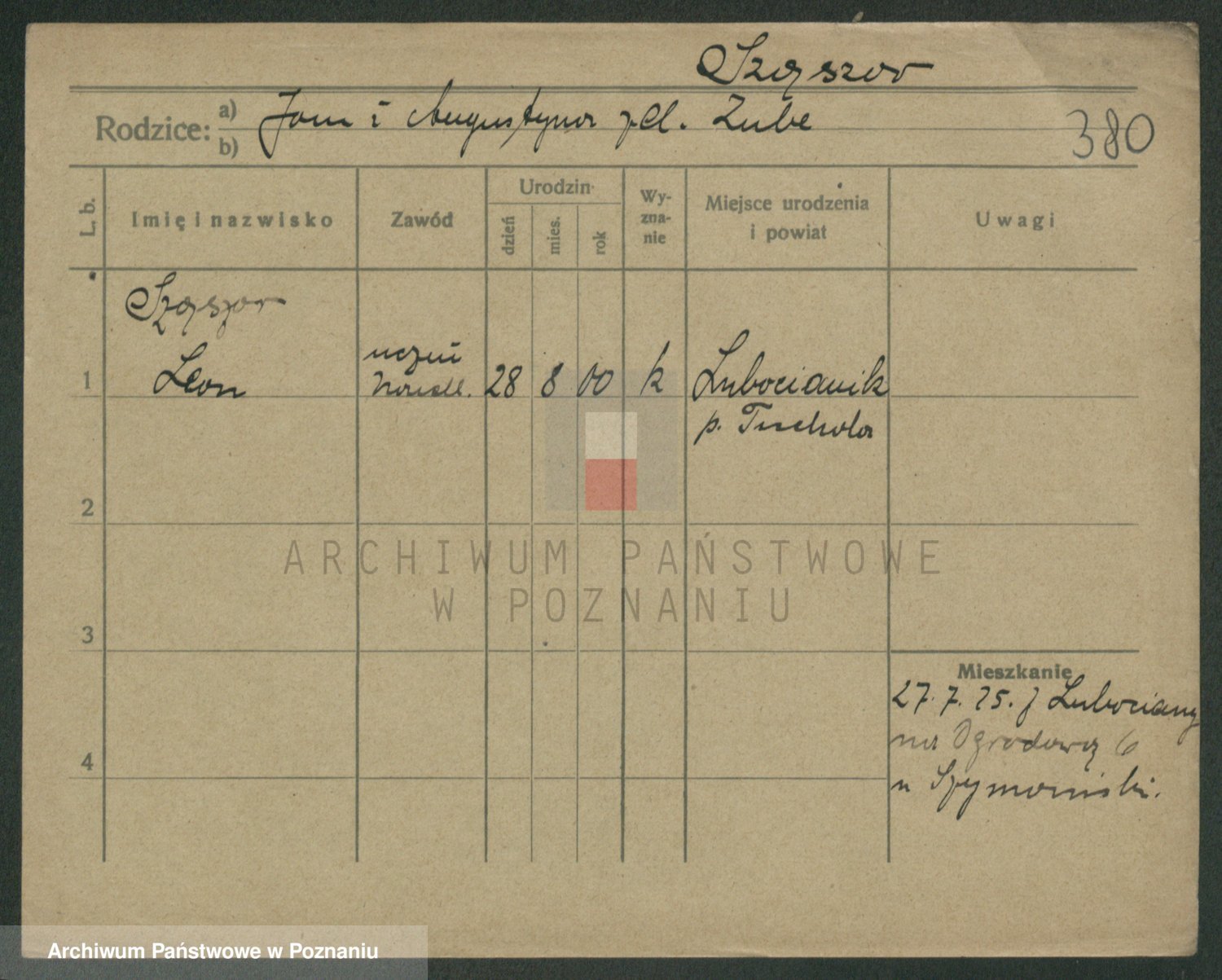 Podgląd karty osobowej dostępny jest po kliknięciu na nazwisko lub ikonkę karty. Można dokonywać powiększenia (ikony na górze) lub przechodzić między kolejnymi skanami (strzałki po bokach).