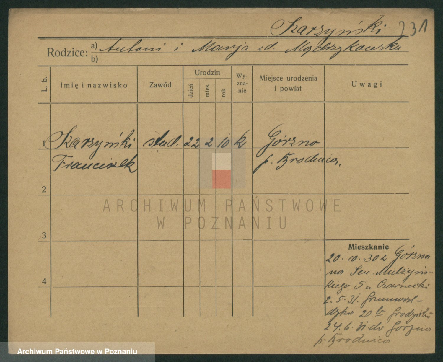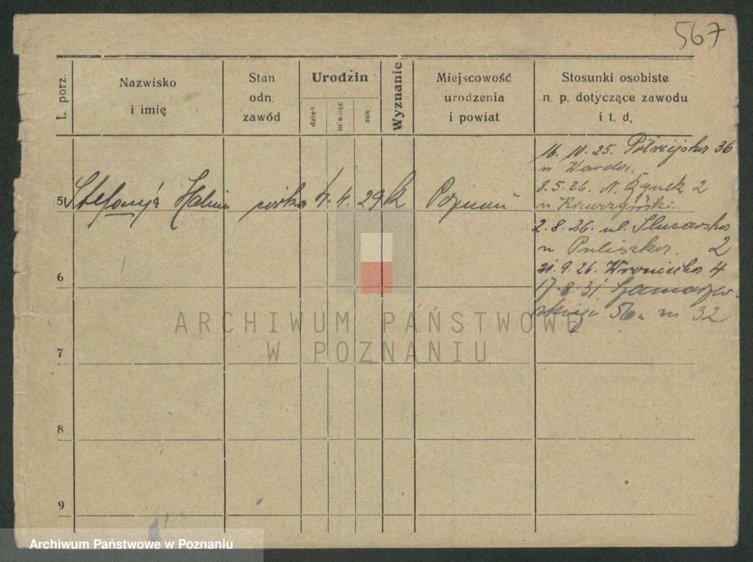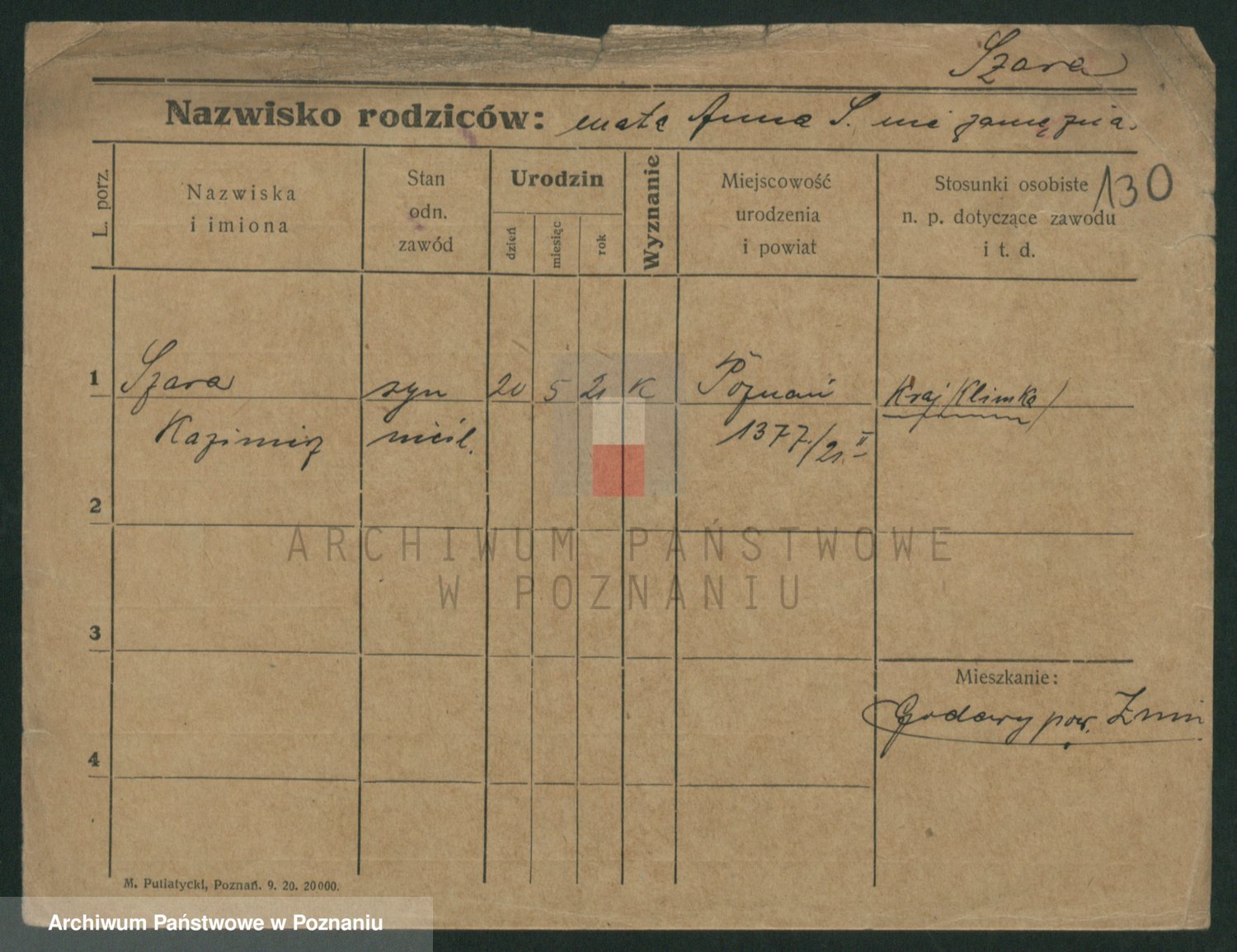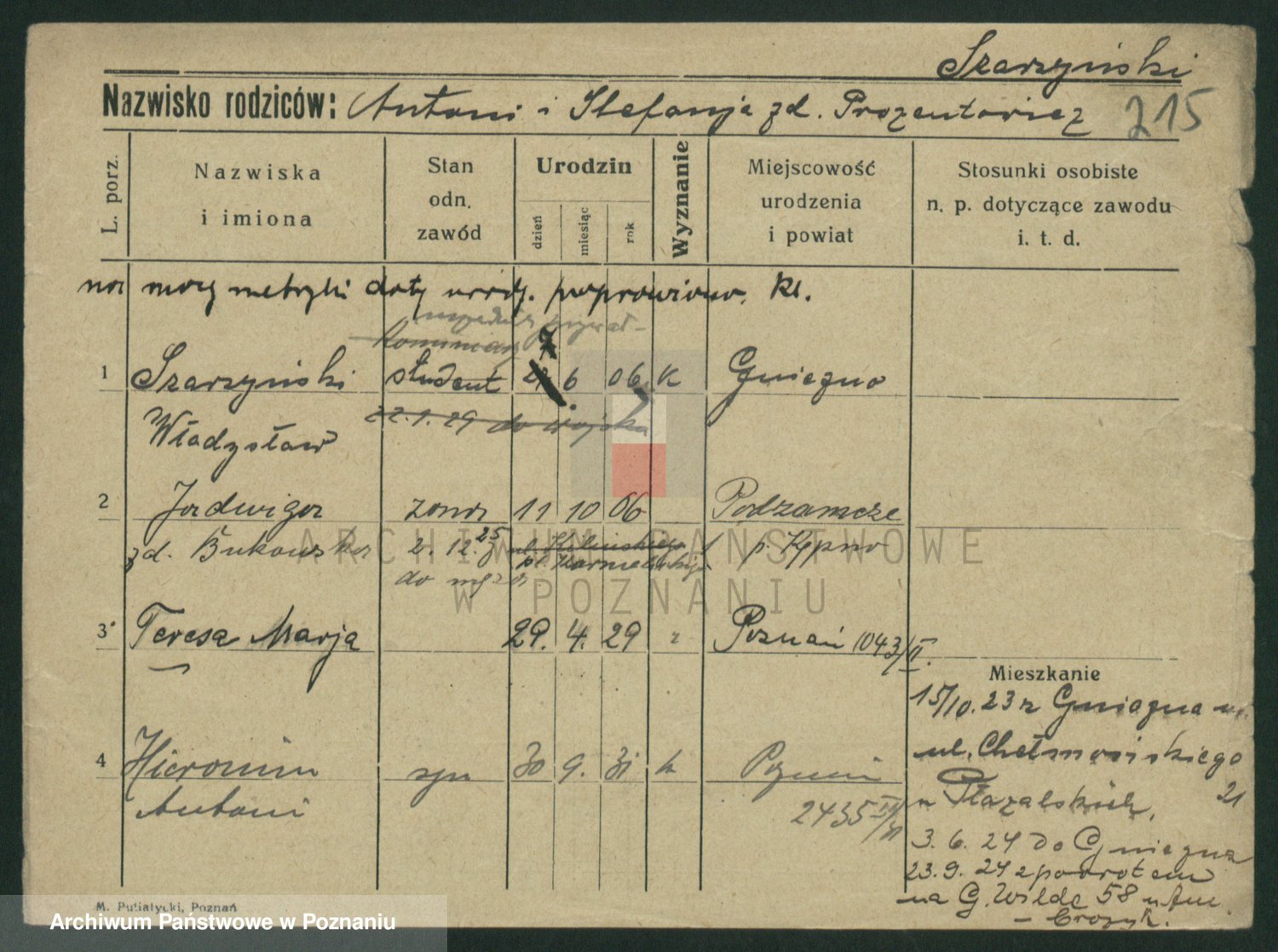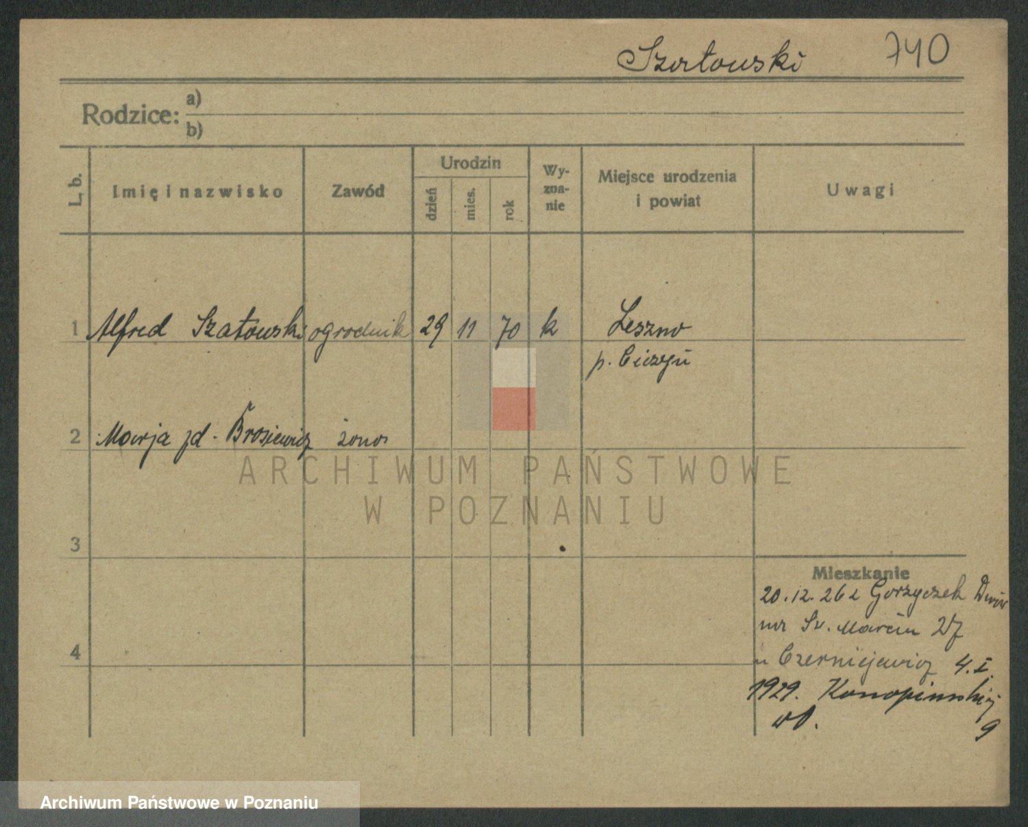 Podgląd karty osobowej dostępny jest po kliknięciu na nazwisko lub ikonkę karty. Można dokonywać powiększenia (ikony na górze) lub przechodzić między kolejnymi skanami (strzałki po bokach).