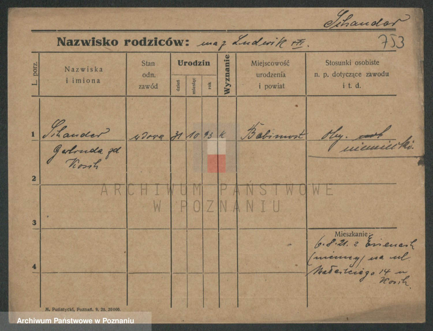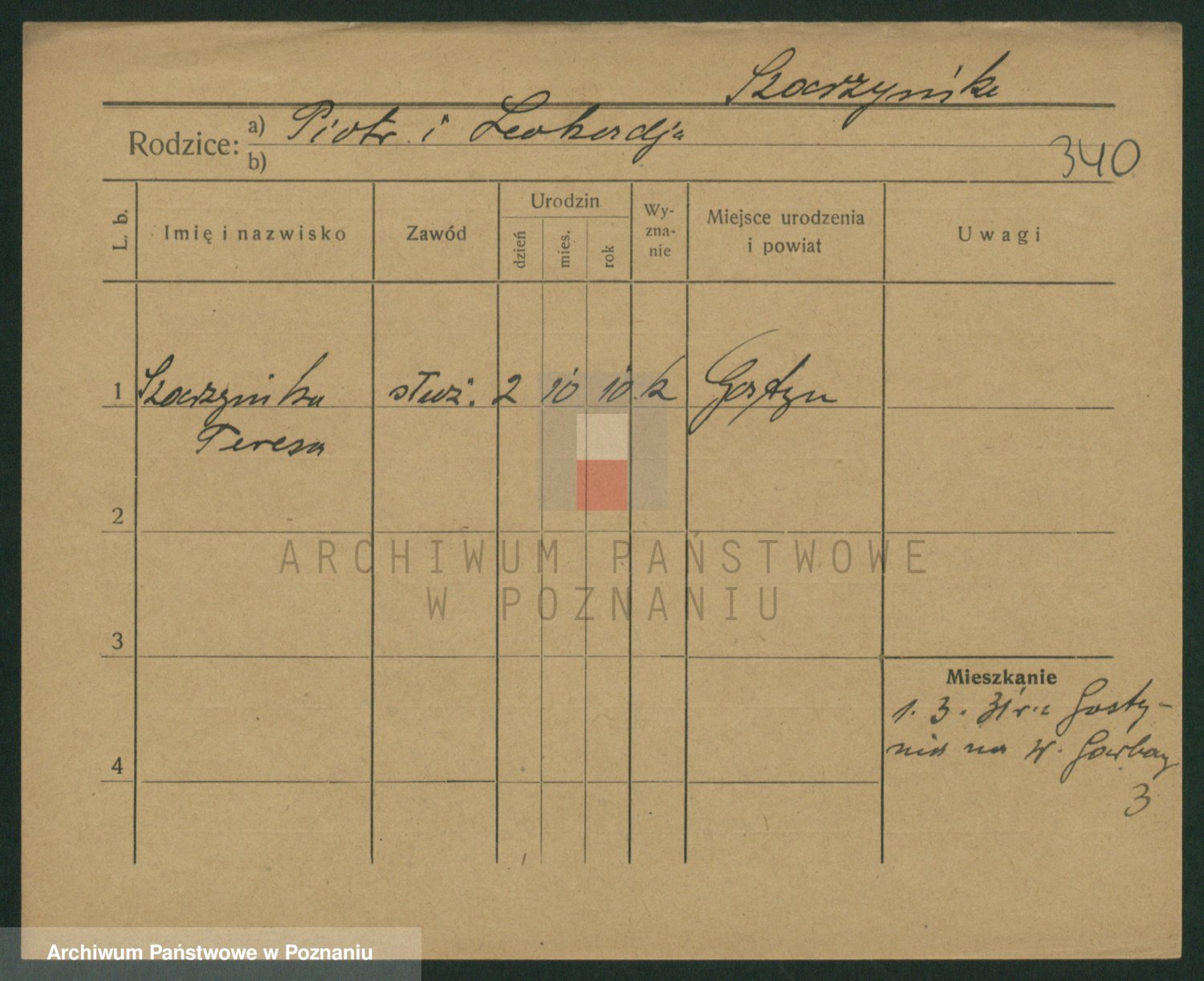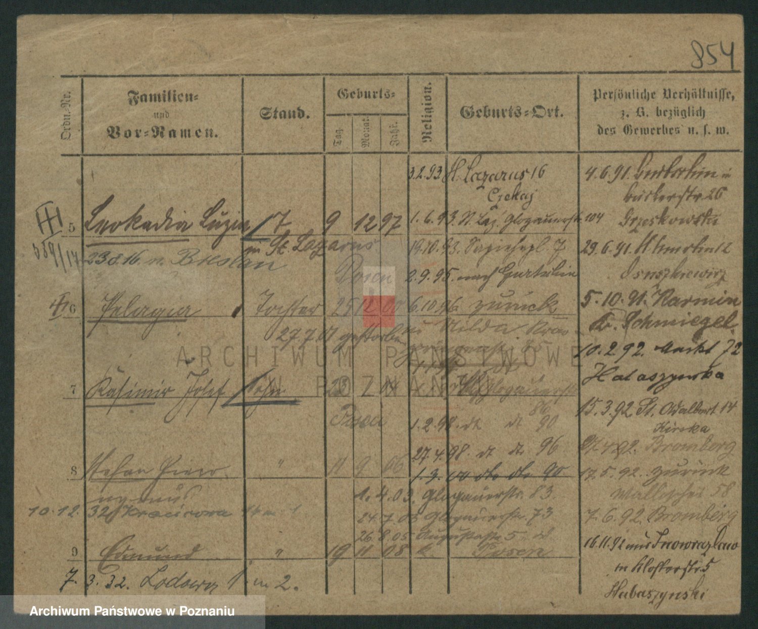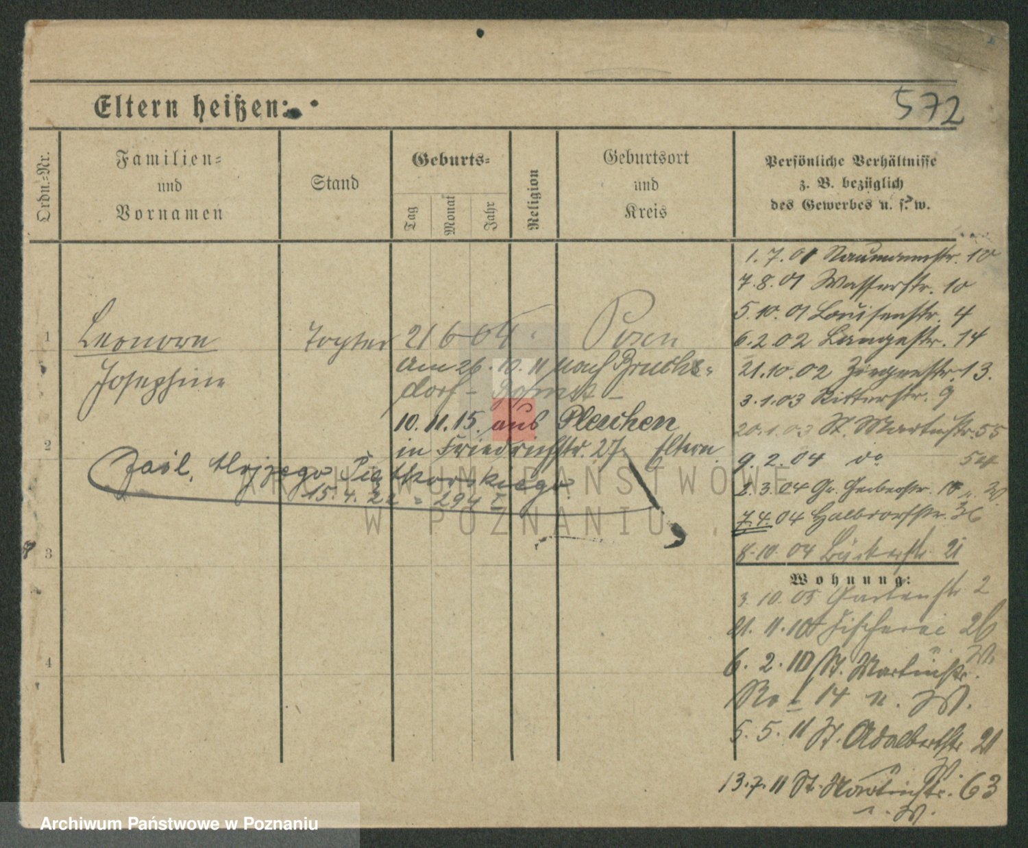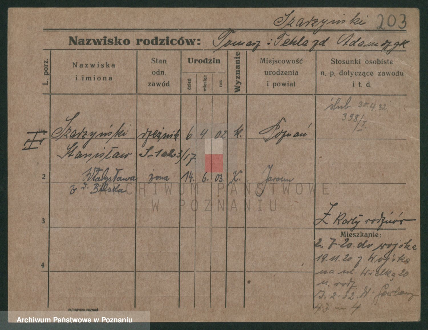 Podgląd karty osobowej dostępny jest po kliknięciu na nazwisko lub ikonkę karty. Można dokonywać powiększenia (ikony na górze) lub przechodzić między kolejnymi skanami (strzałki po bokach).