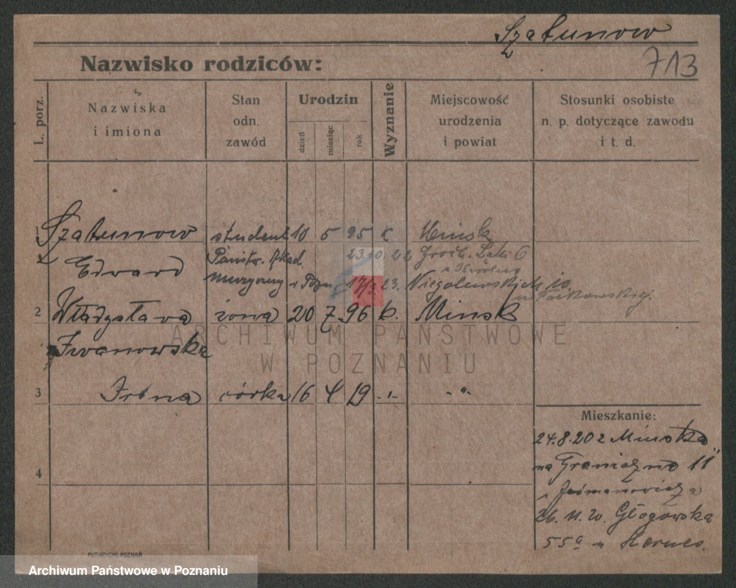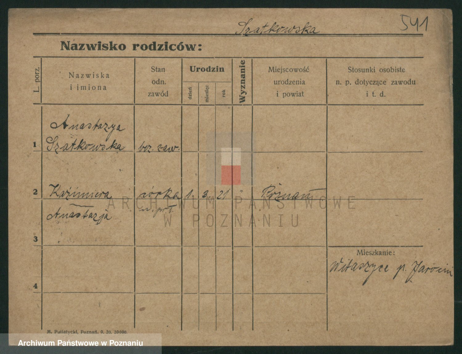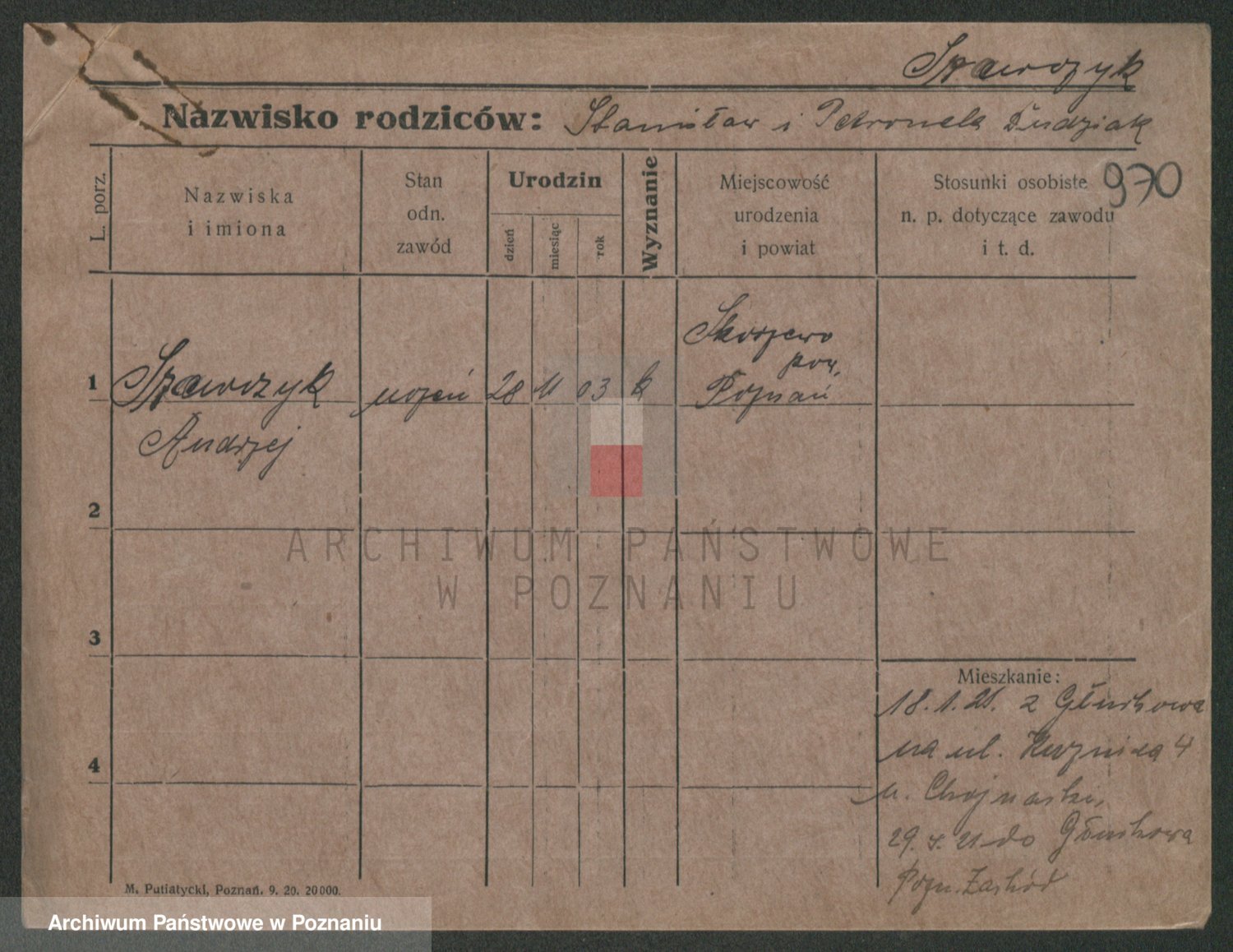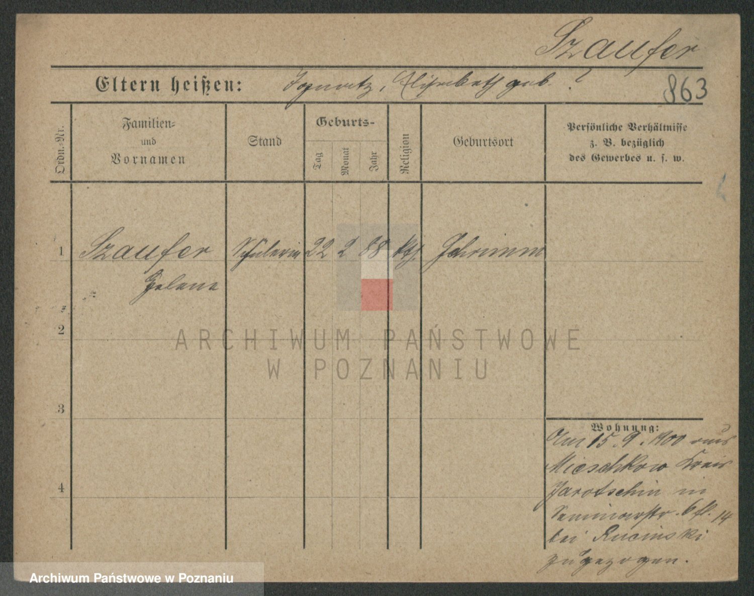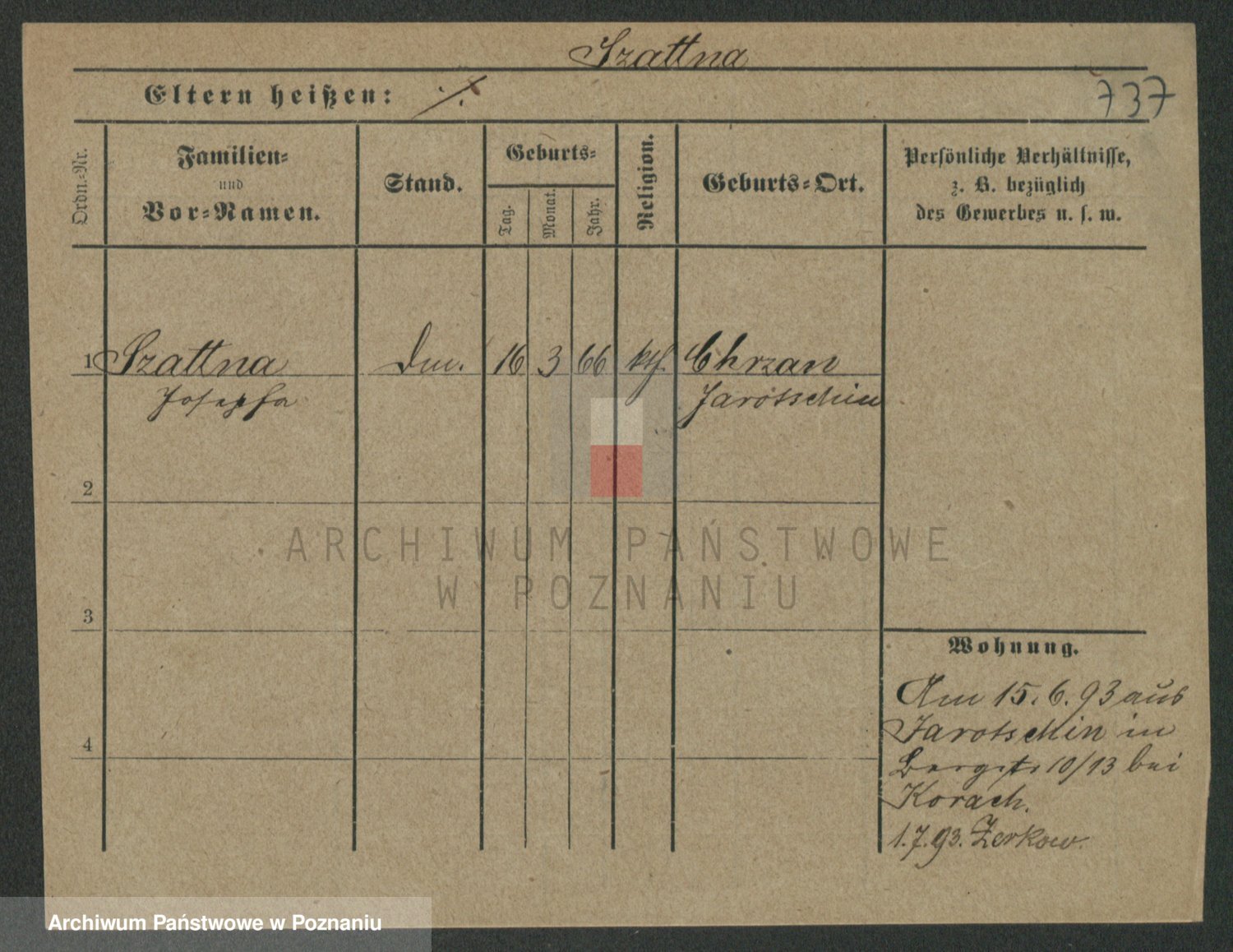 Podgląd karty osobowej dostępny jest po kliknięciu na nazwisko lub ikonkę karty. Można dokonywać powiększenia (ikony na górze) lub przechodzić między kolejnymi skanami (strzałki po bokach).