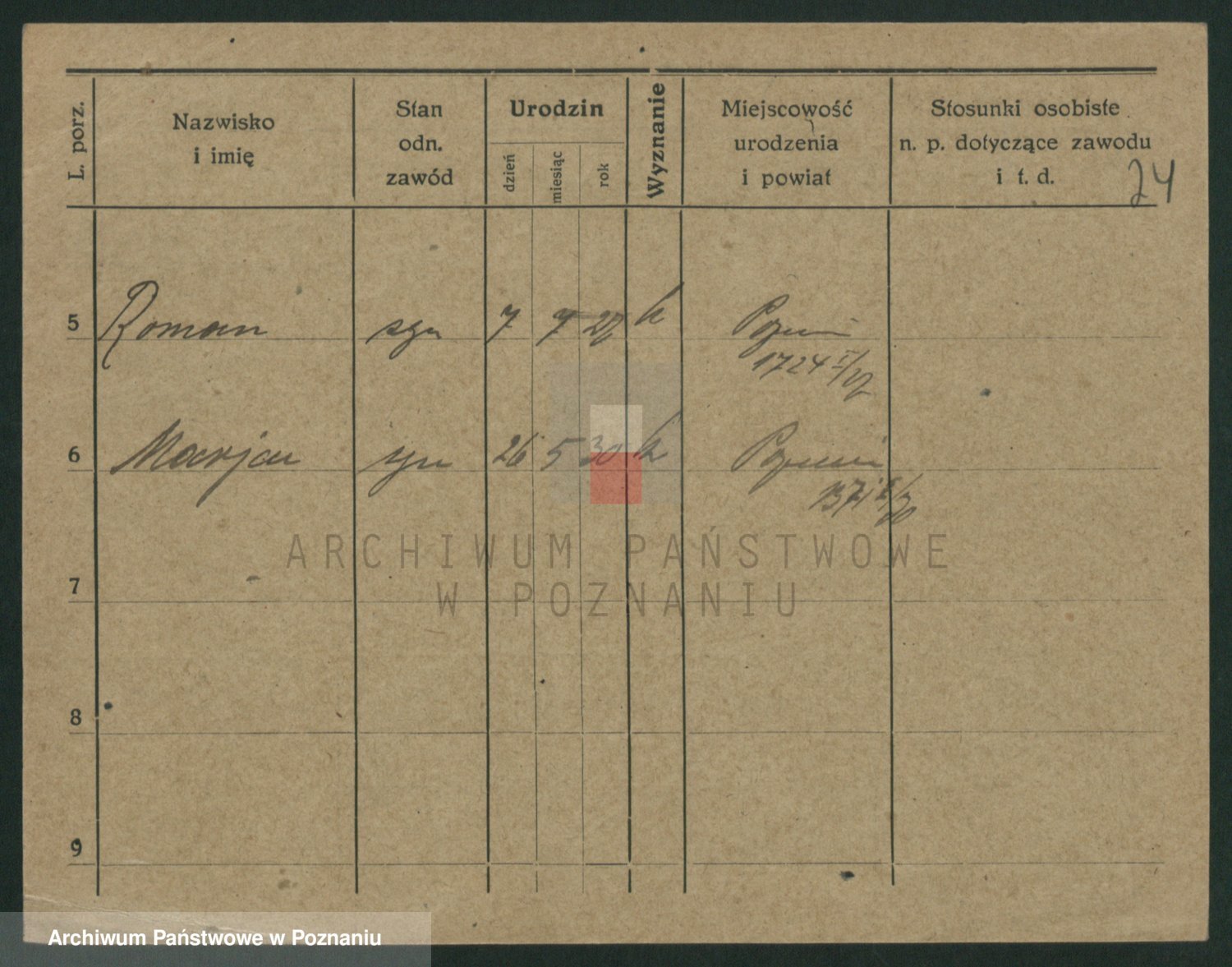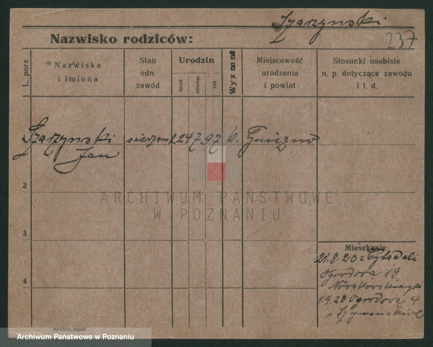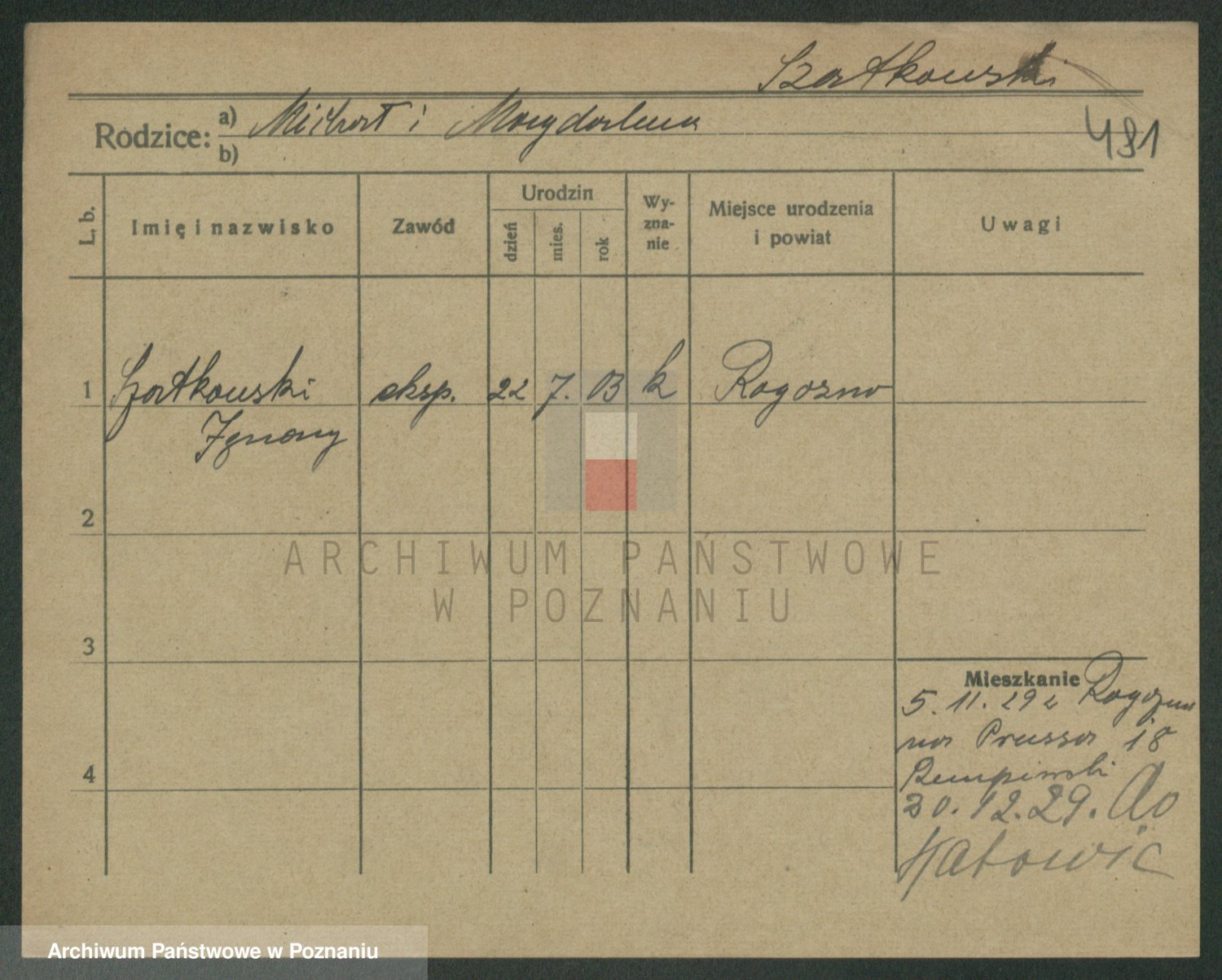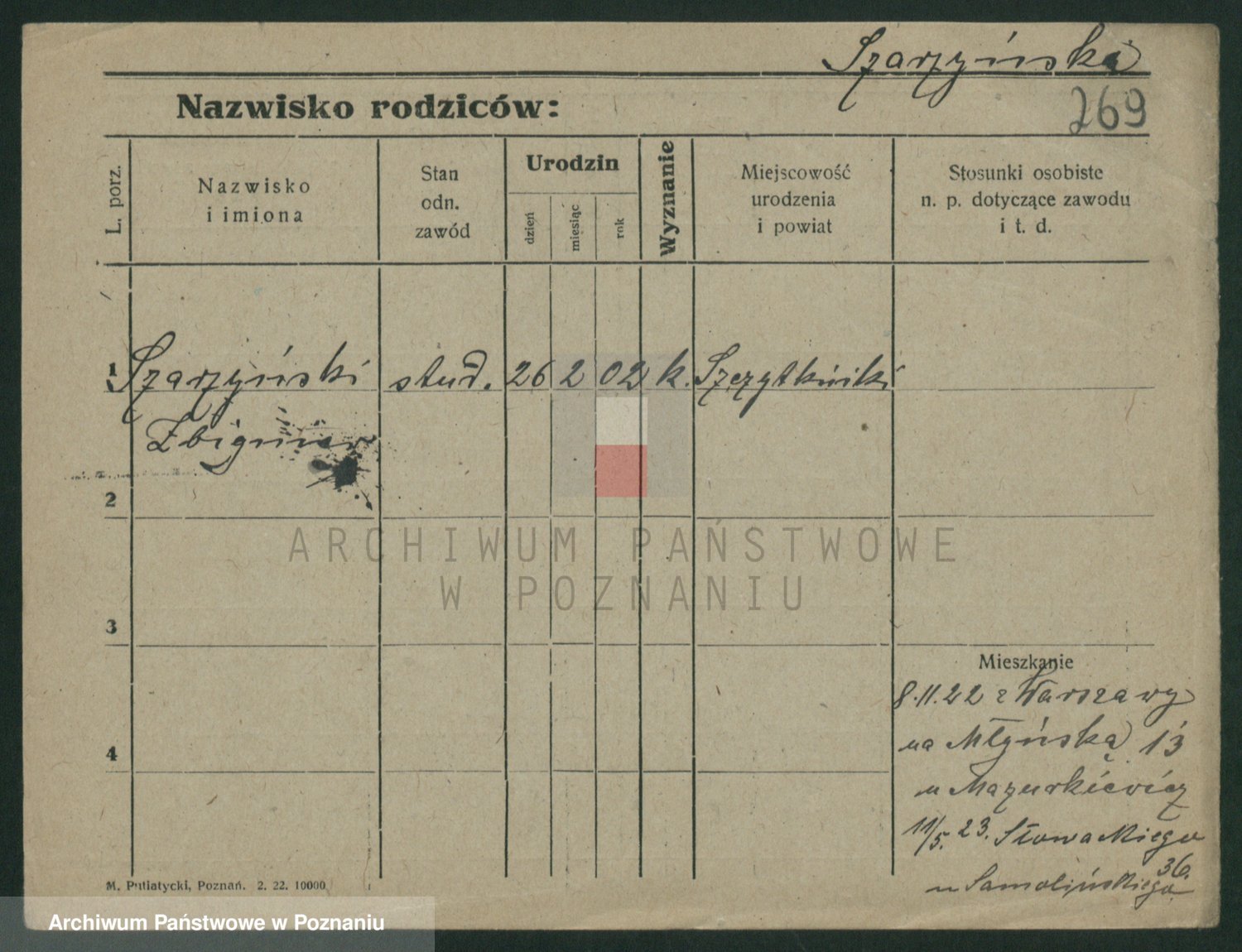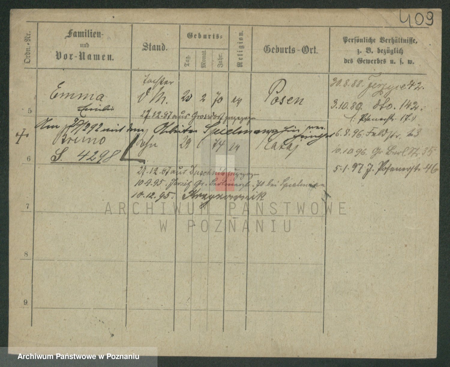 Podgląd karty osobowej dostępny jest po kliknięciu na nazwisko lub ikonkę karty. Można dokonywać powiększenia (ikony na górze) lub przechodzić między kolejnymi skanami (strzałki po bokach).