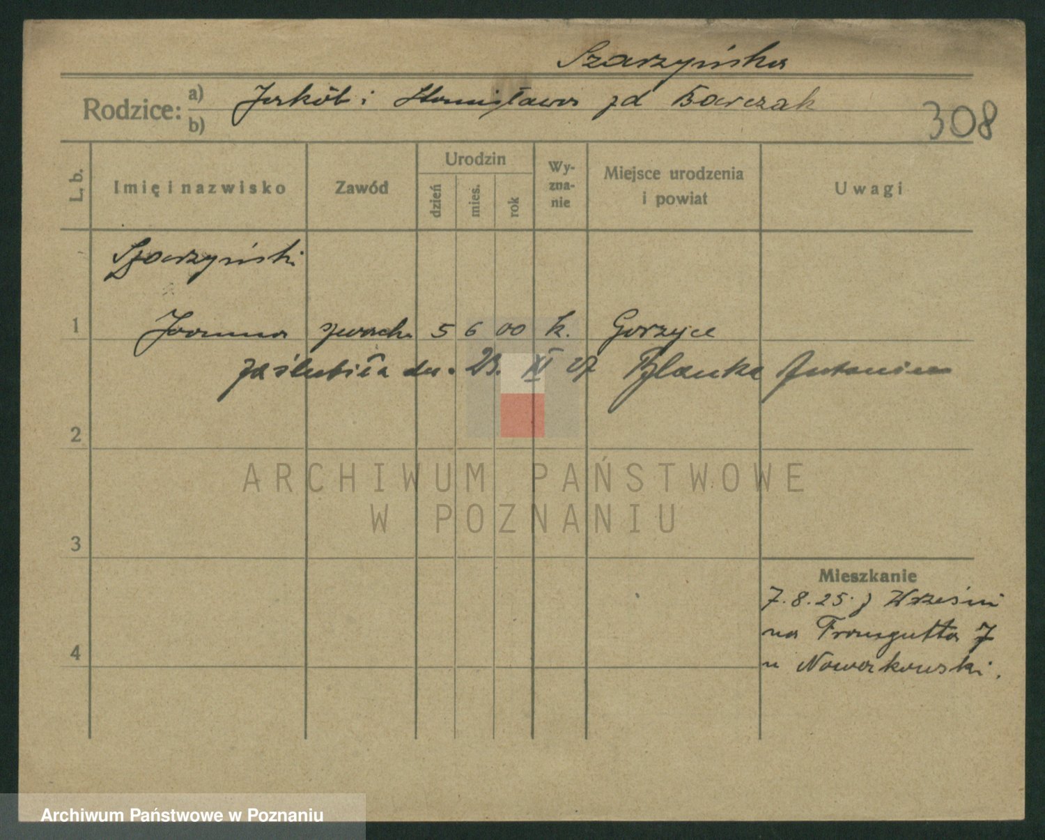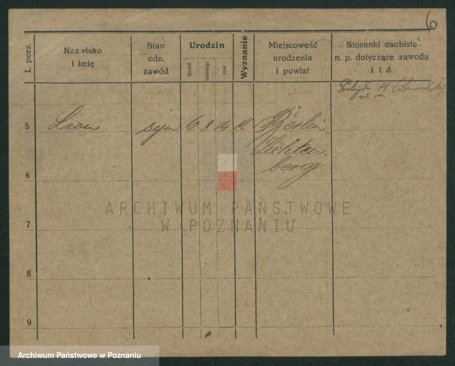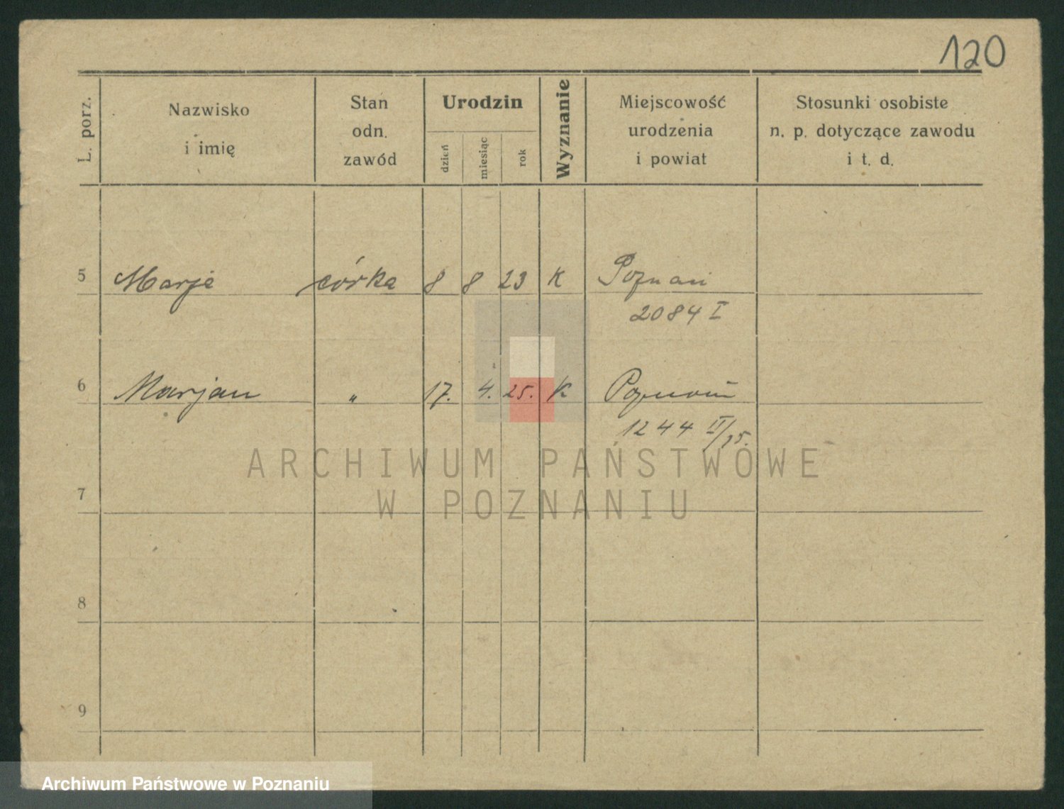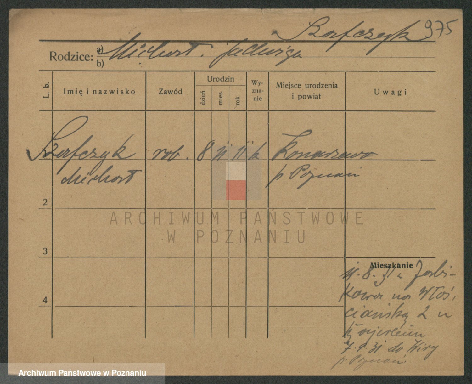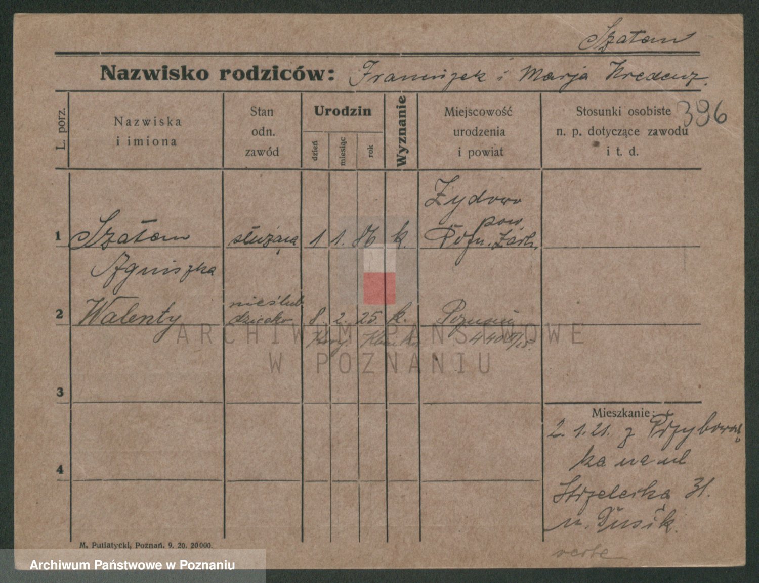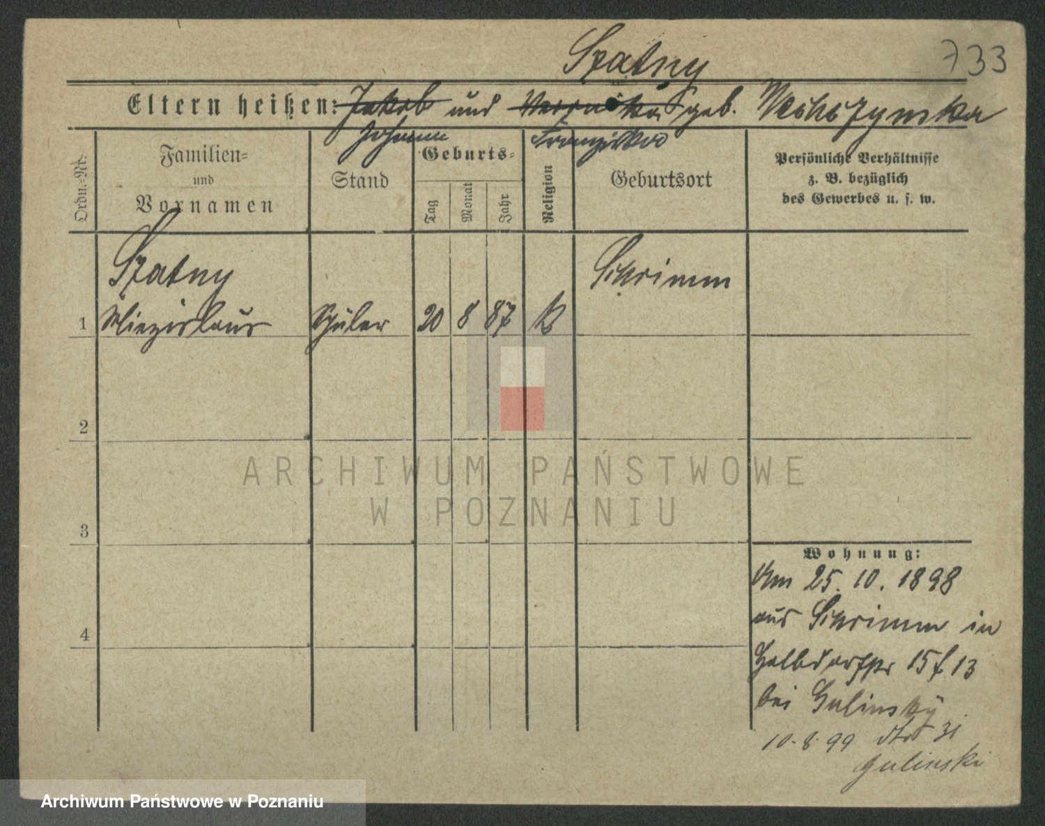 Podgląd karty osobowej dostępny jest po kliknięciu na nazwisko lub ikonkę karty. Można dokonywać powiększenia (ikony na górze) lub przechodzić między kolejnymi skanami (strzałki po bokach).