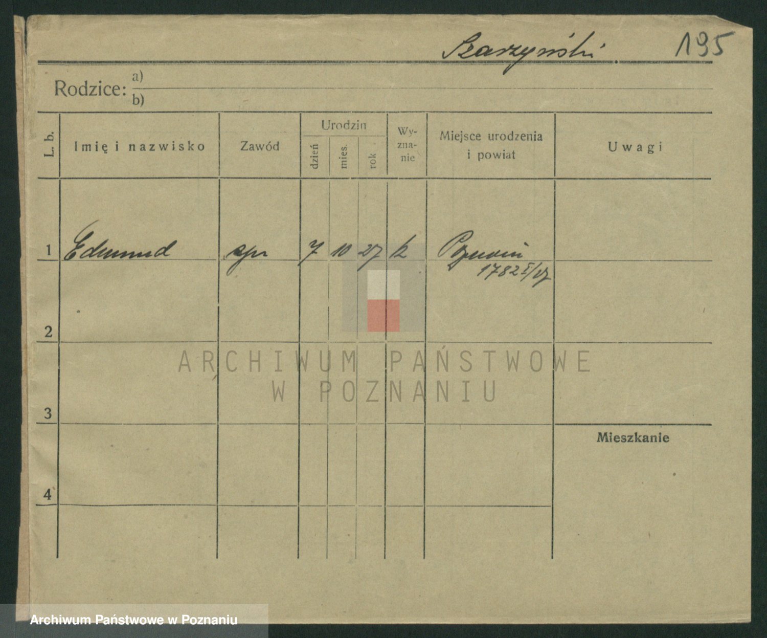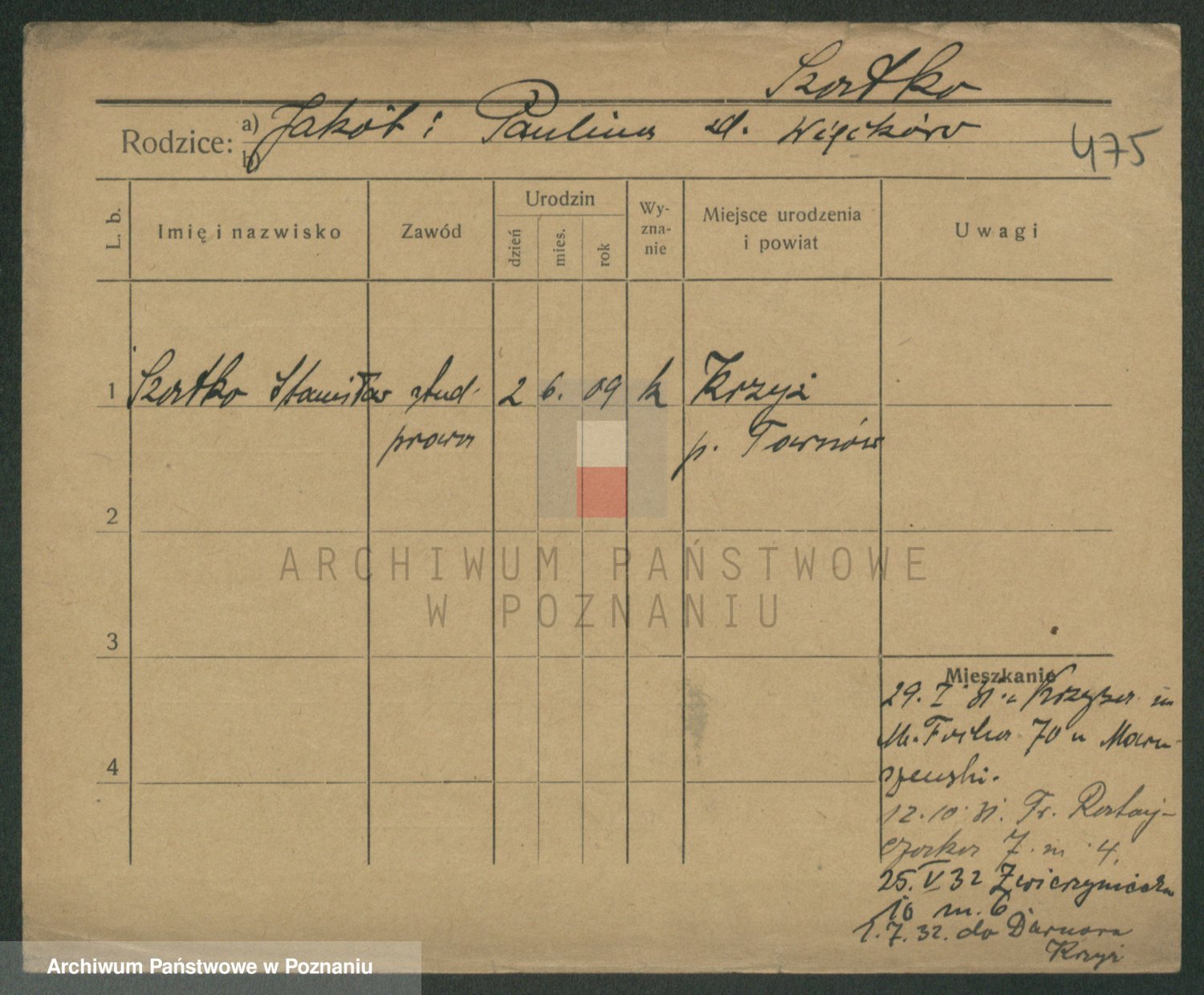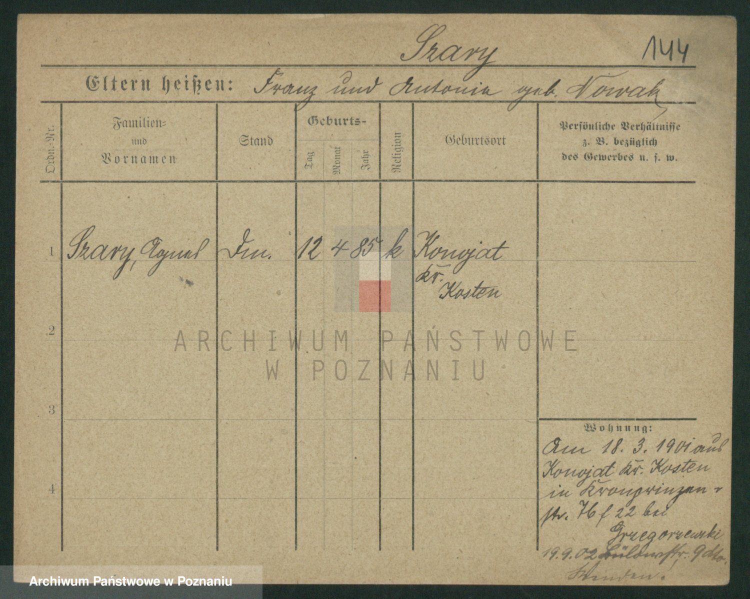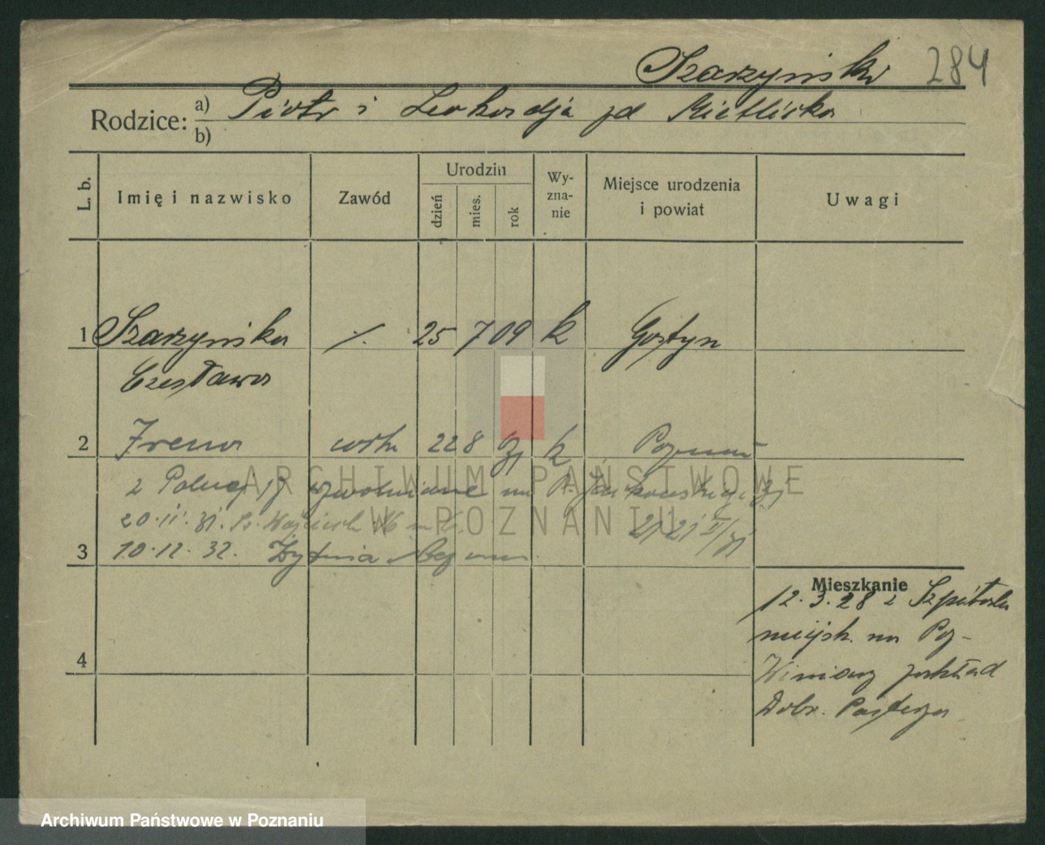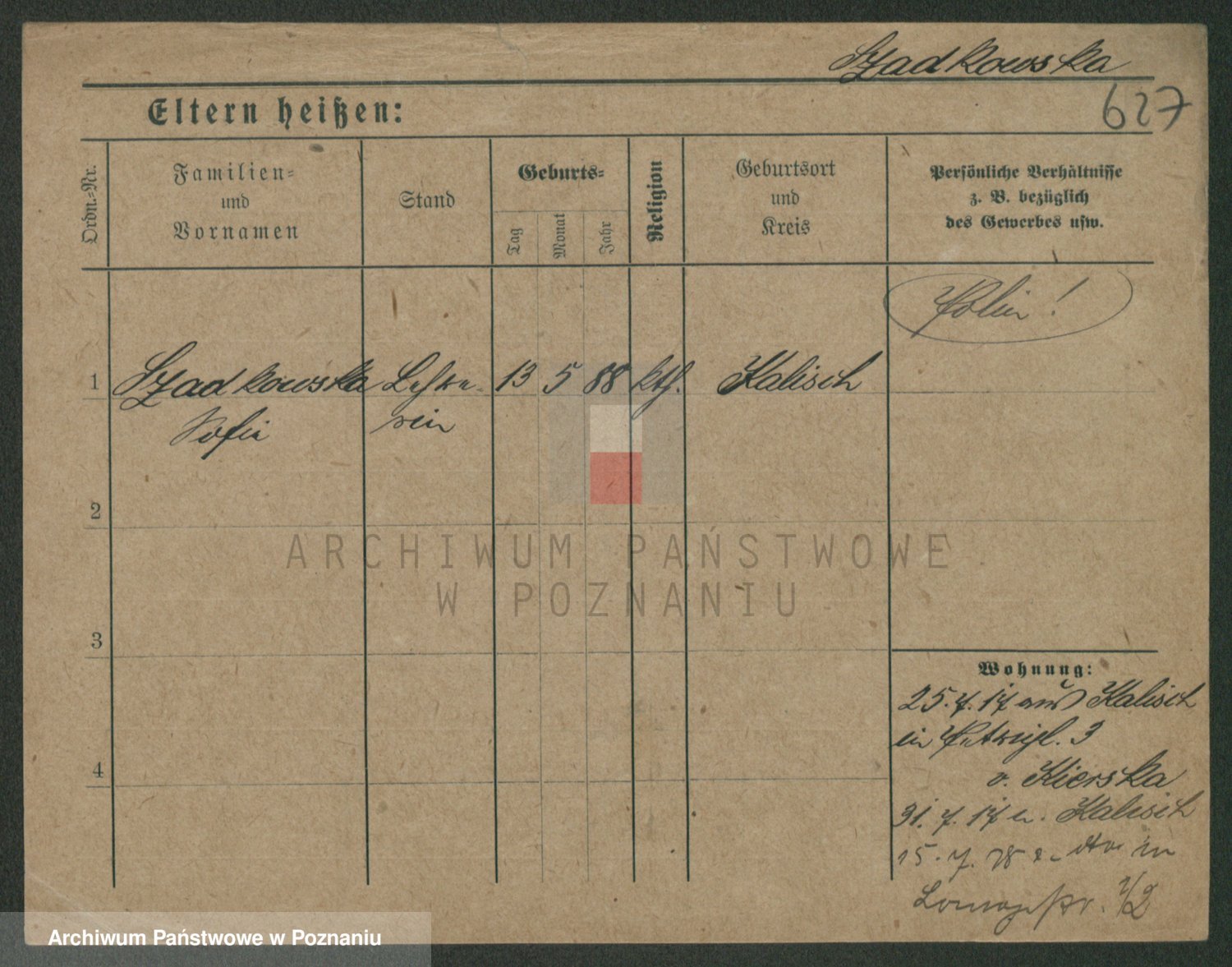Podgląd karty osobowej dostępny jest po kliknięciu na nazwisko lub ikonkę karty. Można dokonywać powiększenia (ikony na górze) lub przechodzić między kolejnymi skanami (strzałki po bokach).