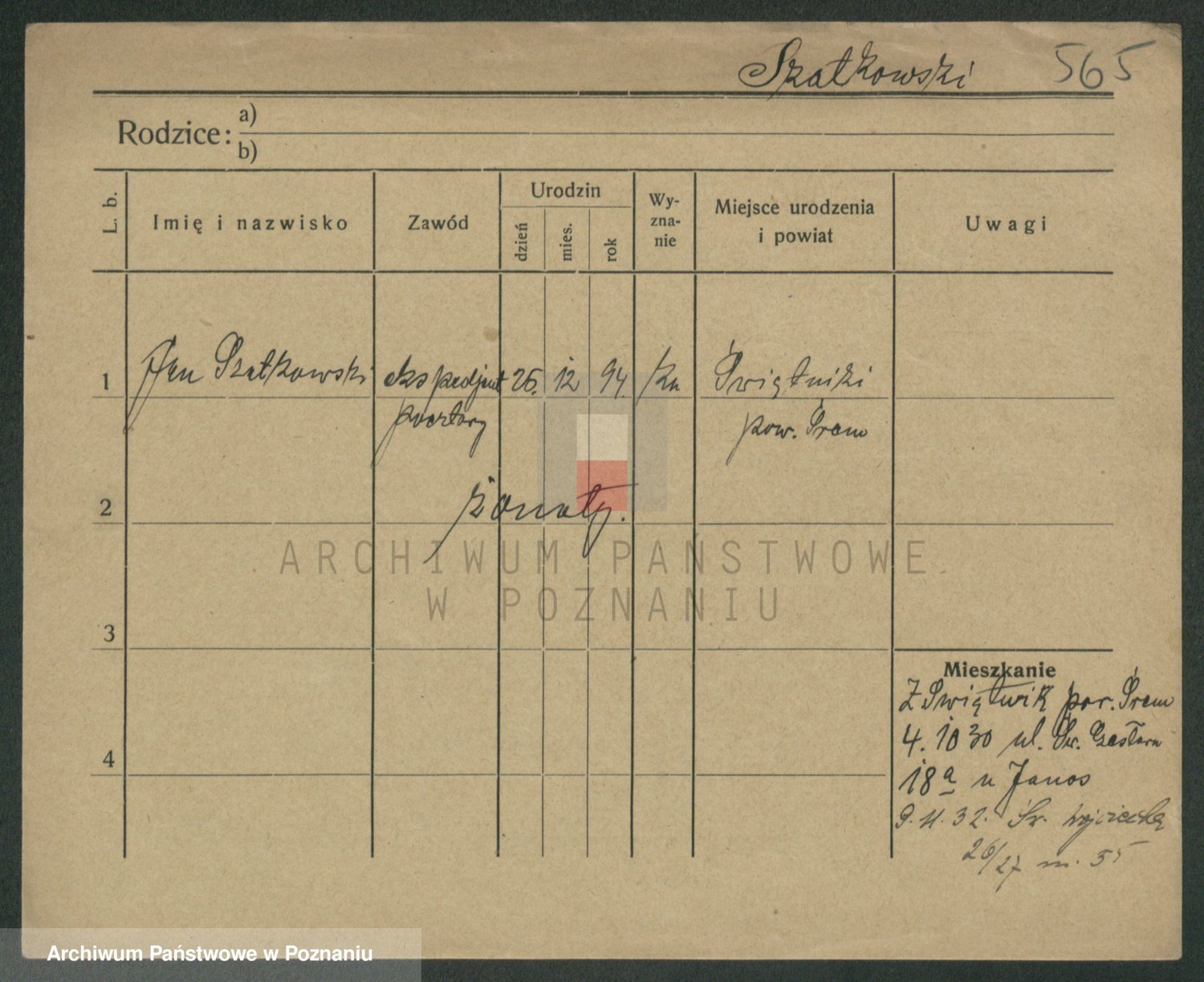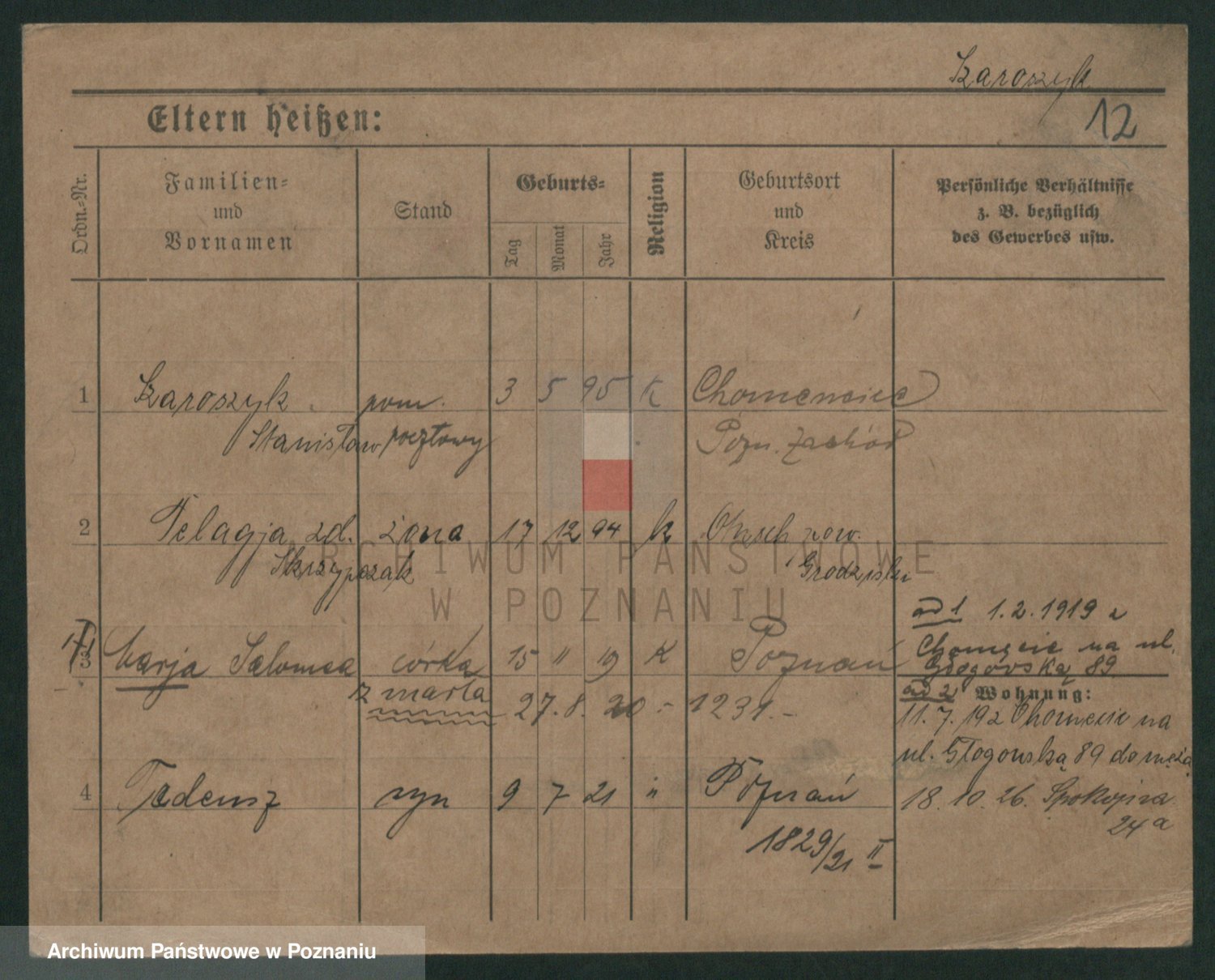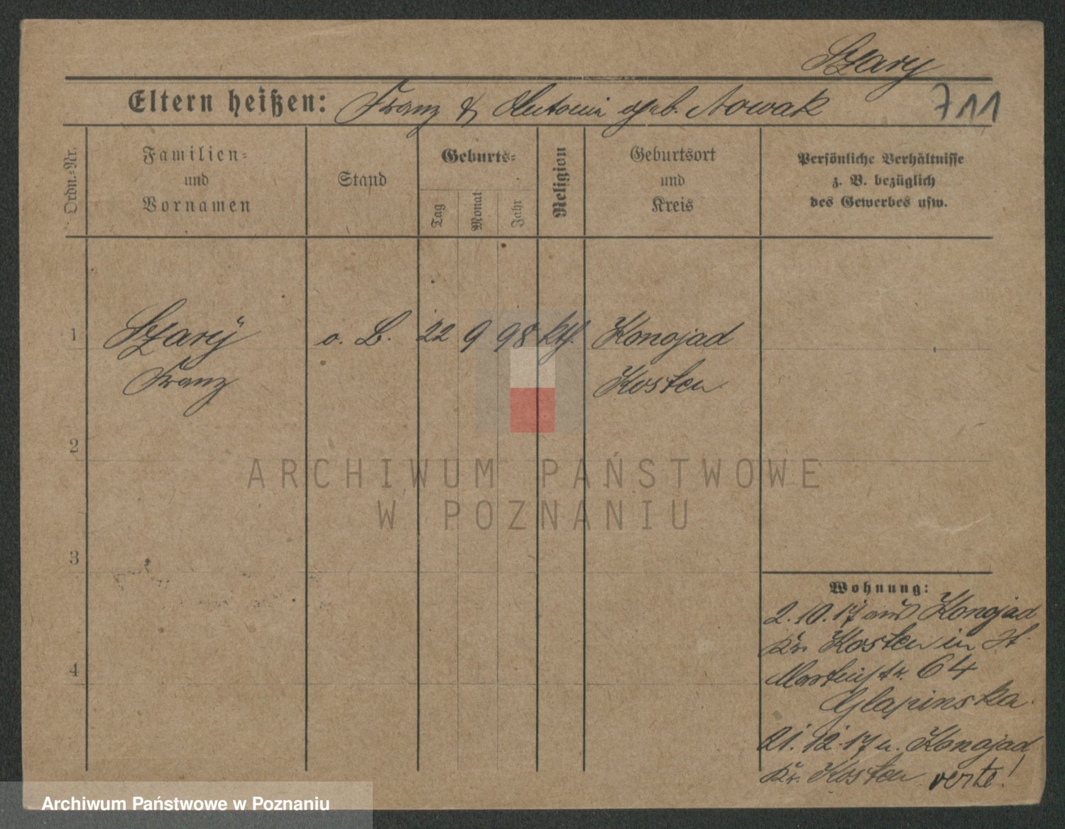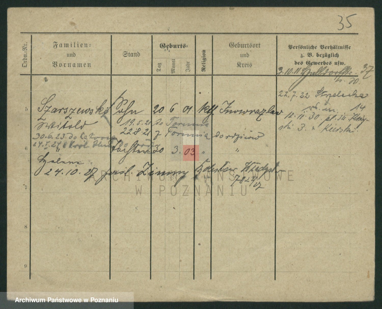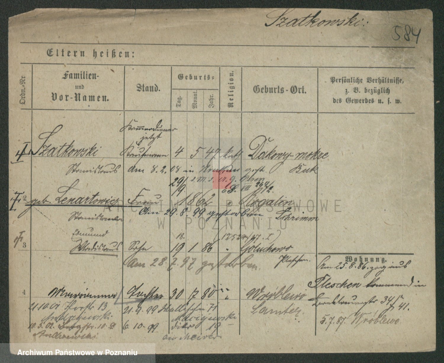 Podgląd karty osobowej dostępny jest po kliknięciu na nazwisko lub ikonkę karty. Można dokonywać powiększenia (ikony na górze) lub przechodzić między kolejnymi skanami (strzałki po bokach).