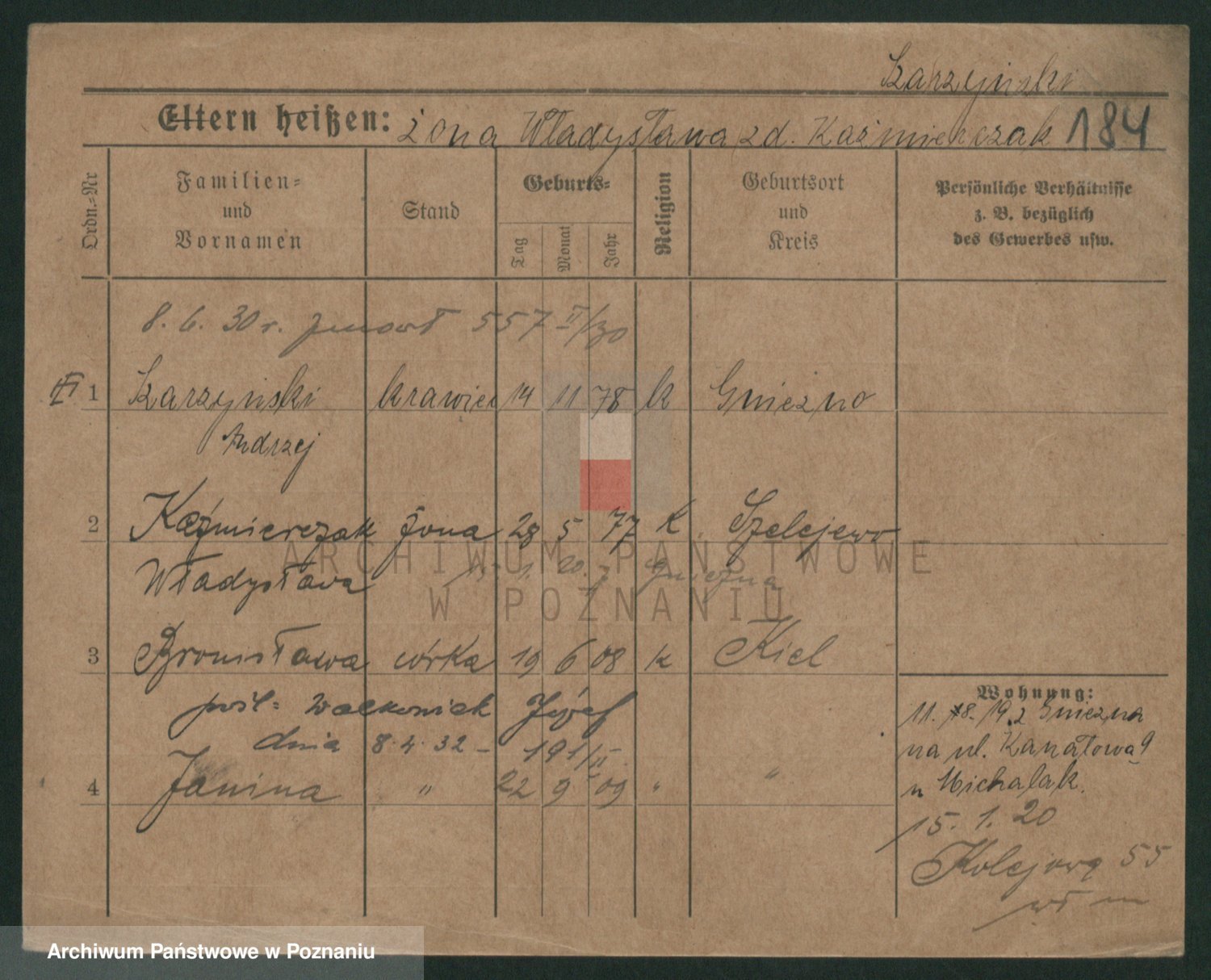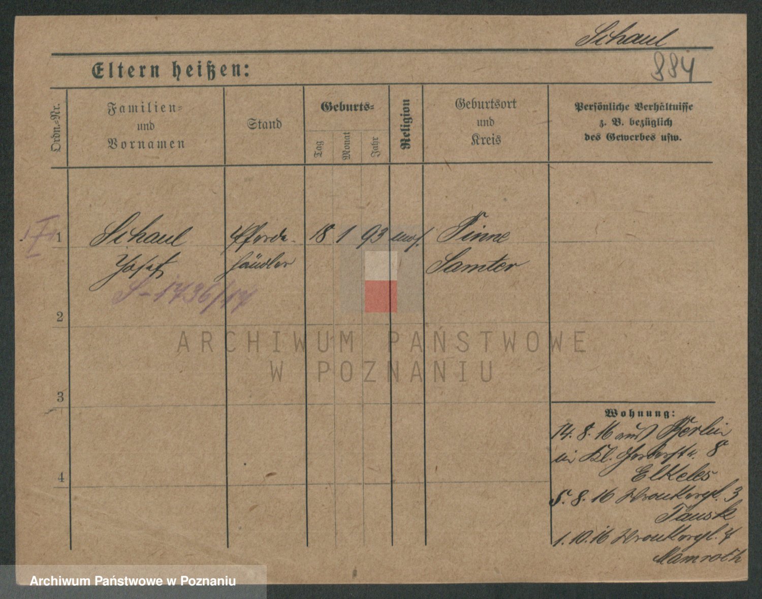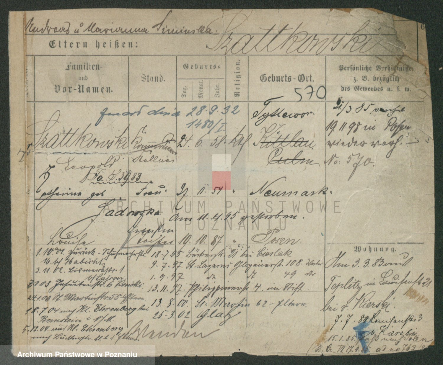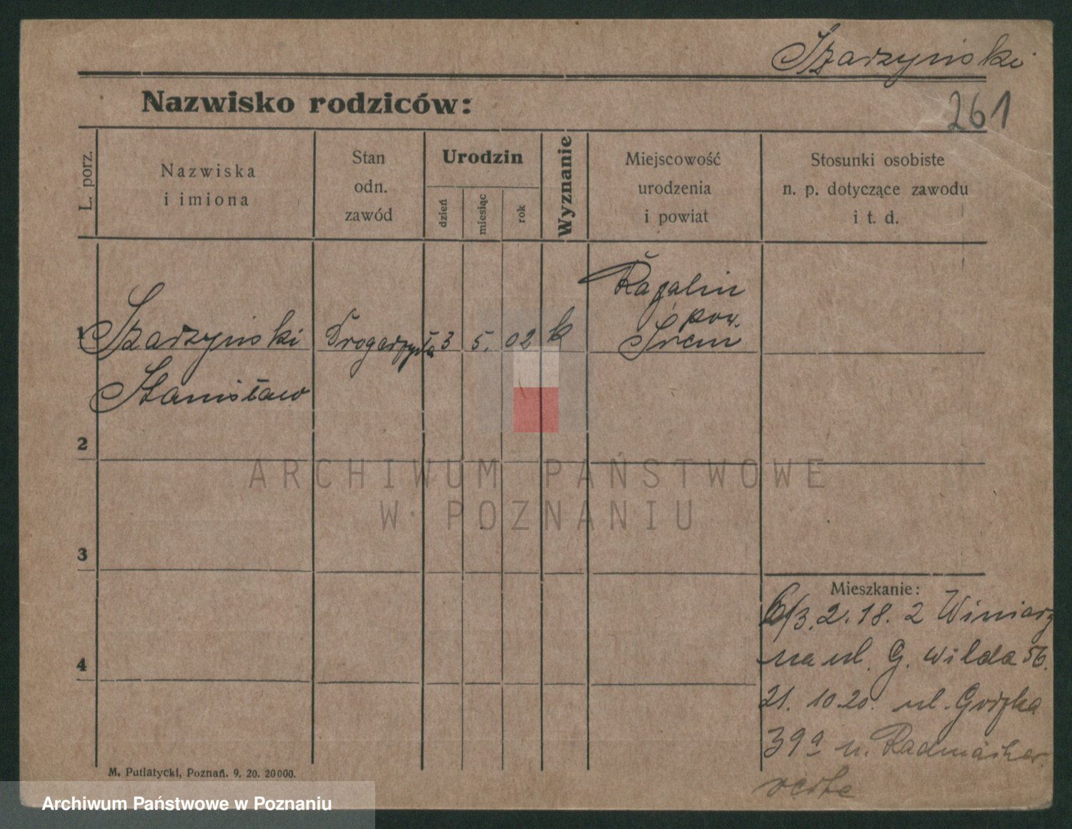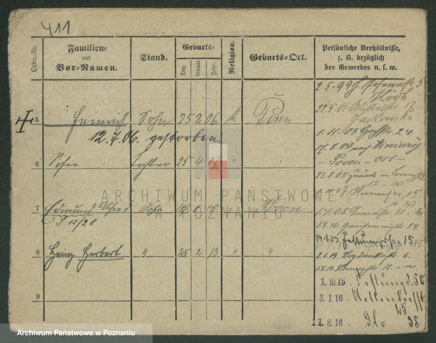 Podgląd karty osobowej dostępny jest po kliknięciu na nazwisko lub ikonkę karty. Można dokonywać powiększenia (ikony na górze) lub przechodzić między kolejnymi skanami (strzałki po bokach).
