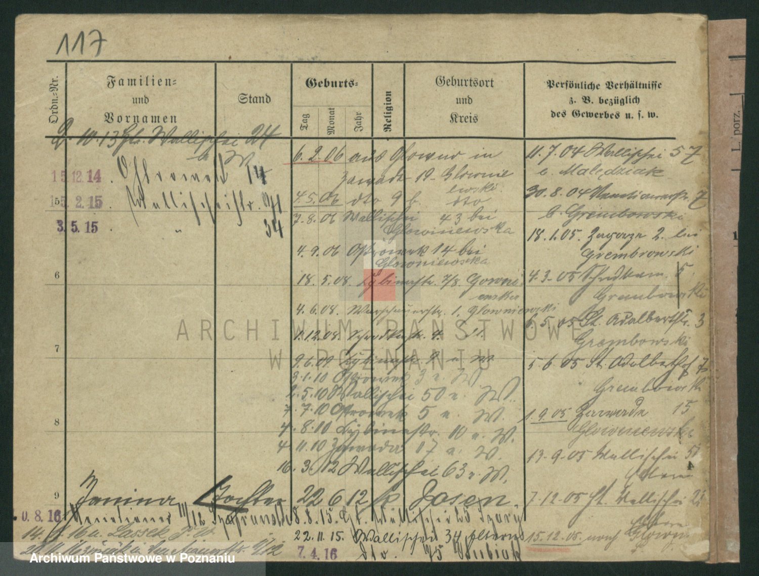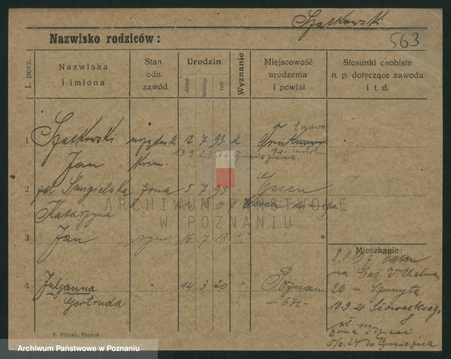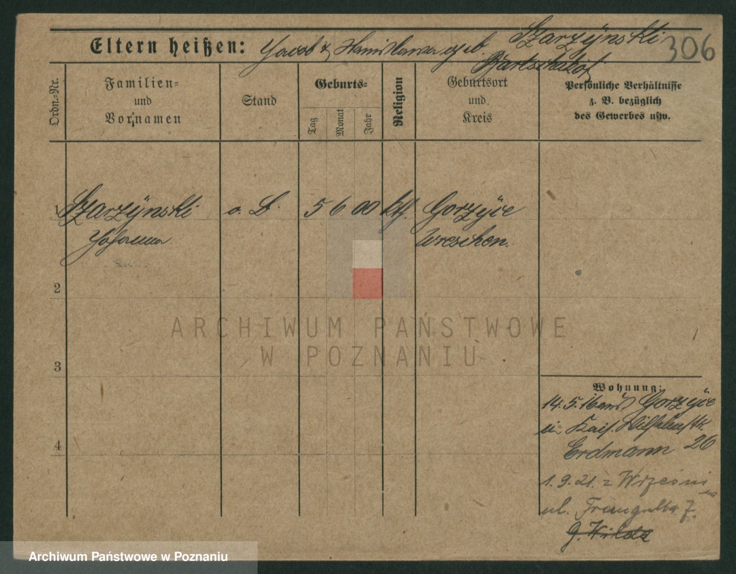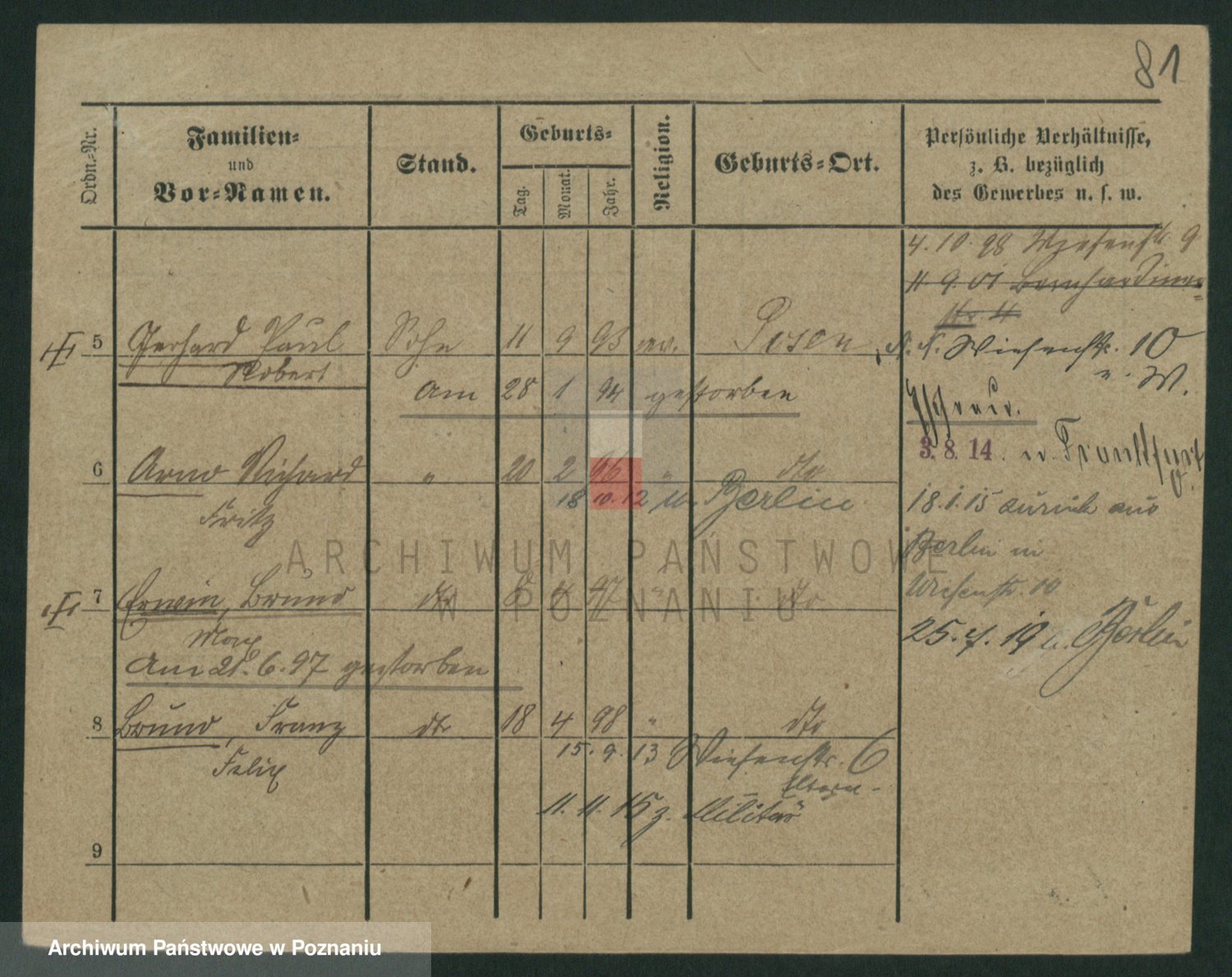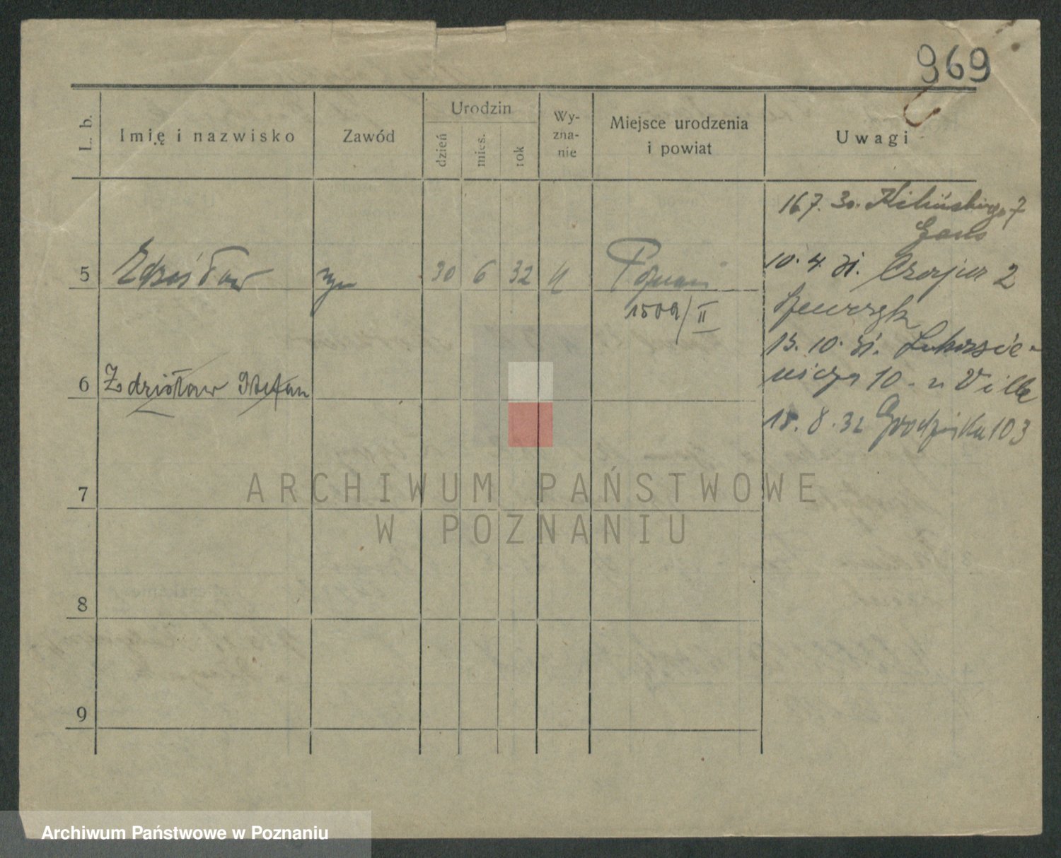 Podgląd karty osobowej dostępny jest po kliknięciu na nazwisko lub ikonkę karty. Można dokonywać powiększenia (ikony na górze) lub przechodzić między kolejnymi skanami (strzałki po bokach).