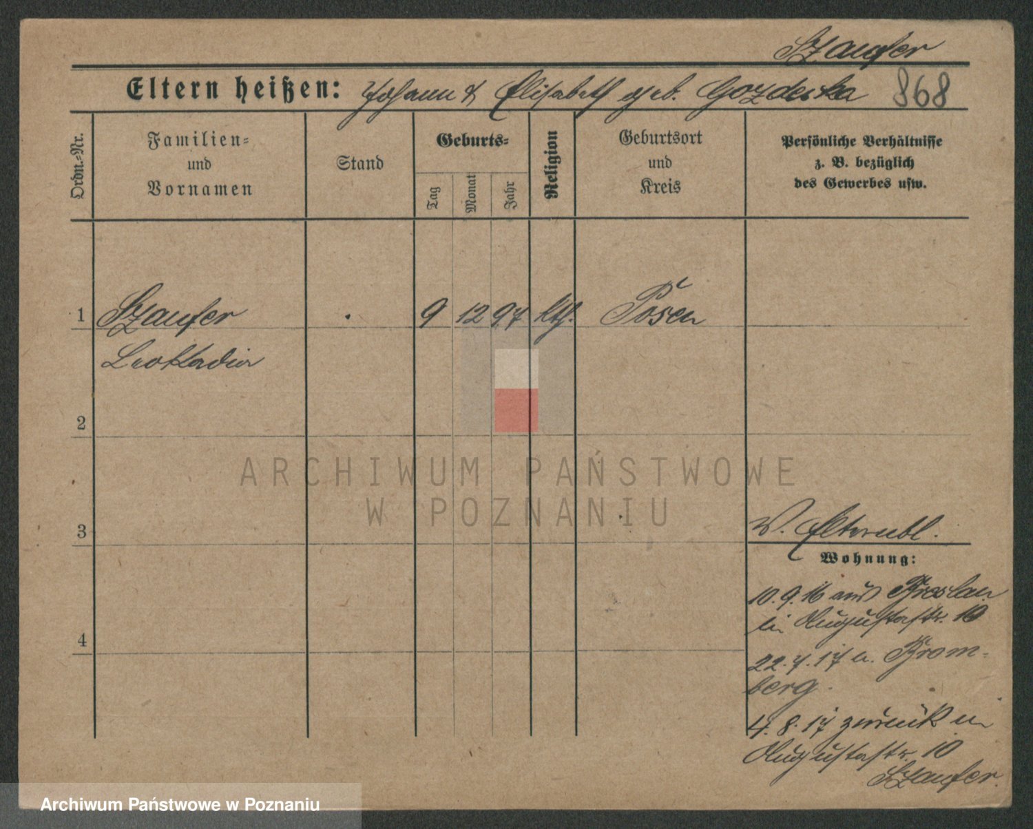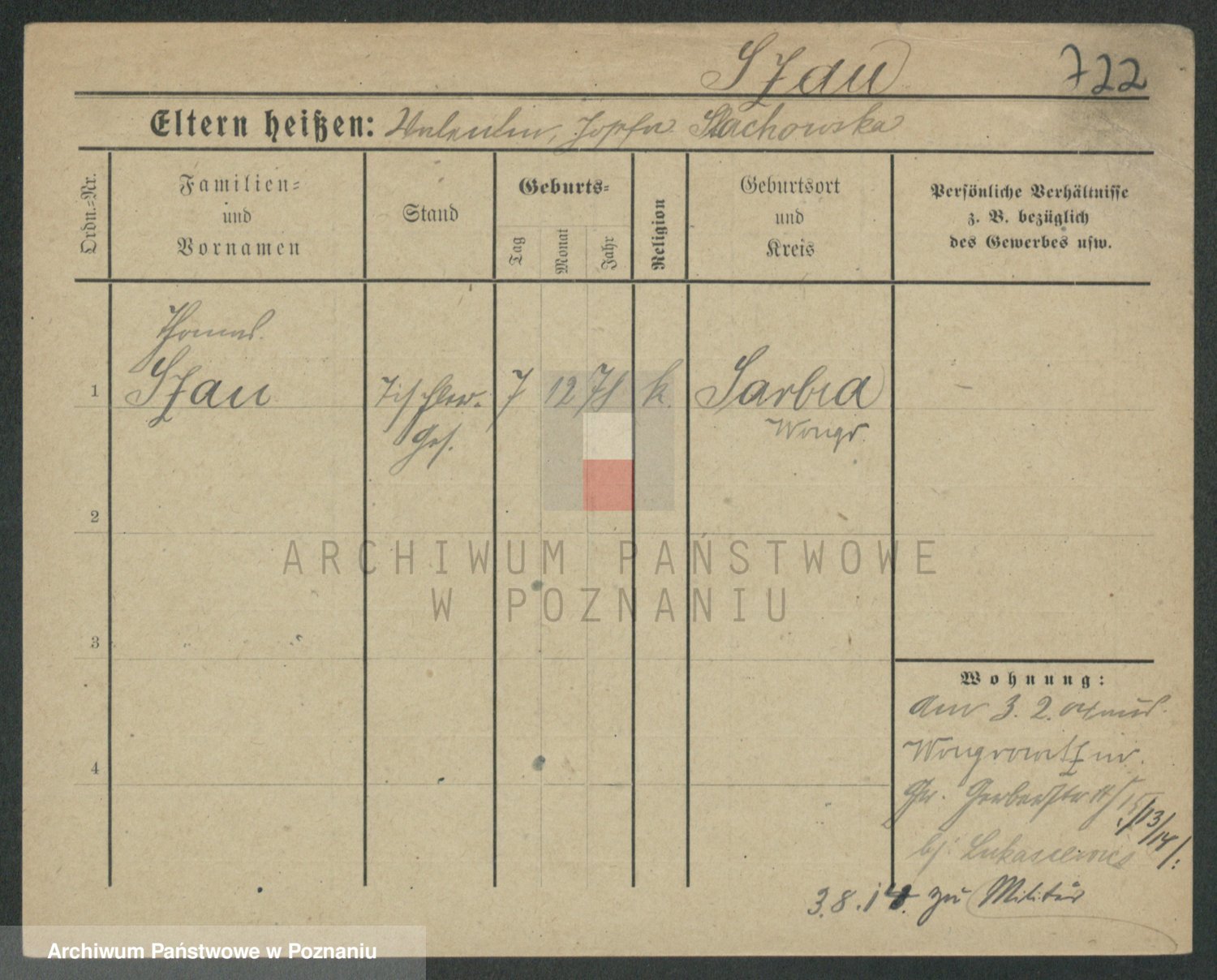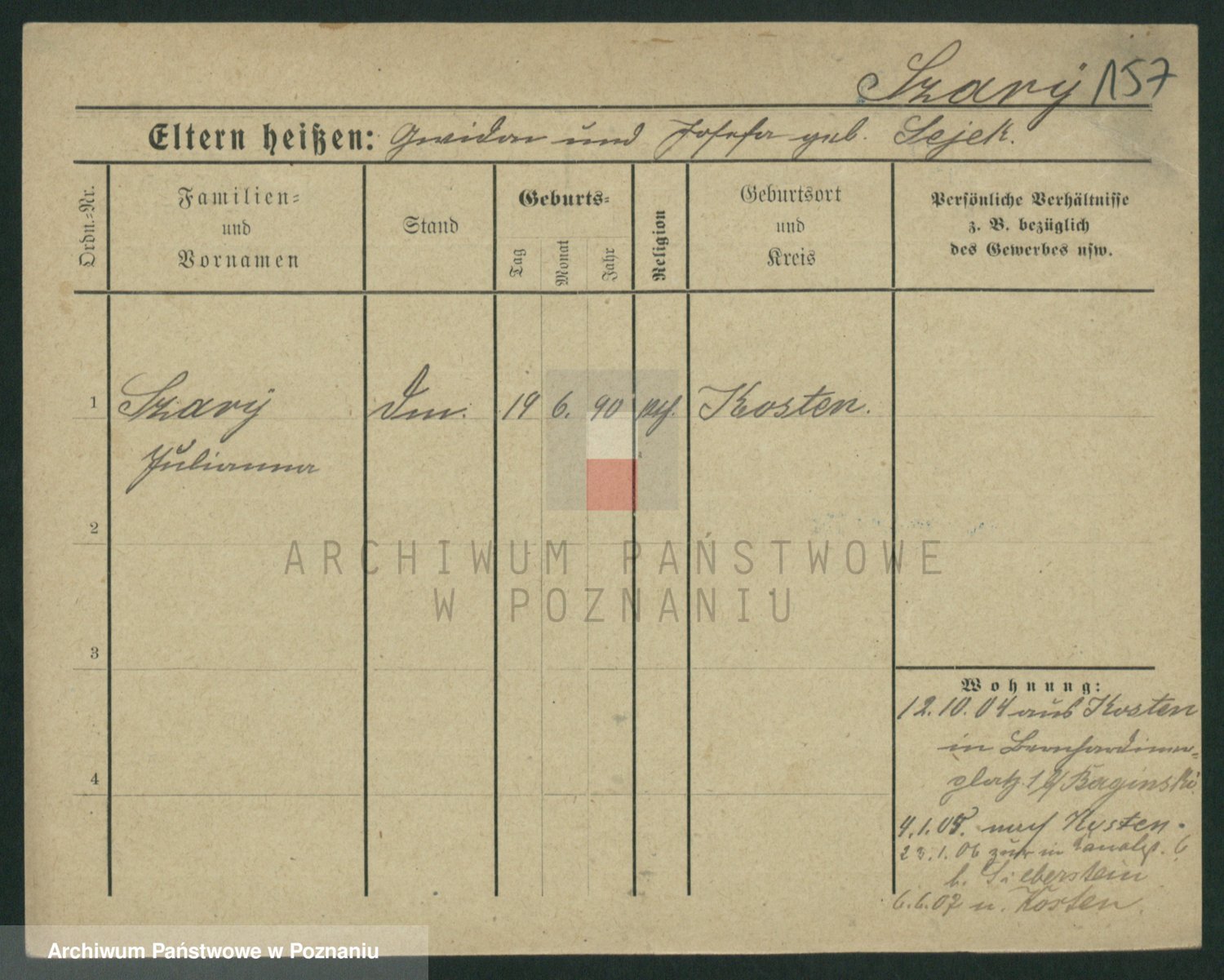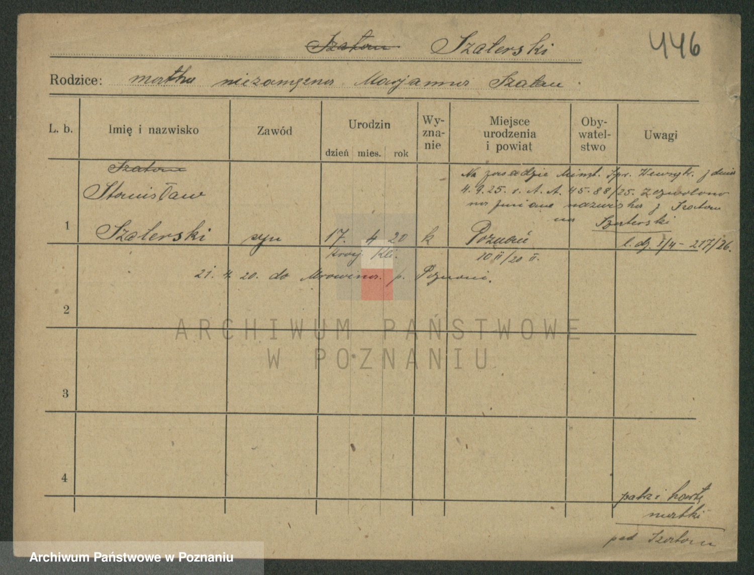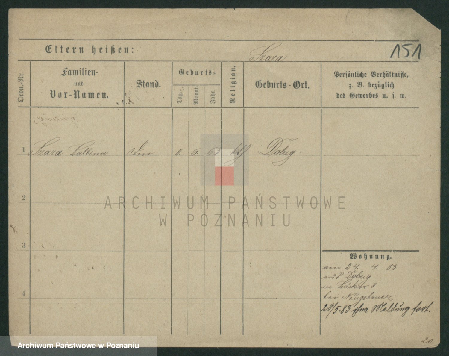 Podgląd karty osobowej dostępny jest po kliknięciu na nazwisko lub ikonkę karty. Można dokonywać powiększenia (ikony na górze) lub przechodzić między kolejnymi skanami (strzałki po bokach).
