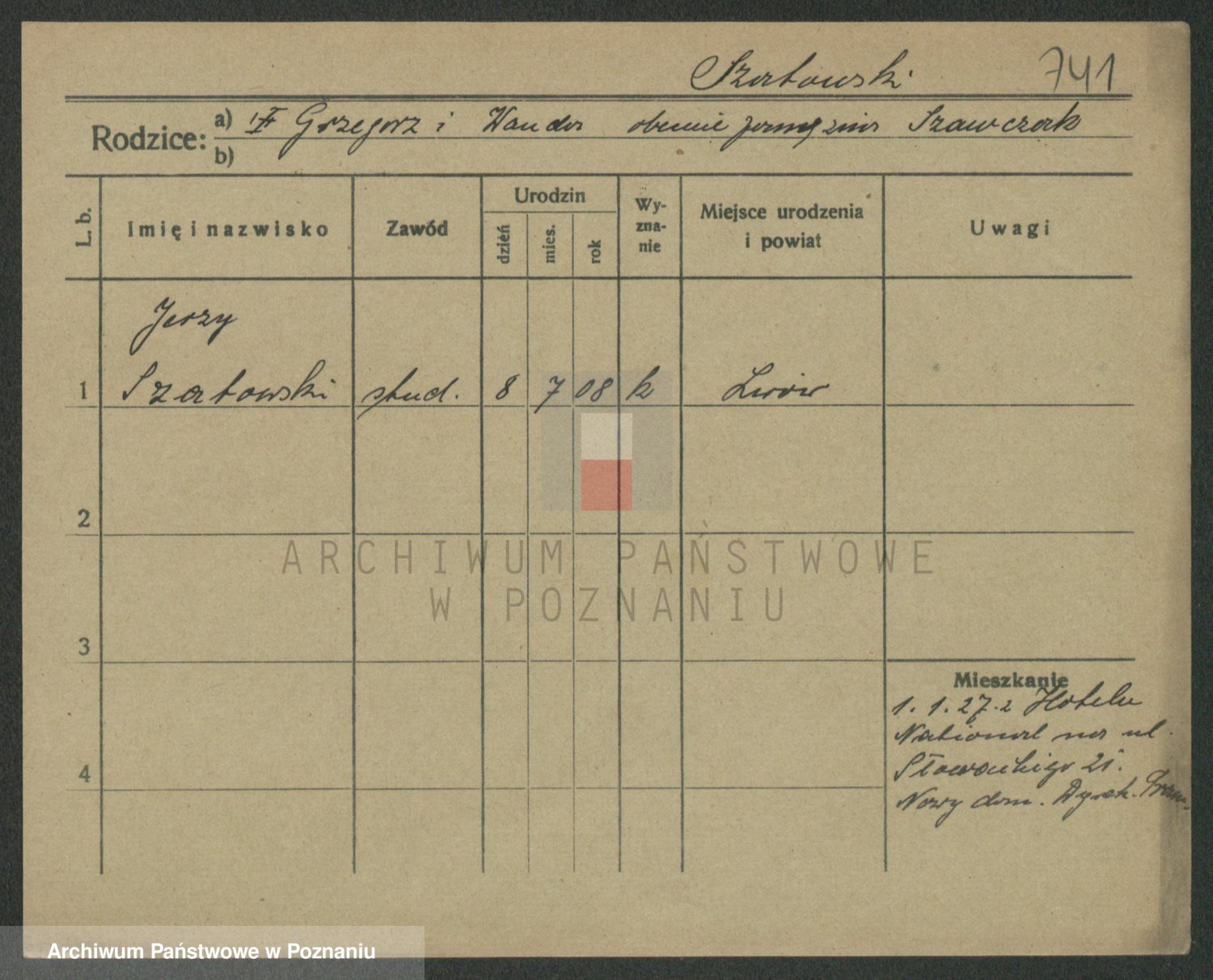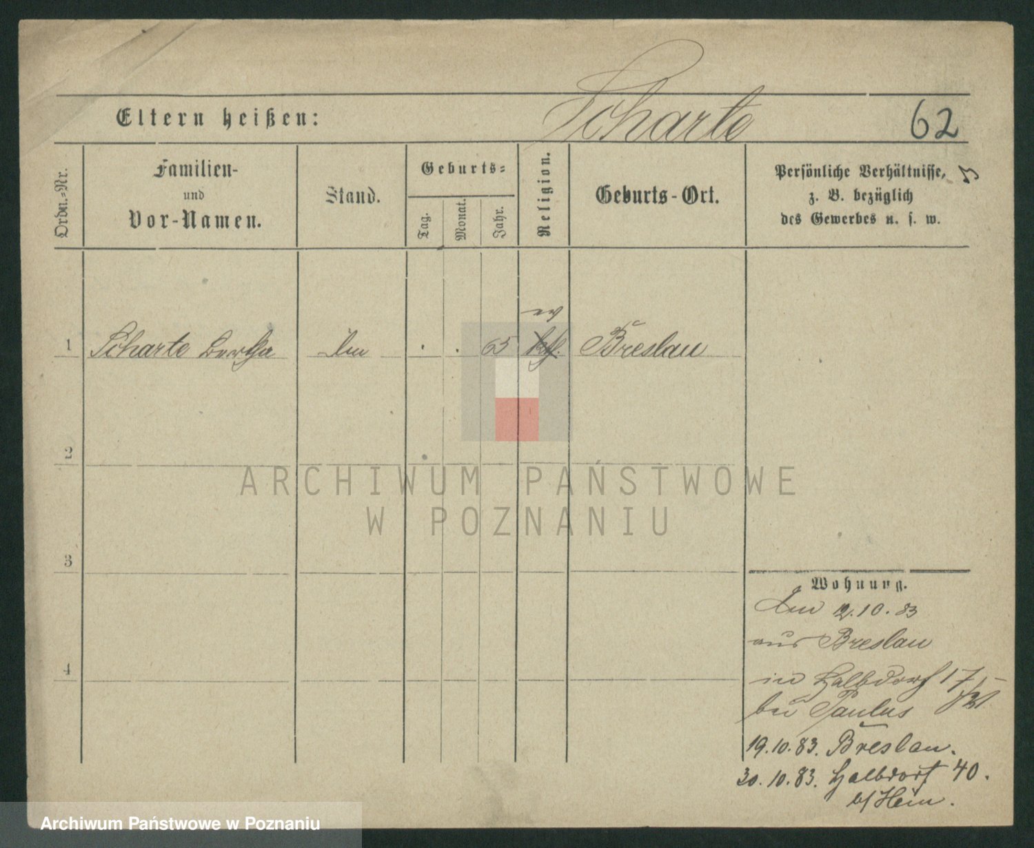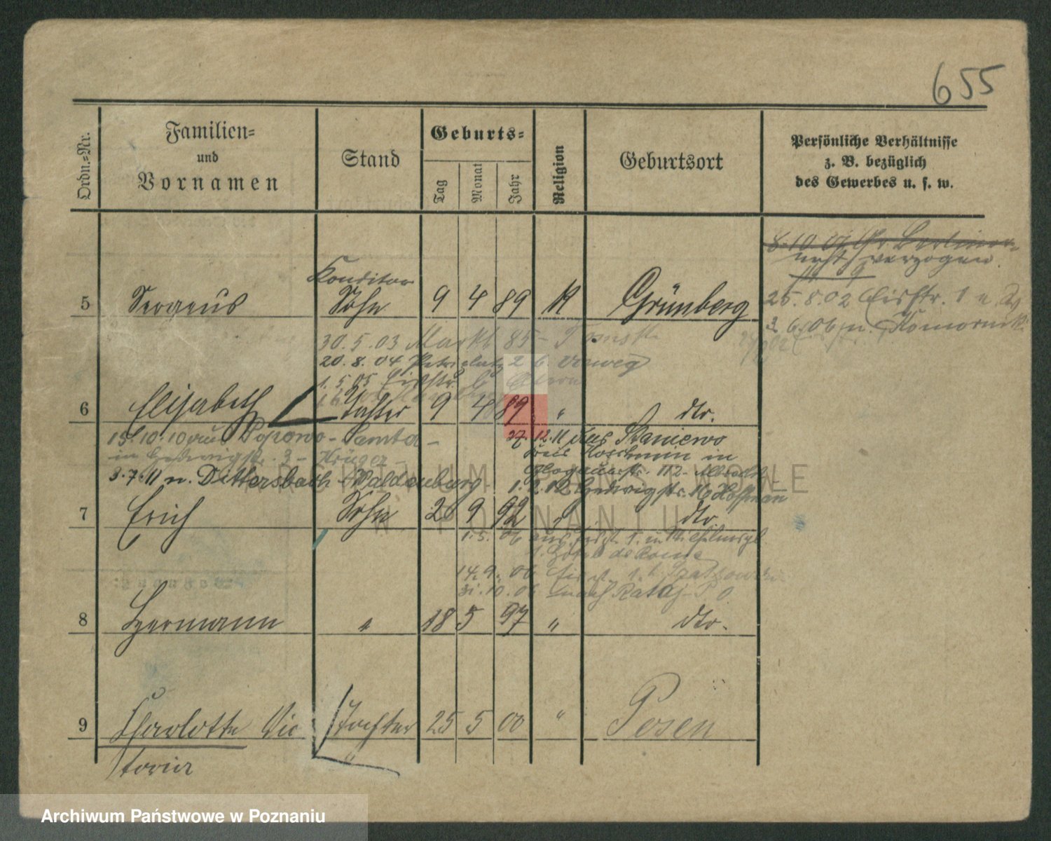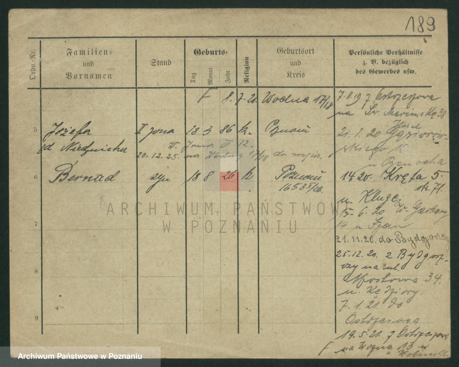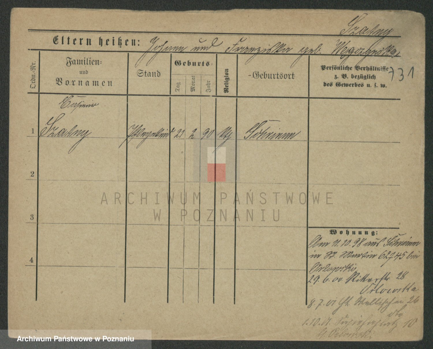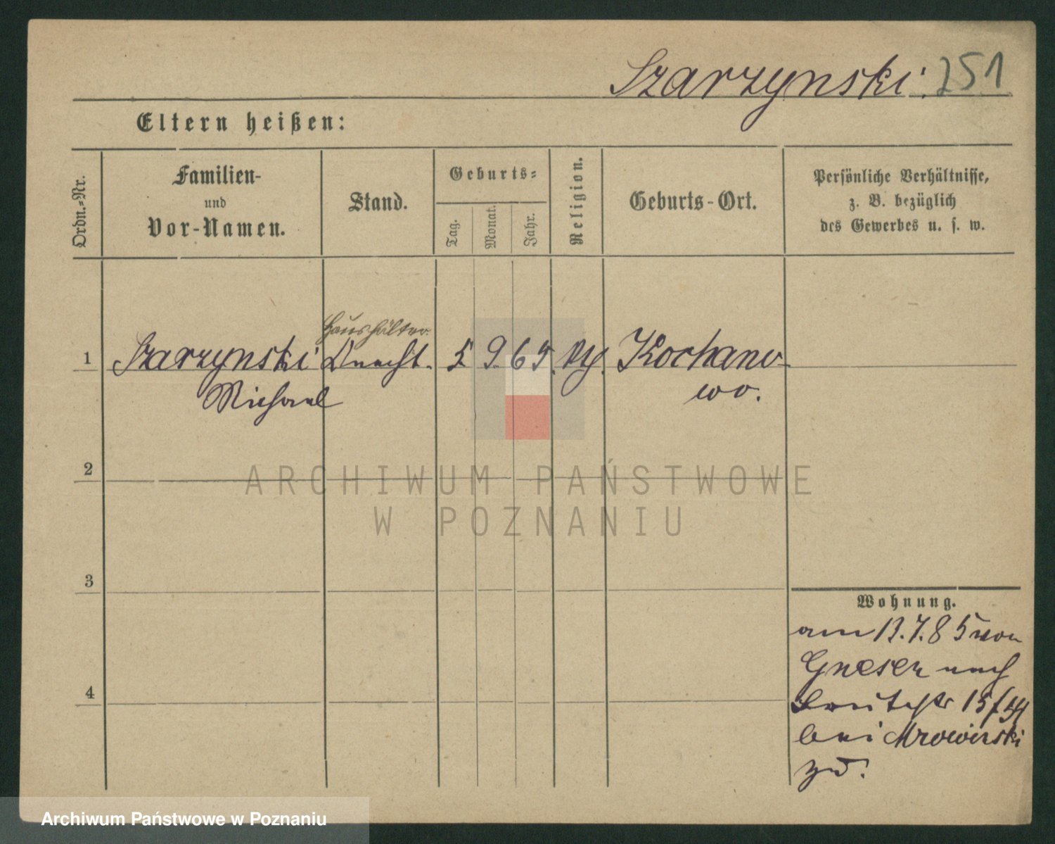 Podgląd karty osobowej dostępny jest po kliknięciu na nazwisko lub ikonkę karty. Można dokonywać powiększenia (ikony na górze) lub przechodzić między kolejnymi skanami (strzałki po bokach).