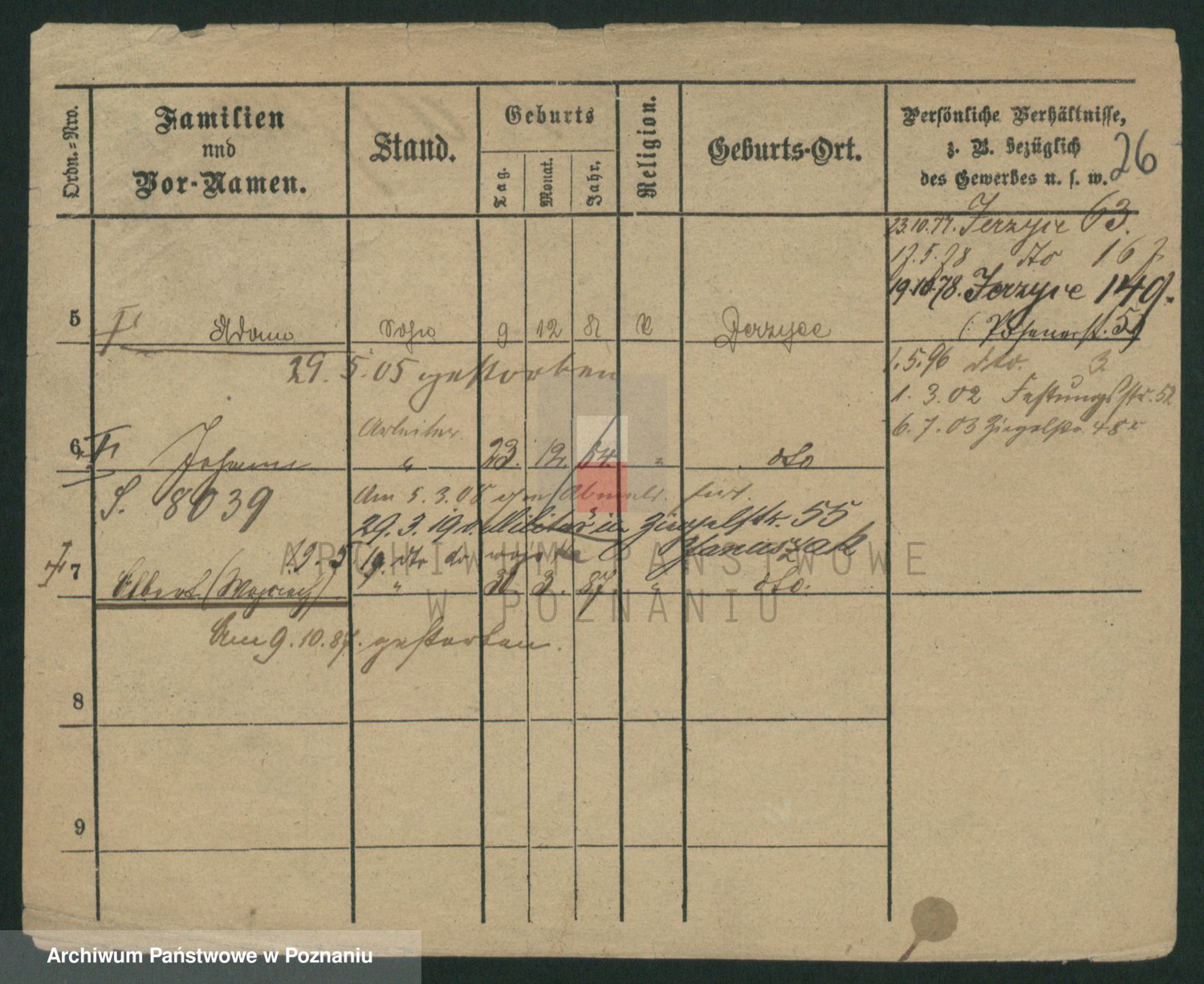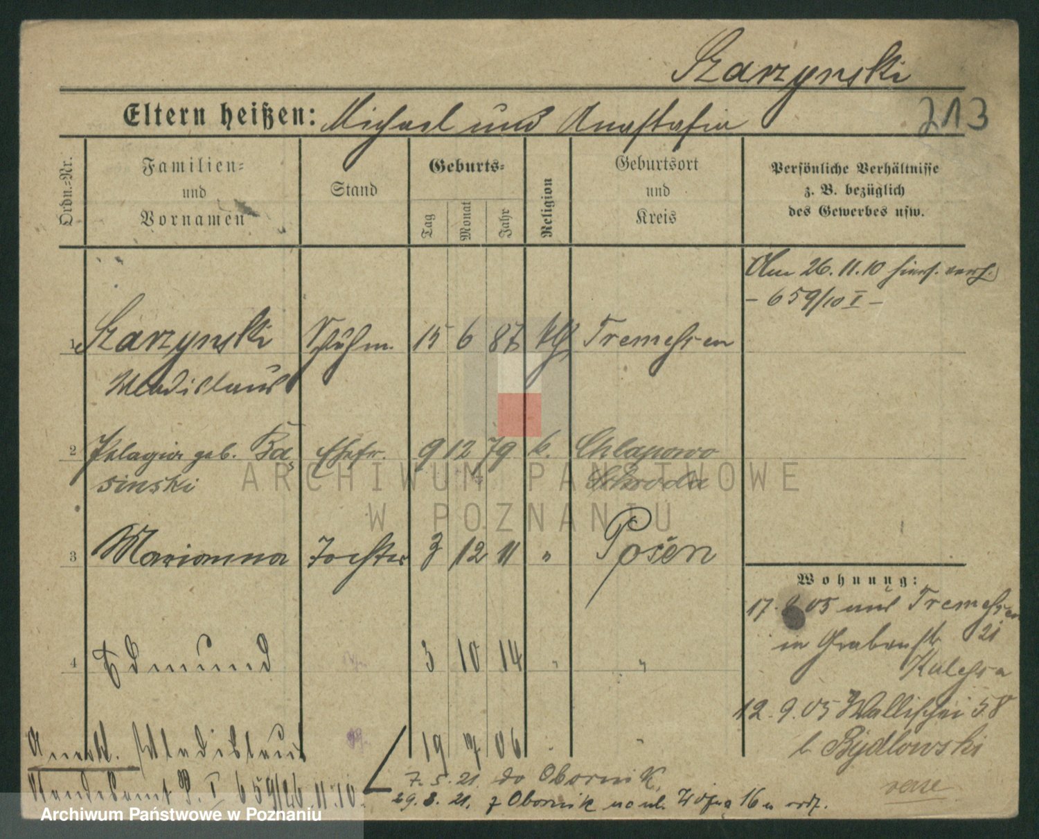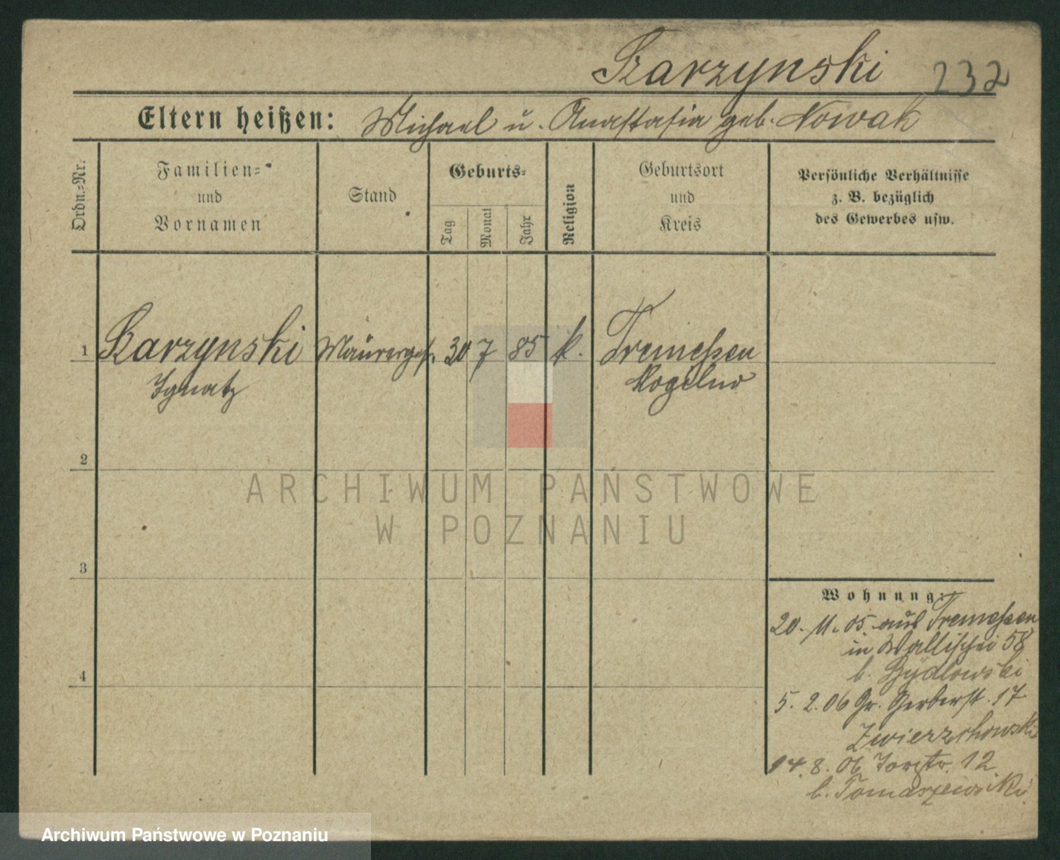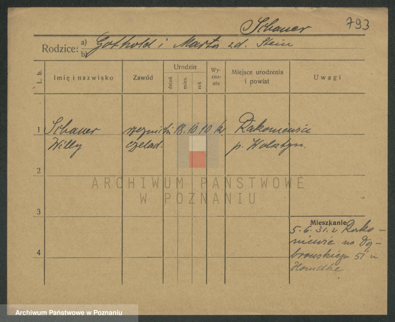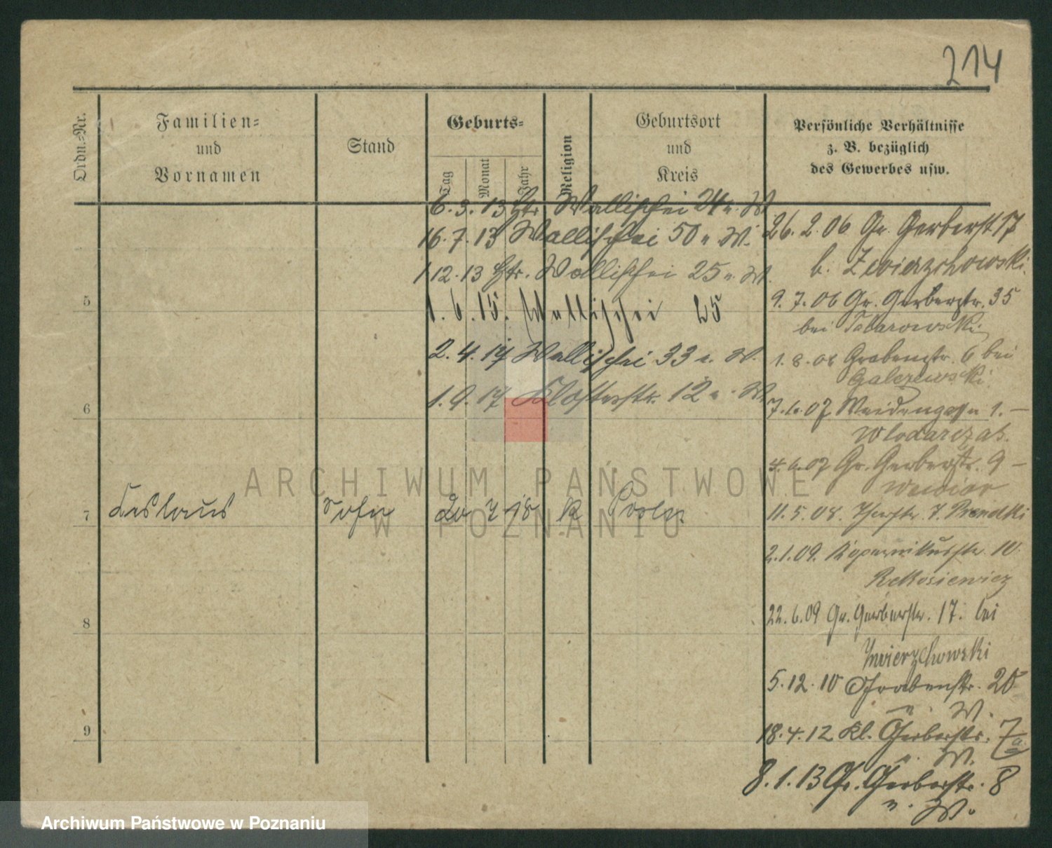 Podgląd karty osobowej dostępny jest po kliknięciu na nazwisko lub ikonkę karty. Można dokonywać powiększenia (ikony na górze) lub przechodzić między kolejnymi skanami (strzałki po bokach).