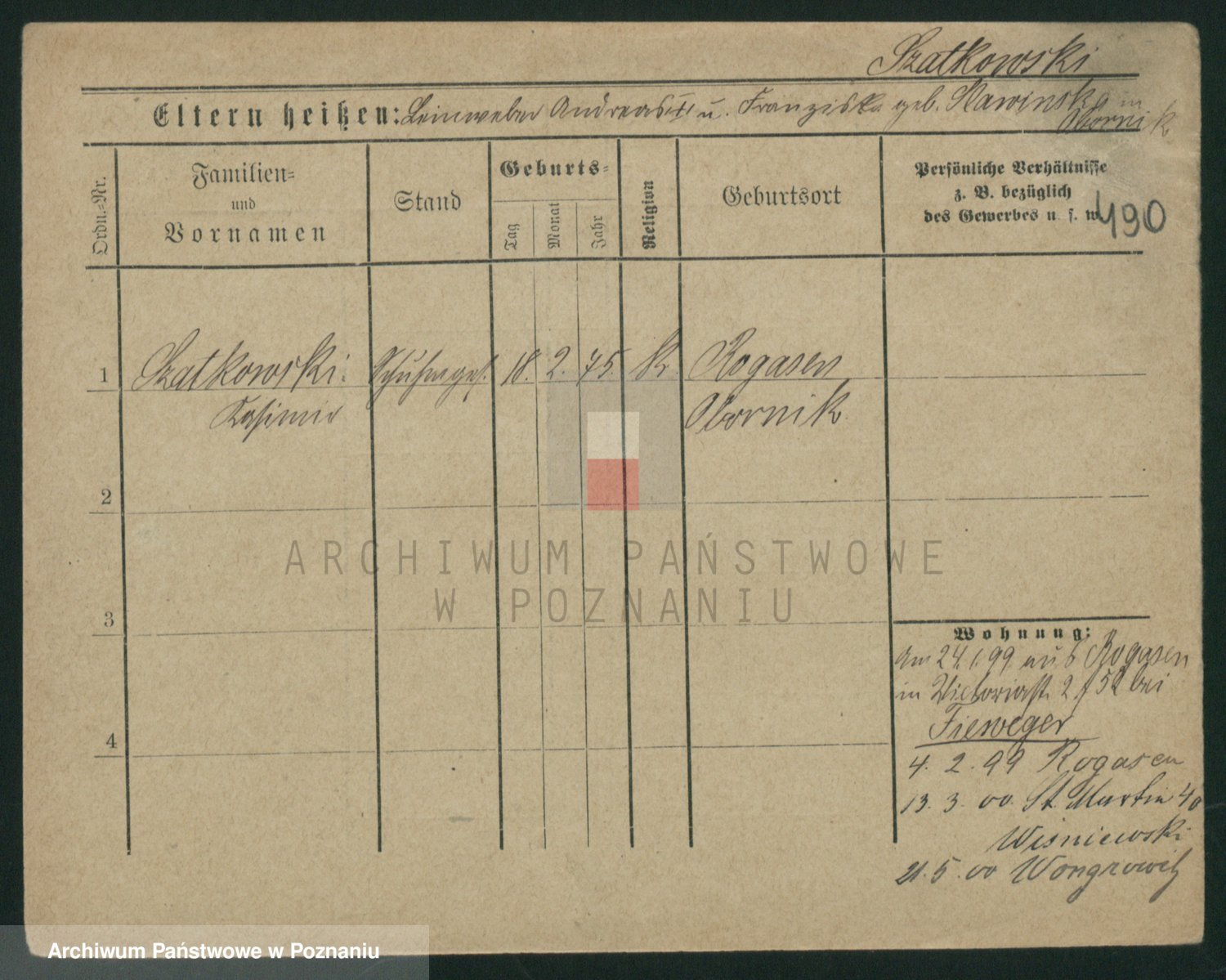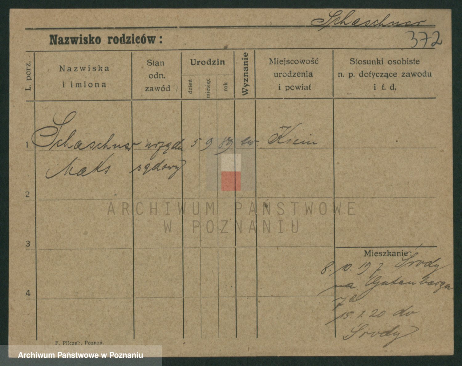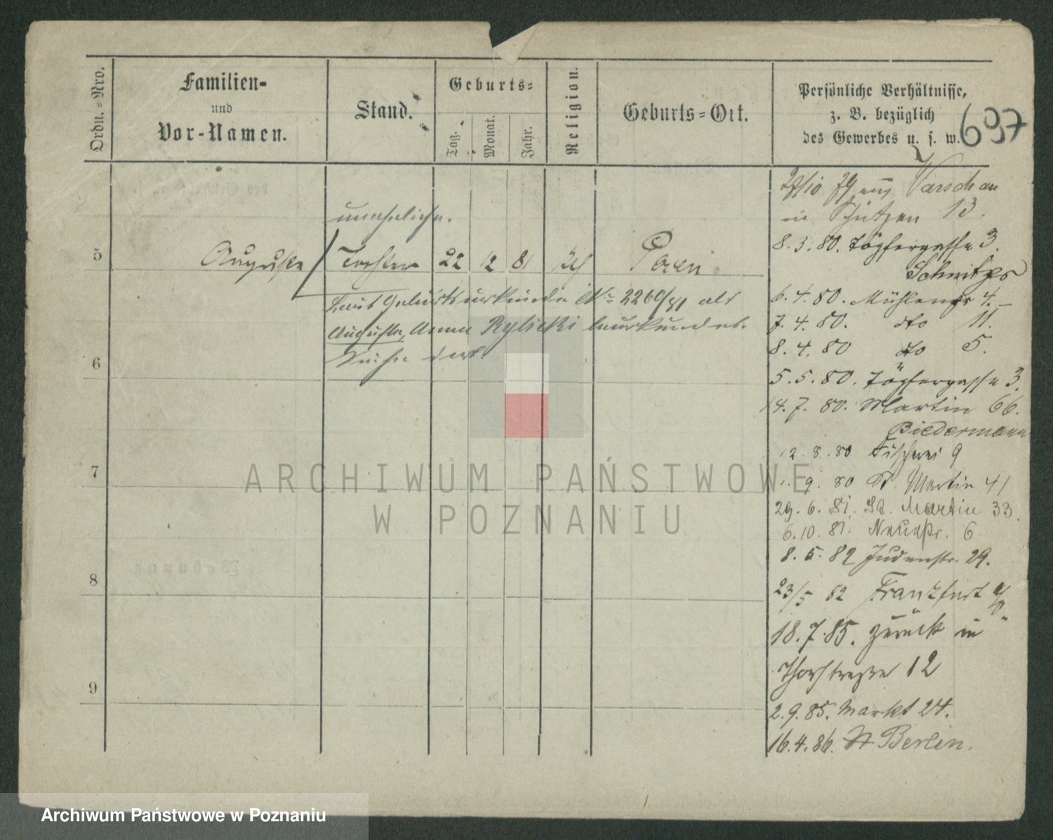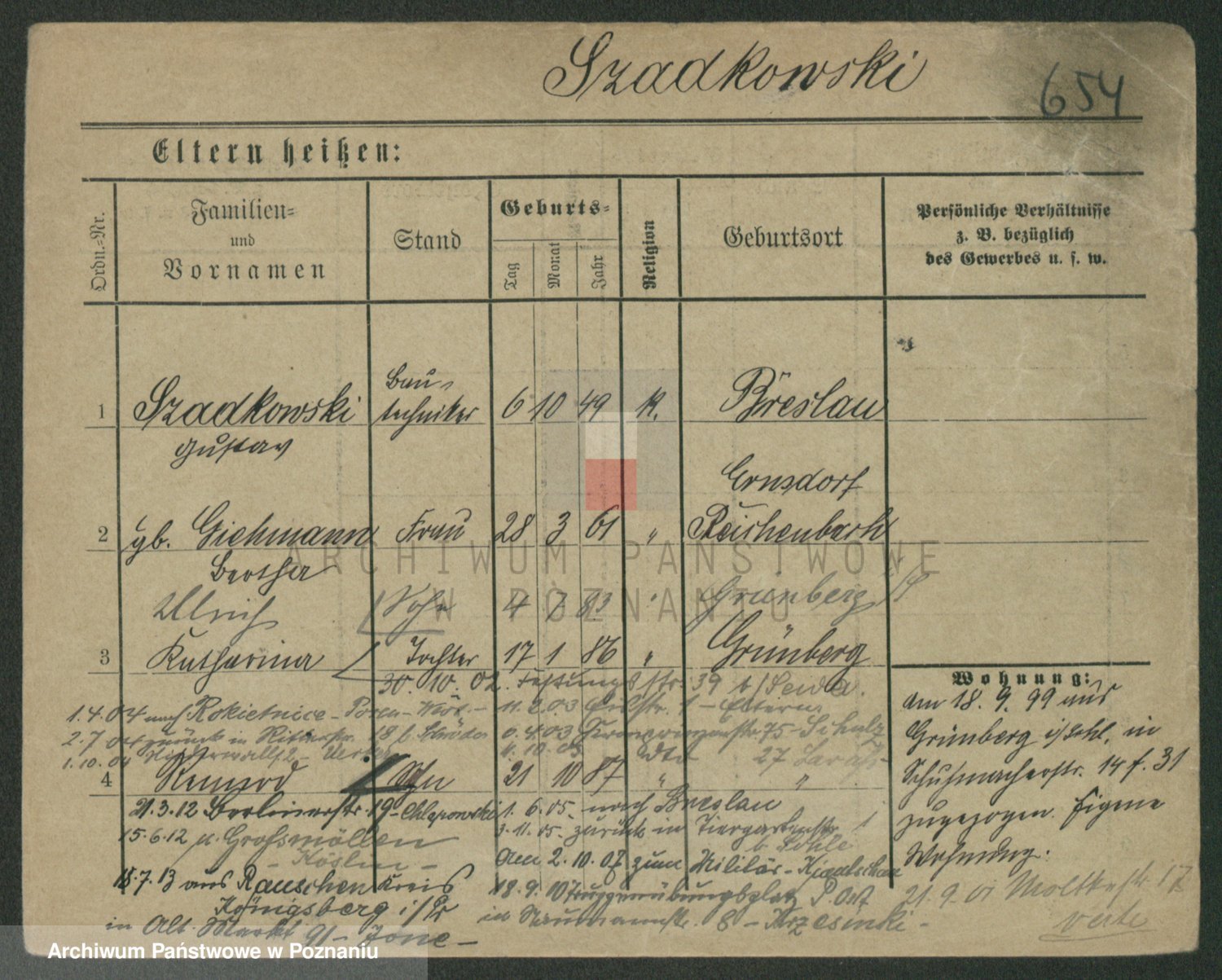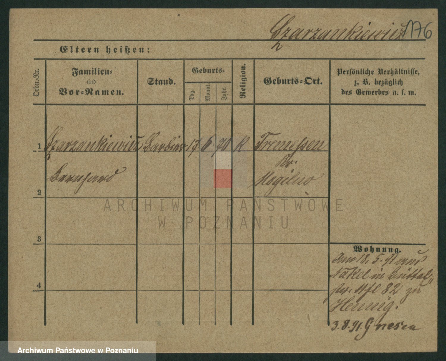 Podgląd karty osobowej dostępny jest po kliknięciu na nazwisko lub ikonkę karty. Można dokonywać powiększenia (ikony na górze) lub przechodzić między kolejnymi skanami (strzałki po bokach).
