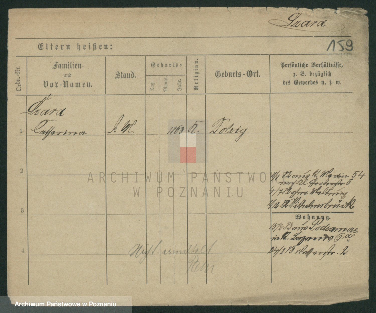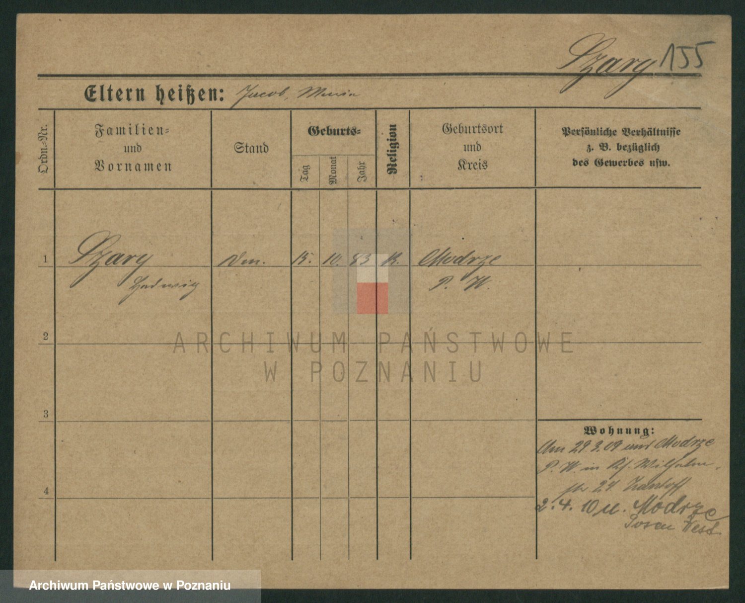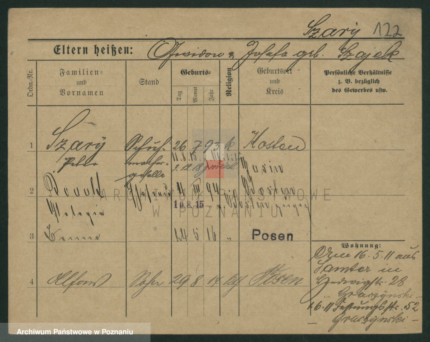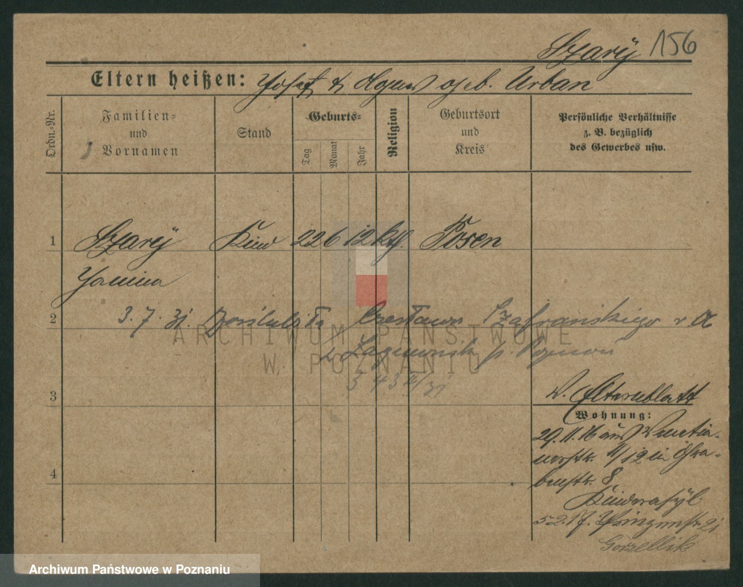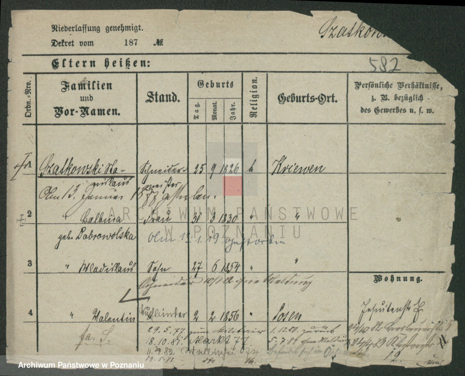 Podgląd karty osobowej dostępny jest po kliknięciu na nazwisko lub ikonkę karty. Można dokonywać powiększenia (ikony na górze) lub przechodzić między kolejnymi skanami (strzałki po bokach).