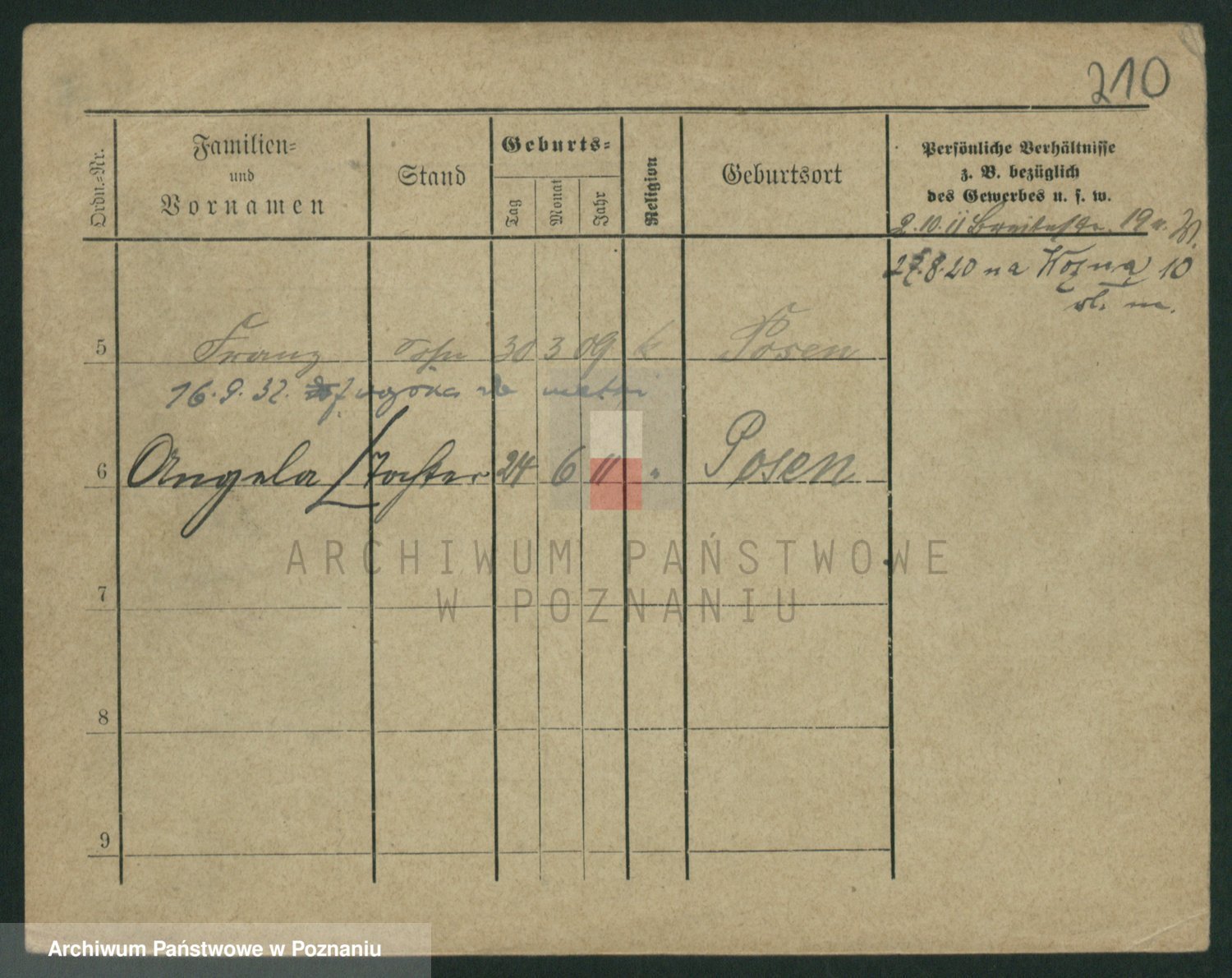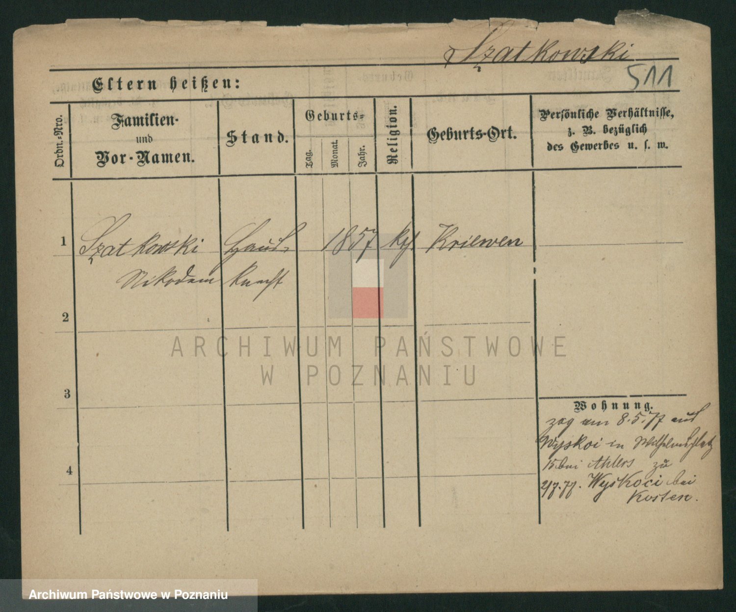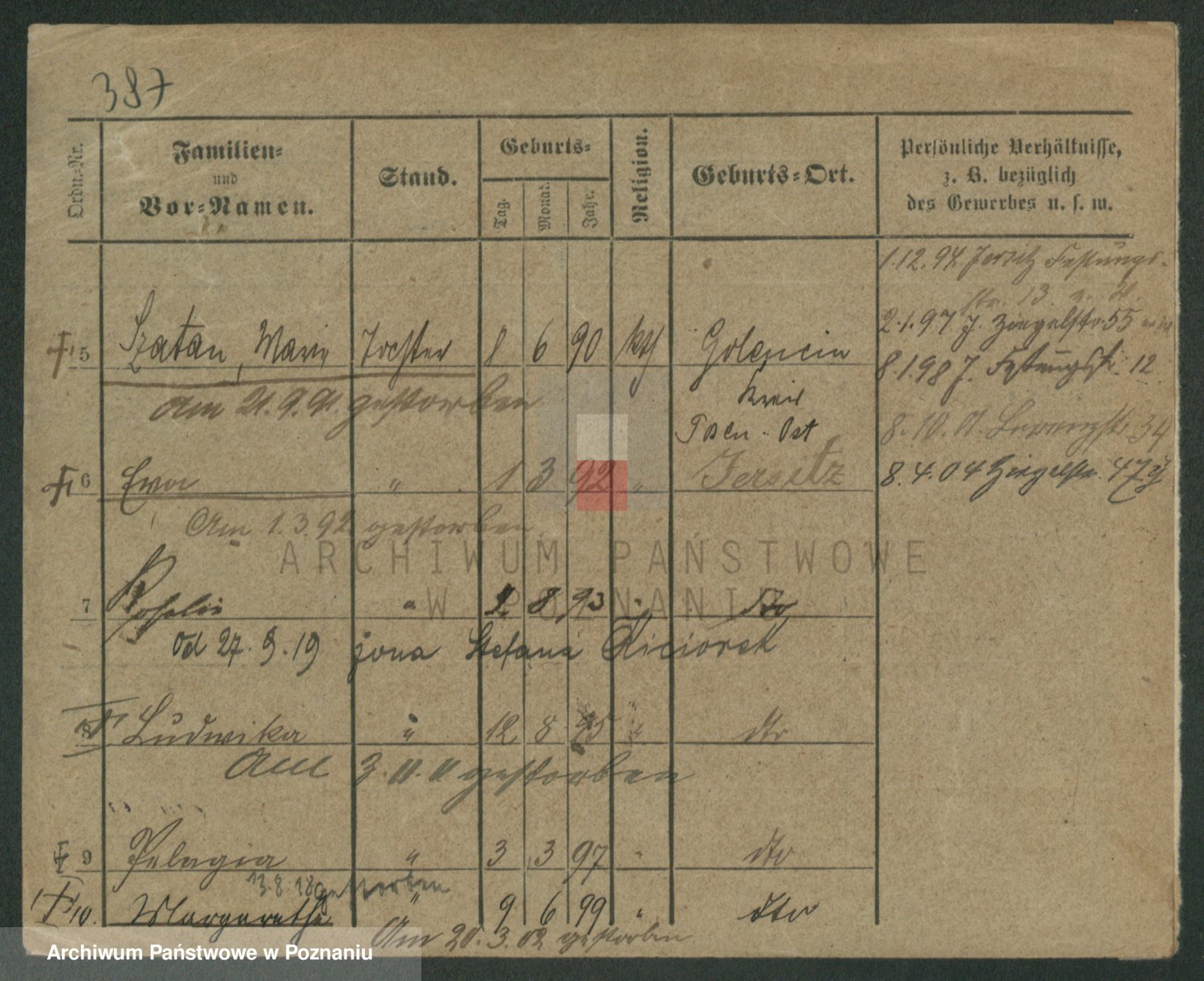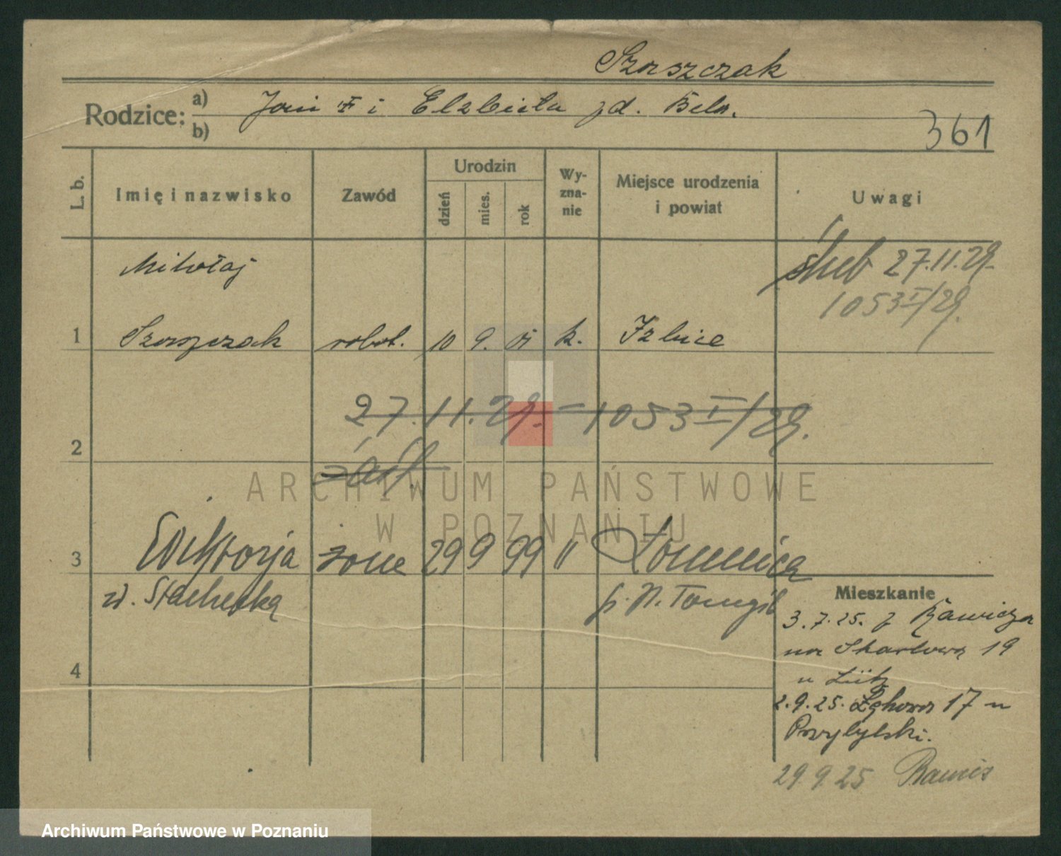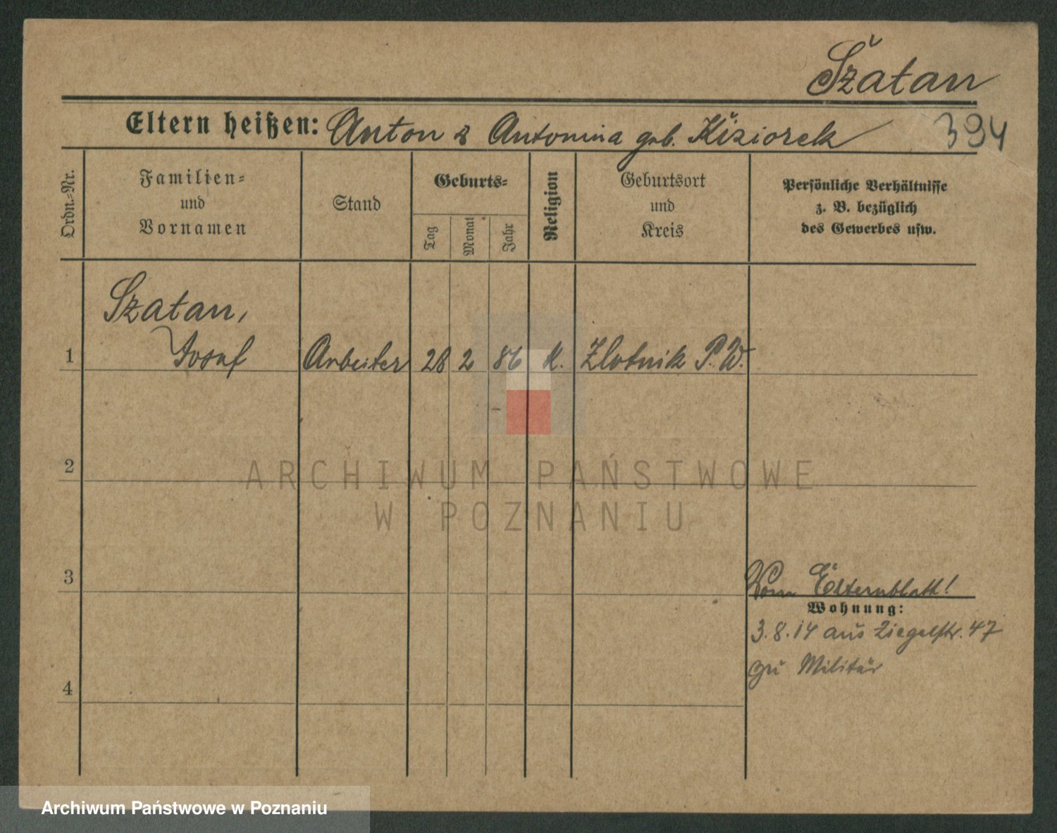 Podgląd karty osobowej dostępny jest po kliknięciu na nazwisko lub ikonkę karty. Można dokonywać powiększenia (ikony na górze) lub przechodzić między kolejnymi skanami (strzałki po bokach).